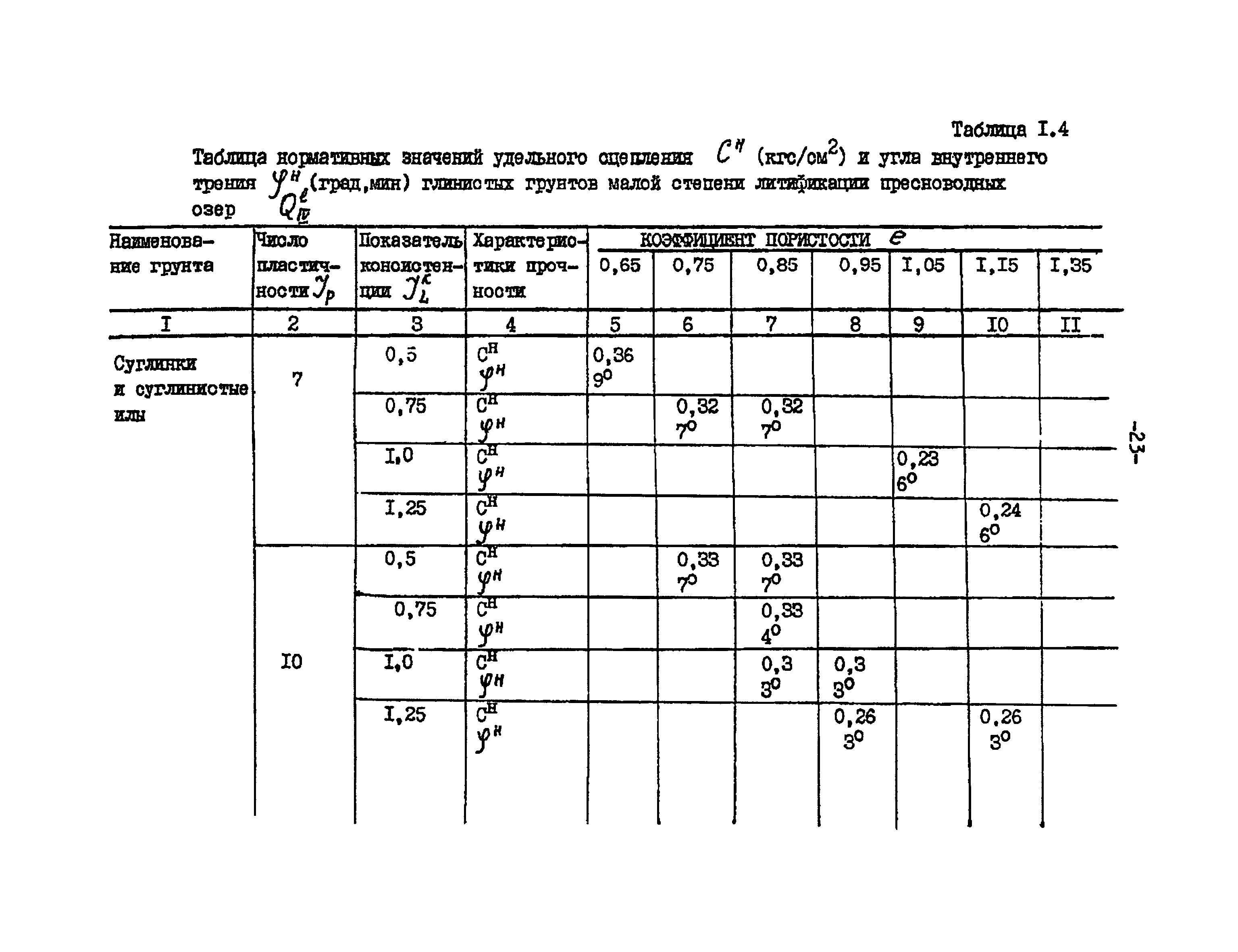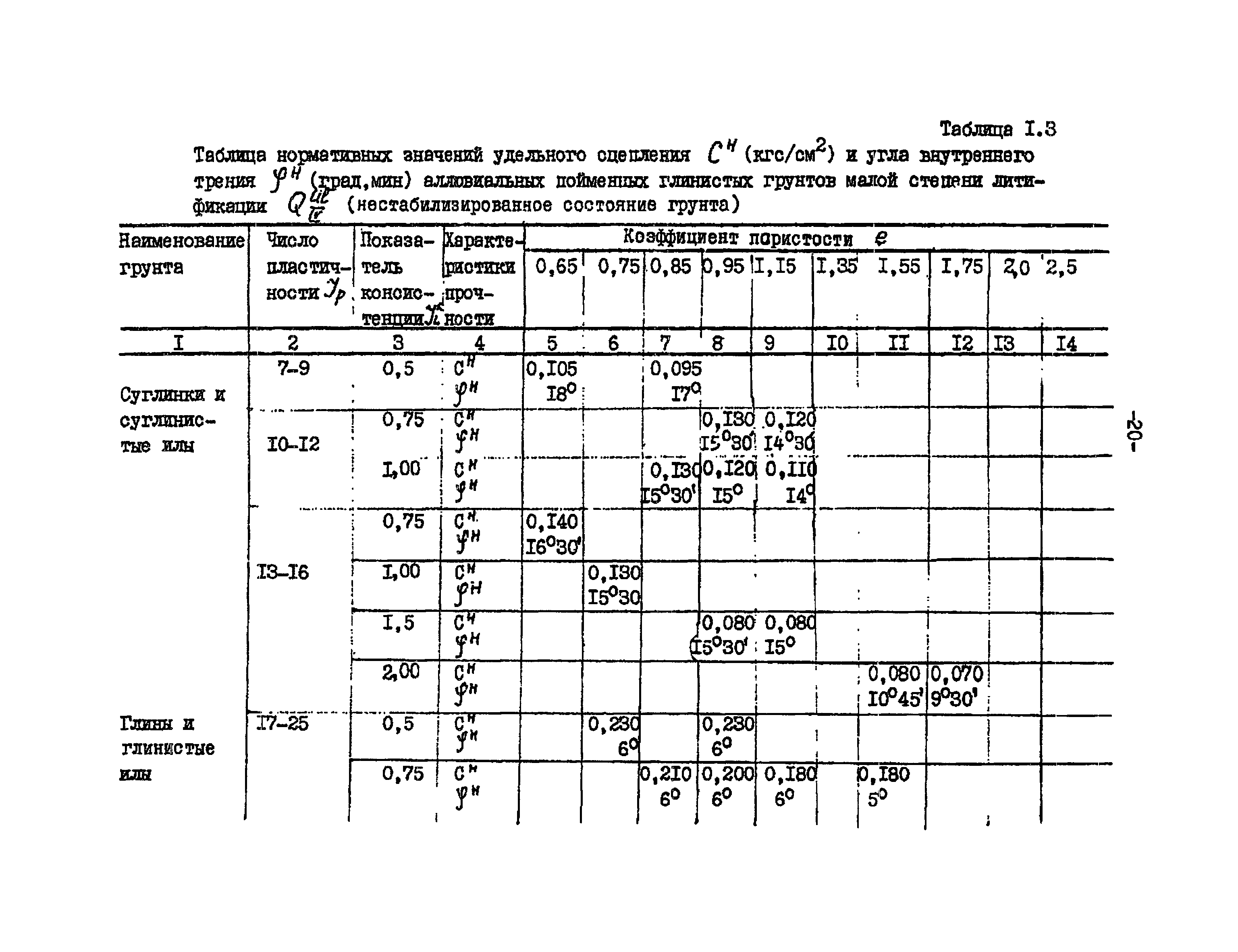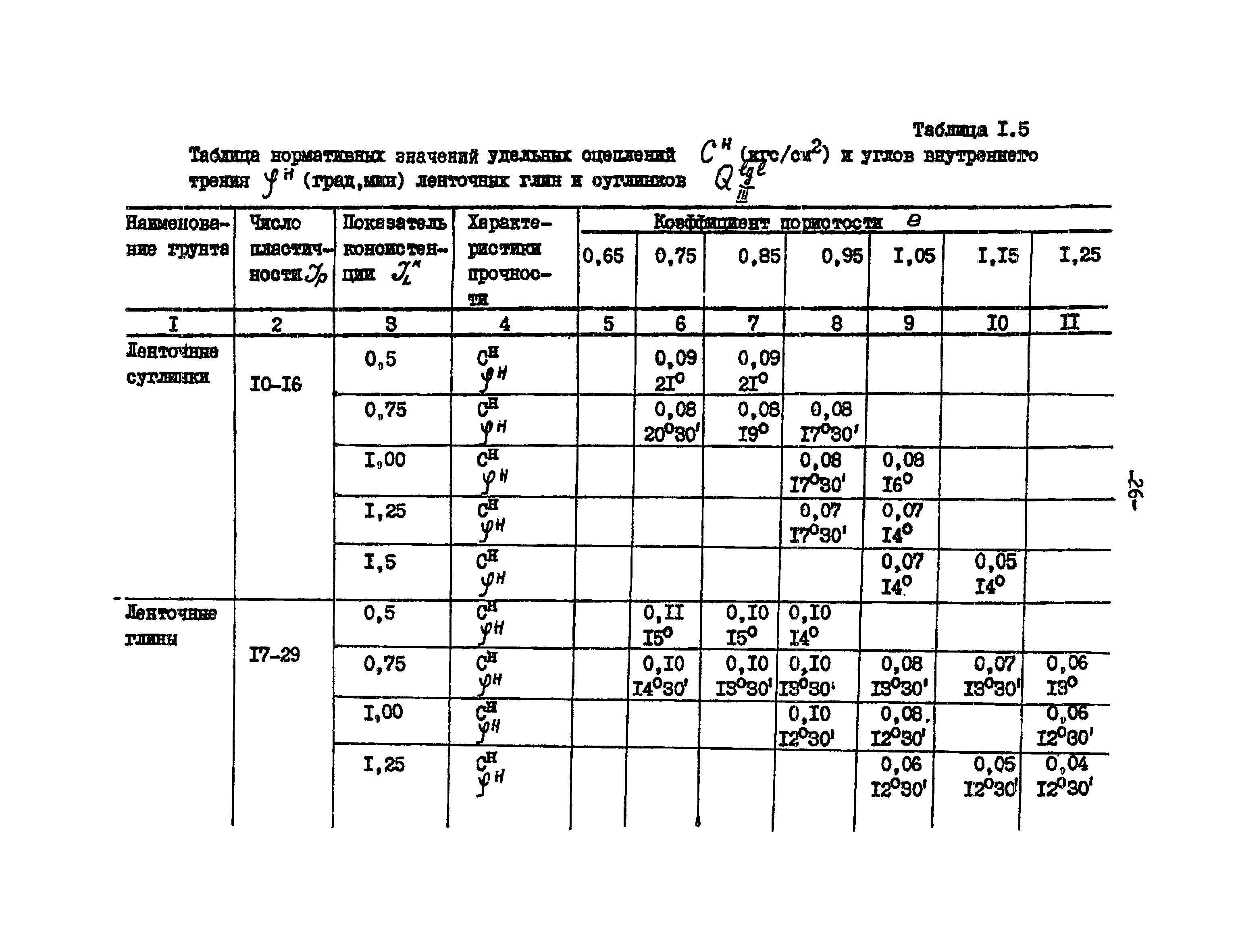 | Область применения: | Рекомендации распространяются на определение нормативных и расчетных значений прочности глинистых грунтов малой степени литификации по таблицам в зависимости от физических характеристик. |
