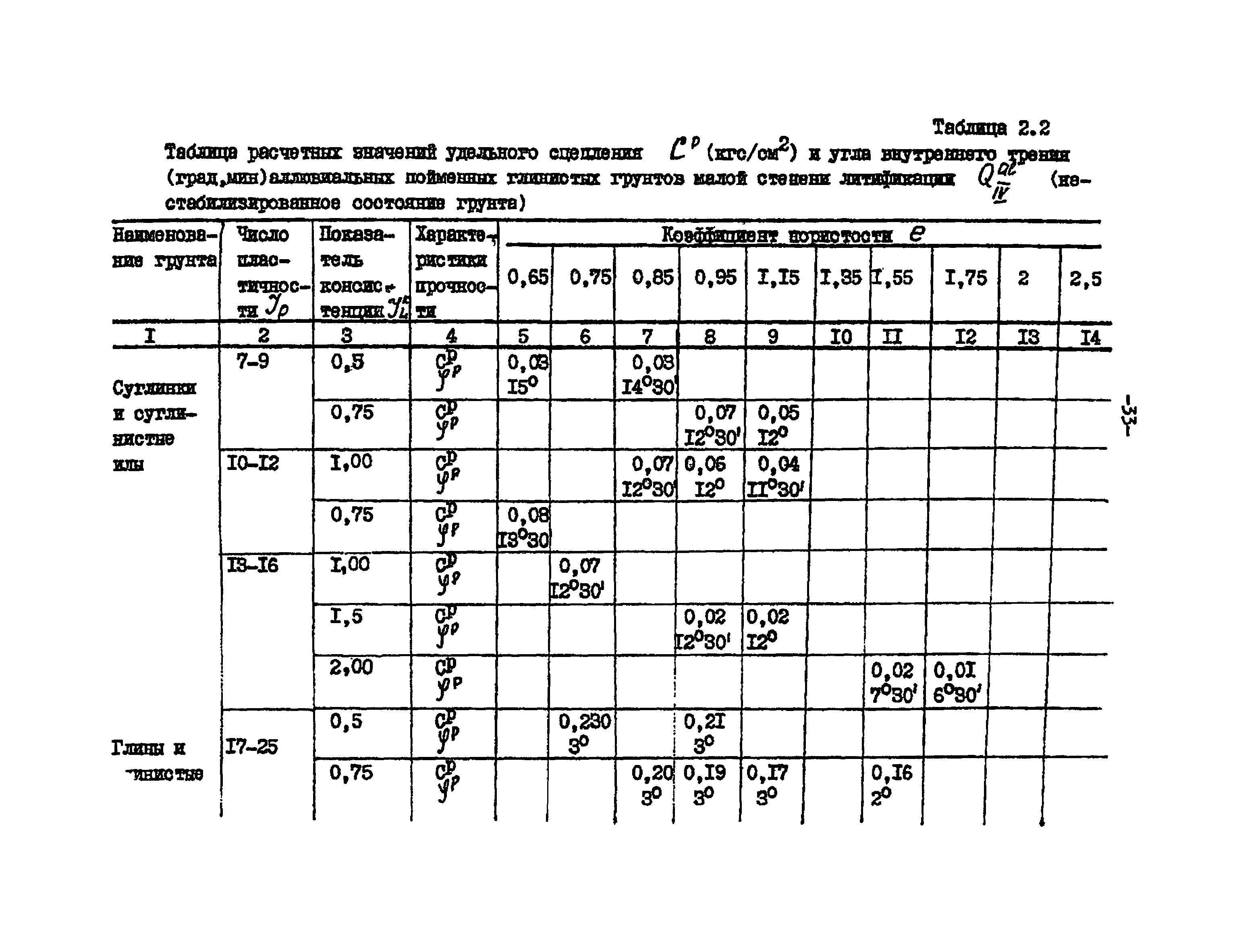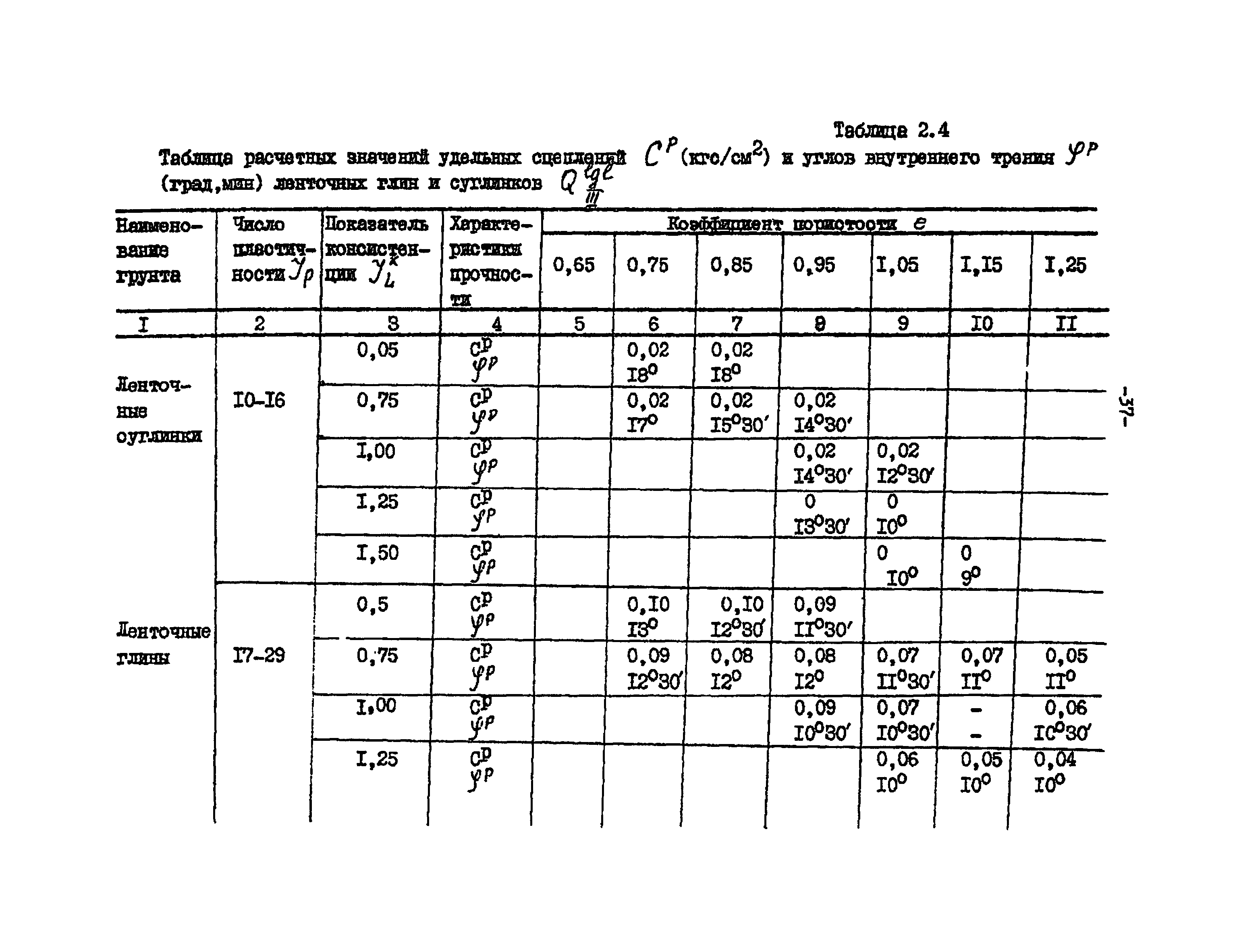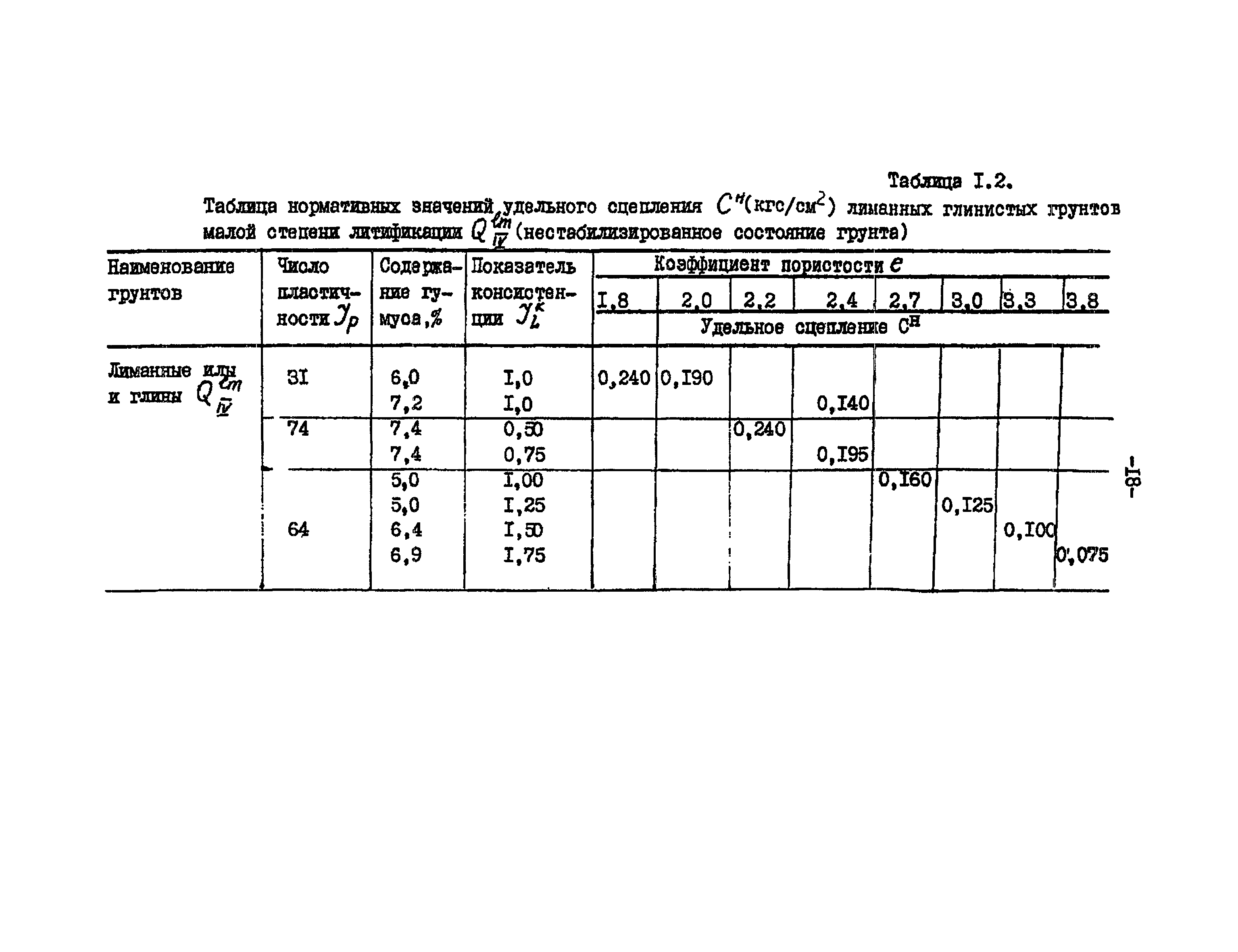 | Область применения: | Рекомендации распространяются на определение нормативных и расчетных значений прочности глинистых грунтов малой степени литификации по таблицам в зависимости от физических характеристик. |