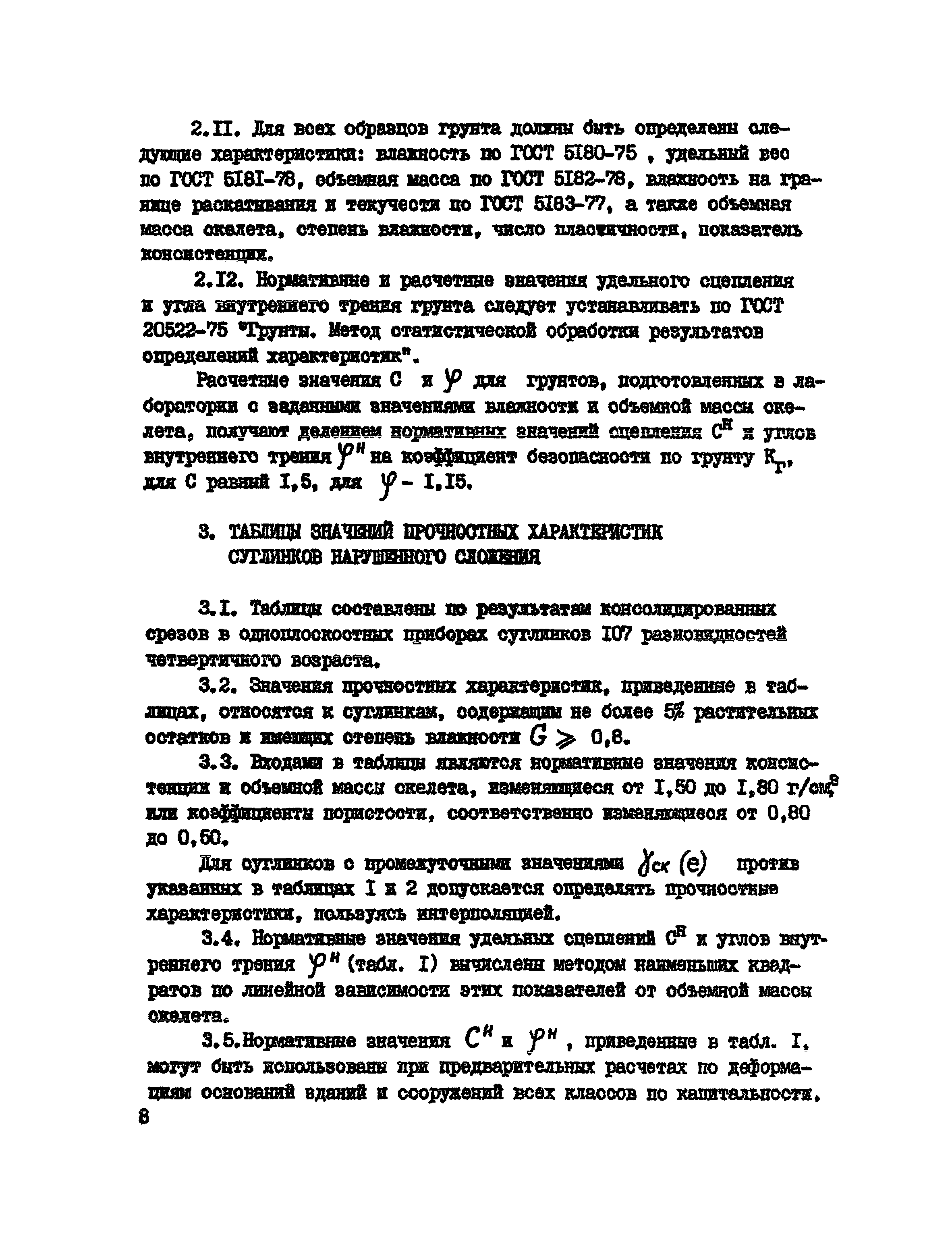 | Оглавление: | Введение 1. Общие положения 2. Определение сопротивления срезу грунтов 3. Таблицы значений прочностных характеристик суглинков нарушенного сложения |