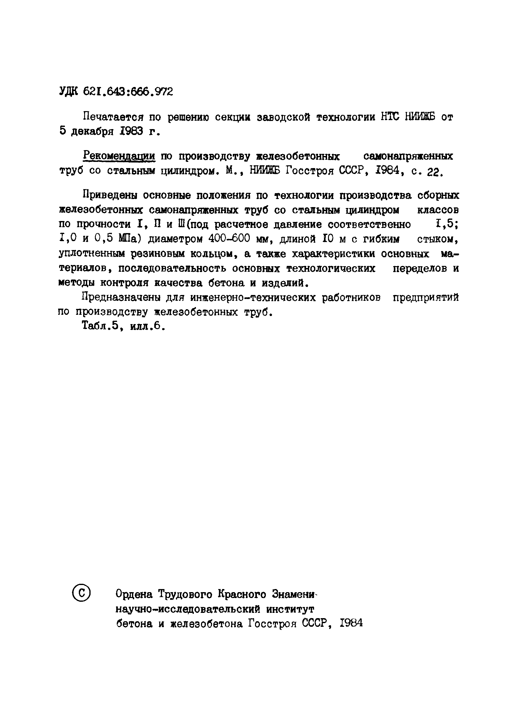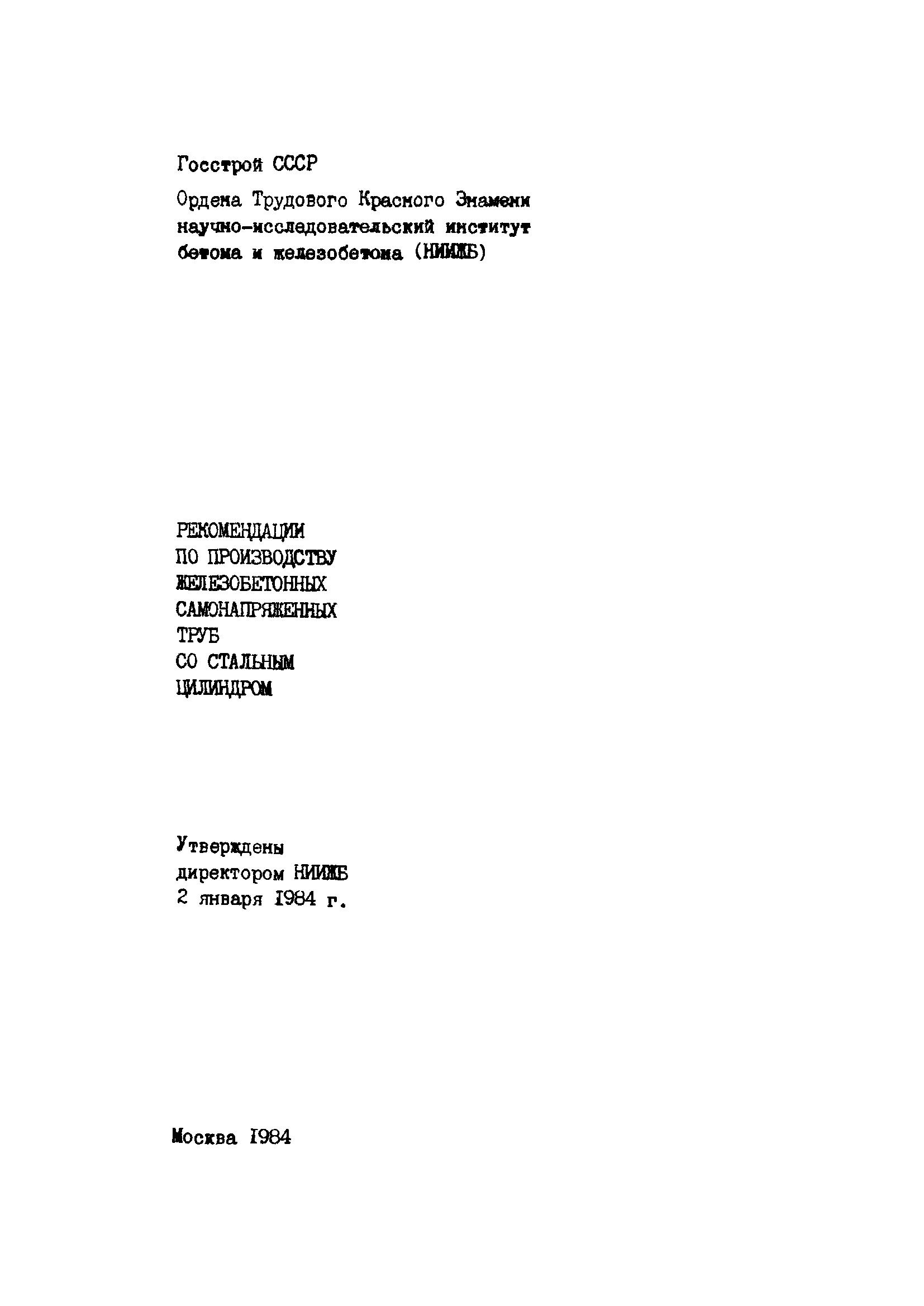 | Утверждён: | 02.01.1984 НИИЖБ Госстроя СССР (NIIZhB, USSR Gosstroy ) |