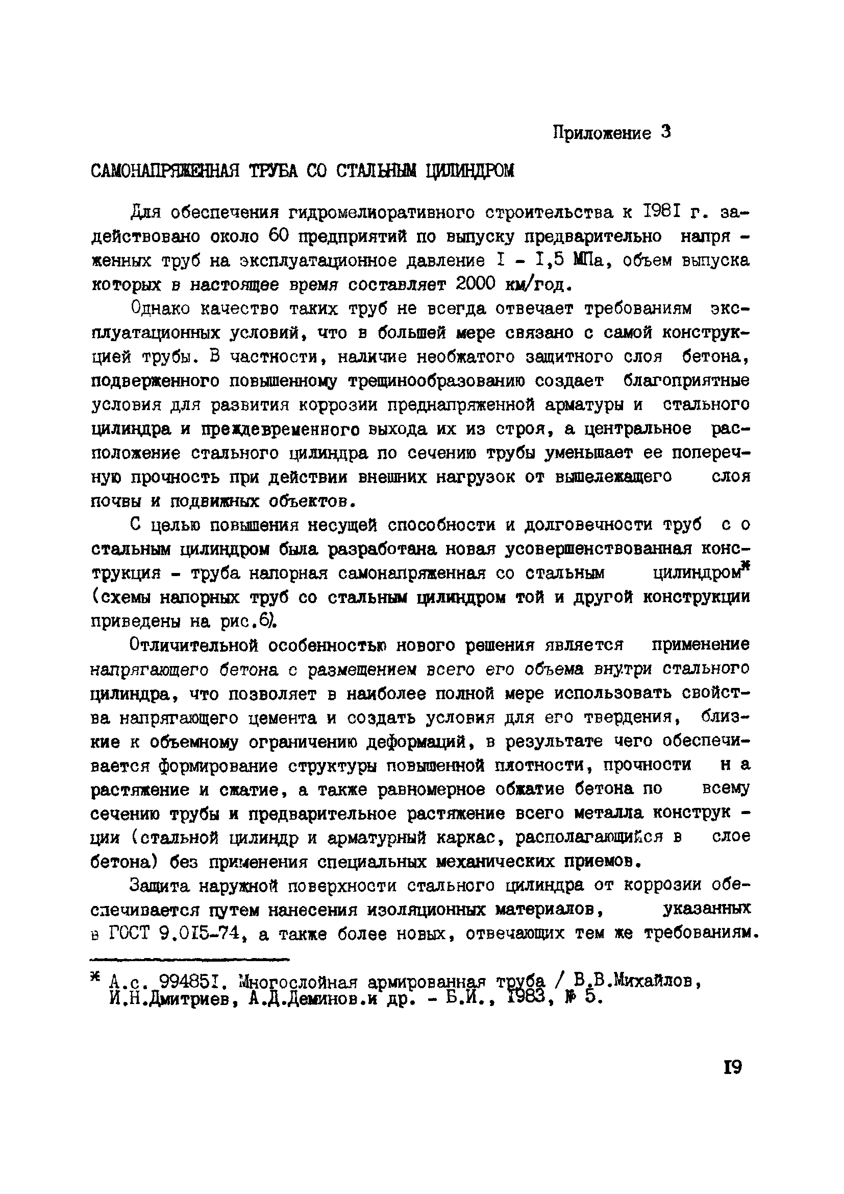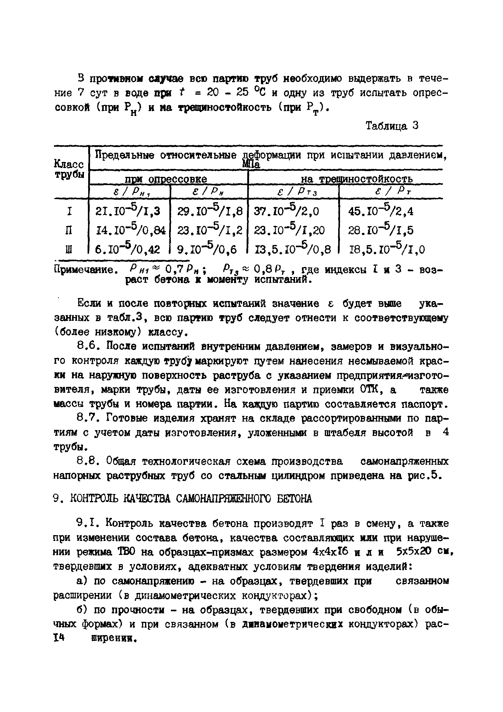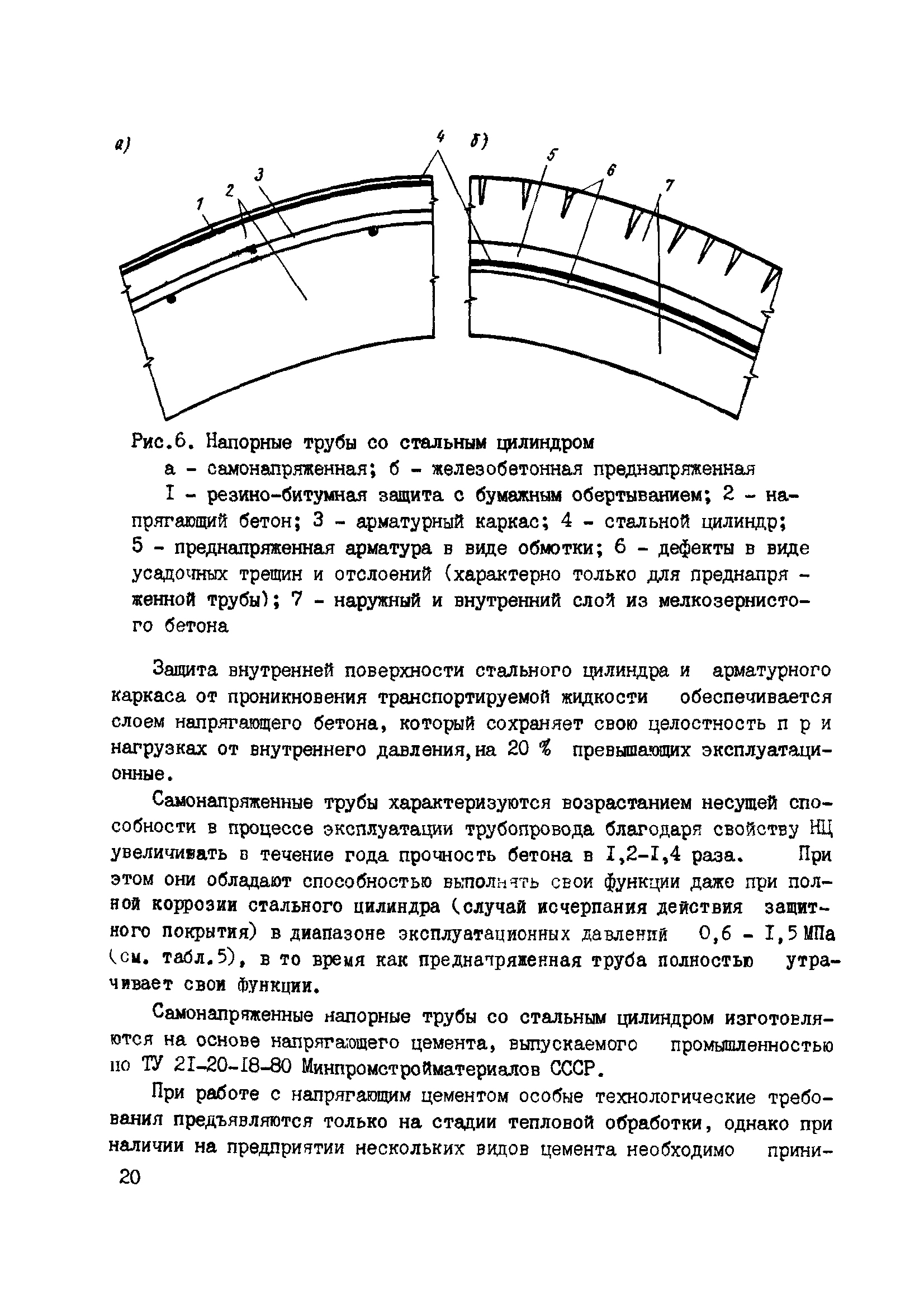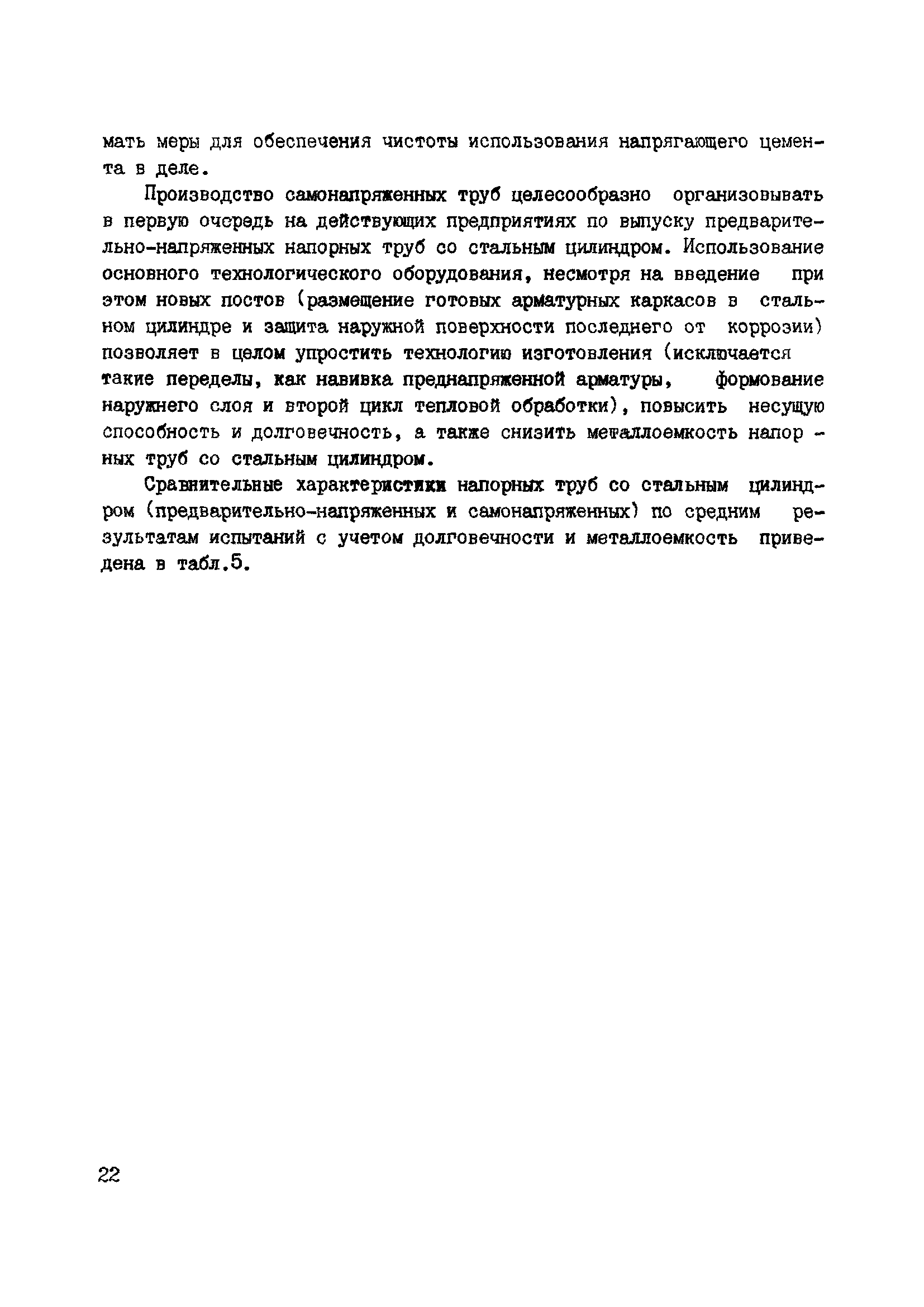 | Оглавление: | Предисловие 1. Область применения и основные положения 2. Материалы 3. Изготовление, оснащение и испытание стальных цилиндров 4. Бетонная смесь 5. Формование 6. Тепловлажностная обработка 7. Антикоррозионная защита стального цилиндра 8. Приемка, контроль качества и хранение труб 9. Контроль качества бетона на напрягающем цементе Приложение 1. Перечень дополнительного оборудования для лабораторий и ОТК необходимого для контроля качества напрягающего цемента и бетона Приложение 2. Способ контроля завершения процесса уплотнения при центрифугировании трубчатых изделий Приложение 3. Самонапряженная труба со стальным цилиндром |
