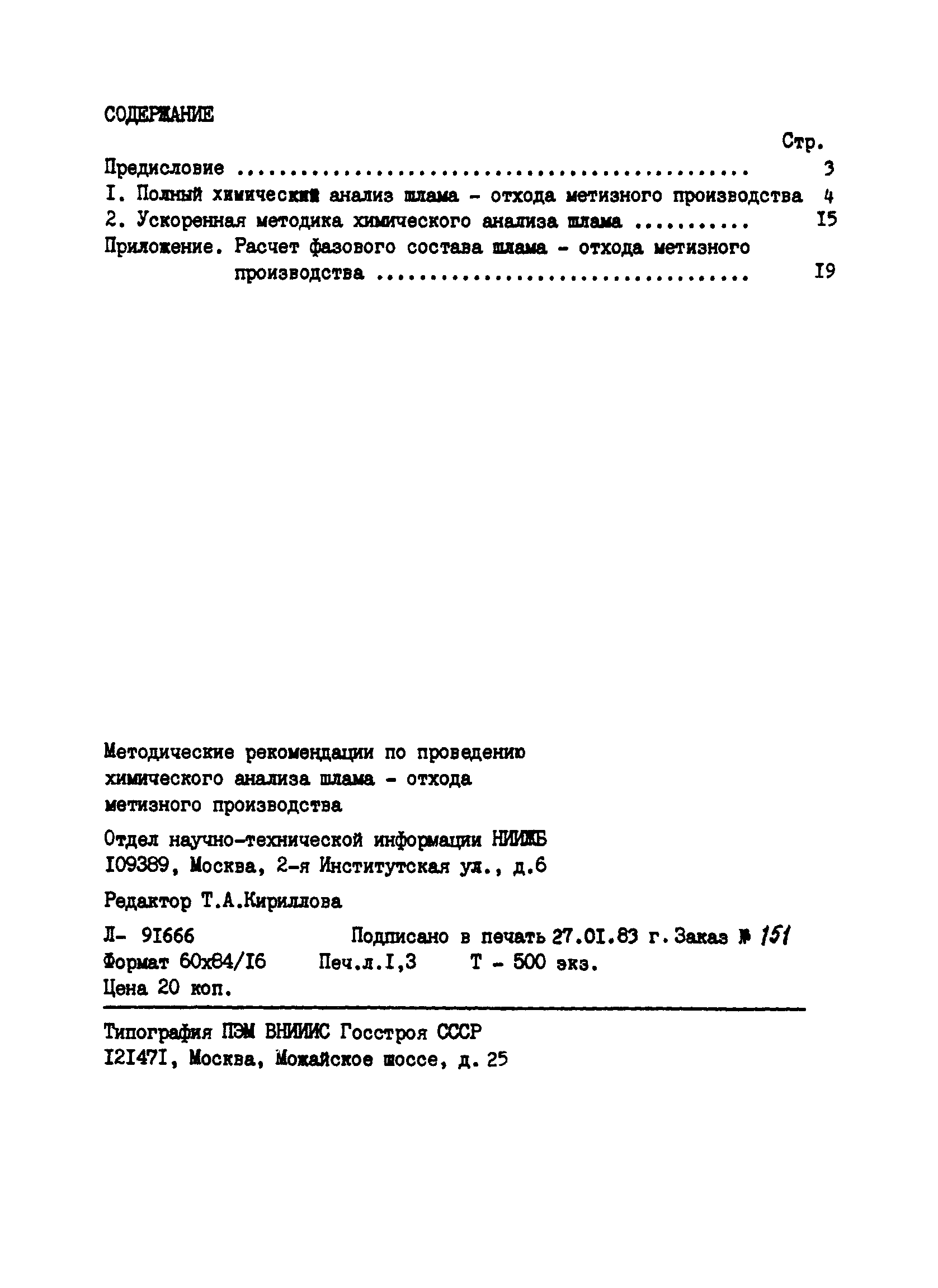 | Оглавление: | Предисловие . 1. Полный химический анализ шлама - отхода метизного производства 2. Ускоренная методика химического анализа шлама Приложение. Расчет фазового состава шлама - отхода метизного производства |