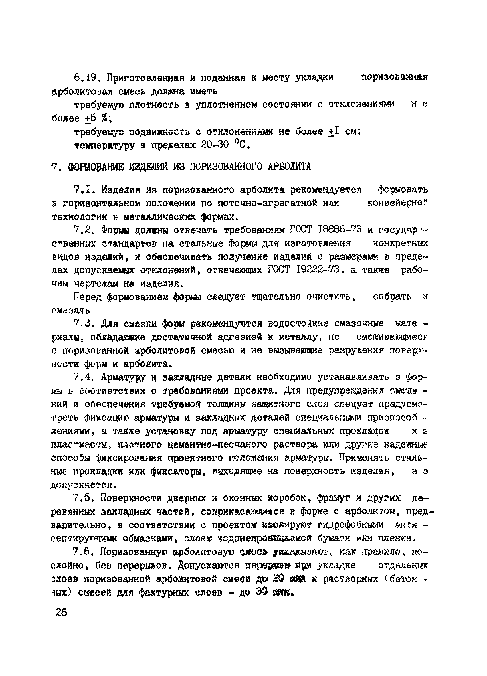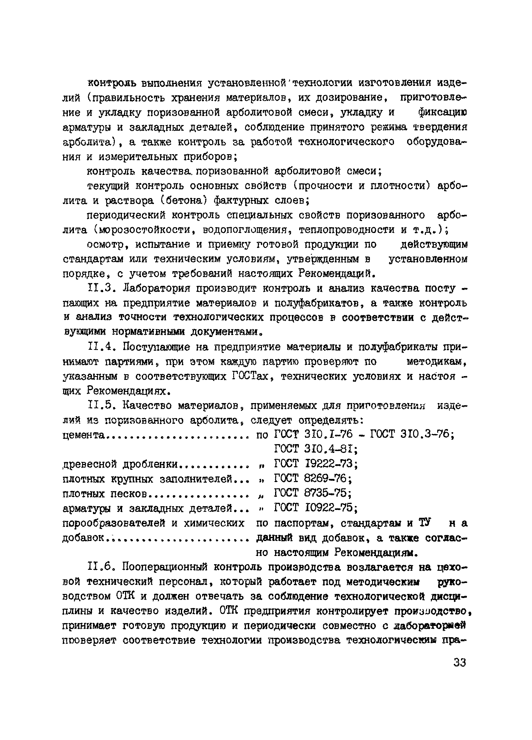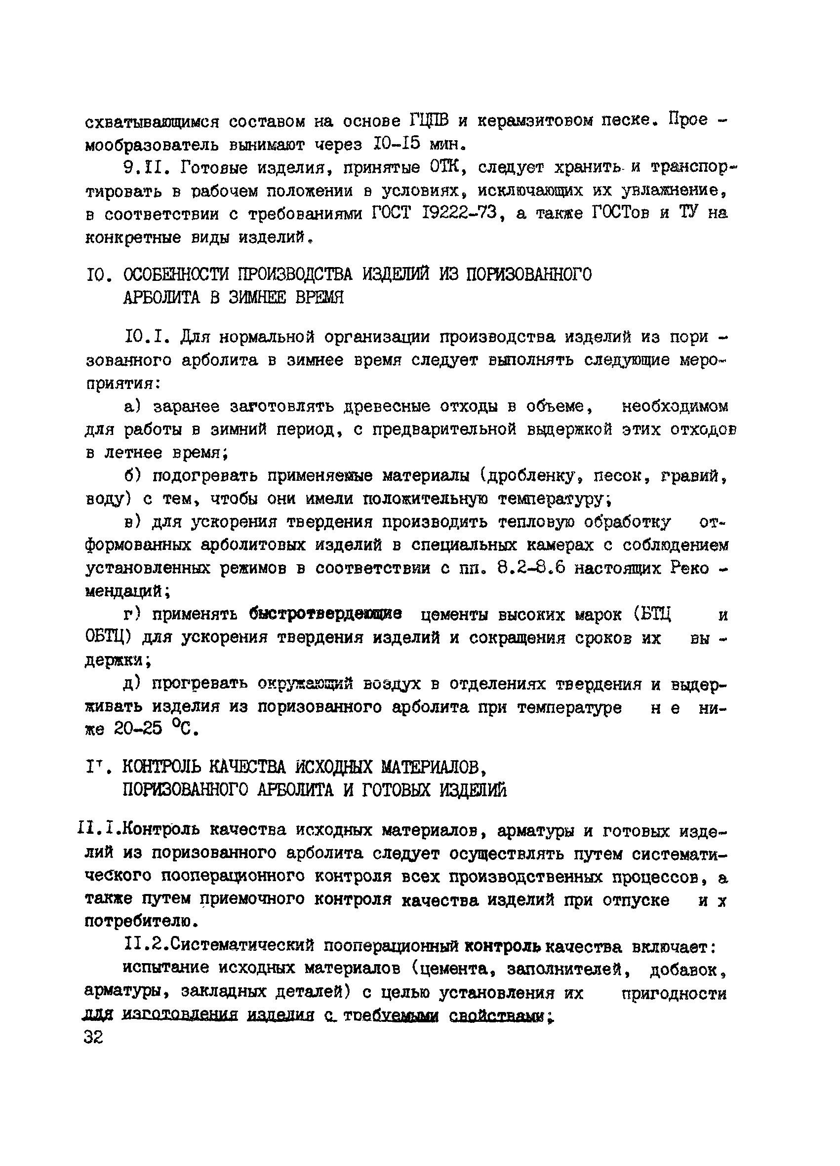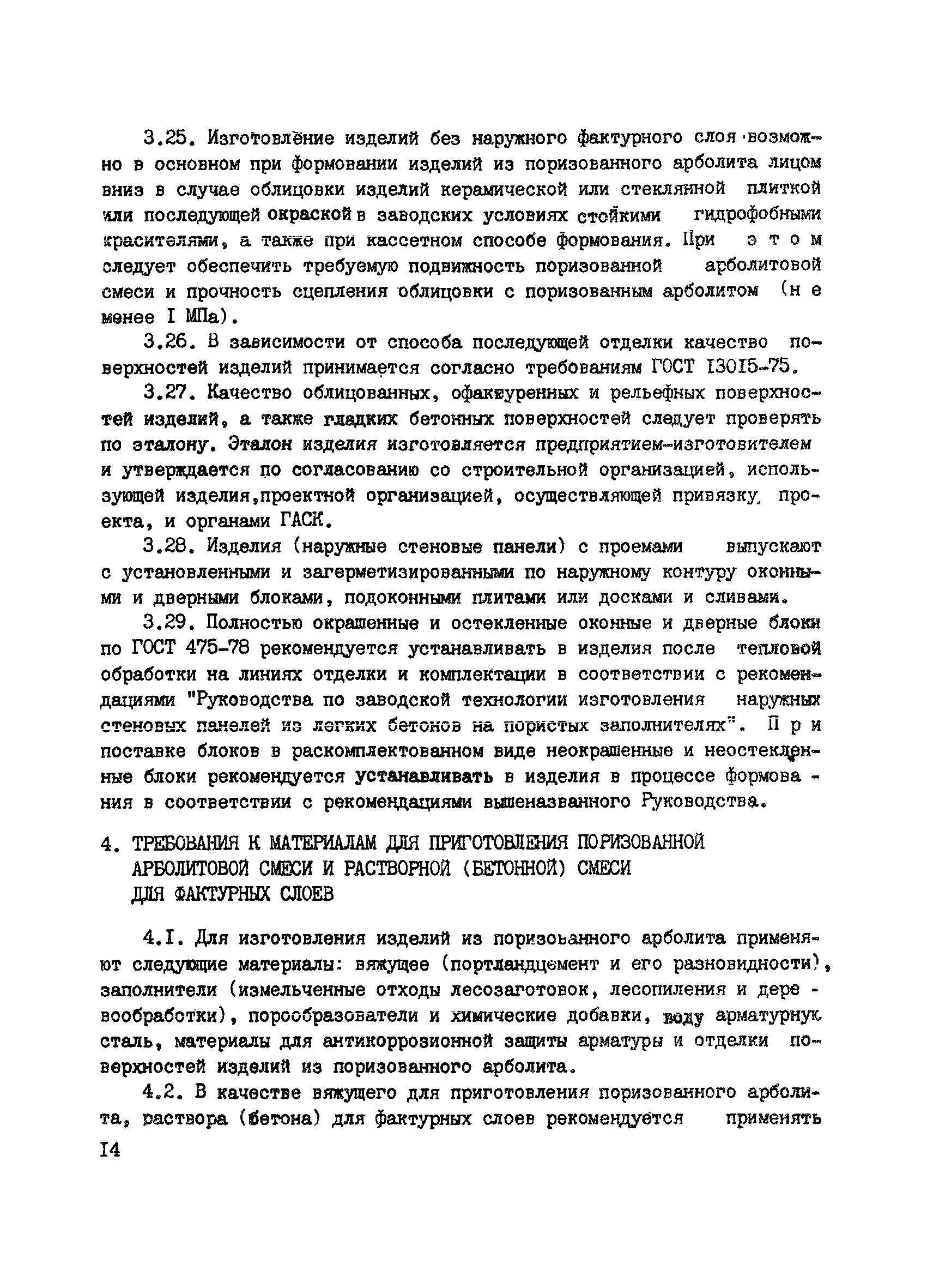 | Оглавление: | Предисловие 1. Общие положение 2, Нормативные и расчетные характеристики поризованного арболита 3, Особенности расчета изделий и требования к поризованному арболиту и изделиям из него 4. Требования к материалам для приготовления поризованной арболитовой смеси и растворной (бетонной) смеси для фактурных слоев 5. Проектирование и подбор составов поризованного арболита и раствора (бетона) для фактурных слоев 6. Приготовление и транспортирование поризованной арболитовой смеси и растворной (бетонной) смеси для фактурных слоев 7. Формование изделий из поризованного арболита 8. Твердение изделий из поризованного арболита 9. Распалубка и доводка изделий из поризозанного арболита 10. Особенности производства изделий из поризованного арболита в зимнее время 11. Контроль качества исходных материалов поризованного арболита и готовых изделий 12. Приемка, маркировка, хранение и транспортирование изделий Приложение 1. Характеристика и требования, предъявляемые к пенообразователям Приложение 2. Перечень авторских свидетельств по применению комплексных химических добавок в арболите Приложение 3, Оборудование и технология приготовления технической пены Приложение 4. Определение качества технической пены Приложение 5. Пример подбора состава поризованного арболита Приложение 6. Основные показатели водных растворов добавок |