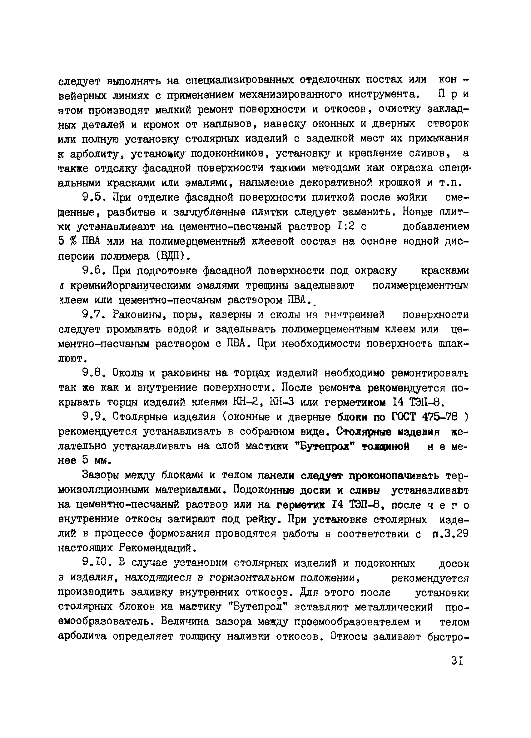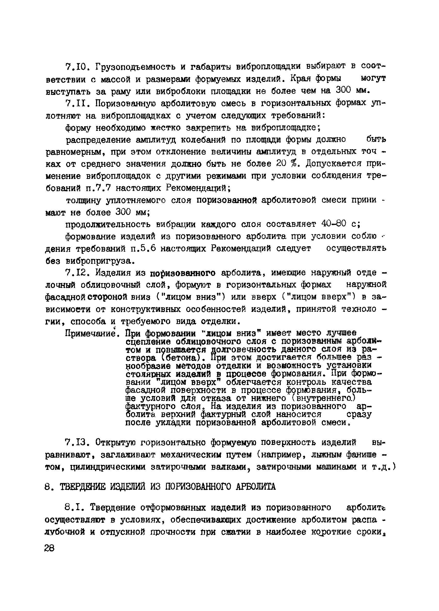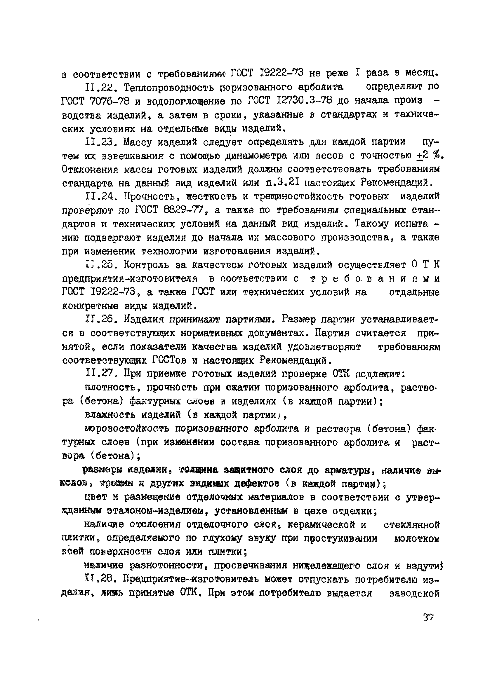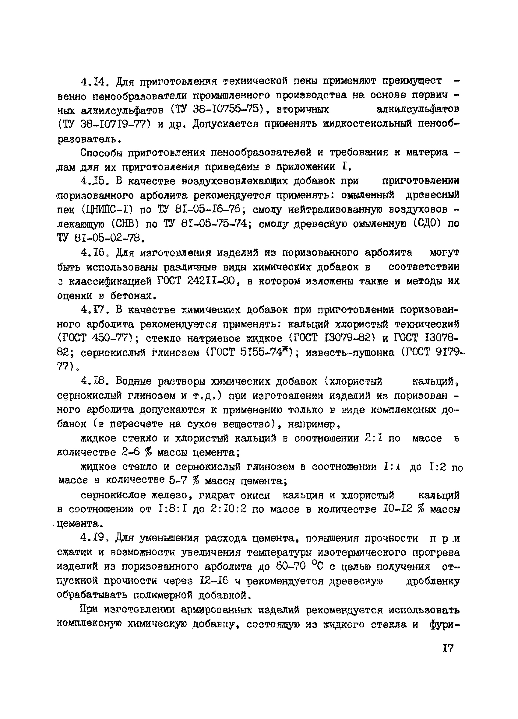 | Оглавление: | Предисловие 1. Общие положение 2, Нормативные и расчетные характеристики поризованного арболита 3, Особенности расчета изделий и требования к поризованному арболиту и изделиям из него 4. Требования к материалам для приготовления поризованной арболитовой смеси и растворной (бетонной) смеси для фактурных слоев 5. Проектирование и подбор составов поризованного арболита и раствора (бетона) для фактурных слоев 6. Приготовление и транспортирование поризованной арболитовой смеси и растворной (бетонной) смеси для фактурных слоев 7. Формование изделий из поризованного арболита 8. Твердение изделий из поризованного арболита 9. Распалубка и доводка изделий из поризозанного арболита 10. Особенности производства изделий из поризованного арболита в зимнее время 11. Контроль качества исходных материалов поризованного арболита и готовых изделий 12. Приемка, маркировка, хранение и транспортирование изделий Приложение 1. Характеристика и требования, предъявляемые к пенообразователям Приложение 2. Перечень авторских свидетельств по применению комплексных химических добавок в арболите Приложение 3, Оборудование и технология приготовления технической пены Приложение 4. Определение качества технической пены Приложение 5. Пример подбора состава поризованного арболита Приложение 6. Основные показатели водных растворов добавок |