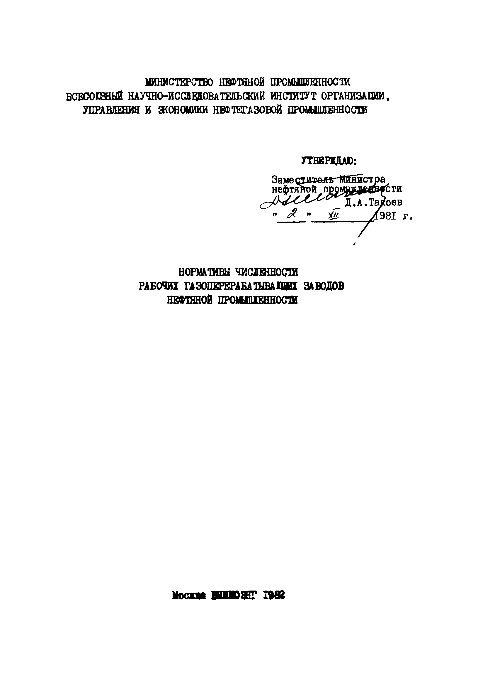 | | Утверждён: | 02.12.1981 Министерство нефтяной промышленности СССР (USSR Ministry of the Petroleum Industry )