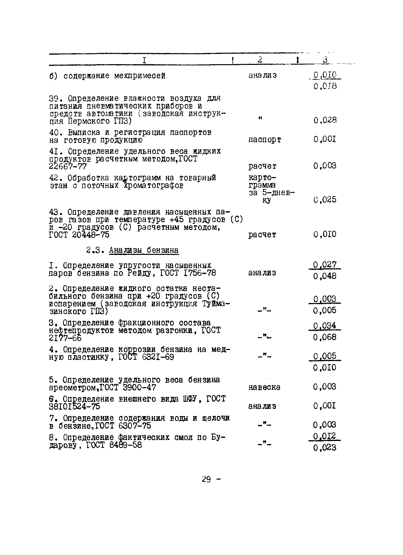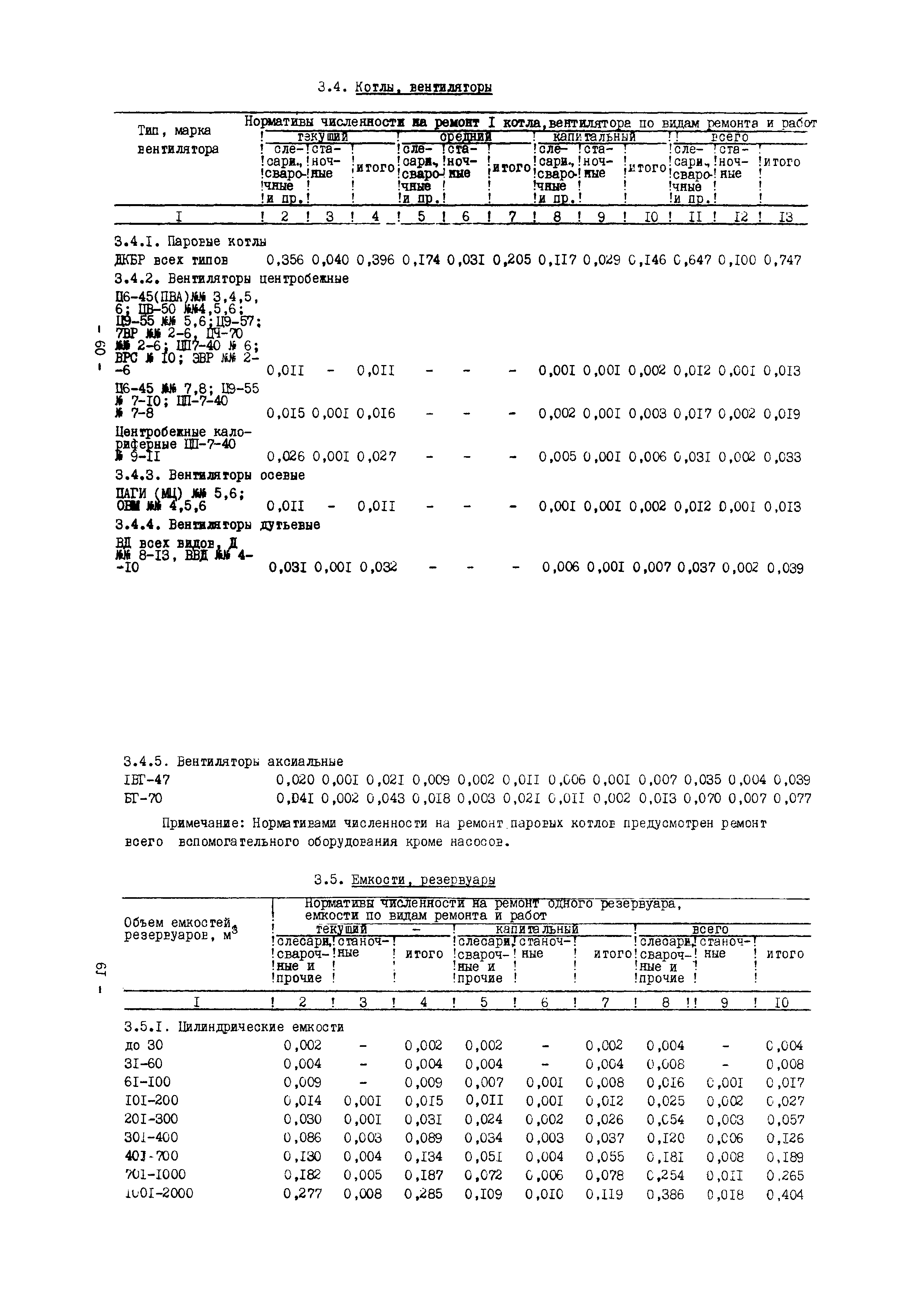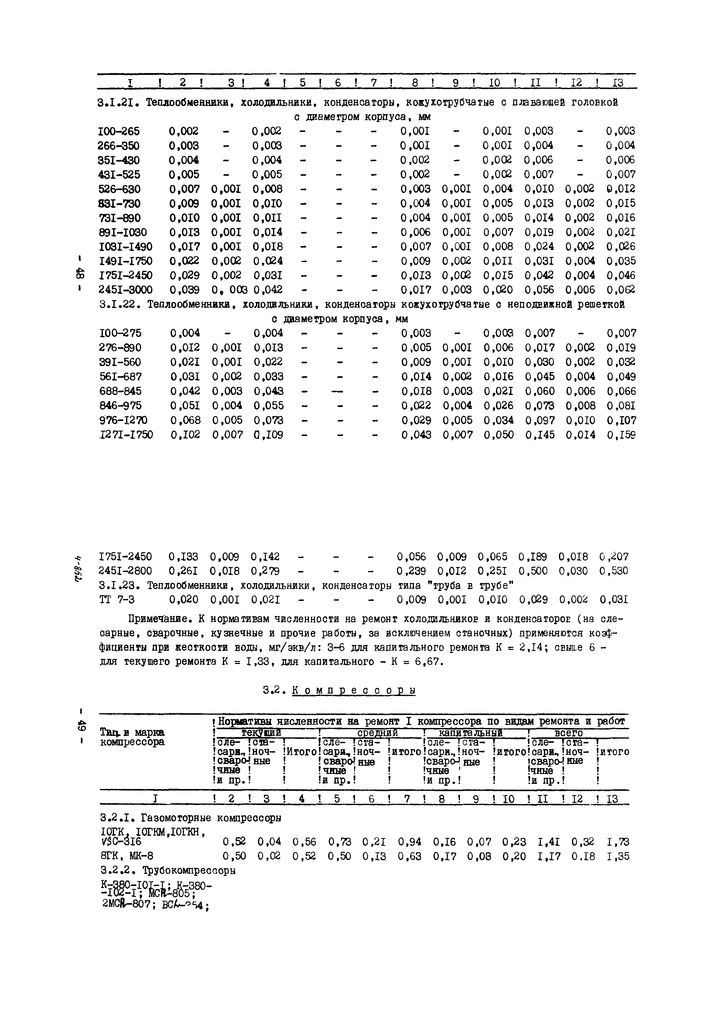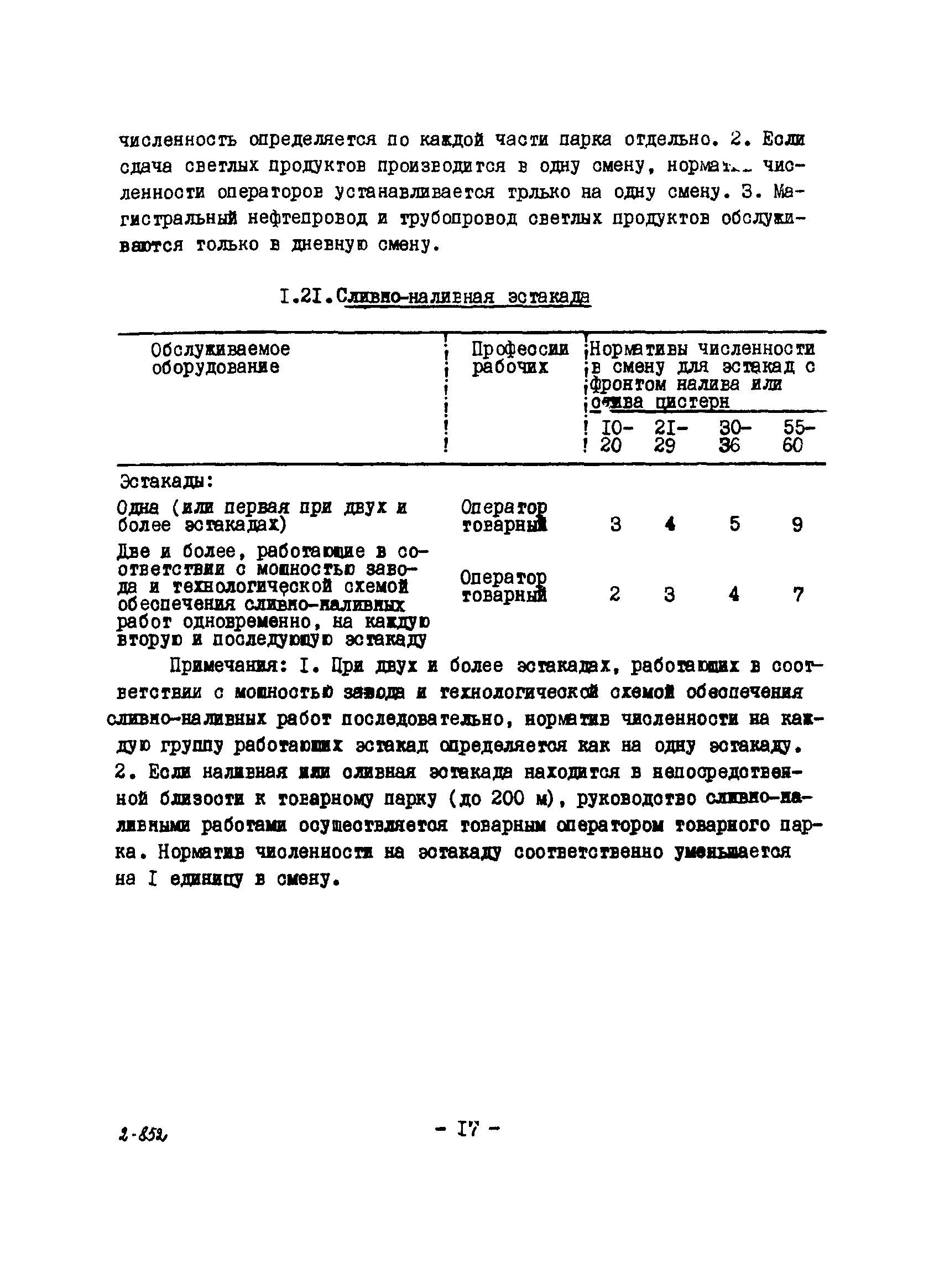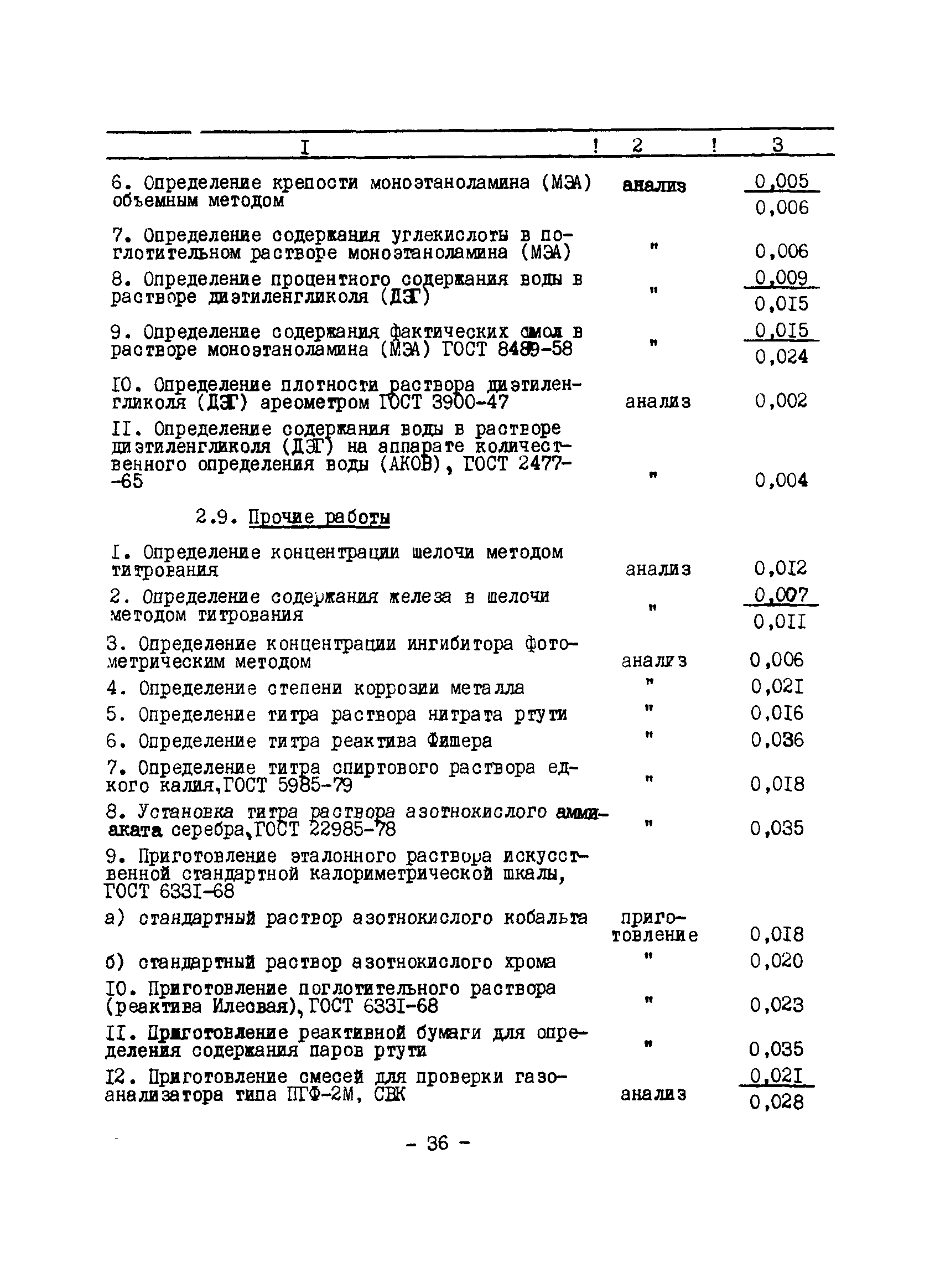 Нормативы численности рабочих газоперерабатывающих заводов нефтяной промышленности| Статус: | не действует | | Название рус.: | Нормативы численности рабочих газоперерабатывающих заводов нефтяной промышленности | | Дата добавления в базу: | 01.09.2013 | | Дата актуализации: | 01.01.2021 | | Область применения: | Нормативы численности предназначены для определения потребной численности и расстановки рабочих по рабочим местам на предприятиях ВПО “Союзнефтегазпереработка” Министерства нефтяной промышленности. | | Оглавление: | Общая часть 1. 0бслуживание технологического и вспомогательного оборудования 1.1. Установка по осушке и очистке газа 1.2. Установка низкотемпературной конденсации и осушке газа 1.3. Установка низкотемпературной конденсации и ректификация газа 1.4.Устаковка деэтанизации газа 1.5. Установка получения этана 1.6. Установка серочистки 1.7. Установка по выработке элементарной серы 1.8. Установка по переработке газового конденсата 1.9. Комбинированная установка комплексной подготовки нефти и газа 1.10. Маслоабсорбционная установка (МАУ) 1.11. Газофракционирующая установка (ГФУ) 1.12. Абсорбционно-газофракционирующая установка (АГФУ) 1.13.Уставовка по выработке гелия 1.14. Пропано-холодильная установка 1.15. Холодильная установка каскадного типа 1.16. Азотно-кислородная установка, станция 1.17. Аммиачно-холодильная установка 1.18. Установка получения пентана 1.19. Газораспределительные и газозамерные пункты 1.20. Товарные и сырьевые парки 1.21. Сливно-наливная эстакада 1.22. Компрессорные 1.23. Площадка охлаждения и сепарации 1.24. Комплексная технологическая установка, оснащенная комплексным импортным оборудованием фирмы «Флуор» 1.25. Пункт (установка) регенерации масел 1.26. Установка регенерации этиленгликоля 1.27. Насосные товарных парков, эстакад и водоснабжения 1.28. Очистные сооружения, ловушечное хозяйство 1.29. Реагентное хозяйство 1.30. Установки химической очистки и умягчение воды (оборотное водоснабжение и нейтрализация воды) 1.31. Парокотельные 1.32. Тепло-паро-водопроводные и канализационные сети 1.33. Артезианские скважины 2. Производство лабораторных работ (анализов) 2.1. Подготовительные работы 2.2. Анализы газов 2.3. Анализы бензина 2.4. Анализы масел и других нефтепродуктов 2.5. Анализы электролита 2.6. Анализы воды 2.7. Анализы серы 2.8. Анализы растворителей 2.9. Прочие работы 3 Ремонт технологического оборудования 3.1. Оборудование технологических установок 3.2. Компрессоры 3.3. Насосы 3.4. Котлы, вентиляторы 3.5. Емкости, резервуары 3.6. Грузоподъемное оборудование 3.7.Регенерационная установка 4 Ремонт оборудования 4.1. Электродвигатели 4.2. Трансформаторы 4.3. Аппараты напряжением выше 1000 В 4.4. Аппараты напряжением до 1000 В 4.5. Оборудование (элементы) электрического освещения 4.6. Электротехнологическое оборудование 4.7. Установки конденсаторные 4.8. Батареи аккумуляторные 4.9. Релейная защита, электроавтоматика и вторичные цепи 4.10. Электрические сети 4.11. Заземляющие устройства 4.12. Испытание защитных средств 4.13. Обслуживание электрооборудования технологических установок и объектов 5. Обслуживание и ремонт средств контроля и автоматики 5.1. Приборы системы «АУС» и «СТАРТ» 5.2. Приборы для измерения температуры 5.3. Приборы расхода и уровня, диафрагмы, регуляторы 5.4. Приборы для измерения давления, регуляторы давления 5.5. Приборы качества, газосигнализаторы 5.6. Исполнительные мех
