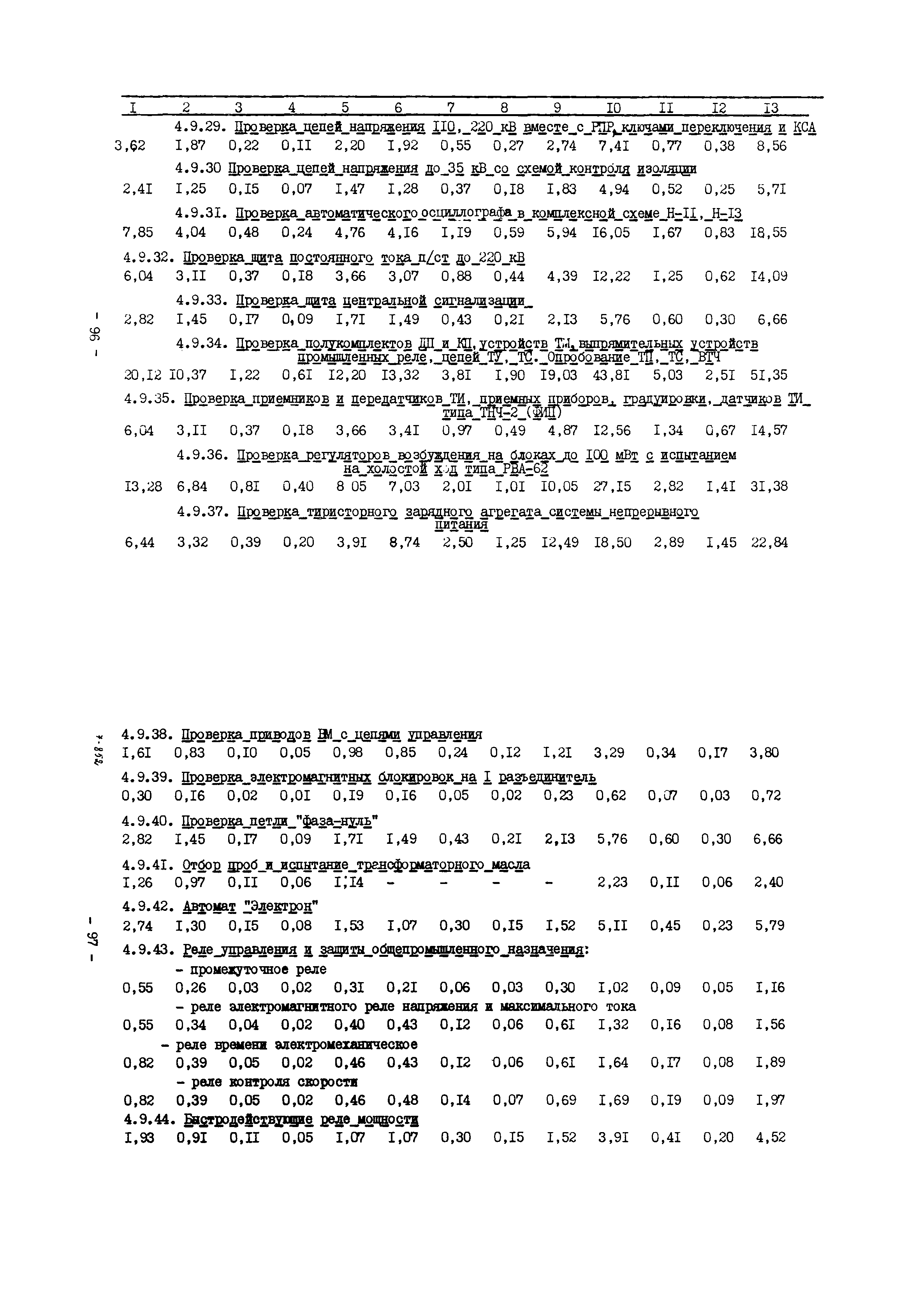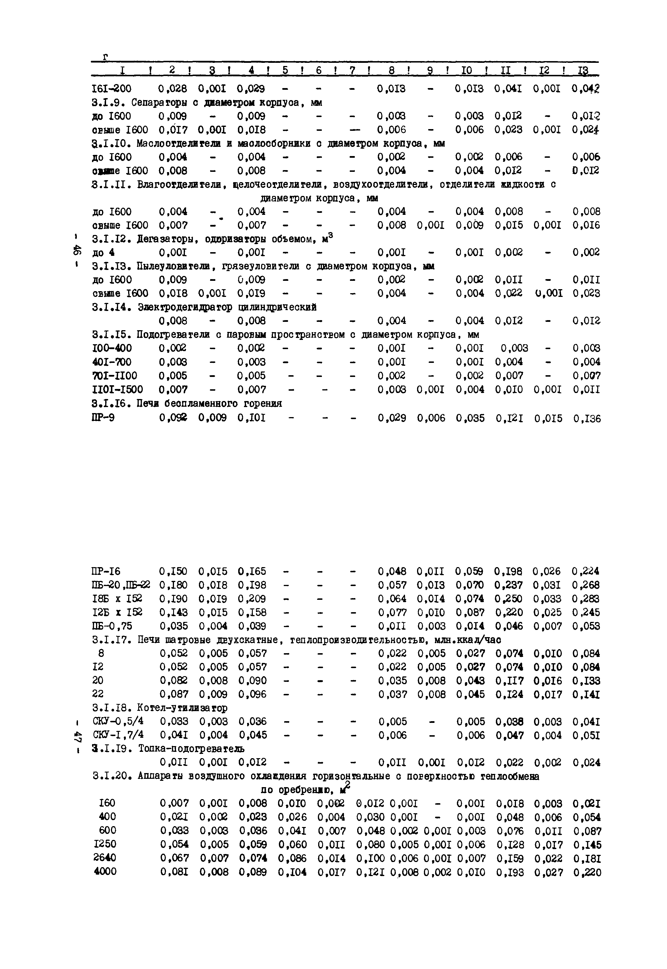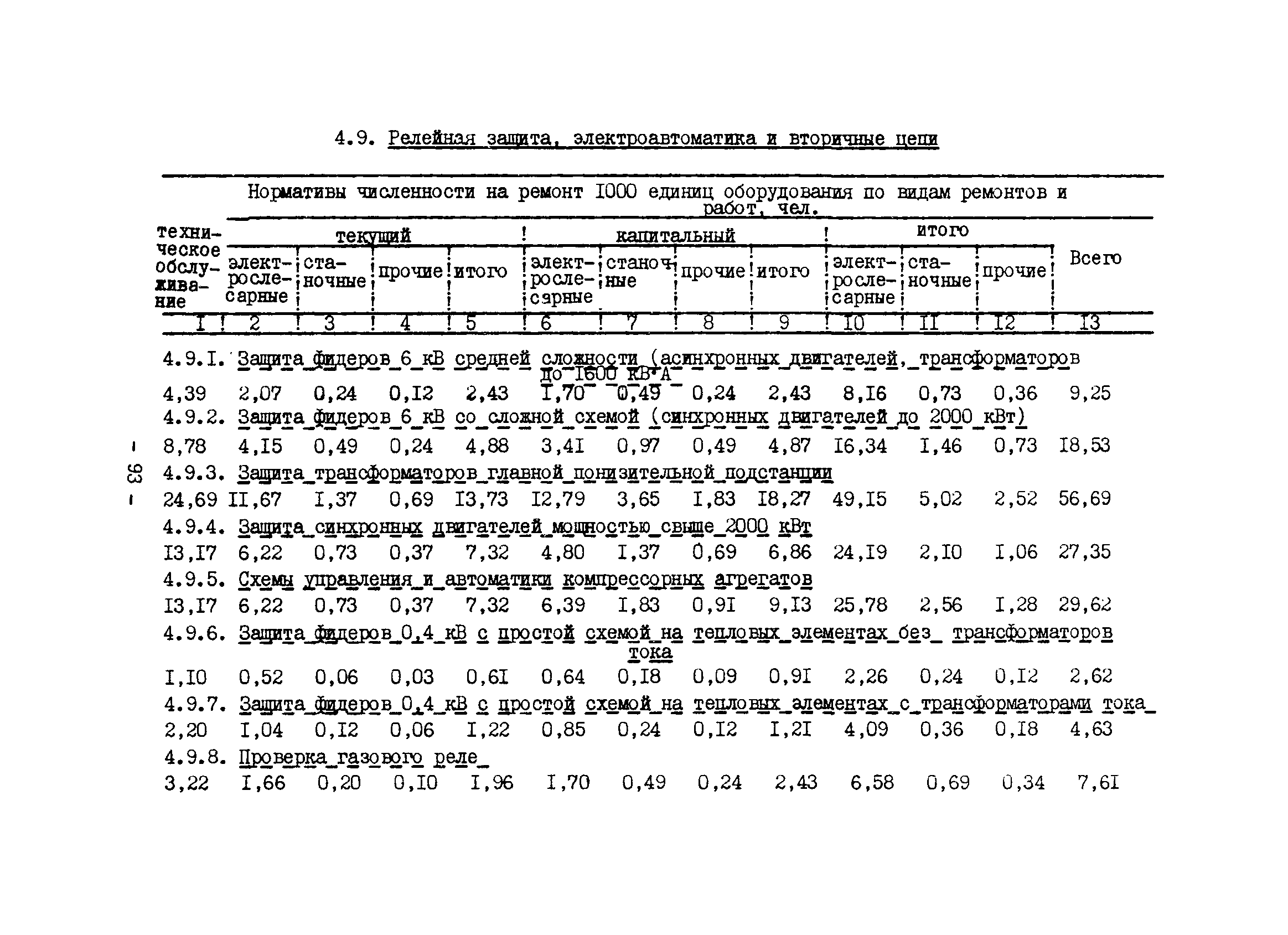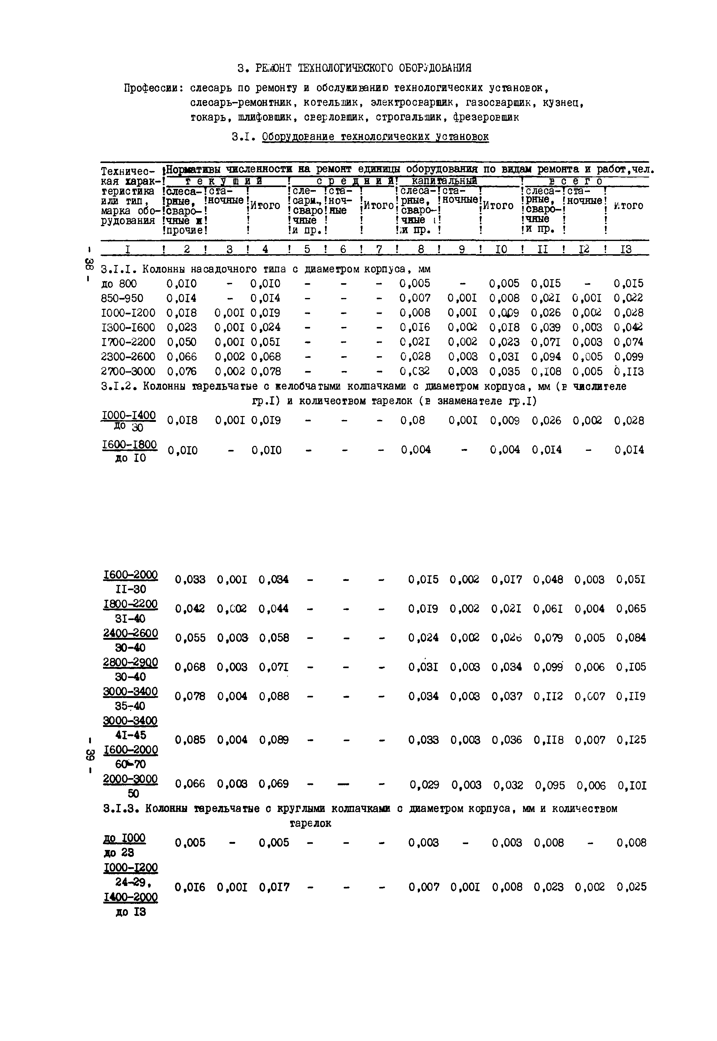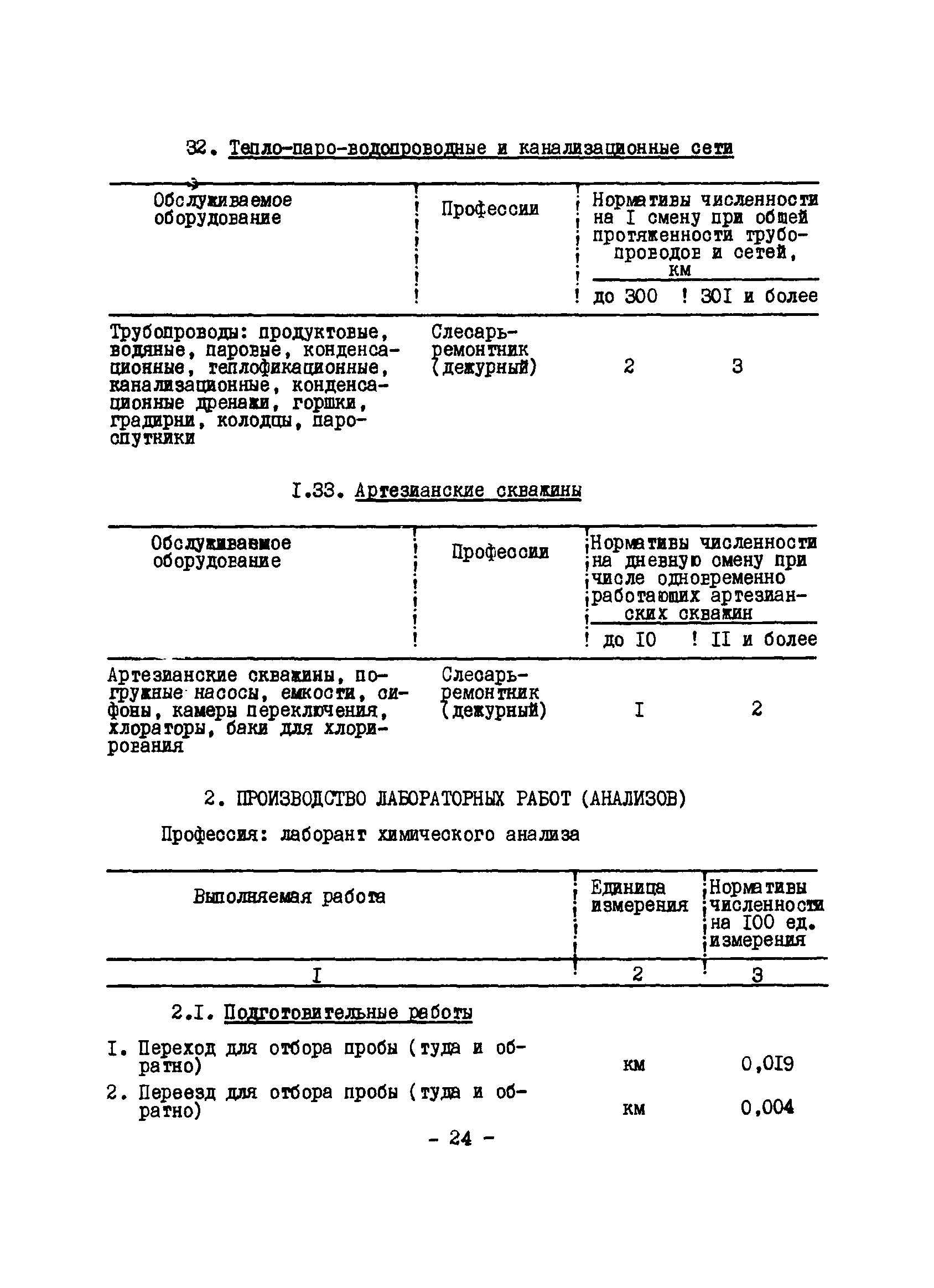 Нормативы численности рабочих газоперерабатывающих заводов нефтяной промышленности| Статус: | не действует | | Название рус.: | Нормативы численности рабочих газоперерабатывающих заводов нефтяной промышленности | | Дата добавления в базу: | 01.09.2013 | | Дата актуализации: | 01.01.2021 | | Область применения: | Нормативы численности предназначены для определения потребной численности и расстановки рабочих по рабочим местам на предприятиях ВПО “Союзнефтегазпереработка” Министерства нефтяной промышленности. | | Оглавление: | Общая часть 1. 0бслуживание технологического и вспомогательного оборудования 1.1. Установка по осушке и очистке газа 1.2. Установка низкотемпературной конденсации и осушке газа 1.3. Установка низкотемпературной конденсации и ректификация газа 1.4.Устаковка деэтанизации газа 1.5. Установка получения этана 1.6. Установка серочистки 1.7. Установка по выработке элементарной серы 1.8. Установка по переработке газового конденсата 1.9. Комбинированная установка комплексной подготовки нефти и газа 1.10. Маслоабсорбционная установка (МАУ) 1.11. Газофракционирующая установка (ГФУ) 1.12. Абсорбционно-газофракционирующая установка (АГФУ) 1.13.Уставовка по выработке гелия 1.14. Пропано-холодильная установка 1.15. Холодильная установка каскадного типа 1.16. Азотно-кислородная установка, станция 1.17. Аммиачно-холодильная установка 1.18. Установка получения пентана 1.19. Газораспределительные и газозамерные пункты 1.20. Товарные и сырьевые парки 1.21. Сливно-наливная эстакада 1.22. Компрессорные 1.23. Площадка охлаждения и сепарации 1.24. Комплексная технологическая установка, оснащенная комплексным импортным оборудованием фирмы «Флуор» 1.25. Пункт (установка) регенерации масел 1.26. Установка регенерации этиленгликоля 1.27. Насосные товарных парков, эстакад и водоснабжения 1.28. Очистные сооружения, ловушечное хозяйство 1.29. Реагентное хозяйство 1.30. Установки химической очистки и умягчение воды (оборотное водоснабжение и нейтрализация воды) 1.31. Парокотельные 1.32. Тепло-паро-водопроводные и канализационные сети 1.33. Артезианские скважины 2. Производство лабораторных работ (анализов) 2.1. Подготовительные работы 2.2. Анализы газов 2.3. Анализы бензина 2.4. Анализы масел и других нефтепродуктов 2.5. Анализы электролита 2.6. Анализы воды 2.7. Анализы серы 2.8. Анализы растворителей 2.9. Прочие работы 3 Ремонт технологического оборудования 3.1. Оборудование технологических установок 3.2. Компрессоры 3.3. Насосы 3.4. Котлы, вентиляторы 3.5. Емкости, резервуары 3.6. Грузоподъемное оборудование 3.7.Регенерационная установка 4 Ремонт оборудования 4.1. Электродвигатели 4.2. Трансформаторы 4.3. Аппараты напряжением выше 1000 В 4.4. Аппараты напряжением до 1000 В 4.5. Оборудование (элементы) электрического освещения 4.6. Электротехнологическое оборудование 4.7. Установки конденсаторные 4.8. Батареи аккумуляторные 4.9. Релейная защита, электроавтоматика и вторичные цепи 4.10. Электрические сети 4.11. Заземляющие устройства 4.12. Испытание защитных средств 4.13. Обслуживание электрооборудования технологических установок и объектов 5. Обслуживание и ремонт средств контроля и автоматики 5.1. Приборы системы «АУС» и «СТАРТ» 5.2. Приборы для измерения температуры 5.3. Приборы расхода и уровня, диафрагмы, регуляторы 5.4. Приборы для измерения давления, регуляторы давления 5.5. Приборы качества, газосигнализаторы 5.6. Исполнительные мех