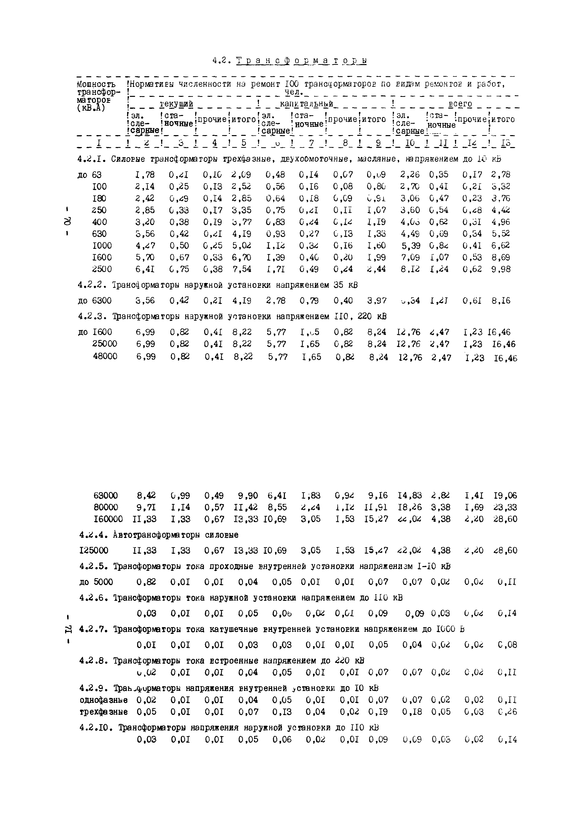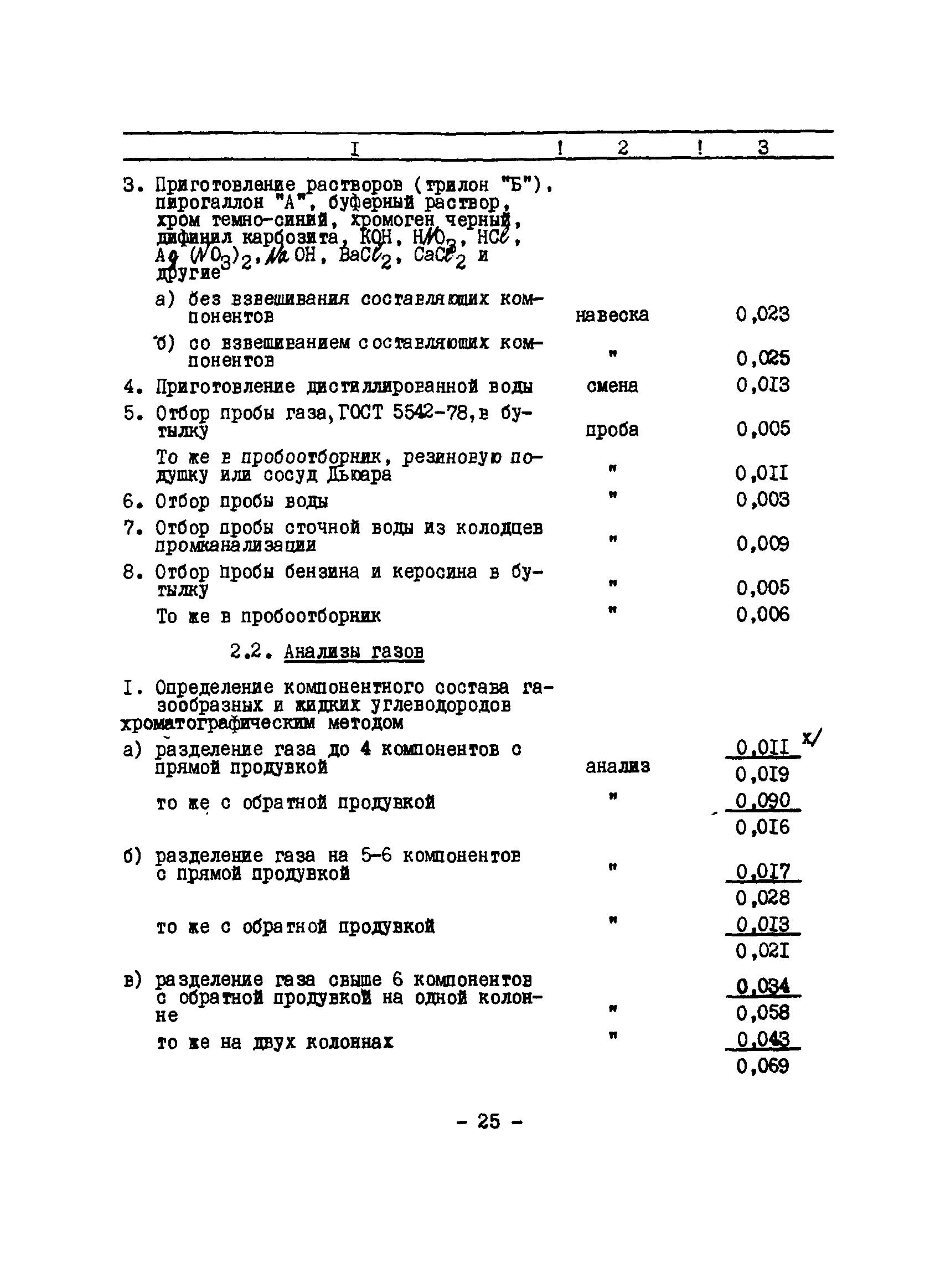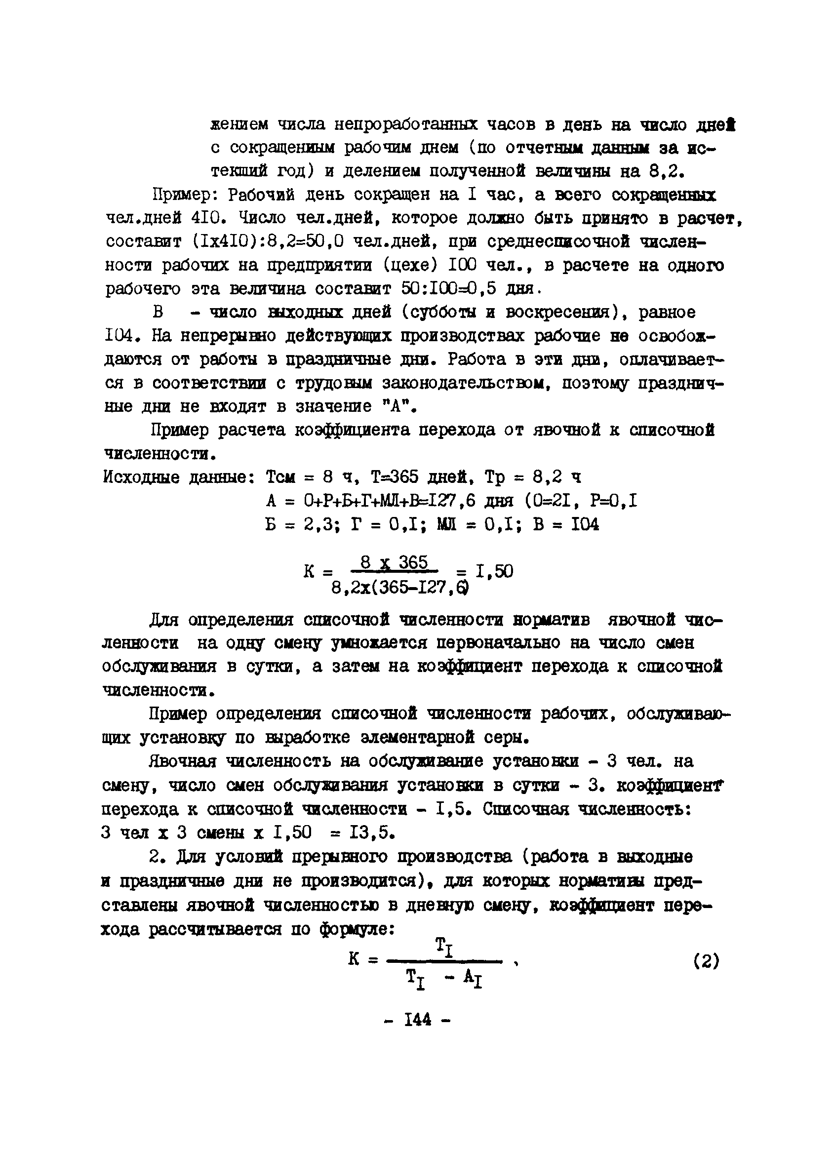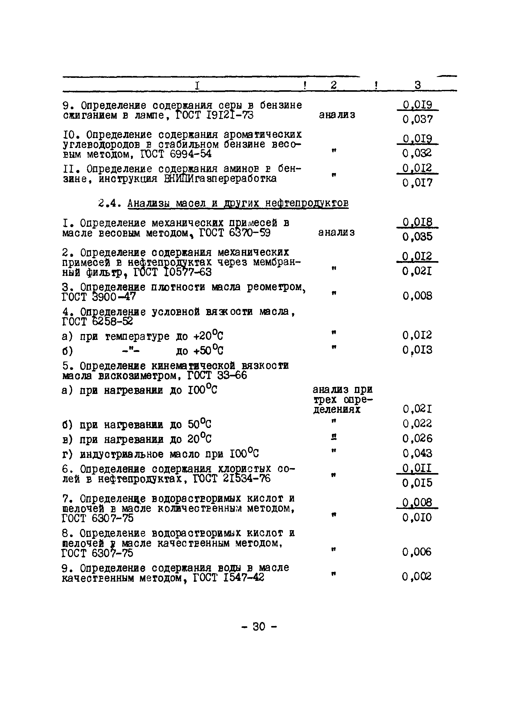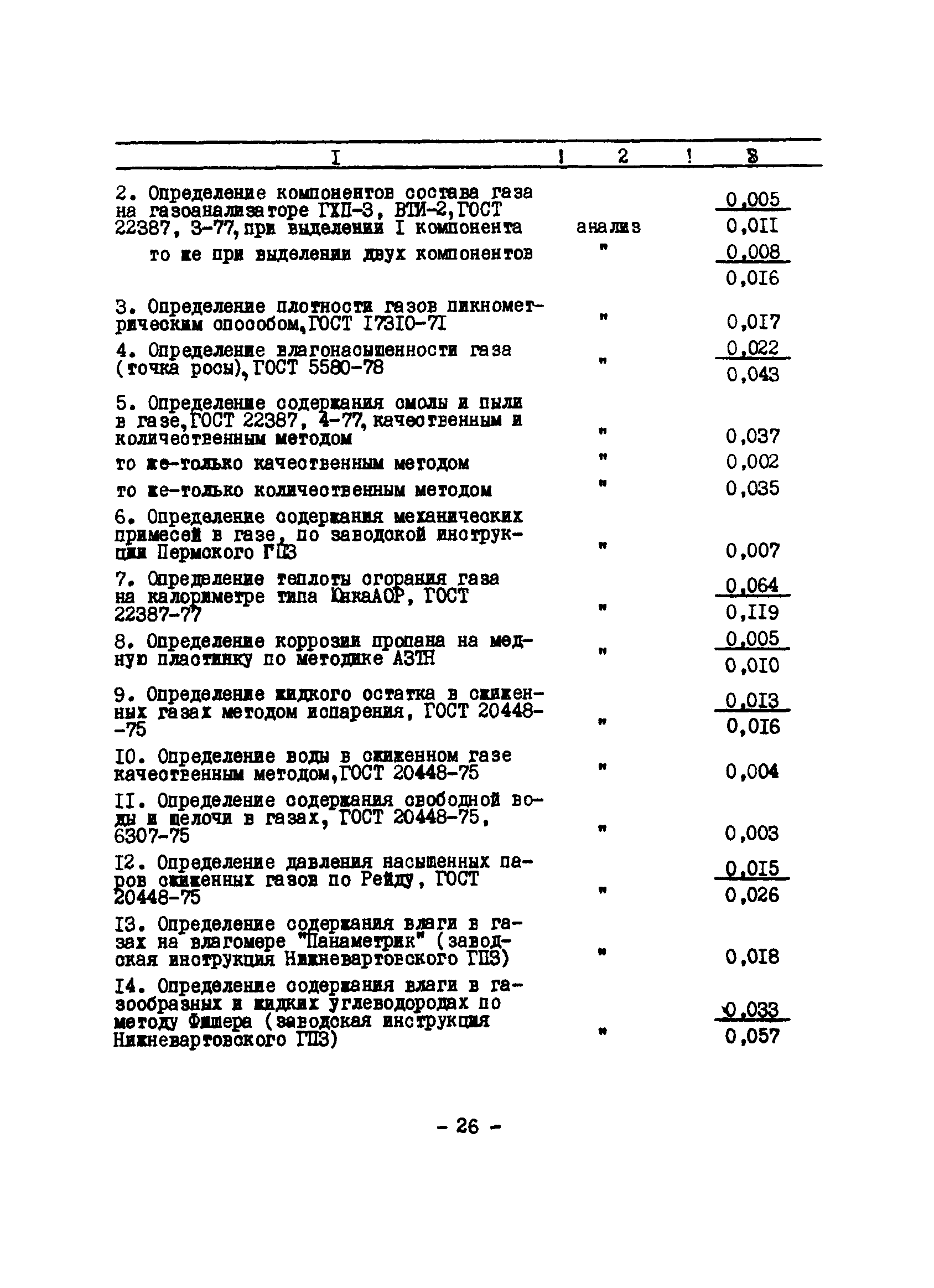 Нормативы численности рабочих газоперерабатывающих заводов нефтяной промышленности| Статус: | не действует | | Название рус.: | Нормативы численности рабочих газоперерабатывающих заводов нефтяной промышленности | | Дата добавления в базу: | 01.09.2013 | | Дата актуализации: | 01.01.2021 | | Область применения: | Нормативы численности предназначены для определения потребной численности и расстановки рабочих по рабочим местам на предприятиях ВПО “Союзнефтегазпереработка” Министерства нефтяной промышленности. | | Оглавление: | Общая часть 1. 0бслуживание технологического и вспомогательного оборудования 1.1. Установка по осушке и очистке газа 1.2. Установка низкотемпературной конденсации и осушке газа 1.3. Установка низкотемпературной конденсации и ректификация газа 1.4.Устаковка деэтанизации газа 1.5. Установка получения этана 1.6. Установка серочистки 1.7. Установка по выработке элементарной серы 1.8. Установка по переработке газового конденсата 1.9. Комбинированная установка комплексной подготовки нефти и газа 1.10. Маслоабсорбционная установка (МАУ) 1.11. Газофракционирующая установка (ГФУ) 1.12. Абсорбционно-газофракционирующая установка (АГФУ) 1.13.Уставовка по выработке гелия 1.14. Пропано-холодильная установка 1.15. Холодильная установка каскадного типа 1.16. Азотно-кислородная установка, станция 1.17. Аммиачно-холодильная установка 1.18. Установка получения пентана 1.19. Газораспределительные и газозамерные пункты 1.20. Товарные и сырьевые парки 1.21. Сливно-наливная эстакада 1.22. Компрессорные 1.23. Площадка охлаждения и сепарации 1.24. Комплексная технологическая установка, оснащенная комплексным импортным оборудованием фирмы «Флуор» 1.25. Пункт (установка) регенерации масел 1.26. Установка регенерации этиленгликоля 1.27. Насосные товарных парков, эстакад и водоснабжения 1.28. Очистные сооружения, ловушечное хозяйство 1.29. Реагентное хозяйство 1.30. Установки химической очистки и умягчение воды (оборотное водоснабжение и нейтрализация воды) 1.31. Парокотельные 1.32. Тепло-паро-водопроводные и канализационные сети 1.33. Артезианские скважины 2. Производство лабораторных работ (анализов) 2.1. Подготовительные работы 2.2. Анализы газов 2.3. Анализы бензина 2.4. Анализы масел и других нефтепродуктов 2.5. Анализы электролита 2.6. Анализы воды 2.7. Анализы серы 2.8. Анализы растворителей 2.9. Прочие работы 3 Ремонт технологического оборудования 3.1. Оборудование технологических установок 3.2. Компрессоры 3.3. Насосы 3.4. Котлы, вентиляторы 3.5. Емкости, резервуары 3.6. Грузоподъемное оборудование 3.7.Регенерационная установка 4 Ремонт оборудования 4.1. Электродвигатели 4.2. Трансформаторы 4.3. Аппараты напряжением выше 1000 В 4.4. Аппараты напряжением до 1000 В 4.5. Оборудование (элементы) электрического освещения 4.6. Электротехнологическое оборудование 4.7. Установки конденсаторные 4.8. Батареи аккумуляторные 4.9. Релейная защита, электроавтоматика и вторичные цепи 4.10. Электрические сети 4.11. Заземляющие устройства 4.12. Испытание защитных средств 4.13. Обслуживание электрооборудования технологических установок и объектов 5. Обслуживание и ремонт средств контроля и автоматики 5.1. Приборы системы «АУС» и «СТАРТ» 5.2. Приборы для измерения температуры 5.3. Приборы расхода и уровня, диафрагмы, регуляторы 5.4. Приборы для измерения давления, регуляторы давления 5.5. Приборы качества, газосигнализаторы 5.6. Исполнительные мех