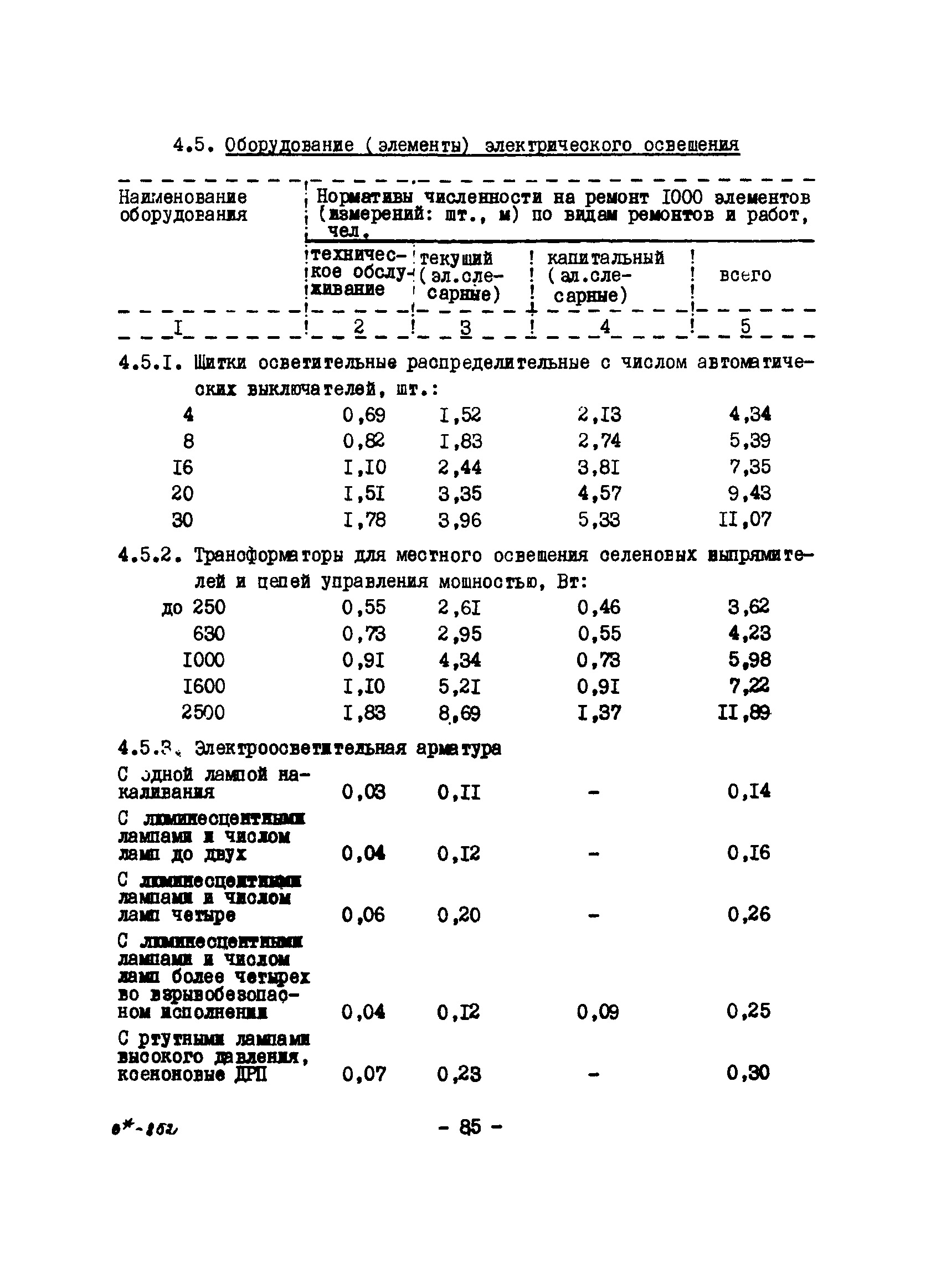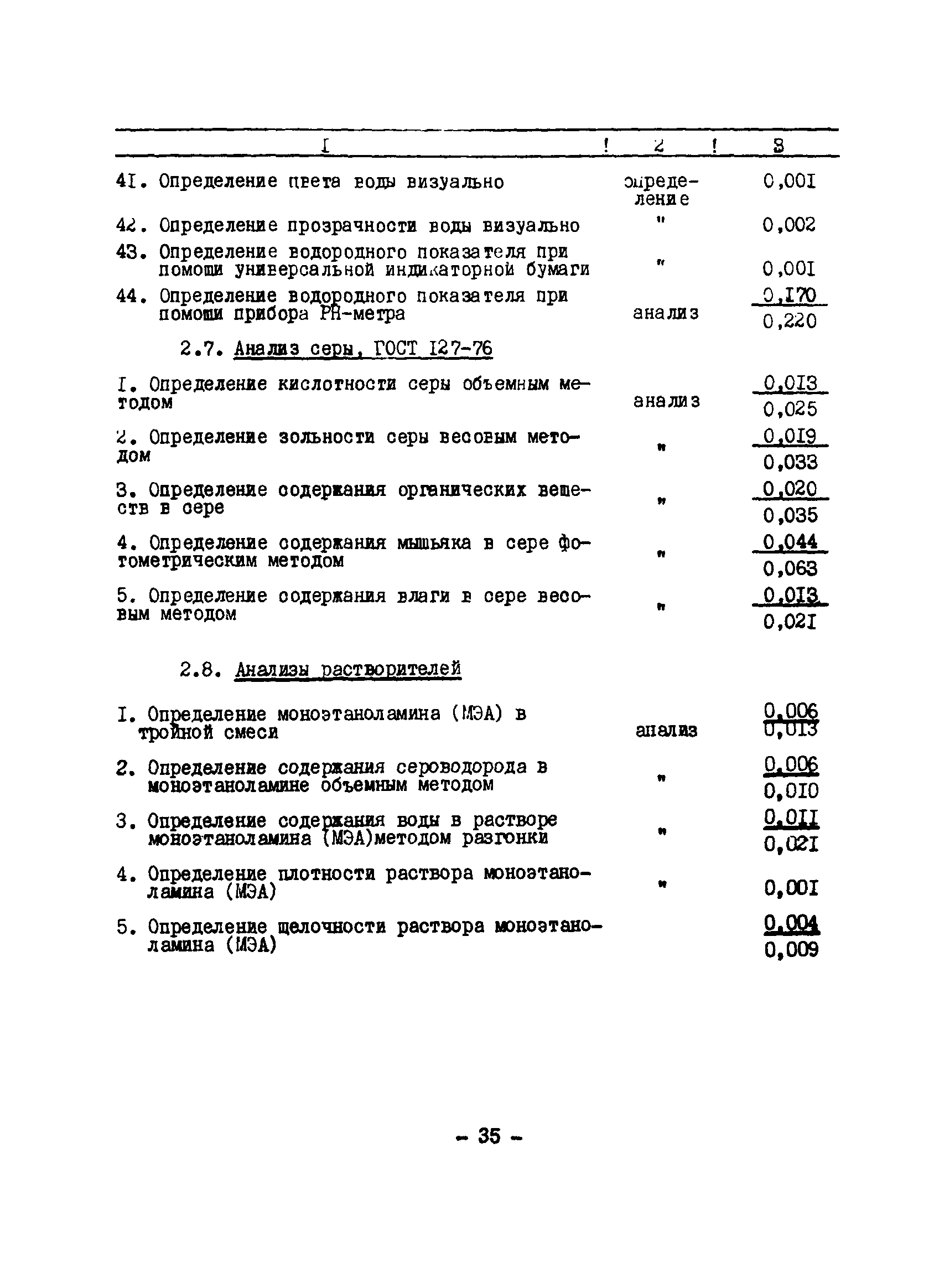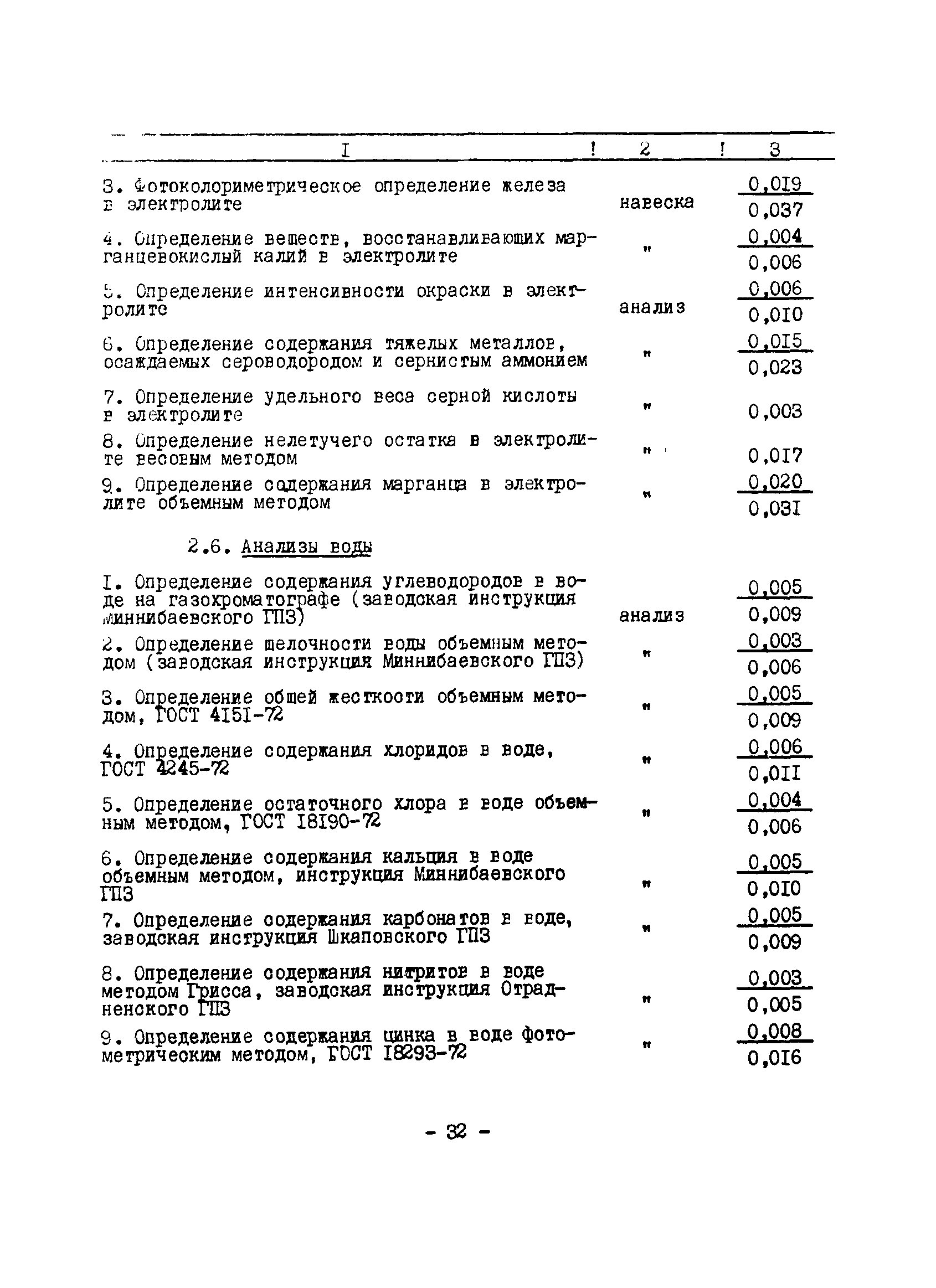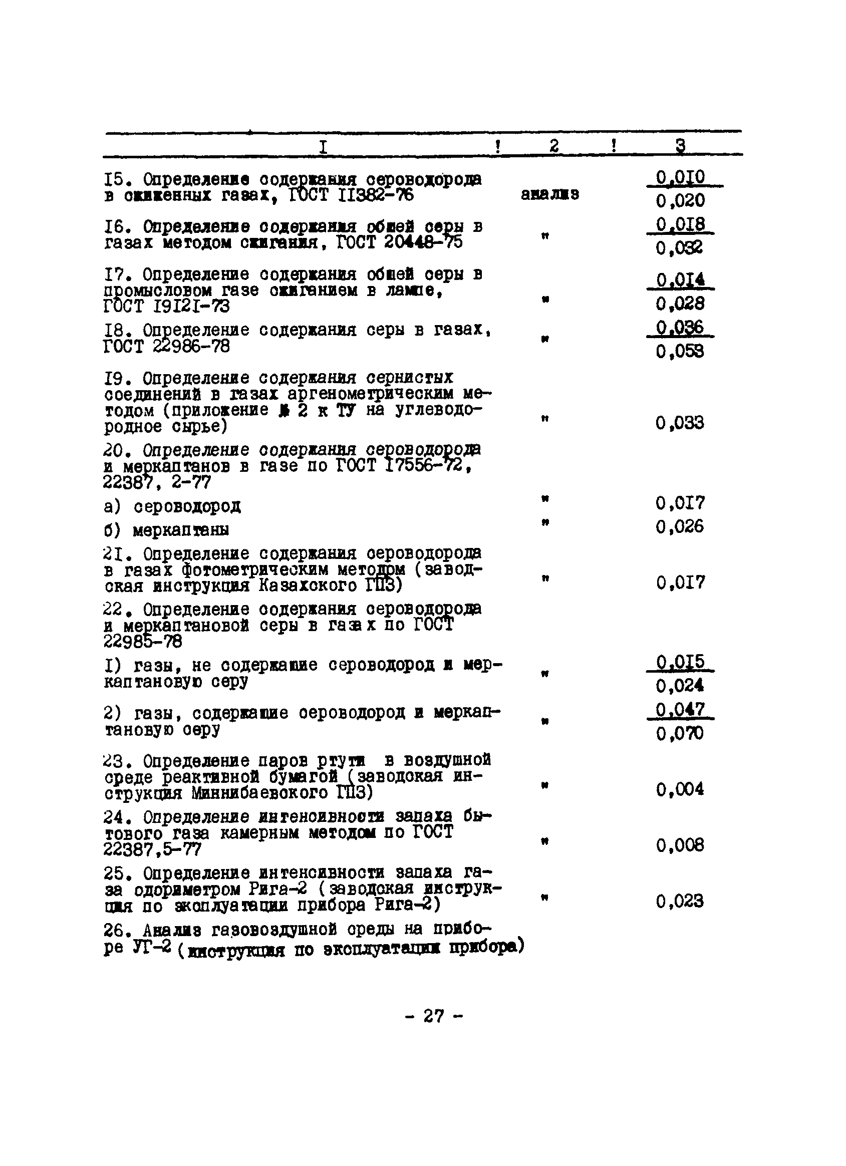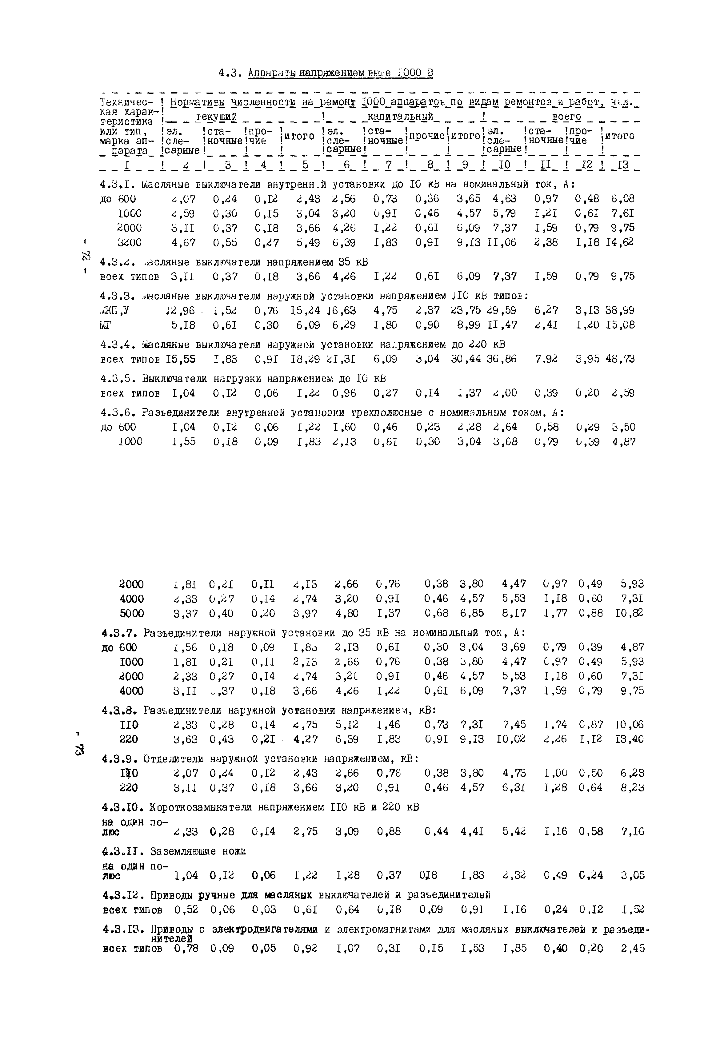 Нормативы численности рабочих газоперерабатывающих заводов нефтяной промышленности| Статус: | не действует | | Название рус.: | Нормативы численности рабочих газоперерабатывающих заводов нефтяной промышленности | | Дата добавления в базу: | 01.09.2013 | | Дата актуализации: | 01.01.2021 | | Область применения: | Нормативы численности предназначены для определения потребной численности и расстановки рабочих по рабочим местам на предприятиях ВПО “Союзнефтегазпереработка” Министерства нефтяной промышленности. | | Оглавление: | Общая часть 1. 0бслуживание технологического и вспомогательного оборудования 1.1. Установка по осушке и очистке газа 1.2. Установка низкотемпературной конденсации и осушке газа 1.3. Установка низкотемпературной конденсации и ректификация газа 1.4.Устаковка деэтанизации газа 1.5. Установка получения этана 1.6. Установка серочистки 1.7. Установка по выработке элементарной серы 1.8. Установка по переработке газового конденсата 1.9. Комбинированная установка комплексной подготовки нефти и газа 1.10. Маслоабсорбционная установка (МАУ) 1.11. Газофракционирующая установка (ГФУ) 1.12. Абсорбционно-газофракционирующая установка (АГФУ) 1.13.Уставовка по выработке гелия 1.14. Пропано-холодильная установка 1.15. Холодильная установка каскадного типа 1.16. Азотно-кислородная установка, станция 1.17. Аммиачно-холодильная установка 1.18. Установка получения пентана 1.19. Газораспределительные и газозамерные пункты 1.20. Товарные и сырьевые парки 1.21. Сливно-наливная эстакада 1.22. Компрессорные 1.23. Площадка охлаждения и сепарации 1.24. Комплексная технологическая установка, оснащенная комплексным импортным оборудованием фирмы «Флуор» 1.25. Пункт (установка) регенерации масел 1.26. Установка регенерации этиленгликоля 1.27. Насосные товарных парков, эстакад и водоснабжения 1.28. Очистные сооружения, ловушечное хозяйство 1.29. Реагентное хозяйство 1.30. Установки химической очистки и умягчение воды (оборотное водоснабжение и нейтрализация воды) 1.31. Парокотельные 1.32. Тепло-паро-водопроводные и канализационные сети 1.33. Артезианские скважины 2. Производство лабораторных работ (анализов) 2.1. Подготовительные работы 2.2. Анализы газов 2.3. Анализы бензина 2.4. Анализы масел и других нефтепродуктов 2.5. Анализы электролита 2.6. Анализы воды 2.7. Анализы серы 2.8. Анализы растворителей 2.9. Прочие работы 3 Ремонт технологического оборудования 3.1. Оборудование технологических установок 3.2. Компрессоры 3.3. Насосы 3.4. Котлы, вентиляторы 3.5. Емкости, резервуары 3.6. Грузоподъемное оборудование 3.7.Регенерационная установка 4 Ремонт оборудования 4.1. Электродвигатели 4.2. Трансформаторы 4.3. Аппараты напряжением выше 1000 В 4.4. Аппараты напряжением до 1000 В 4.5. Оборудование (элементы) электрического освещения 4.6. Электротехнологическое оборудование 4.7. Установки конденсаторные 4.8. Батареи аккумуляторные 4.9. Релейная защита, электроавтоматика и вторичные цепи 4.10. Электрические сети 4.11. Заземляющие устройства 4.12. Испытание защитных средств 4.13. Обслуживание электрооборудования технологических установок и объектов 5. Обслуживание и ремонт средств контроля и автоматики 5.1. Приборы системы «АУС» и «СТАРТ» 5.2. Приборы для измерения температуры 5.3. Приборы расхода и уровня, диафрагмы, регуляторы 5.4. Приборы для измерения давления, регуляторы давления 5.5. Приборы качества, газосигнализаторы 5.6. Исполнительные мех