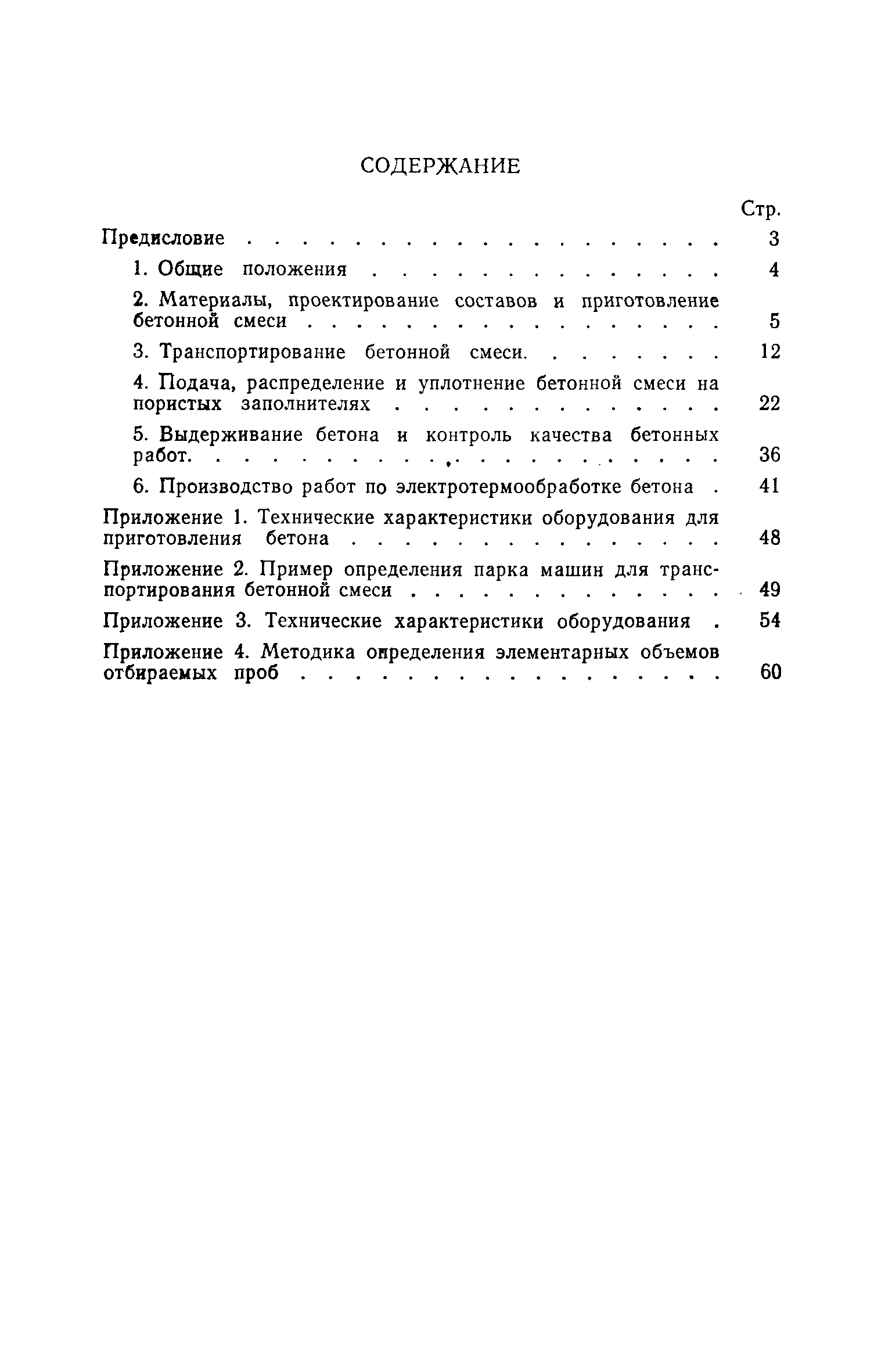 | Оглавление: | Предисловие 1. Общие положения 2. Материалы, проектирование составов и приготовление бетонной смеси 3. Транспортирование бетонной смеси 4. Подача, распределение и уплотнение бетонной смеси на пористых заполнителях 5. Выдерживание бетона и контроль качества бетонных работ 6. Производство работ по электротермообработке бетона Приложение 1. Технические характеристики оборудования для приготовления бетона Приложение 2. Пример определения парка машин для транспортирования бетонной смеси Приложение 3. Технические характеристики оборудования Приложение 4. Методика определения элементарных объемов отбираемых проб |