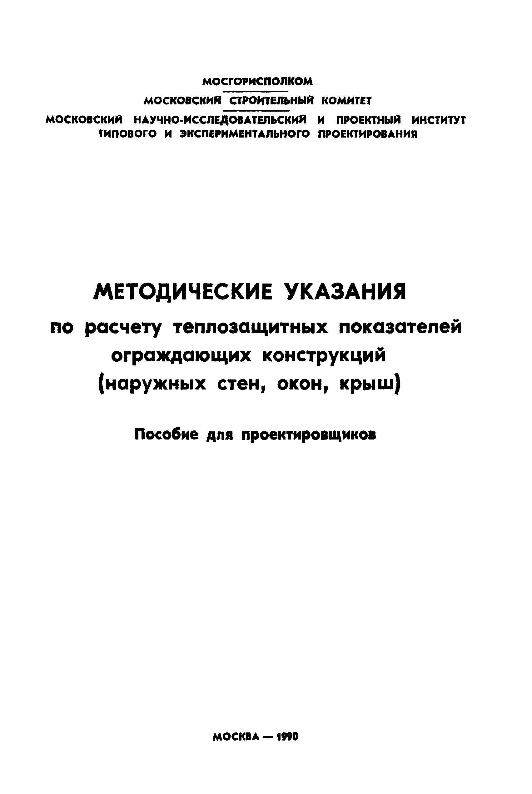 | Название рус.: | Методические указания по расчету теплозащитных показателей ограждающих конструкций (наружных стен, окон, крыш). Пособие для проектировщиков |