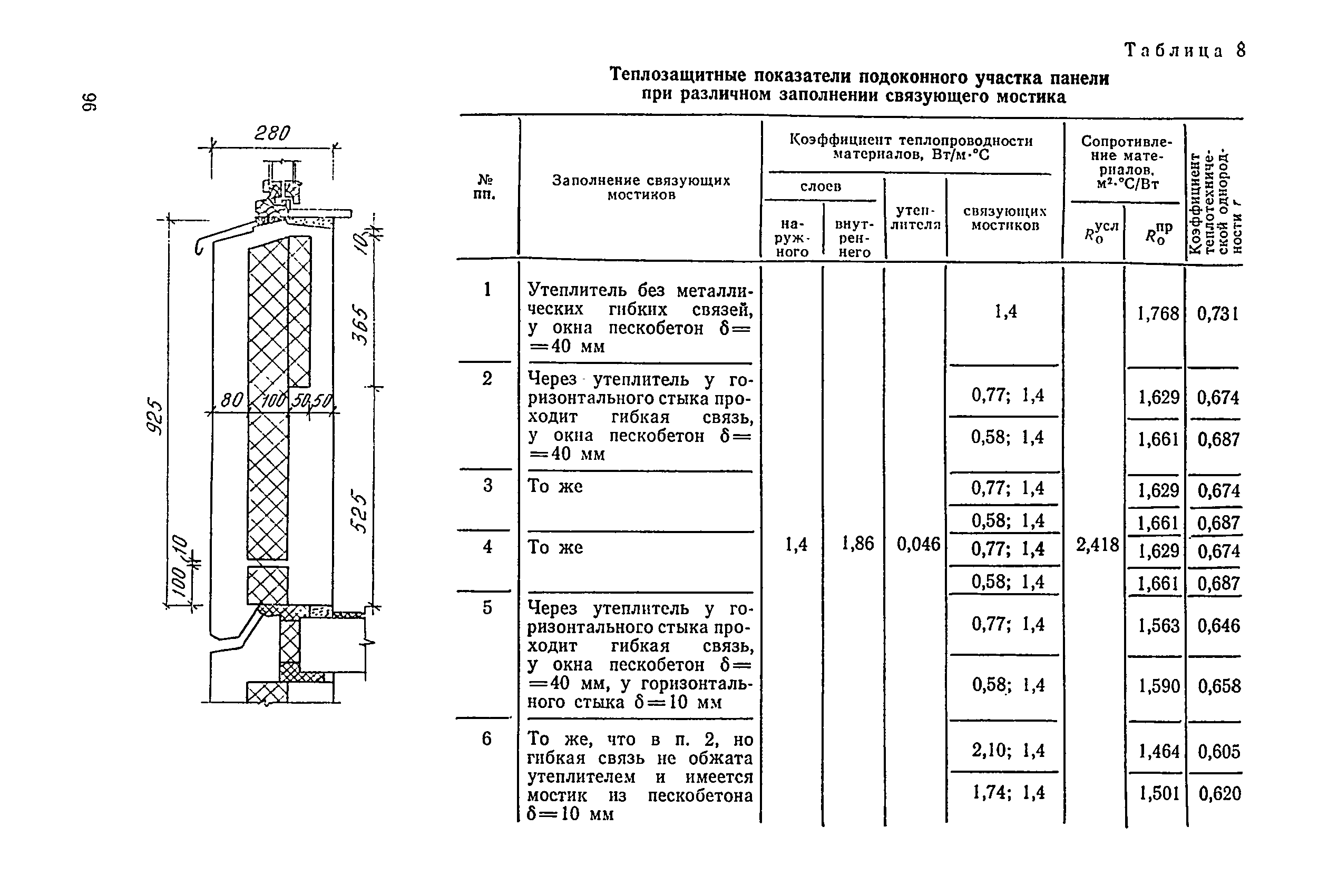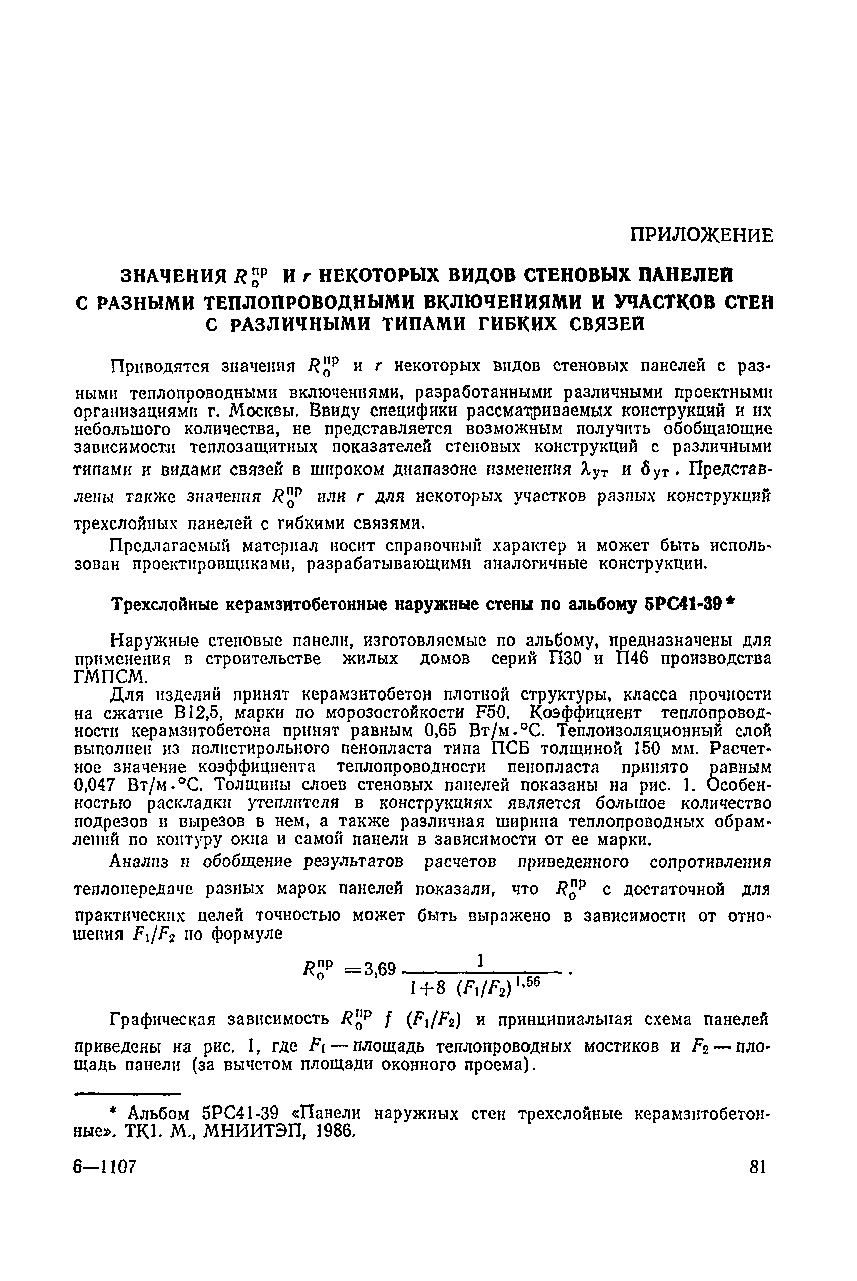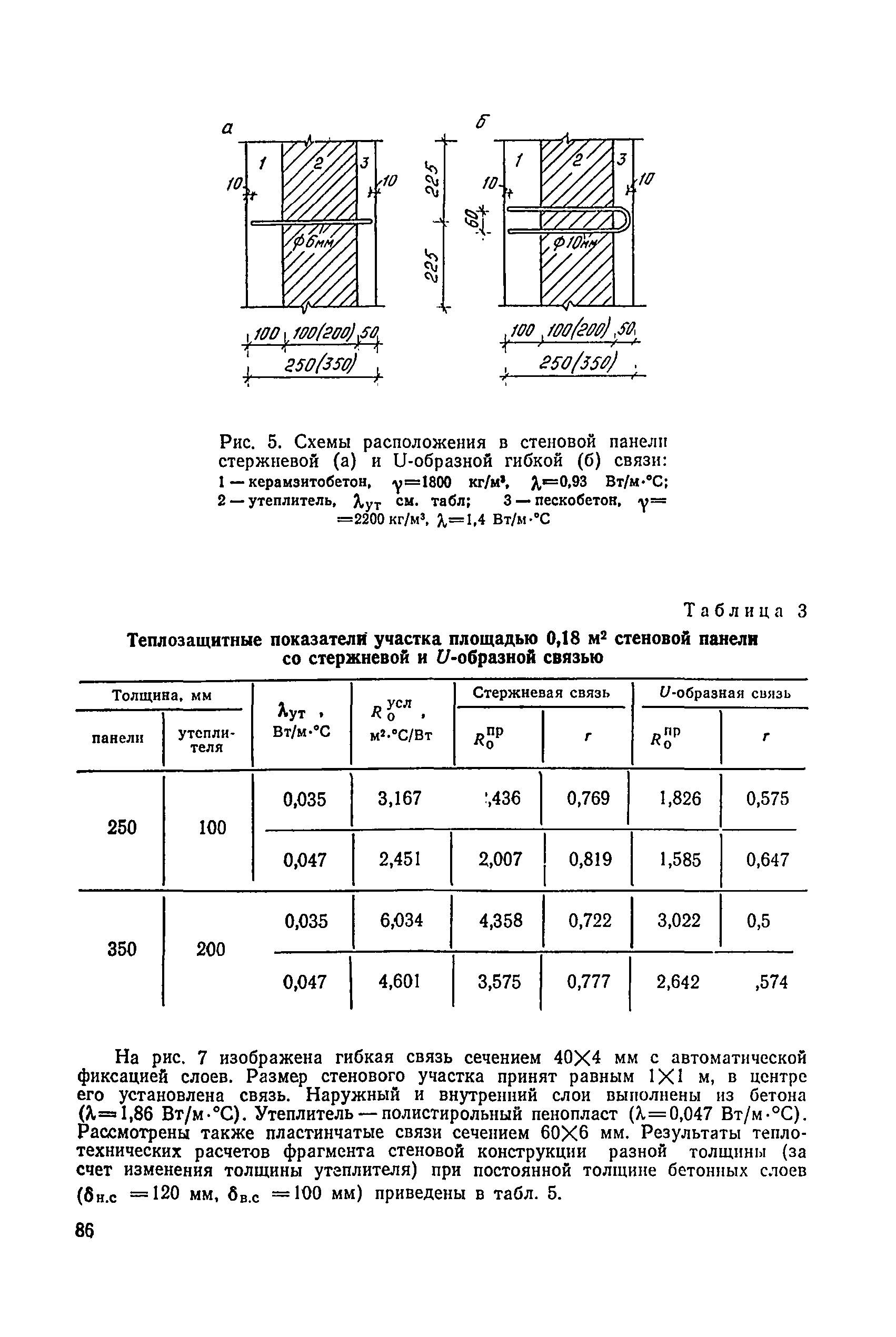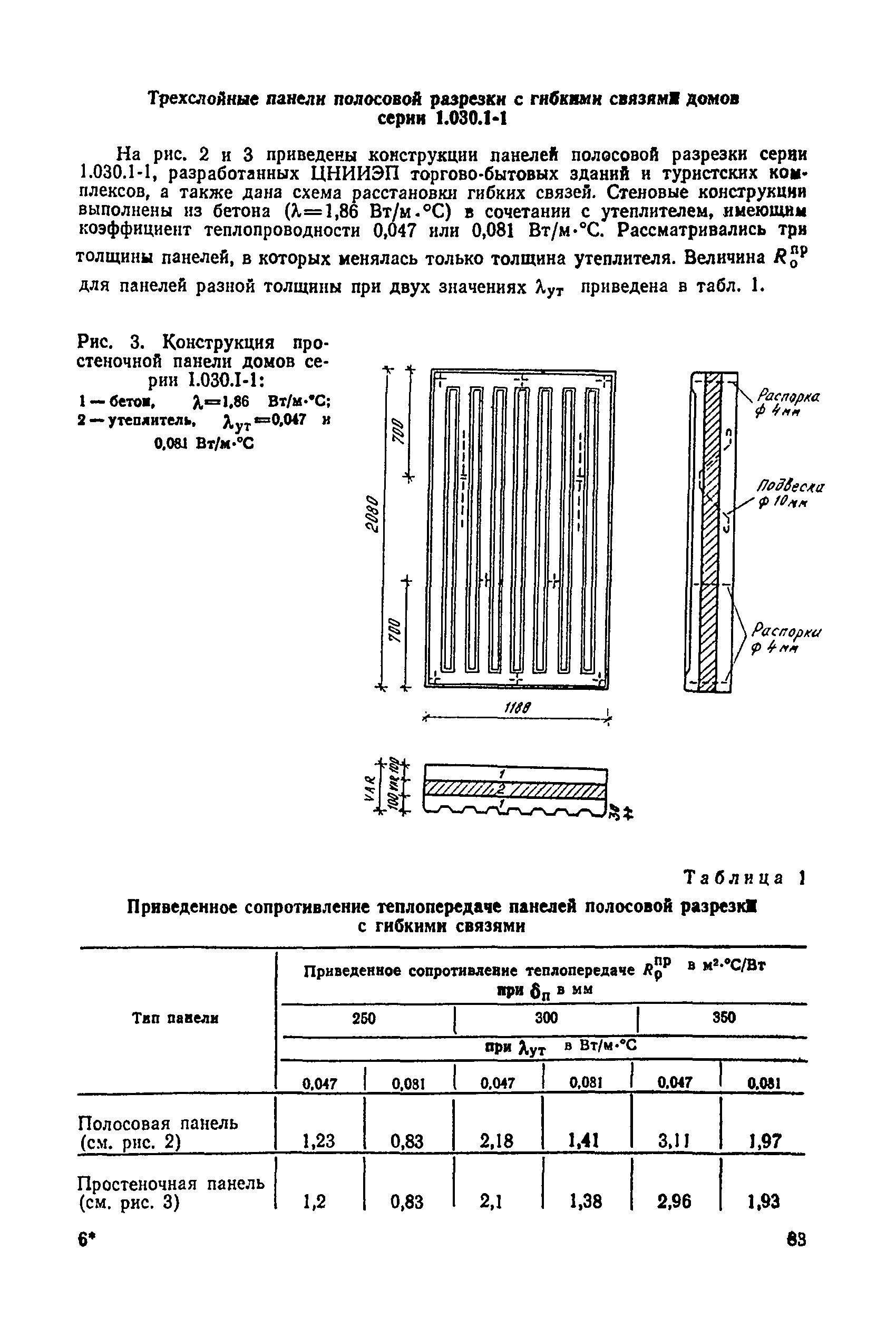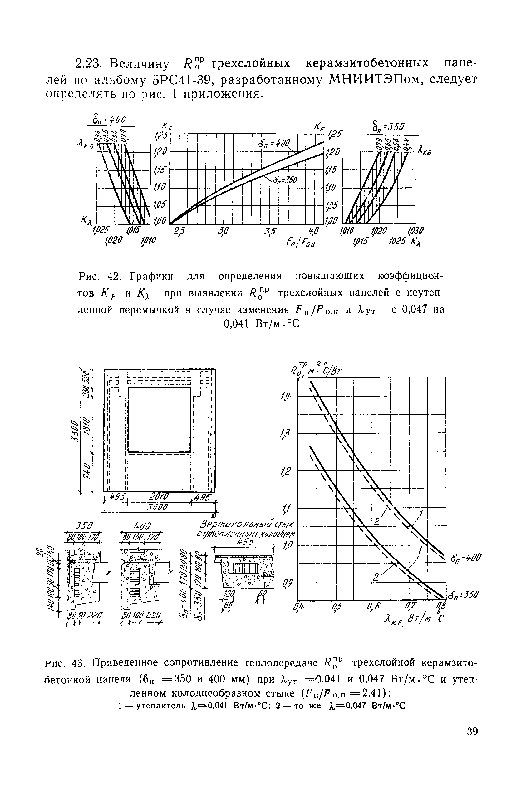| Оглавление: | 1. Общие положения 2. Приведенное сопротивление теплопередаче стеновых ограждающих конструкций Однослойные наружные стеновые конструкции Кирпичная кладка Однослойные панели с оконным проемом Однослойные панели полосовой разрезки (ленточные панели) Многослойные наружные стеновые конструкции Трехслойные бетонные панели с оконным проемом и обрамляющими ребрами Трехслойные керамзитобетонные панели с оконным проемом и обрамляющими ребрами Трехслойные керамзитобетонные панели полосовой разрезки (ленточные панели) с обрамляющими ребрами Трехслойные панели с гибкими связями 3. Определение минимальной температуры внутренней поверхности ограждения Теплопроводные включения характерного типа Определение минимальной температуры в узлах консольного типа однослойных панелей 4. Приведенное сопротивление теплопередаче оконных блоков 5. Теплотехнические расчеты крыши с теплым чердаком Расчет крыши с теплым чердаком при стационарном температурном режиме Методика теплотехнического расчета Расчет нестационарного температурного режима теплого чердака Приложение. Значения R и r некоторых видов стеновых панелей с разными теплопроводным включениями и участков стен с различными типами гибких связей Трехслойные керамзитобетонные наружные стены по альбому 5РС41-39 Трехслойные панели полосовой разрезки с гибкими связями домов серии 1.030.1-1 Трехслойные панели полосовой разрезки для плодоовощных баз Различные виды гибких связей Гибкие связи, совмещенные с каркасом панели, применяемые в наружных панелях домов серии П44/17 |