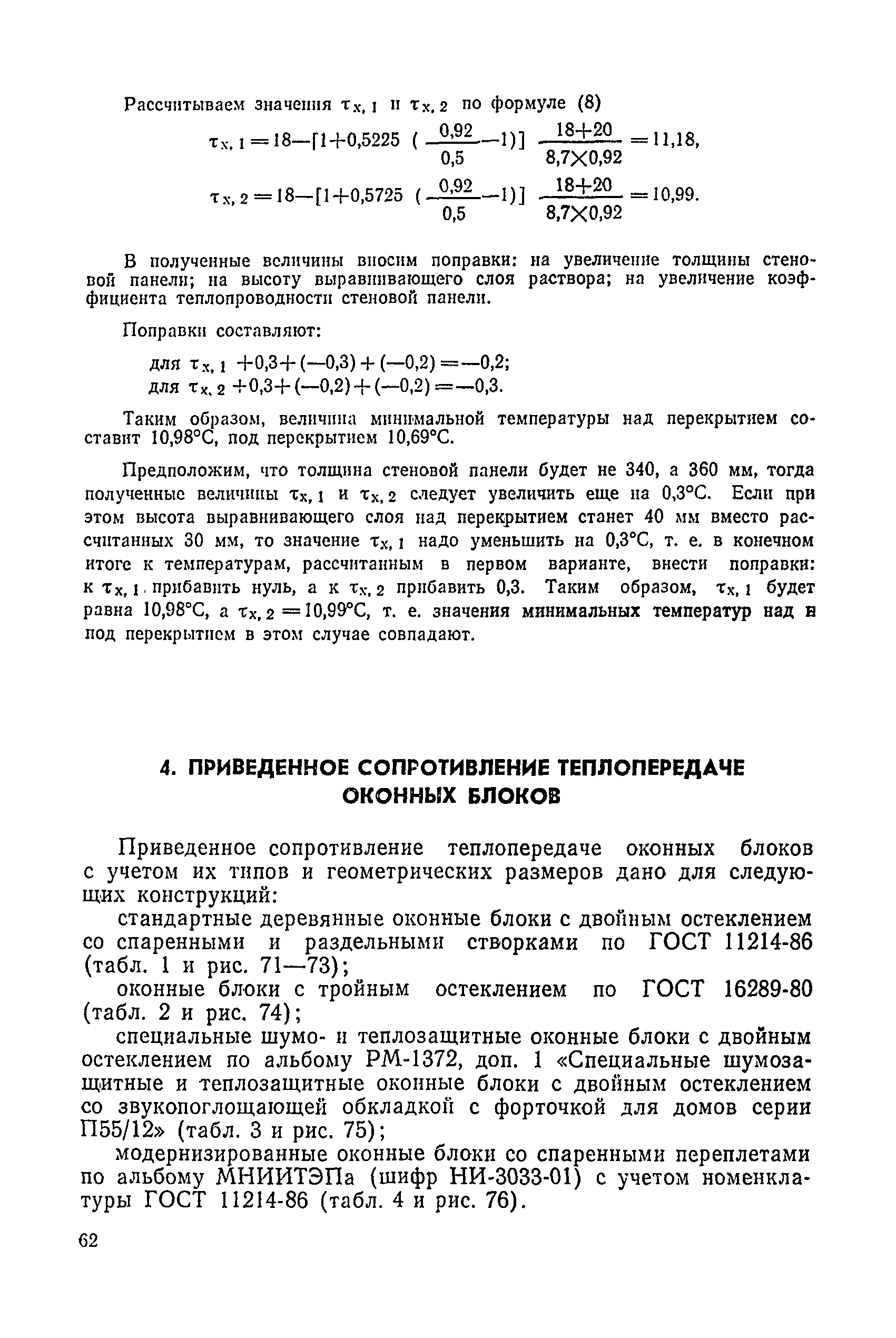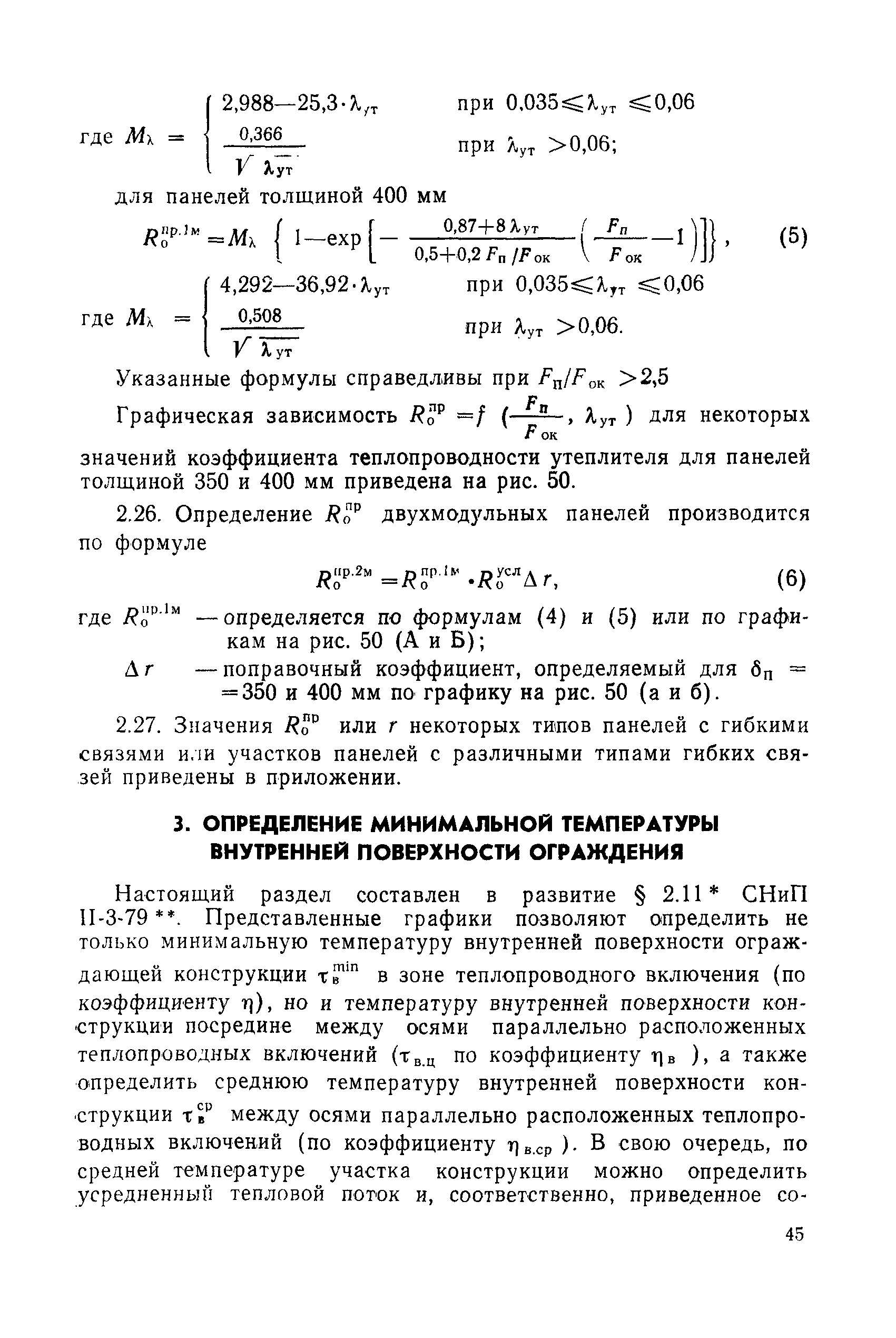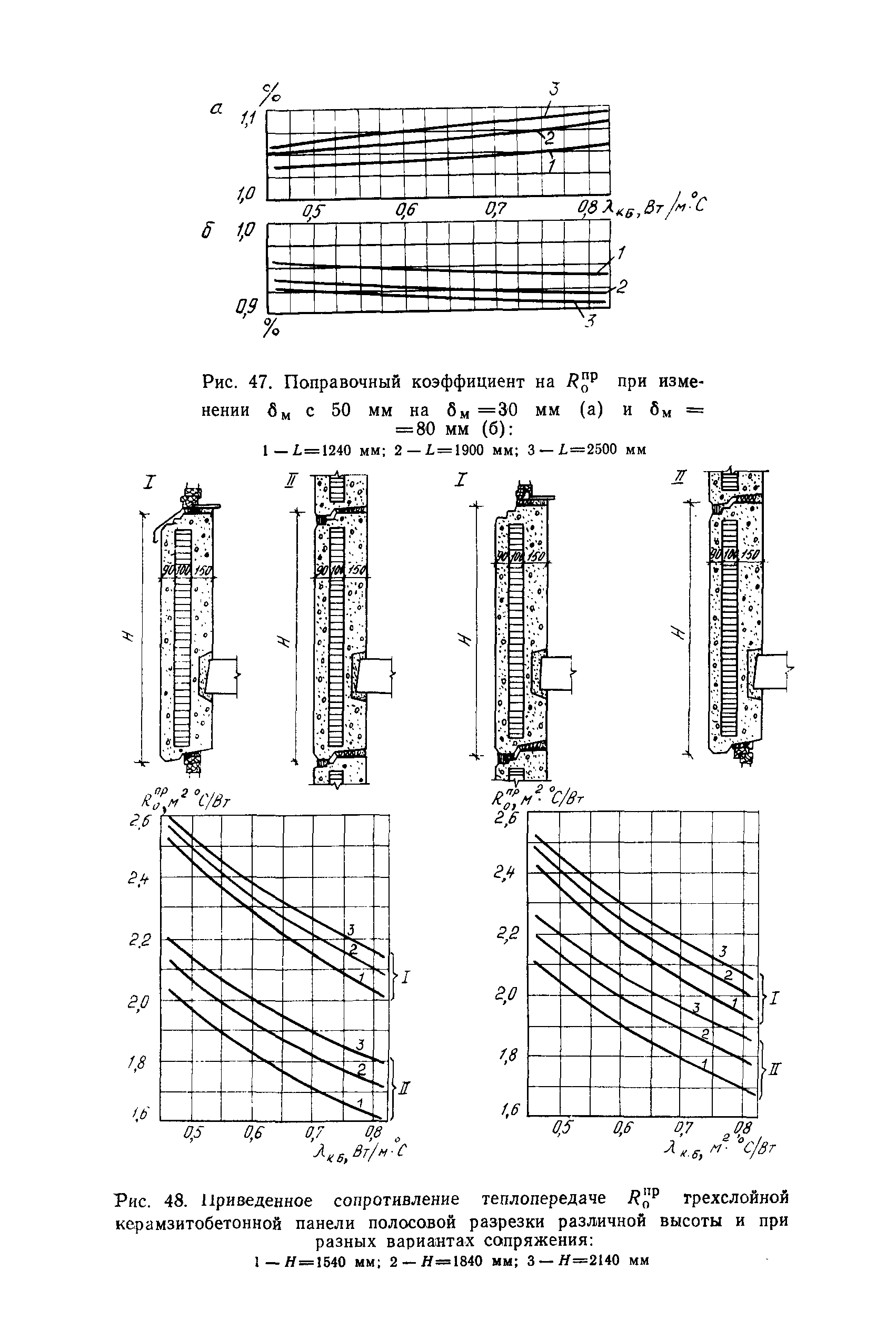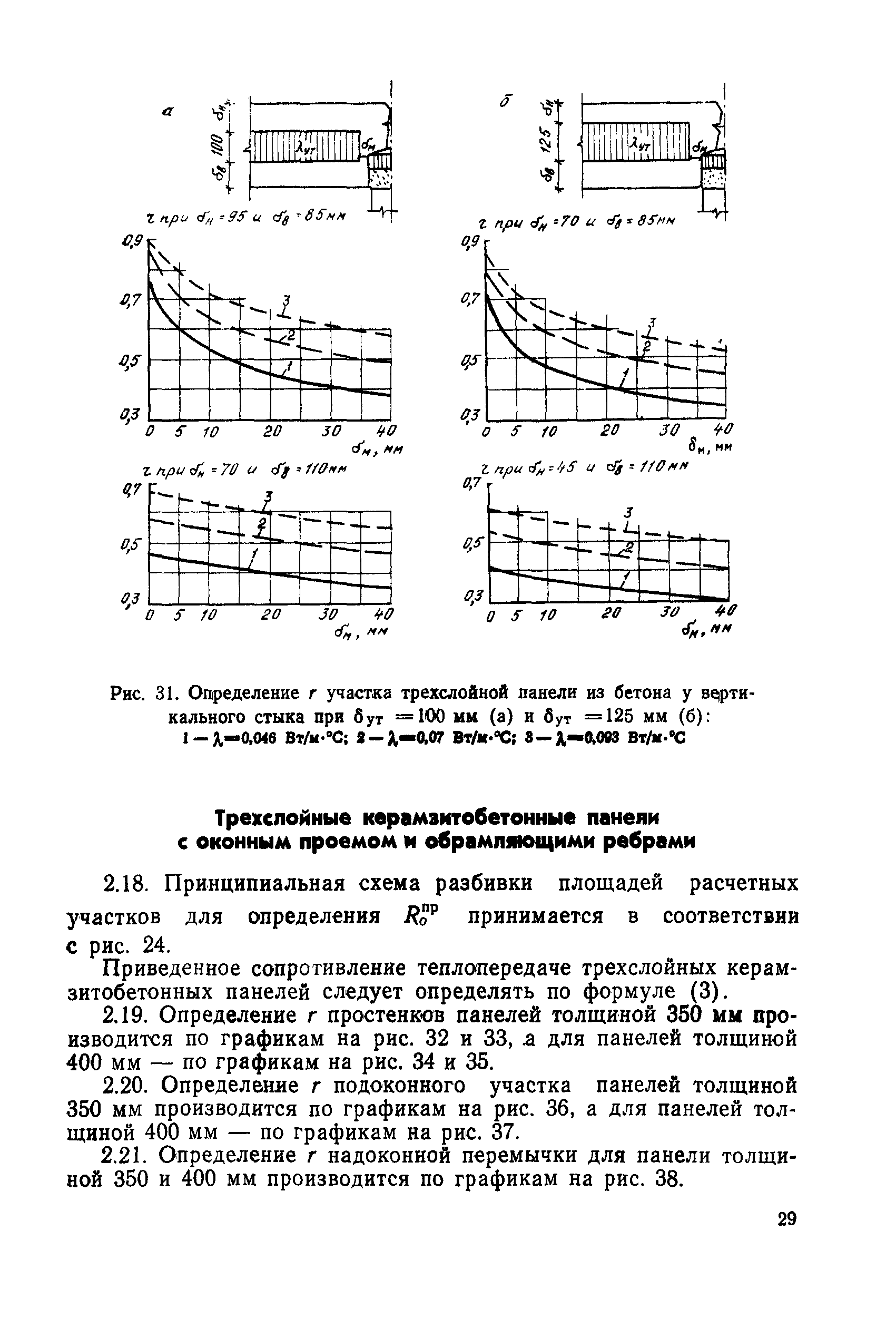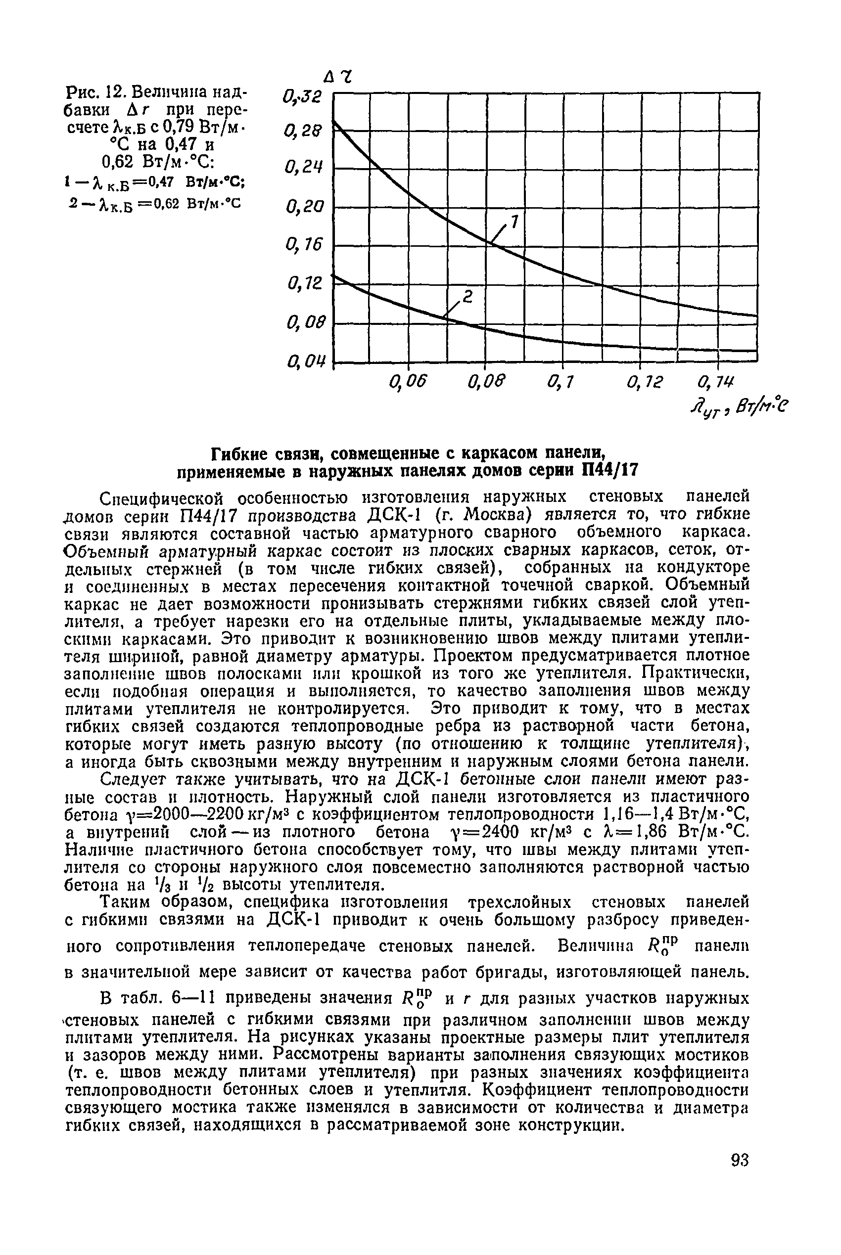 | Оглавление: | 1. Общие положения 2. Приведенное сопротивление теплопередаче стеновых ограждающих конструкций Однослойные наружные стеновые конструкции Кирпичная кладка Однослойные панели с оконным проемом Однослойные панели полосовой разрезки (ленточные панели) Многослойные наружные стеновые конструкции Трехслойные бетонные панели с оконным проемом и обрамляющими ребрами Трехслойные керамзитобетонные панели с оконным проемом и обрамляющими ребрами Трехслойные керамзитобетонные панели полосовой разрезки (ленточные панели) с обрамляющими ребрами Трехслойные панели с гибкими связями 3. Определение минимальной температуры внутренней поверхности ограждения Теплопроводные включения характерного типа Определение минимальной температуры в узлах консольного типа однослойных панелей 4. Приведенное сопротивление теплопередаче оконных блоков 5. Теплотехнические расчеты крыши с теплым чердаком Расчет крыши с теплым чердаком при стационарном температурном режиме Методика теплотехнического расчета Расчет нестационарного температурного режима теплого чердака Приложение. Значения R и r некоторых видов стеновых панелей с разными теплопроводным включениями и участков стен с различными типами гибких связей Трехслойные керамзитобетонные наружные стены по альбому 5РС41-39 Трехслойные панели полосовой разрезки с гибкими связями домов серии 1.030.1-1 Трехслойные панели полосовой разрезки для плодоовощных баз Различные виды гибких связей Гибкие связи, совмещенные с каркасом панели, применяемые в наружных панелях домов серии П44/17 |