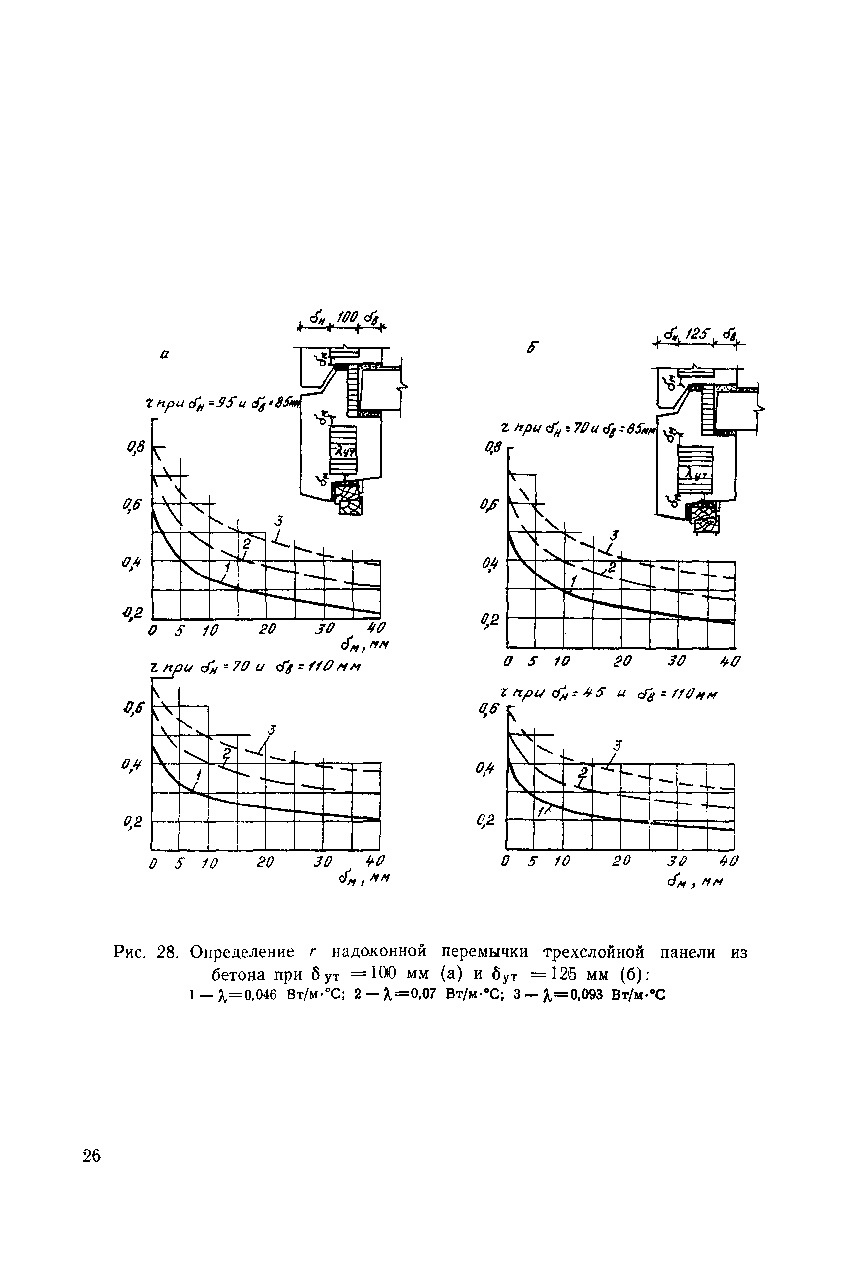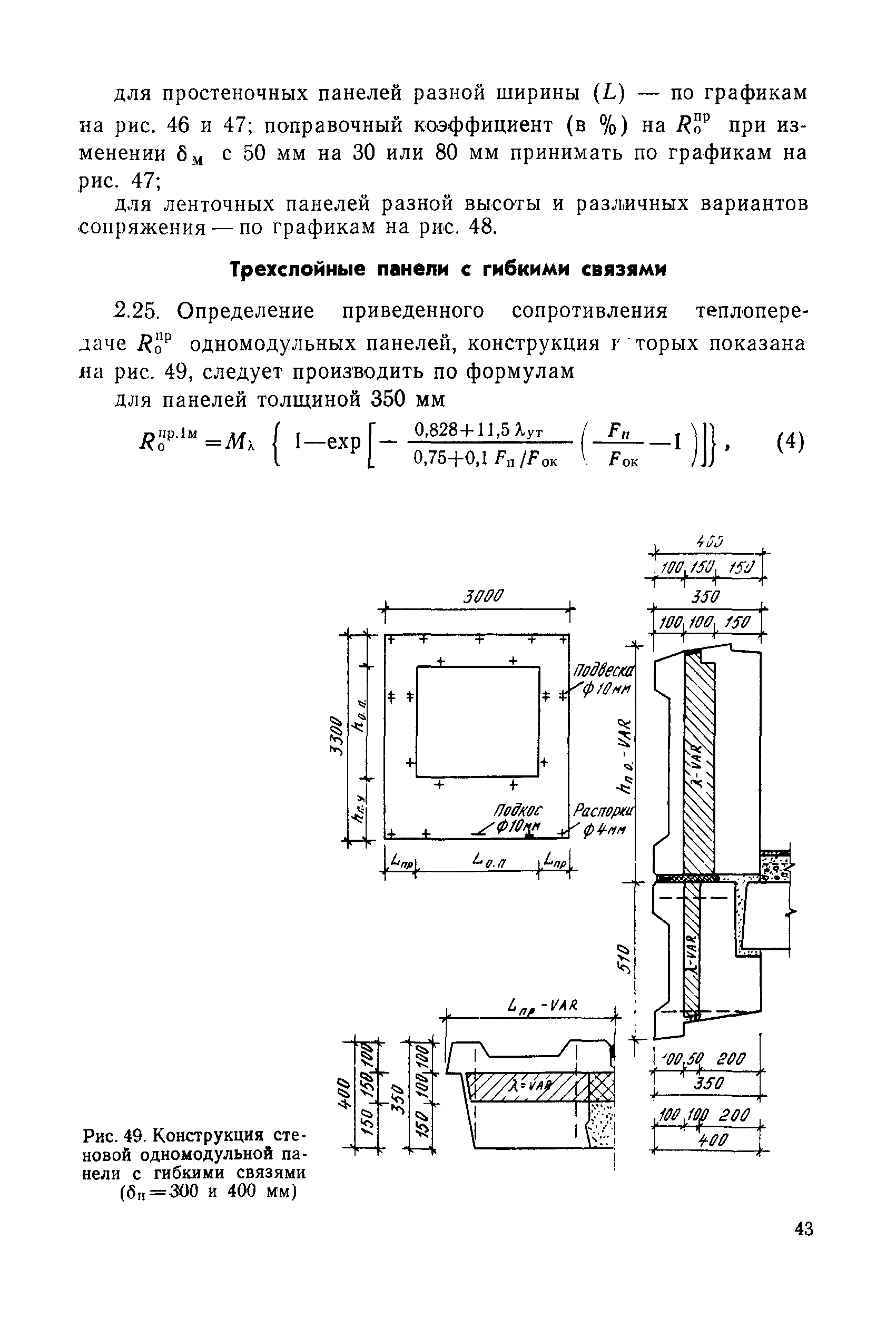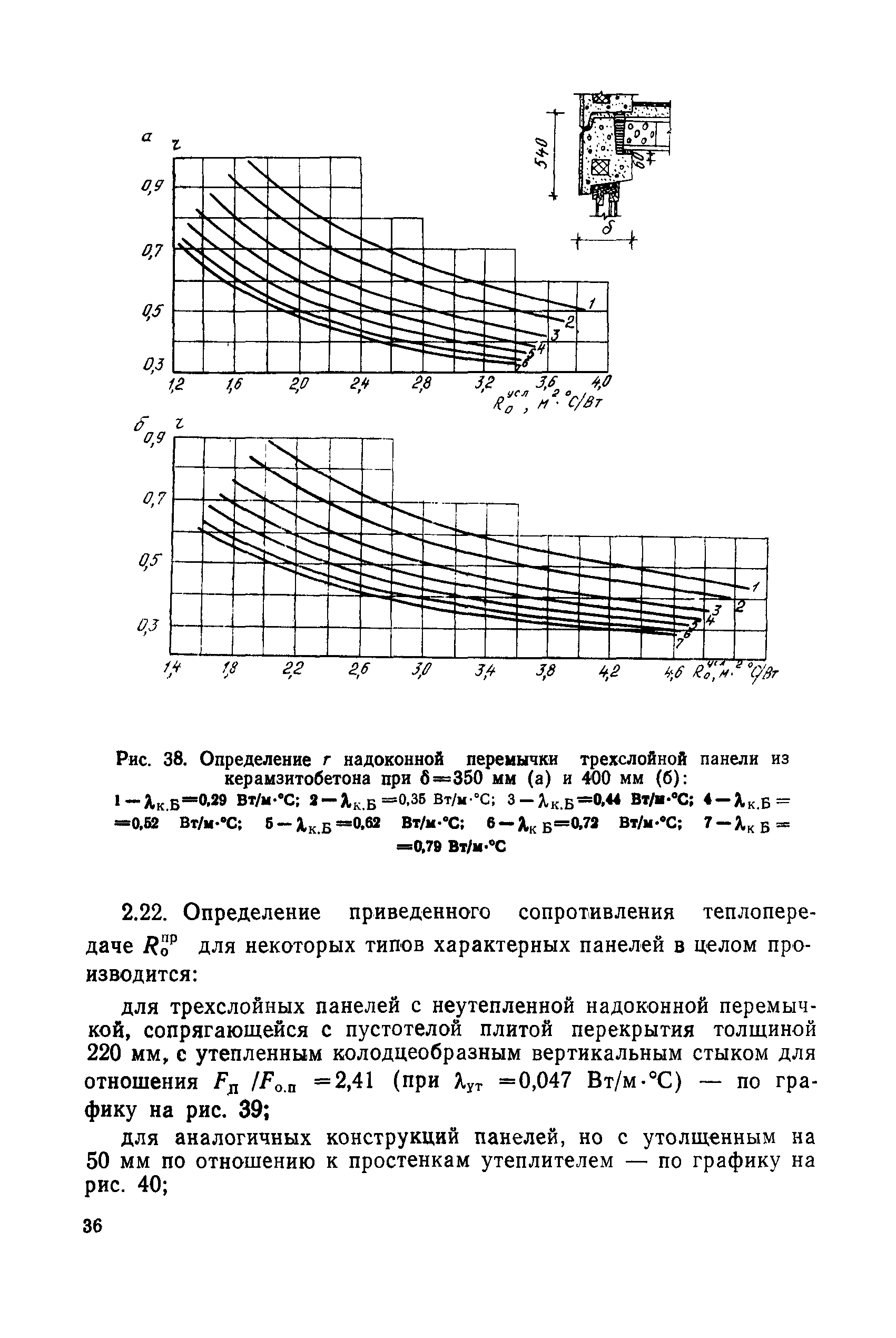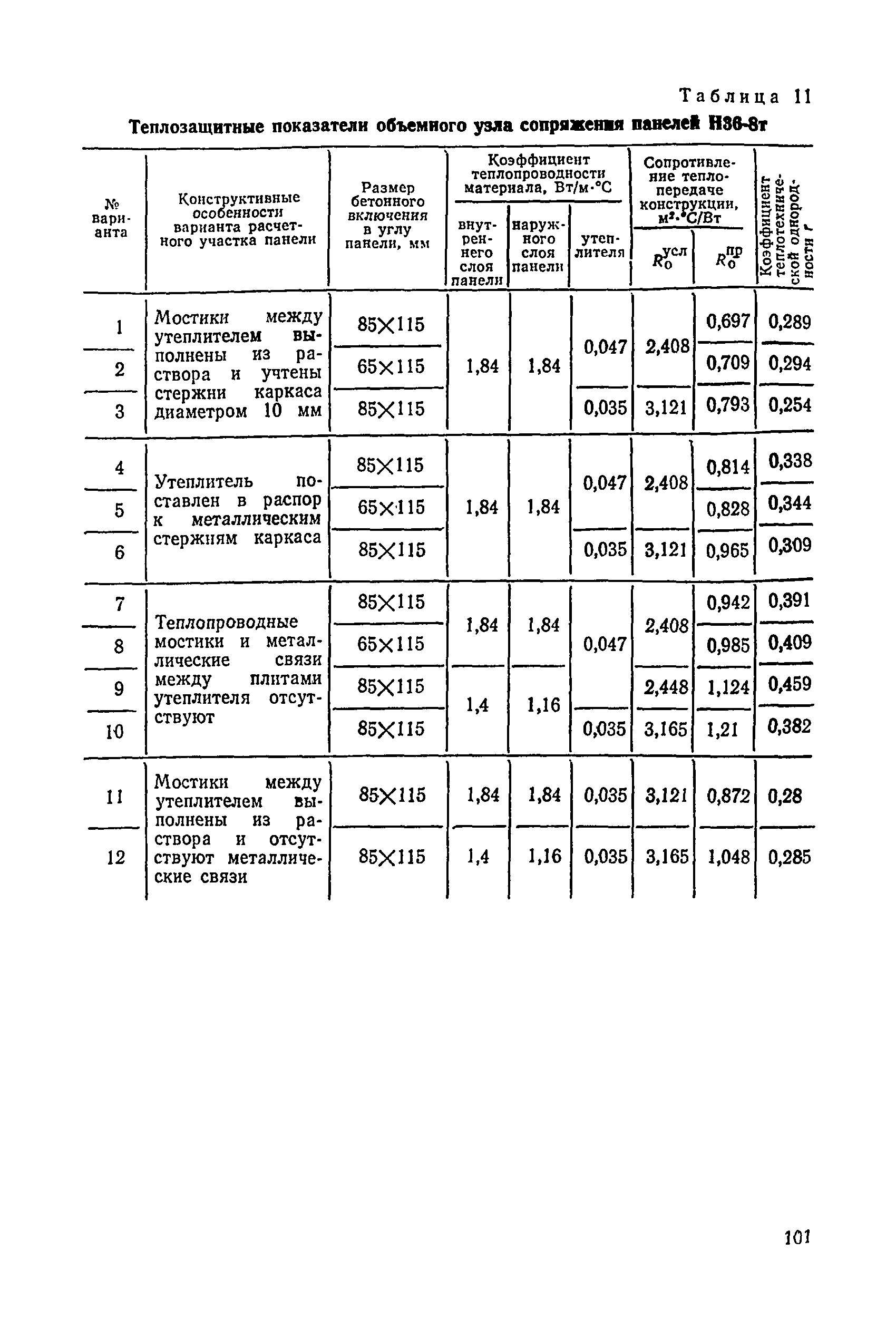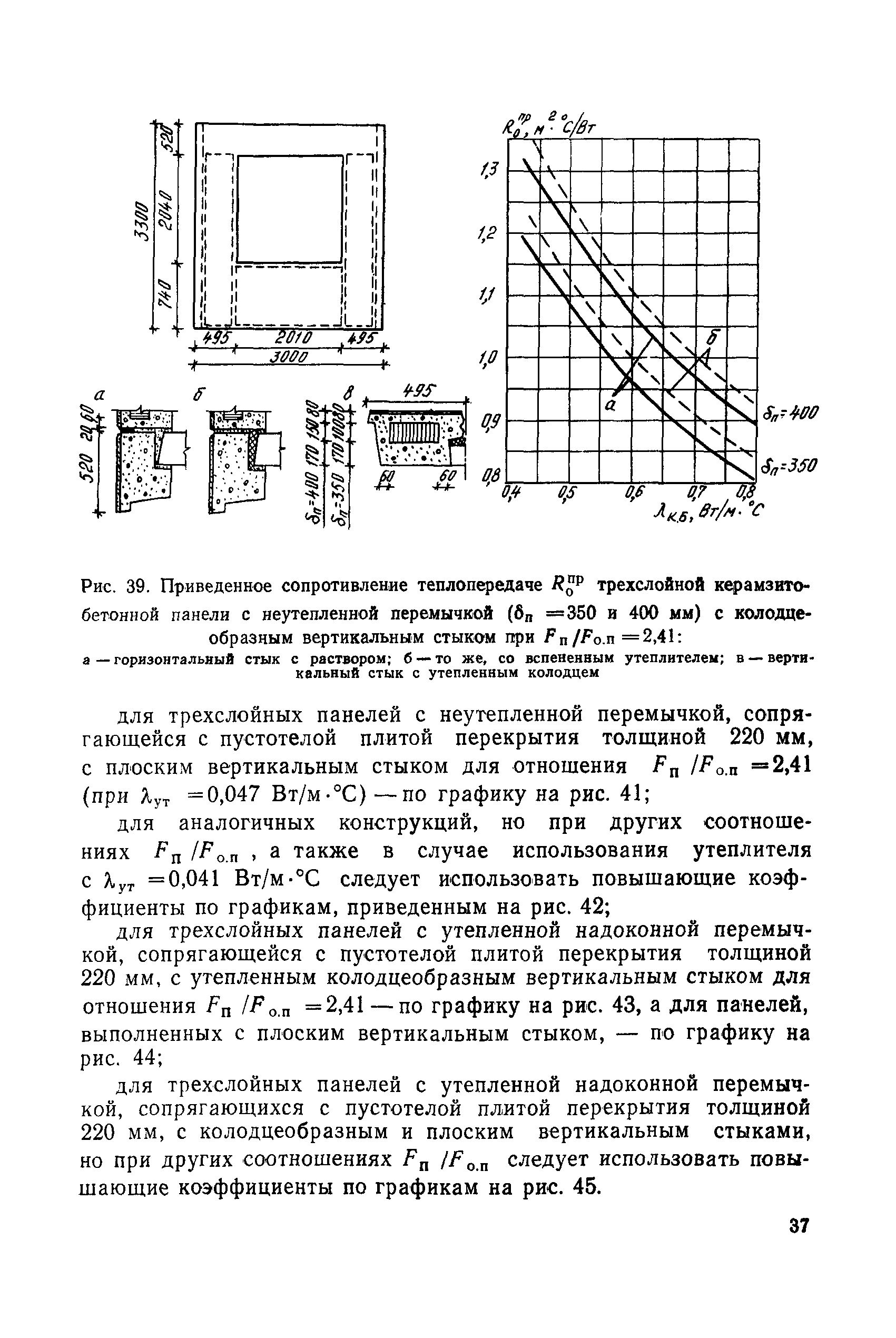 | Оглавление: | 1. Общие положения 2. Приведенное сопротивление теплопередаче стеновых ограждающих конструкций Однослойные наружные стеновые конструкции Кирпичная кладка Однослойные панели с оконным проемом Однослойные панели полосовой разрезки (ленточные панели) Многослойные наружные стеновые конструкции Трехслойные бетонные панели с оконным проемом и обрамляющими ребрами Трехслойные керамзитобетонные панели с оконным проемом и обрамляющими ребрами Трехслойные керамзитобетонные панели полосовой разрезки (ленточные панели) с обрамляющими ребрами Трехслойные панели с гибкими связями 3. Определение минимальной температуры внутренней поверхности ограждения Теплопроводные включения характерного типа Определение минимальной температуры в узлах консольного типа однослойных панелей 4. Приведенное сопротивление теплопередаче оконных блоков 5. Теплотехнические расчеты крыши с теплым чердаком Расчет крыши с теплым чердаком при стационарном температурном режиме Методика теплотехнического расчета Расчет нестационарного температурного режима теплого чердака Приложение. Значения R и r некоторых видов стеновых панелей с разными теплопроводным включениями и участков стен с различными типами гибких связей Трехслойные керамзитобетонные наружные стены по альбому 5РС41-39 Трехслойные панели полосовой разрезки с гибкими связями домов серии 1.030.1-1 Трехслойные панели полосовой разрезки для плодоовощных баз Различные виды гибких связей Гибкие связи, совмещенные с каркасом панели, применяемые в наружных панелях домов серии П44/17 |