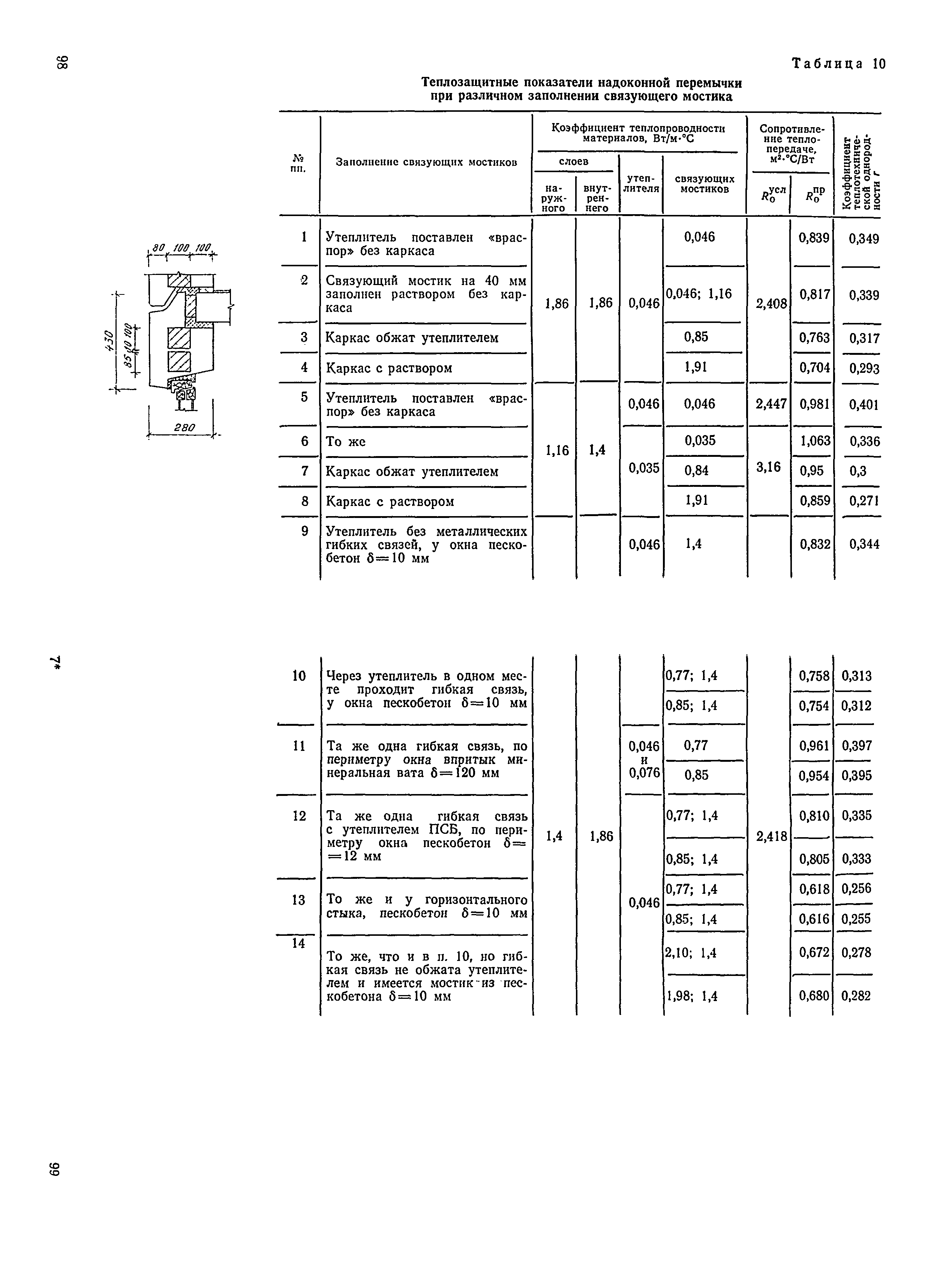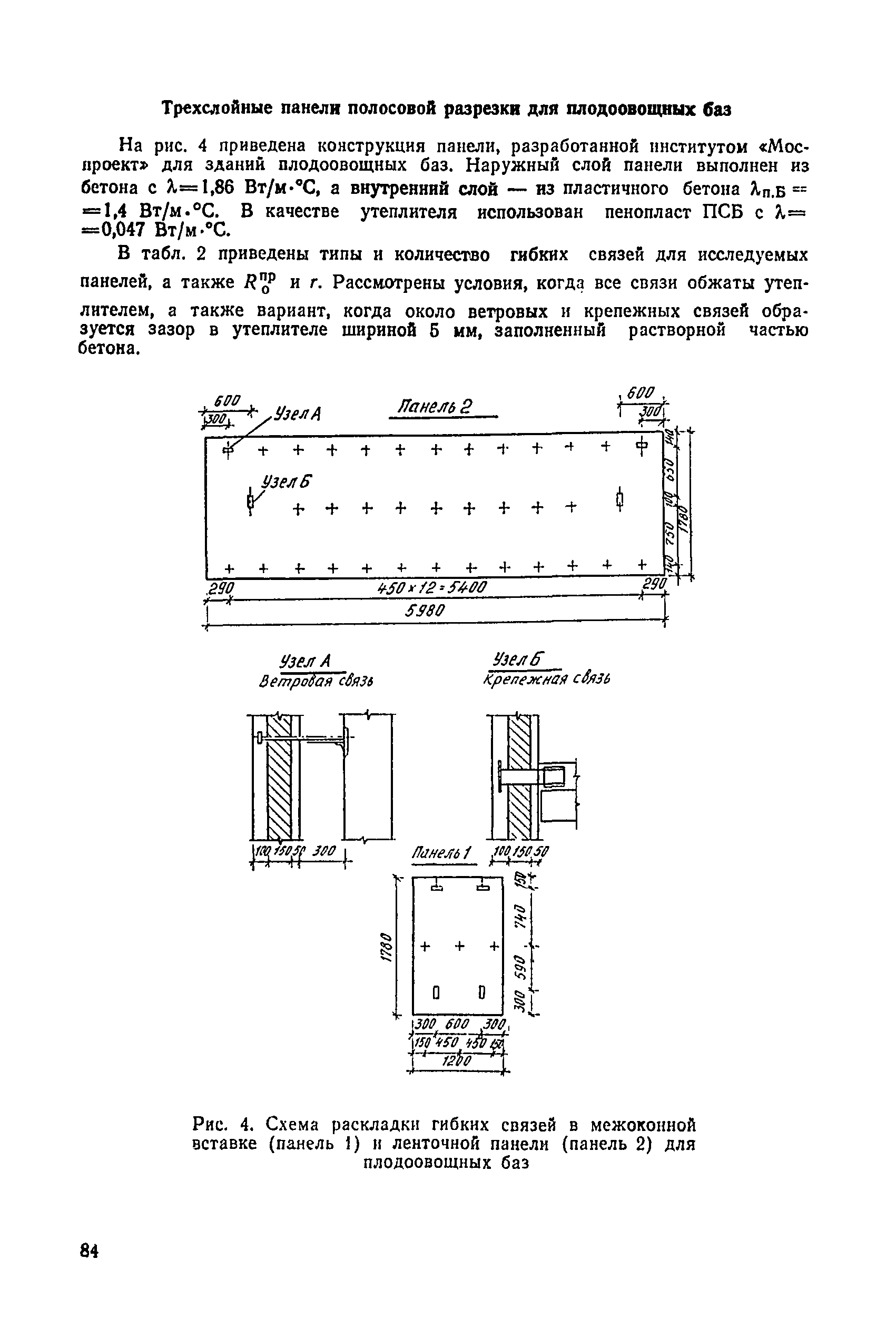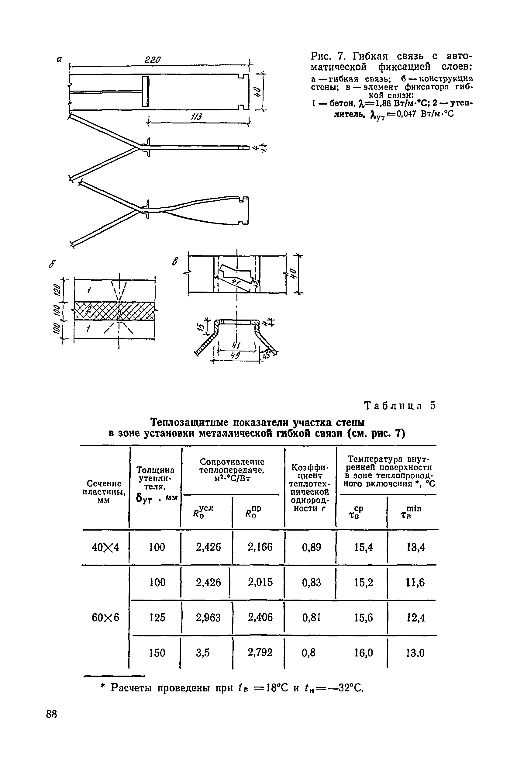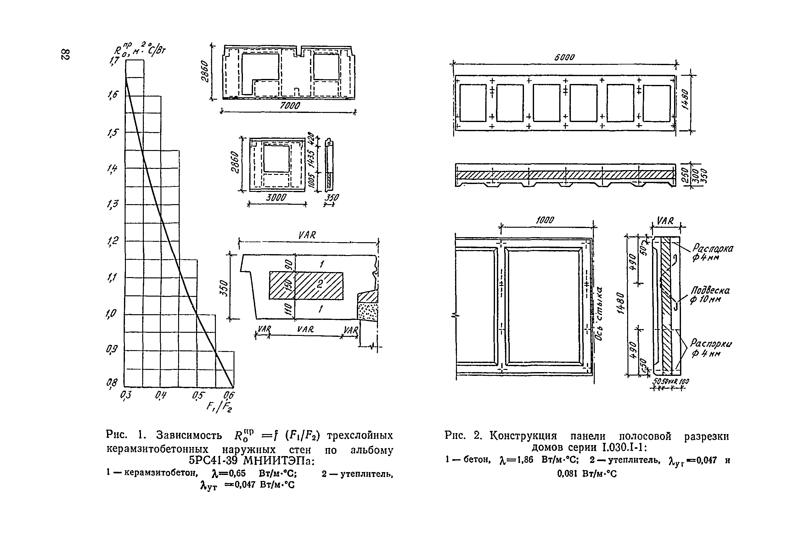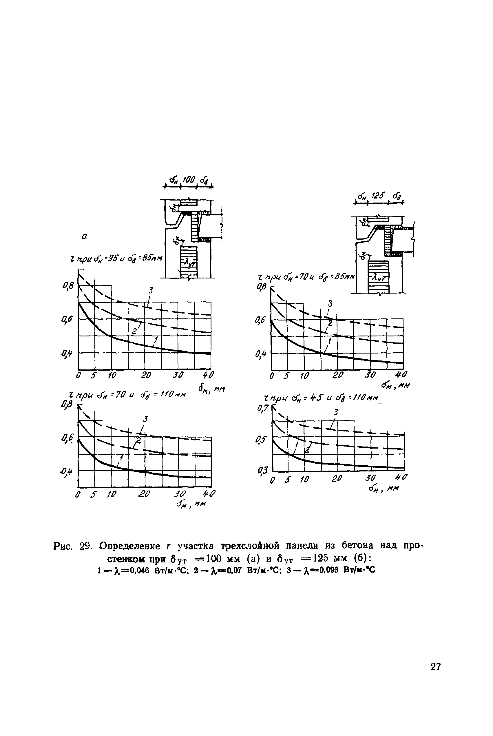 | Оглавление: | 1. Общие положения 2. Приведенное сопротивление теплопередаче стеновых ограждающих конструкций Однослойные наружные стеновые конструкции Кирпичная кладка Однослойные панели с оконным проемом Однослойные панели полосовой разрезки (ленточные панели) Многослойные наружные стеновые конструкции Трехслойные бетонные панели с оконным проемом и обрамляющими ребрами Трехслойные керамзитобетонные панели с оконным проемом и обрамляющими ребрами Трехслойные керамзитобетонные панели полосовой разрезки (ленточные панели) с обрамляющими ребрами Трехслойные панели с гибкими связями 3. Определение минимальной температуры внутренней поверхности ограждения Теплопроводные включения характерного типа Определение минимальной температуры в узлах консольного типа однослойных панелей 4. Приведенное сопротивление теплопередаче оконных блоков 5. Теплотехнические расчеты крыши с теплым чердаком Расчет крыши с теплым чердаком при стационарном температурном режиме Методика теплотехнического расчета Расчет нестационарного температурного режима теплого чердака Приложение. Значения R и r некоторых видов стеновых панелей с разными теплопроводным включениями и участков стен с различными типами гибких связей Трехслойные керамзитобетонные наружные стены по альбому 5РС41-39 Трехслойные панели полосовой разрезки с гибкими связями домов серии 1.030.1-1 Трехслойные панели полосовой разрезки для плодоовощных баз Различные виды гибких связей Гибкие связи, совмещенные с каркасом панели, применяемые в наружных панелях домов серии П44/17 |