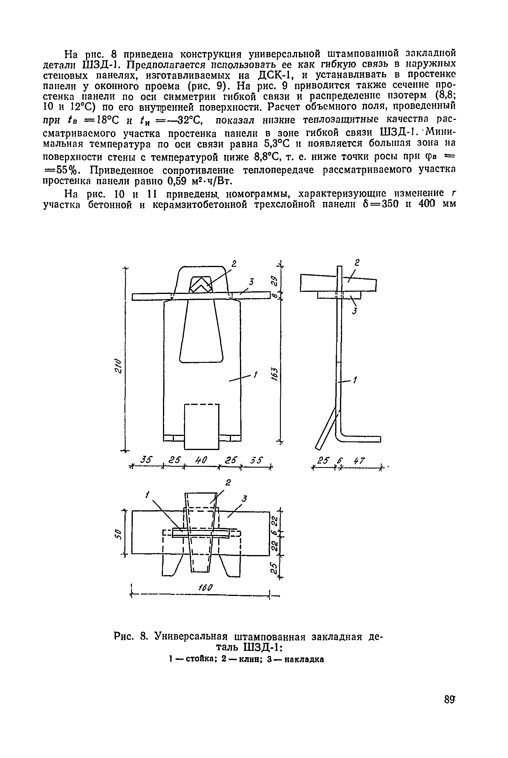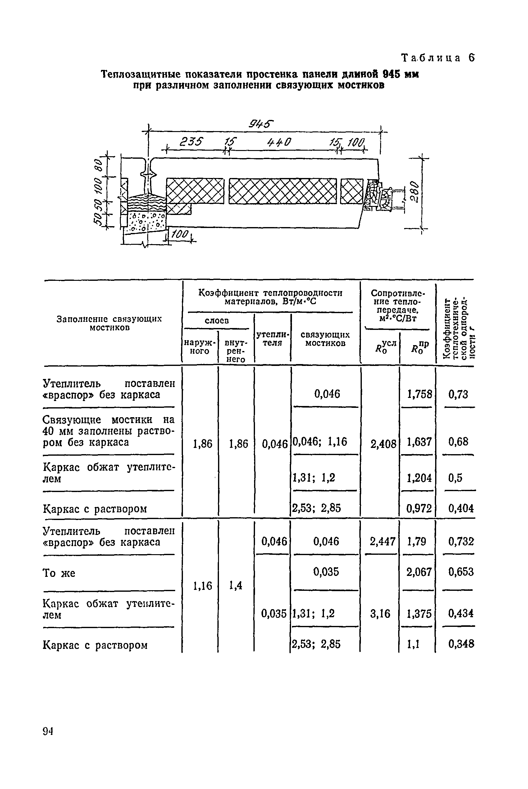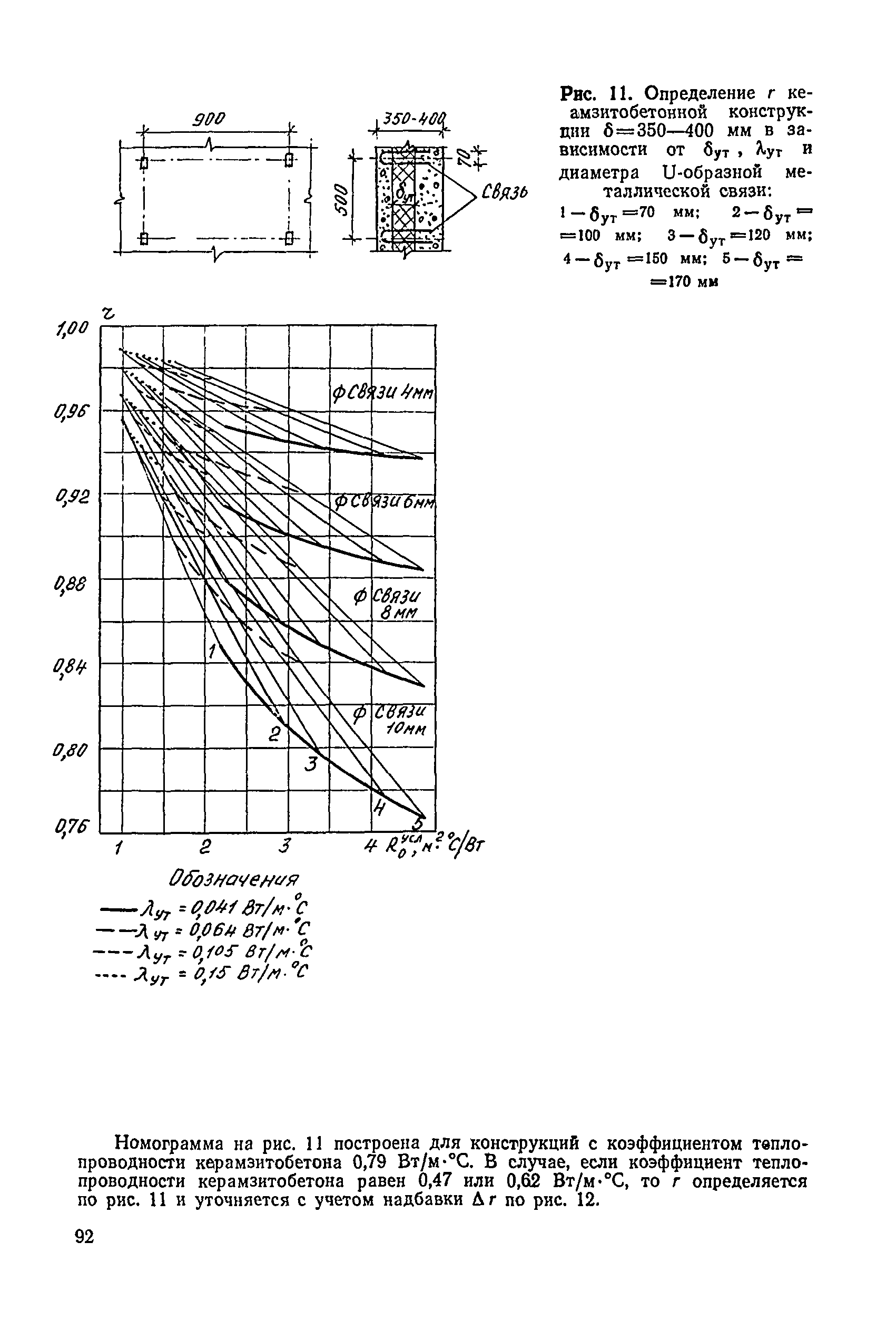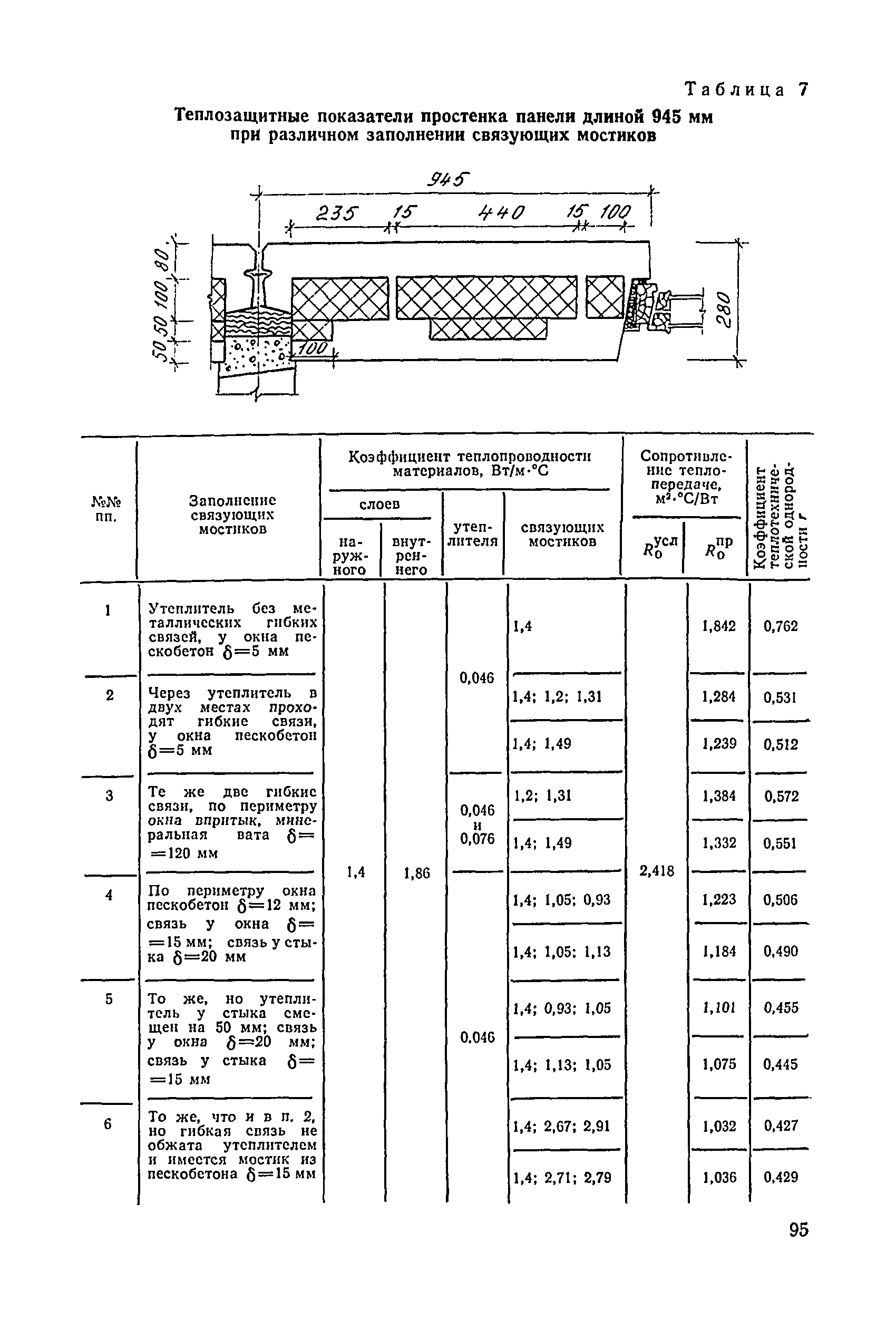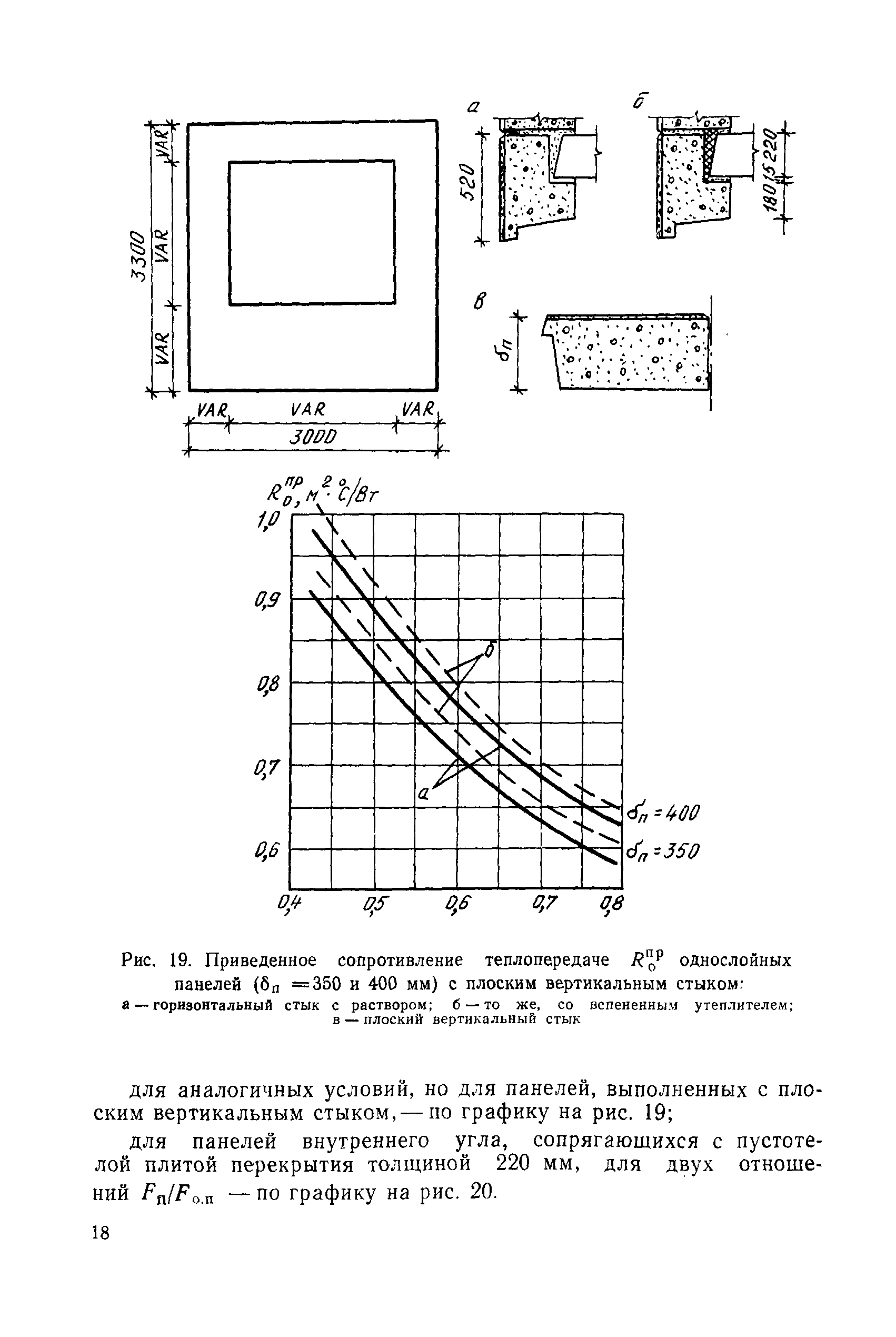 | Оглавление: | 1. Общие положения 2. Приведенное сопротивление теплопередаче стеновых ограждающих конструкций Однослойные наружные стеновые конструкции Кирпичная кладка Однослойные панели с оконным проемом Однослойные панели полосовой разрезки (ленточные панели) Многослойные наружные стеновые конструкции Трехслойные бетонные панели с оконным проемом и обрамляющими ребрами Трехслойные керамзитобетонные панели с оконным проемом и обрамляющими ребрами Трехслойные керамзитобетонные панели полосовой разрезки (ленточные панели) с обрамляющими ребрами Трехслойные панели с гибкими связями 3. Определение минимальной температуры внутренней поверхности ограждения Теплопроводные включения характерного типа Определение минимальной температуры в узлах консольного типа однослойных панелей 4. Приведенное сопротивление теплопередаче оконных блоков 5. Теплотехнические расчеты крыши с теплым чердаком Расчет крыши с теплым чердаком при стационарном температурном режиме Методика теплотехнического расчета Расчет нестационарного температурного режима теплого чердака Приложение. Значения R и r некоторых видов стеновых панелей с разными теплопроводным включениями и участков стен с различными типами гибких связей Трехслойные керамзитобетонные наружные стены по альбому 5РС41-39 Трехслойные панели полосовой разрезки с гибкими связями домов серии 1.030.1-1 Трехслойные панели полосовой разрезки для плодоовощных баз Различные виды гибких связей Гибкие связи, совмещенные с каркасом панели, применяемые в наружных панелях домов серии П44/17 |