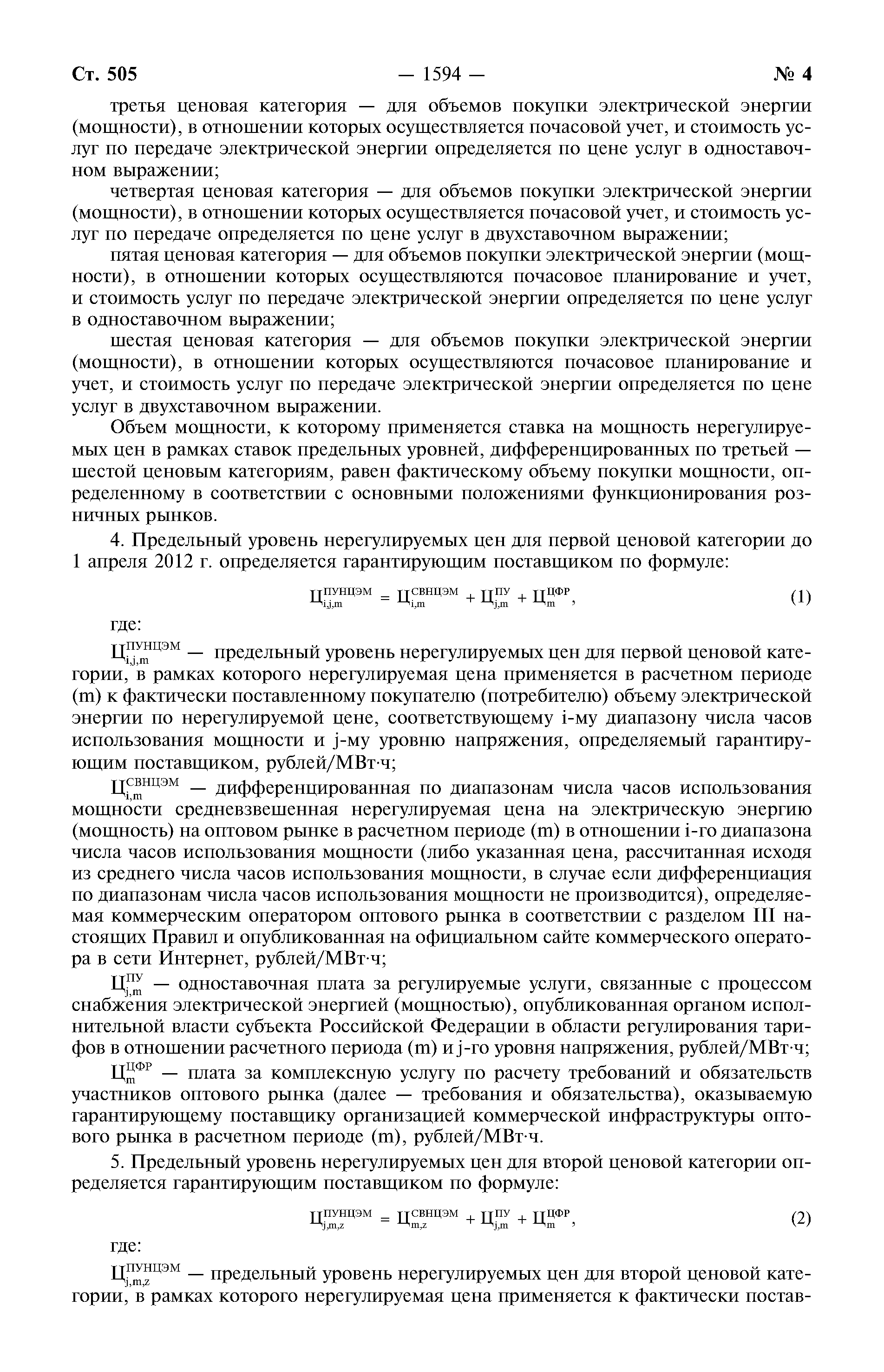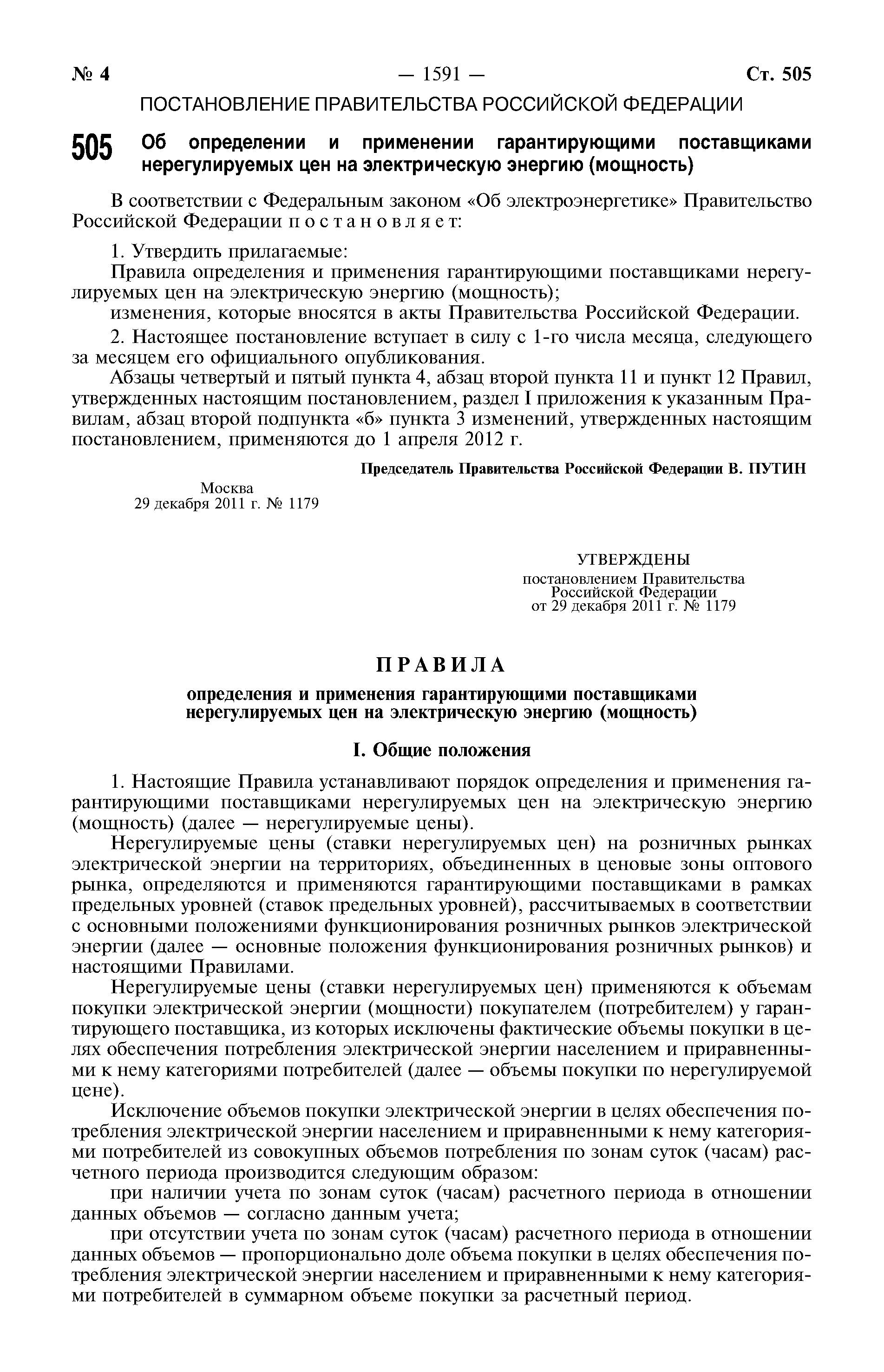 | Название рус.: | Правила определения и применения гарантирующими поставщиками нерегулируемых цен на электрическую энергию (мощность) |