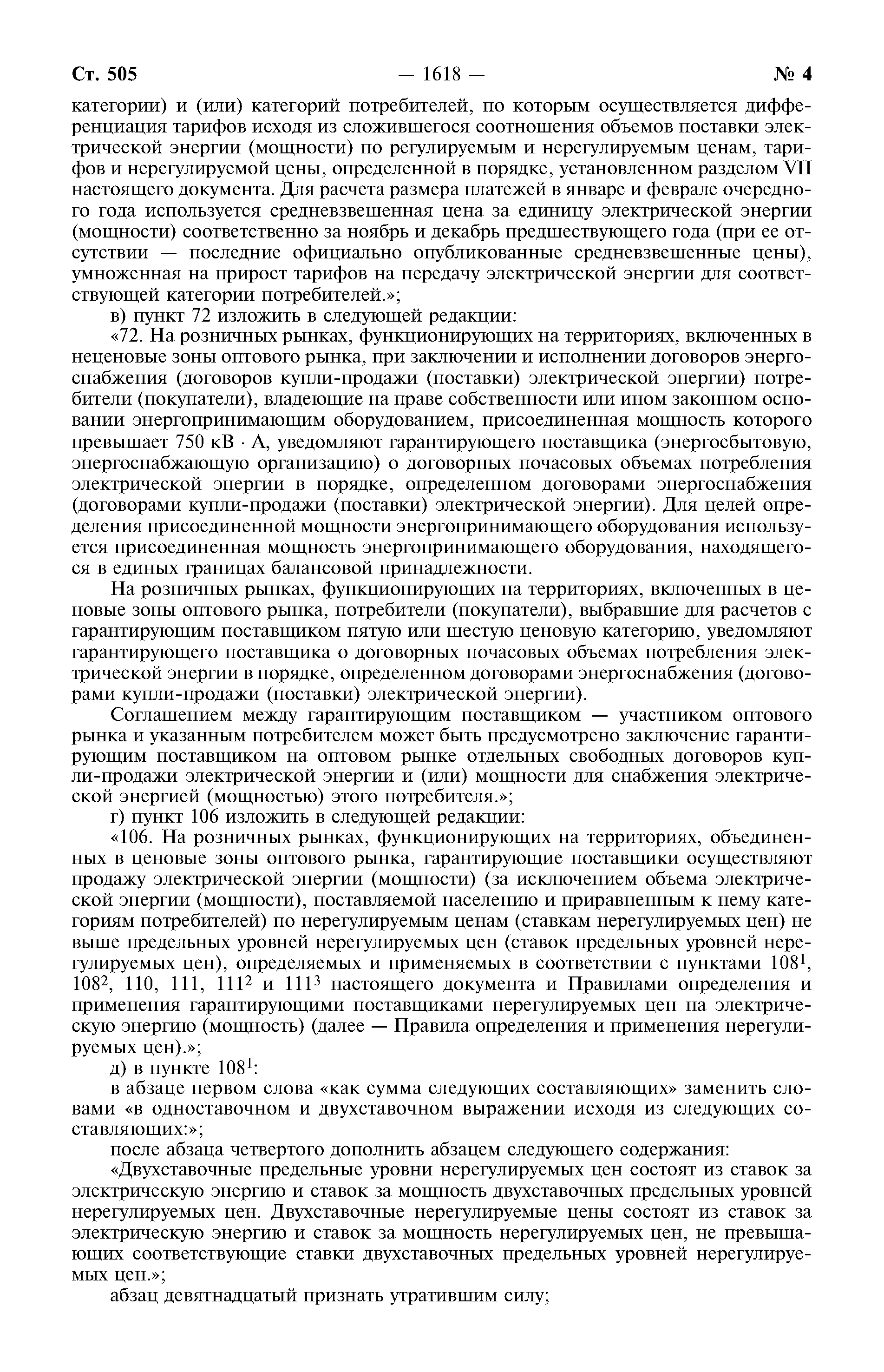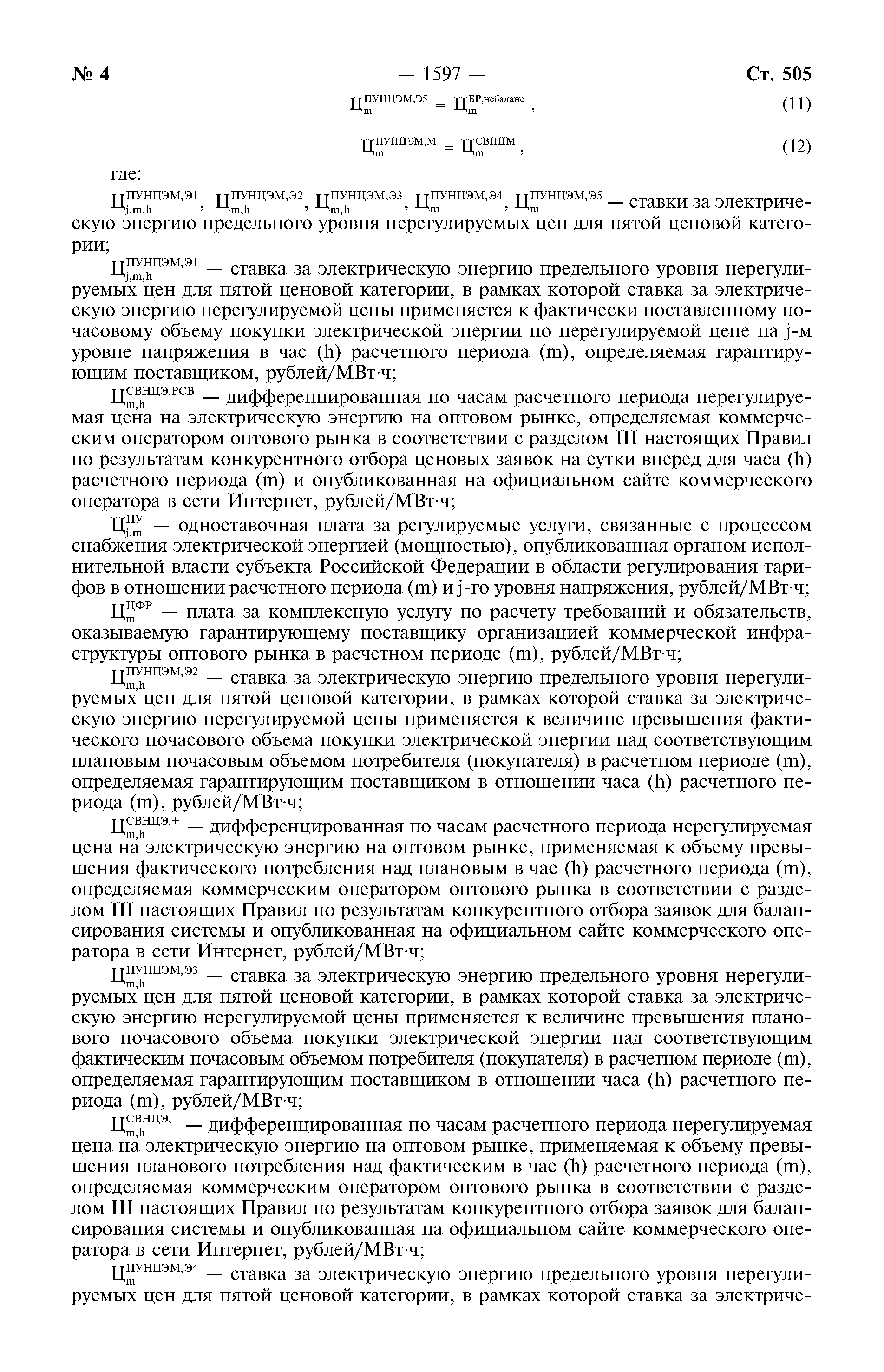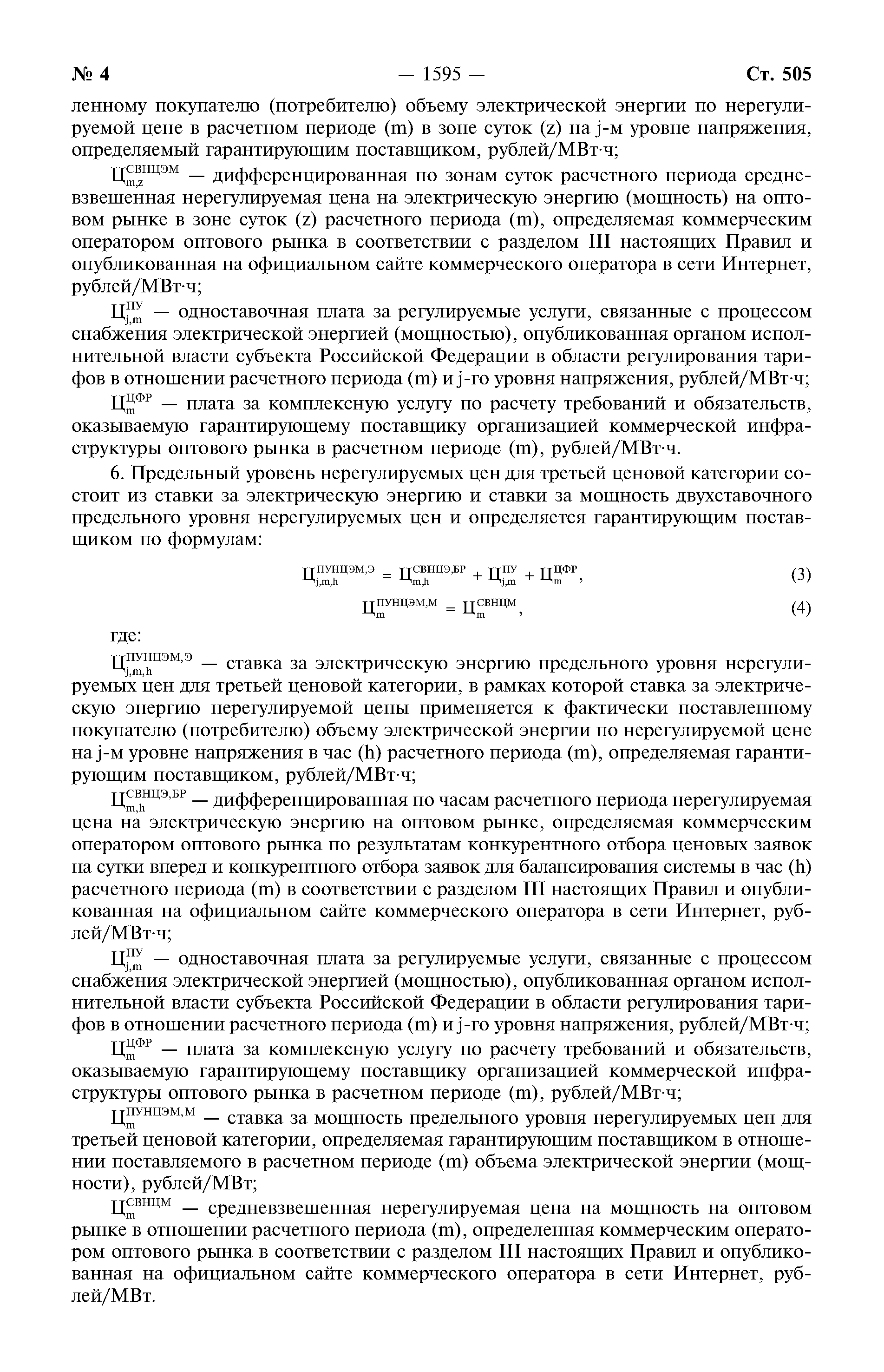 | Оглавление: | I. Общие положения II. Порядок определения и применения гарантирующими поставщиками нерегулируемых цен на электрическую энергию (мощность) III. Порядок определения коммерческим оператором оптового рынка средневзвешенных нерегулируемых цен на электрическую энергию (мощность) IV. Порядок определения гарантирующими поставщиками нерегулируемых цен на электрическую энергию (мощность) с учетом цен свободных договоров купли-продажи электрической энергии и (или) мощности Приложение Изменения, которые вносятся в акты Правительства Российской Федерации |