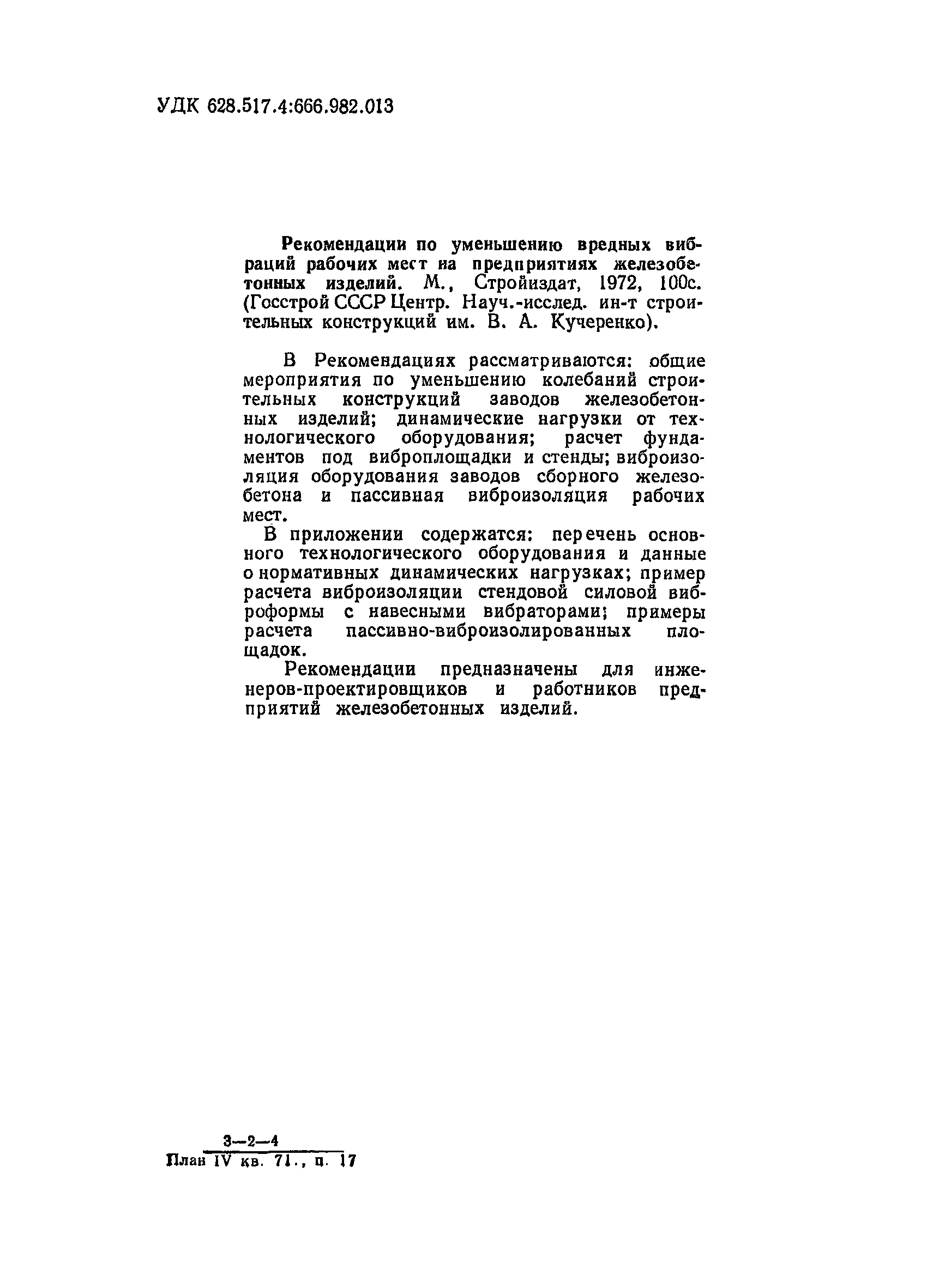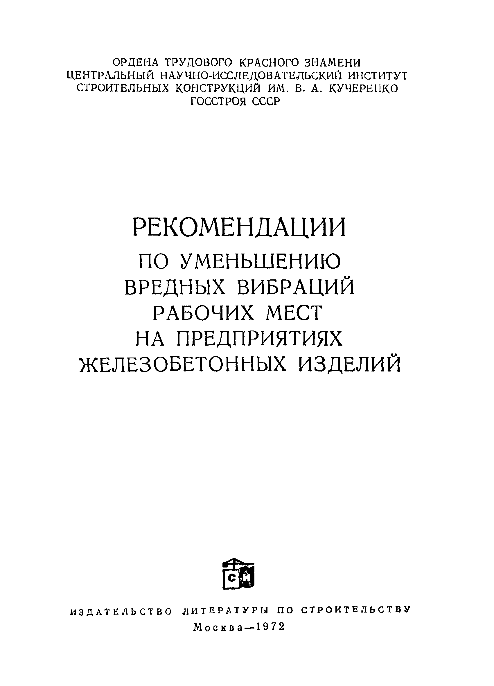 | Название рус.: | Рекомендации по уменьшению вредных вибраций рабочих мест на предприятиях железобетонных изделий |