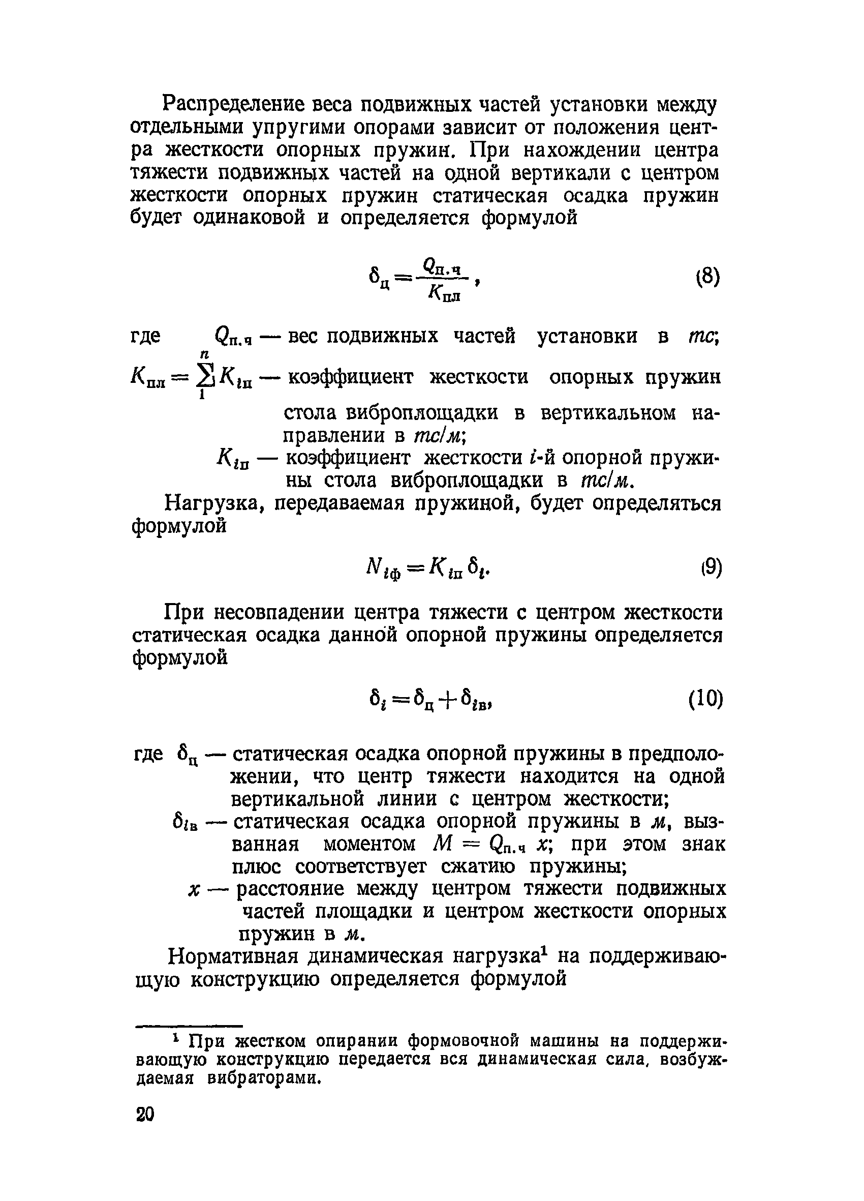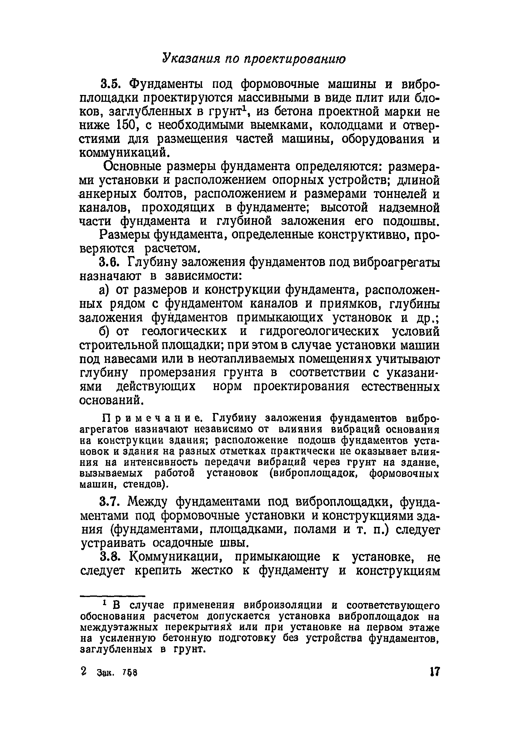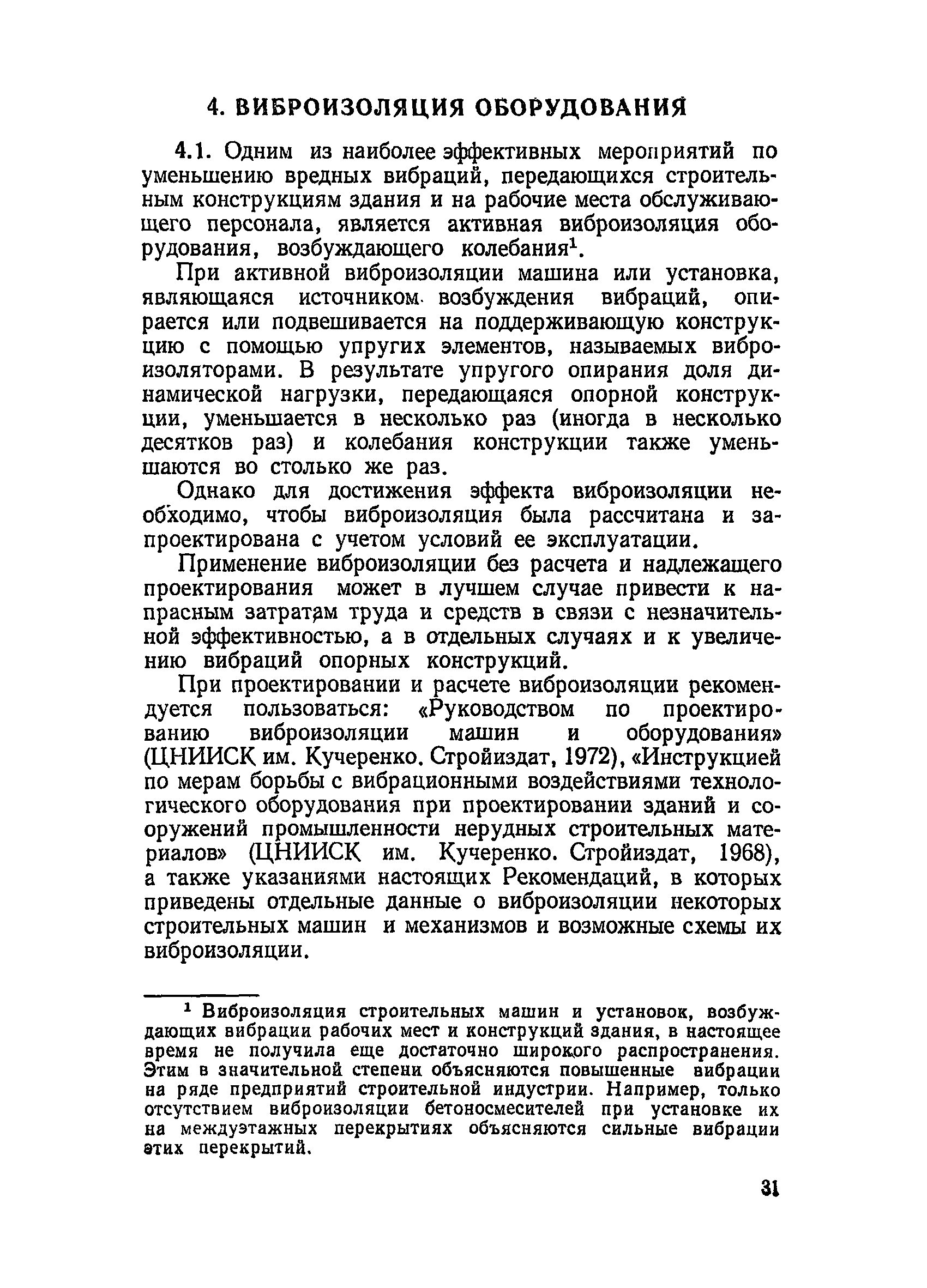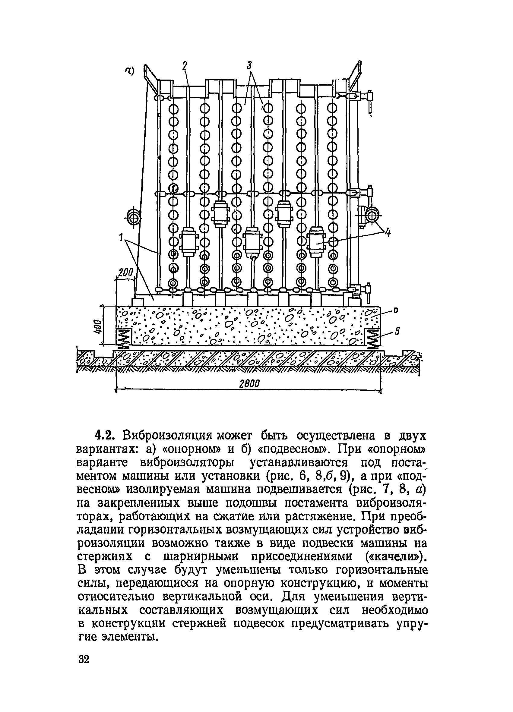 | Оглавление: | Предисловие 1. Общие указания 2. Динамические нагрузки от строительных машин и механизмов 3. Проектирование фундаментов под вибрационное оборудование для формования бетонных и железобетонных изделий 4. Виброиволяция оборудования 5. Пассивная виброизоляция рабочих мест и площадок 6. Расчет конструкций междуэтажных перекрытий и разгрузочных балок на динамические нагрузки от оборудования Приложения 1. Перечень основного технологического оборудования заводов и полигонов сборного железобетона и данные о нормативных динамических нагрузках, возбуждаемых этим оборудованием 2. Пример расчета виброизоляции стендовой силовой виброформы с навесными вибраторами для изготовления стропильных двускатных балок 3. Примеры расчета пассивно-виброизолированных площадок |