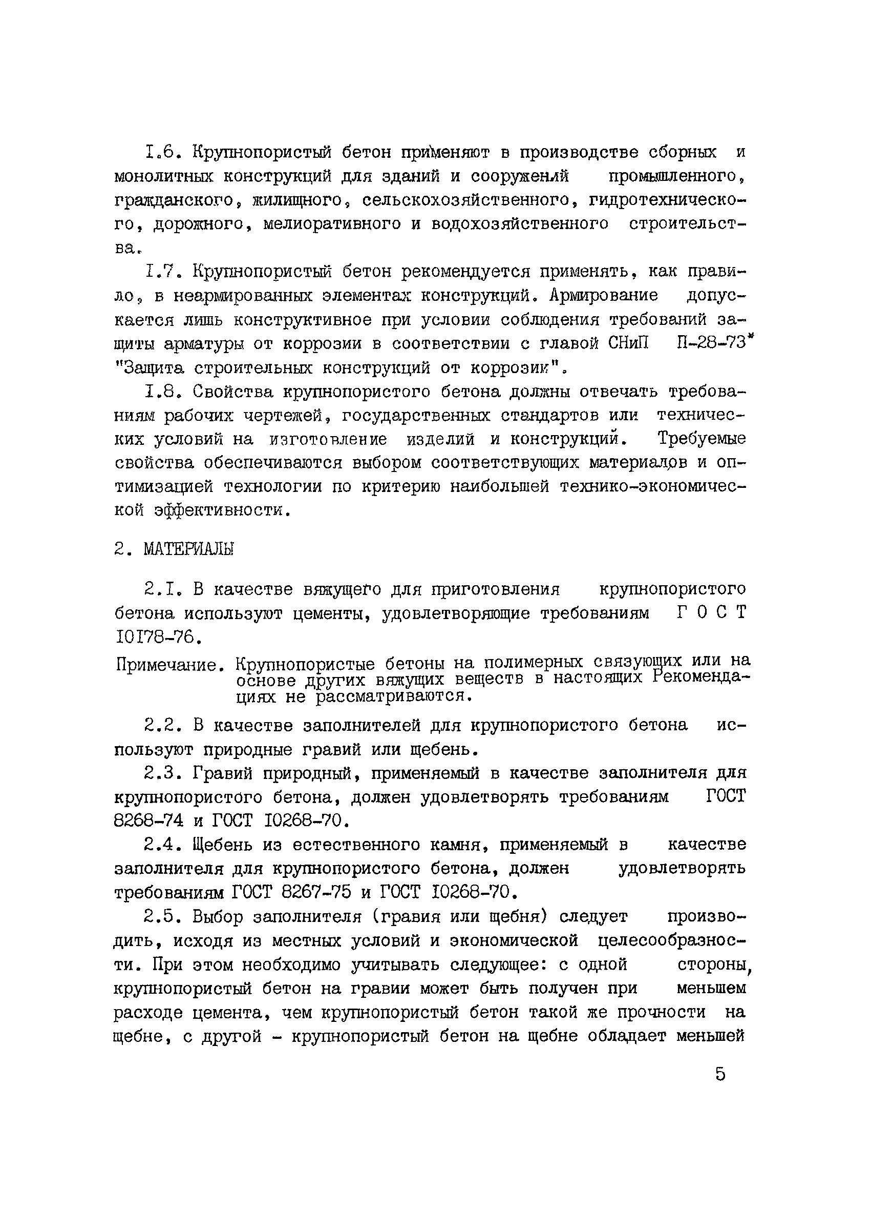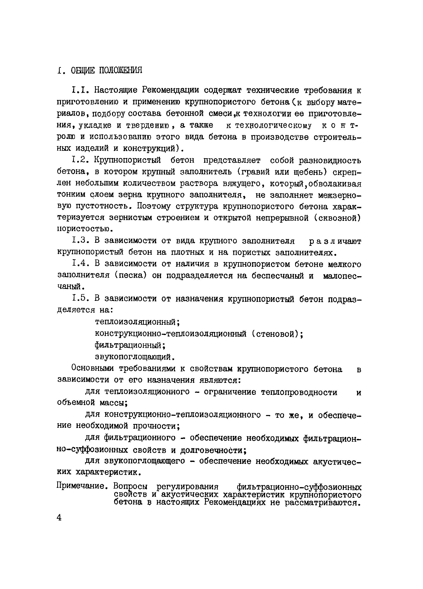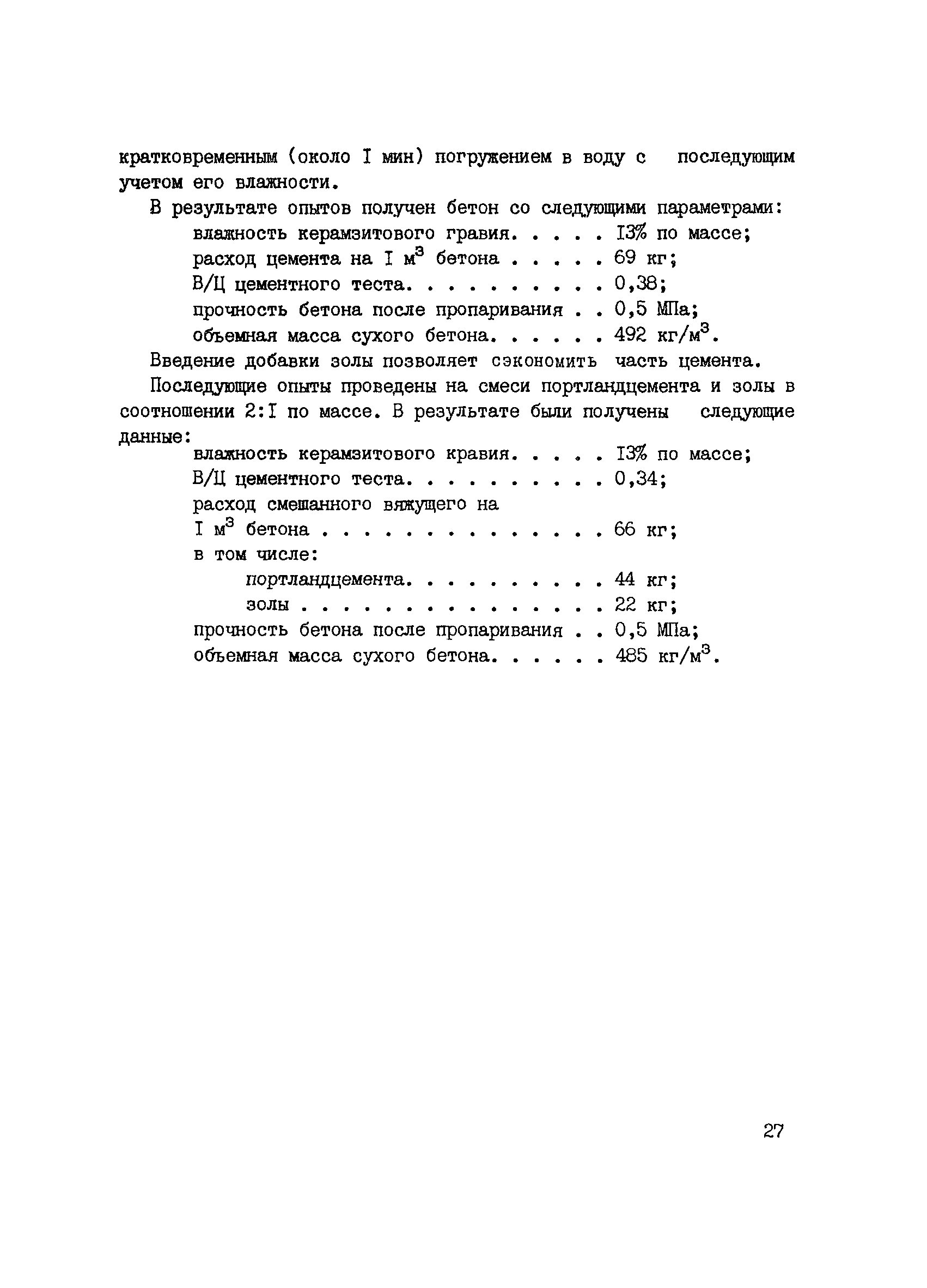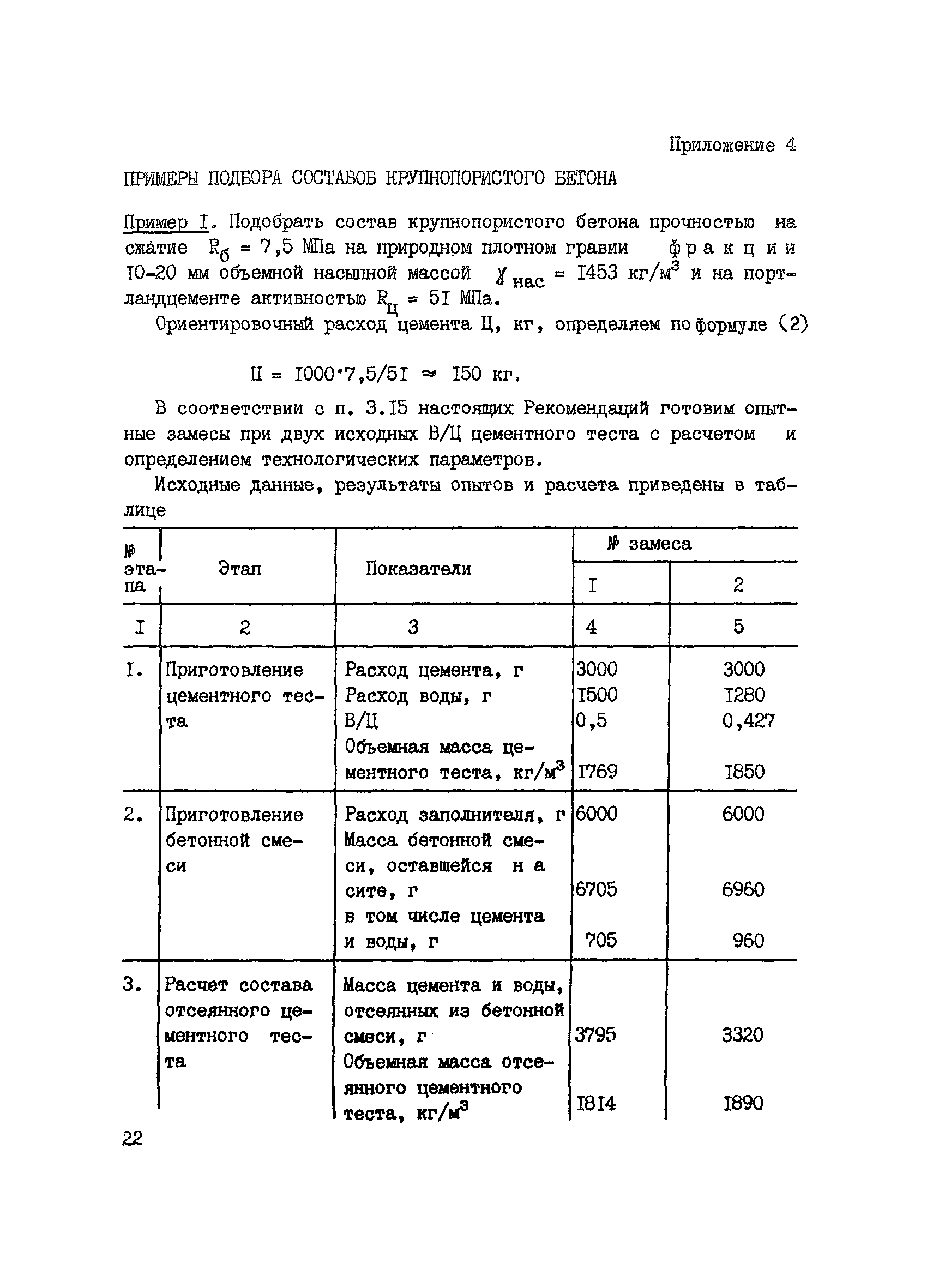 | Оглавление: | 1. Общие положения 2. Материалы 3. Состав бетона 4. Приготовление бетонной смеси 5. Укладка и уплотнение бетонной смеси 6. Твердение бетона 7. Контроль качества бетона 8. Применение крупнопористого бетона Приложение I. Минимальная прочность заполнителя для крупнопористого бетона Приложение 2. Ориентировочные расходы цемента для крупнопористого беспесчаного бетона на плотных заполнителях Приложение 3. Ориентировочные расходы цемента для крупнопористого беспесчаного керамзитобетона Приложение 4. Примеры подбора составов крупнопористого бетона |