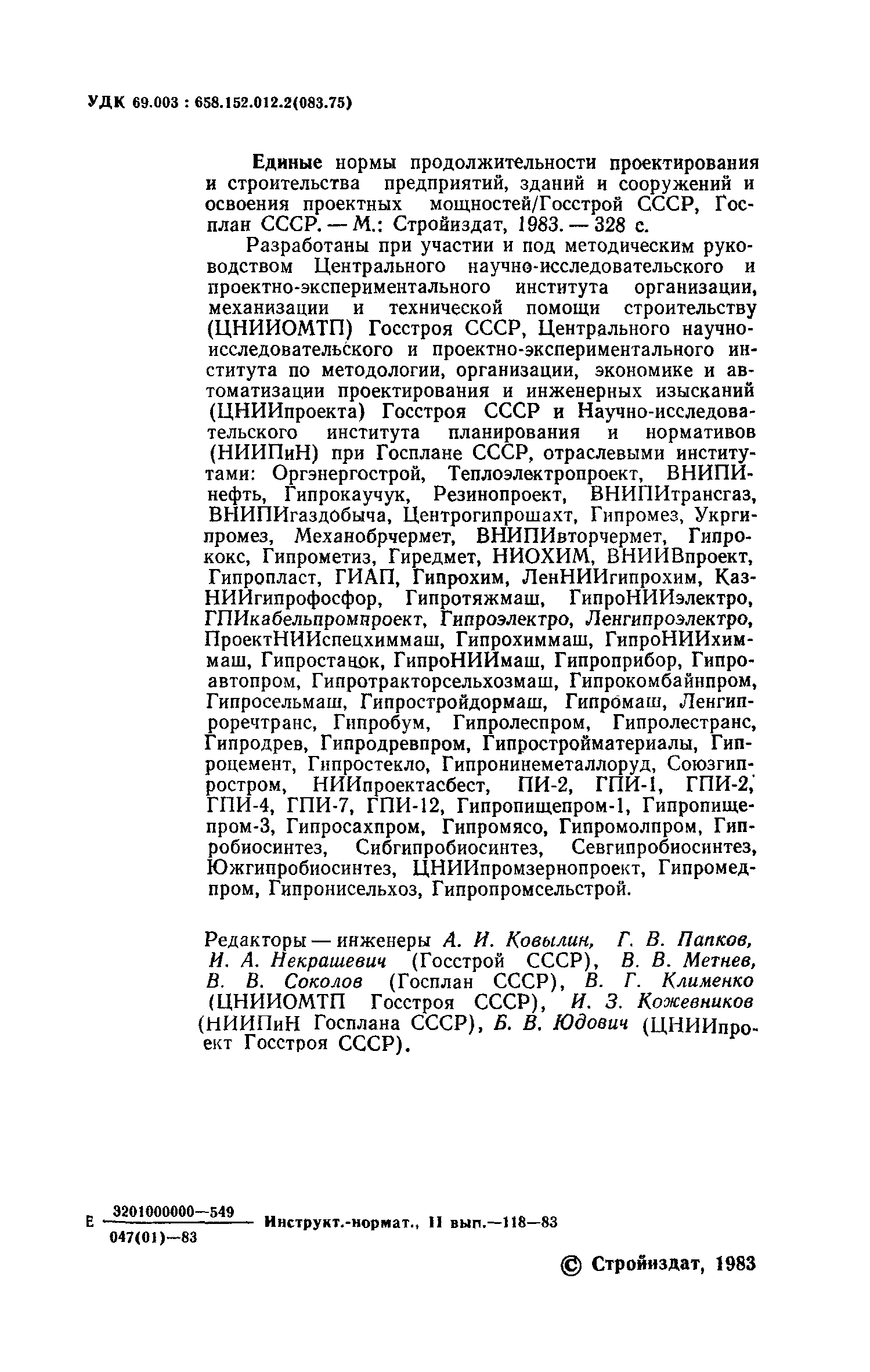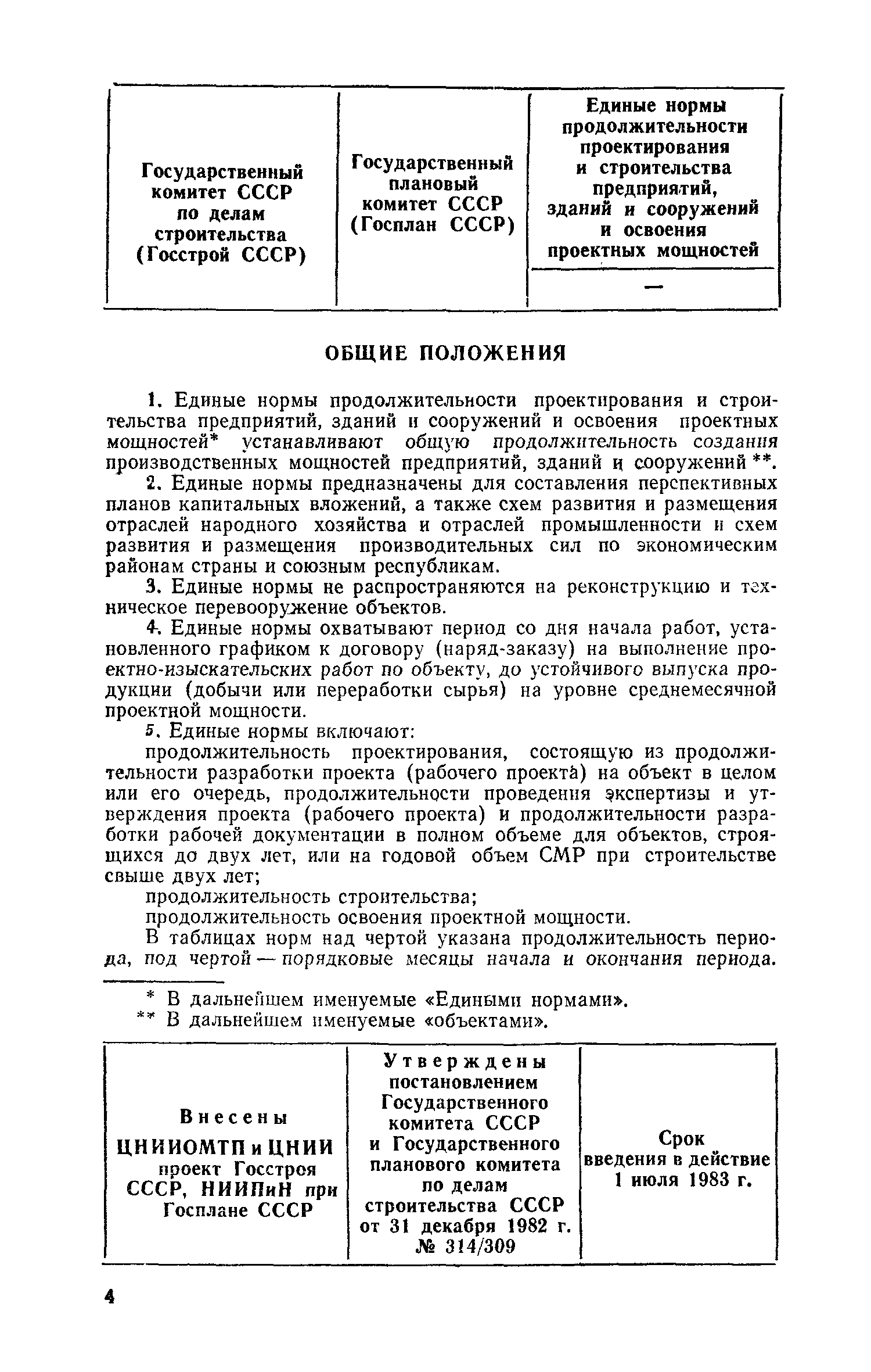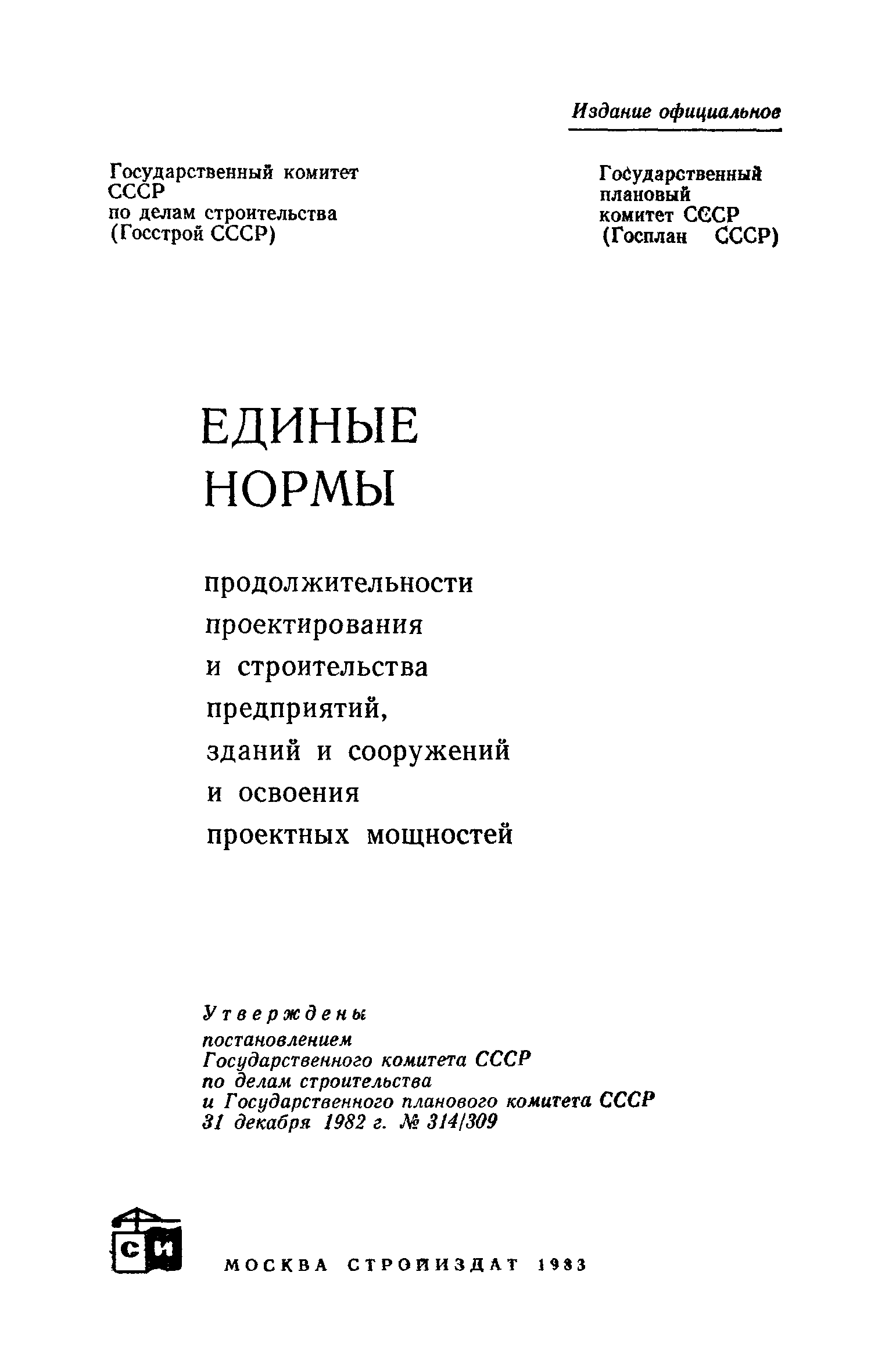 | | Утверждён: | 31.12.1982 Госстрой СССР (Государственный комитет Совета Министров СССР по делам строительства) (USSR Gosstroy 314) 31.12.1982 Государственный плановый комитет СССР (USSR National Planning Committee 309)