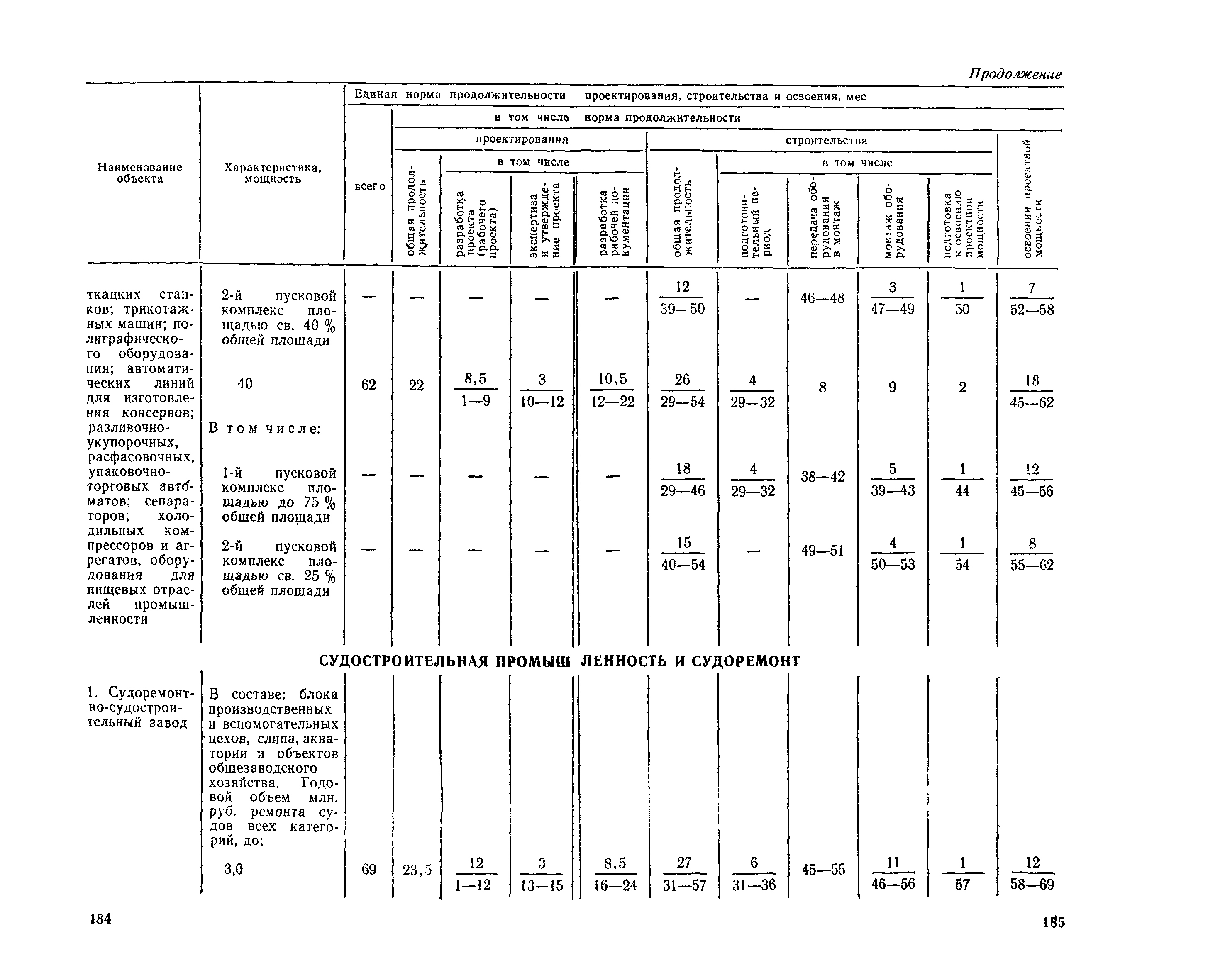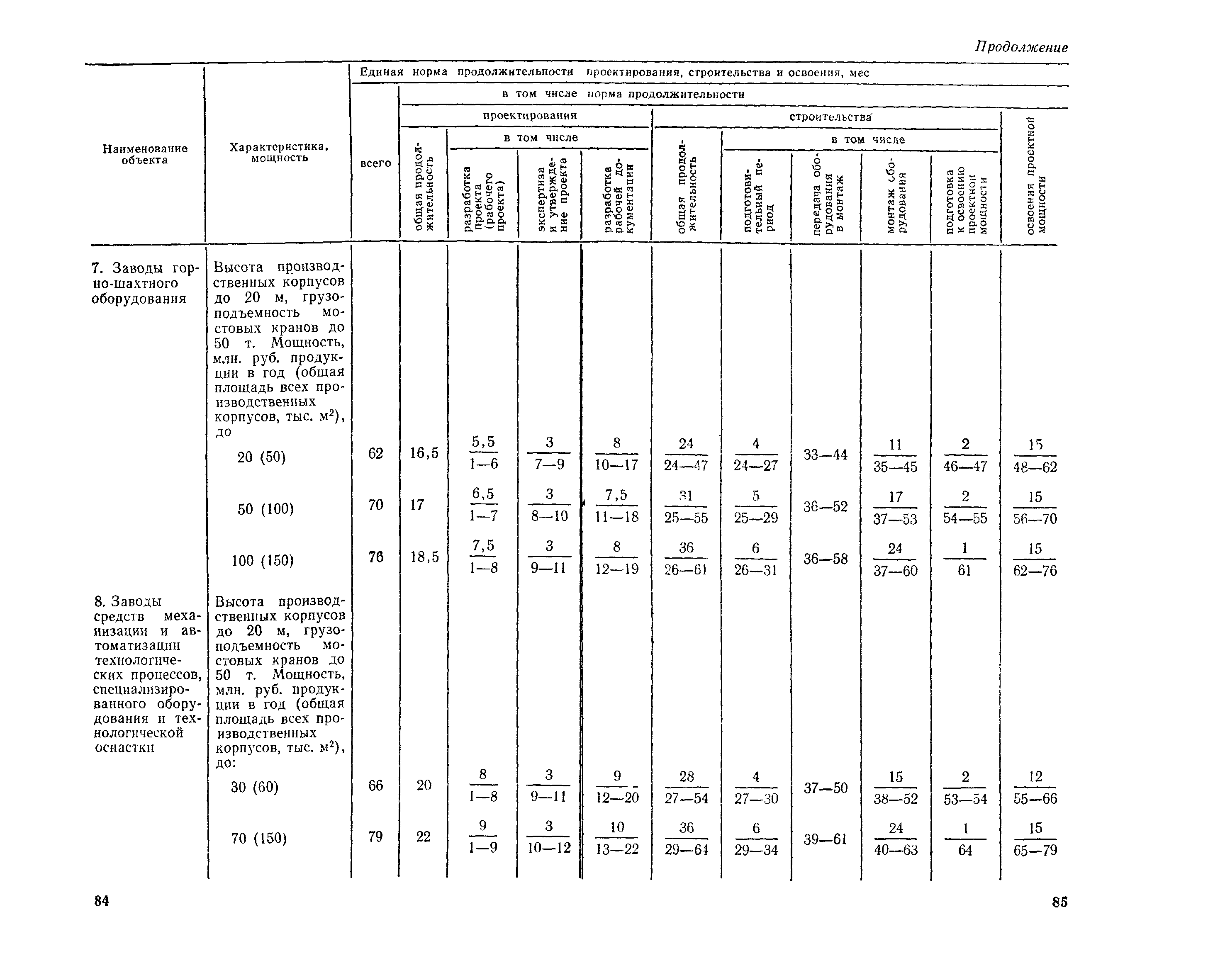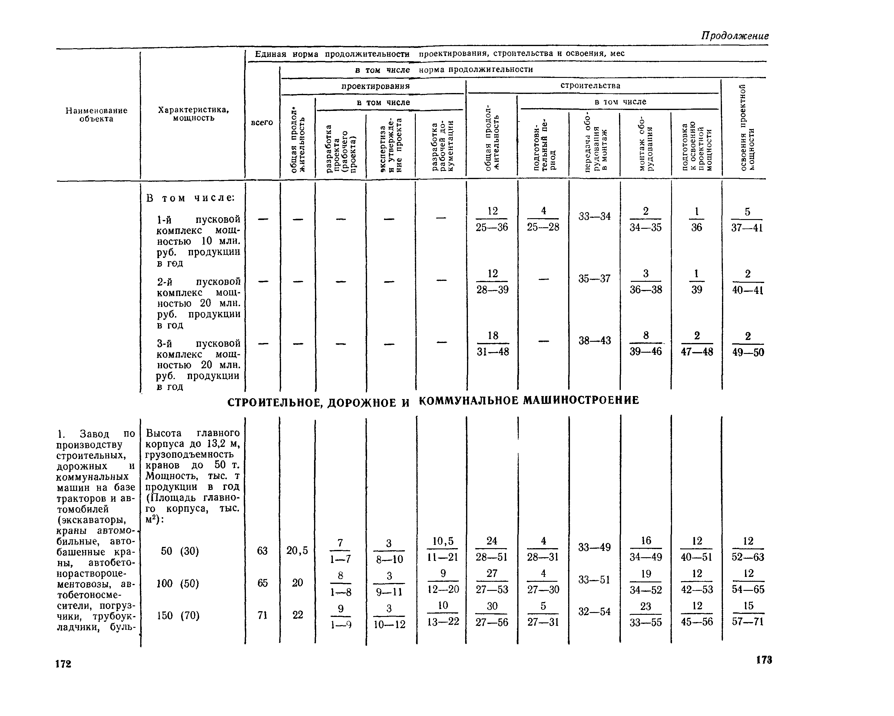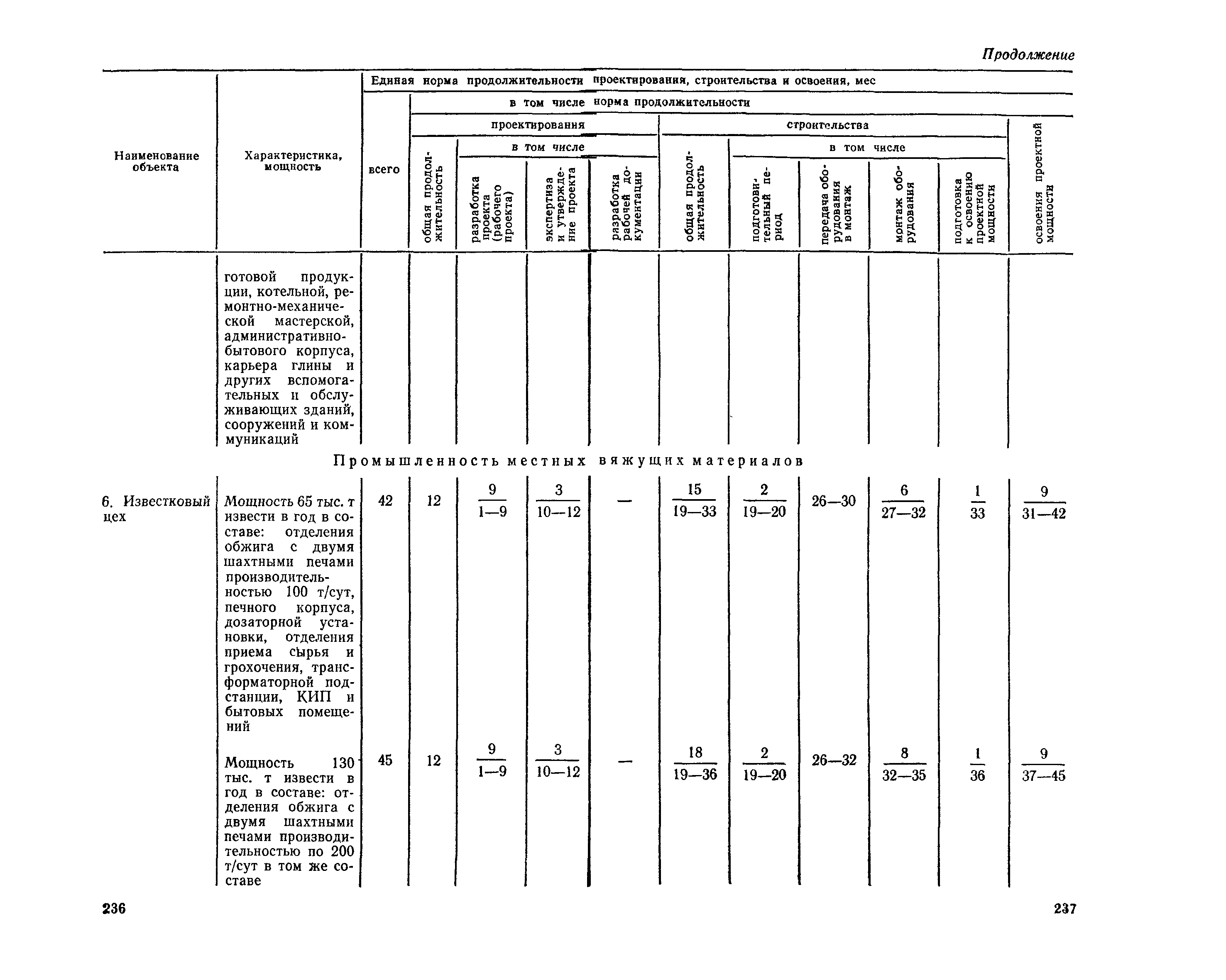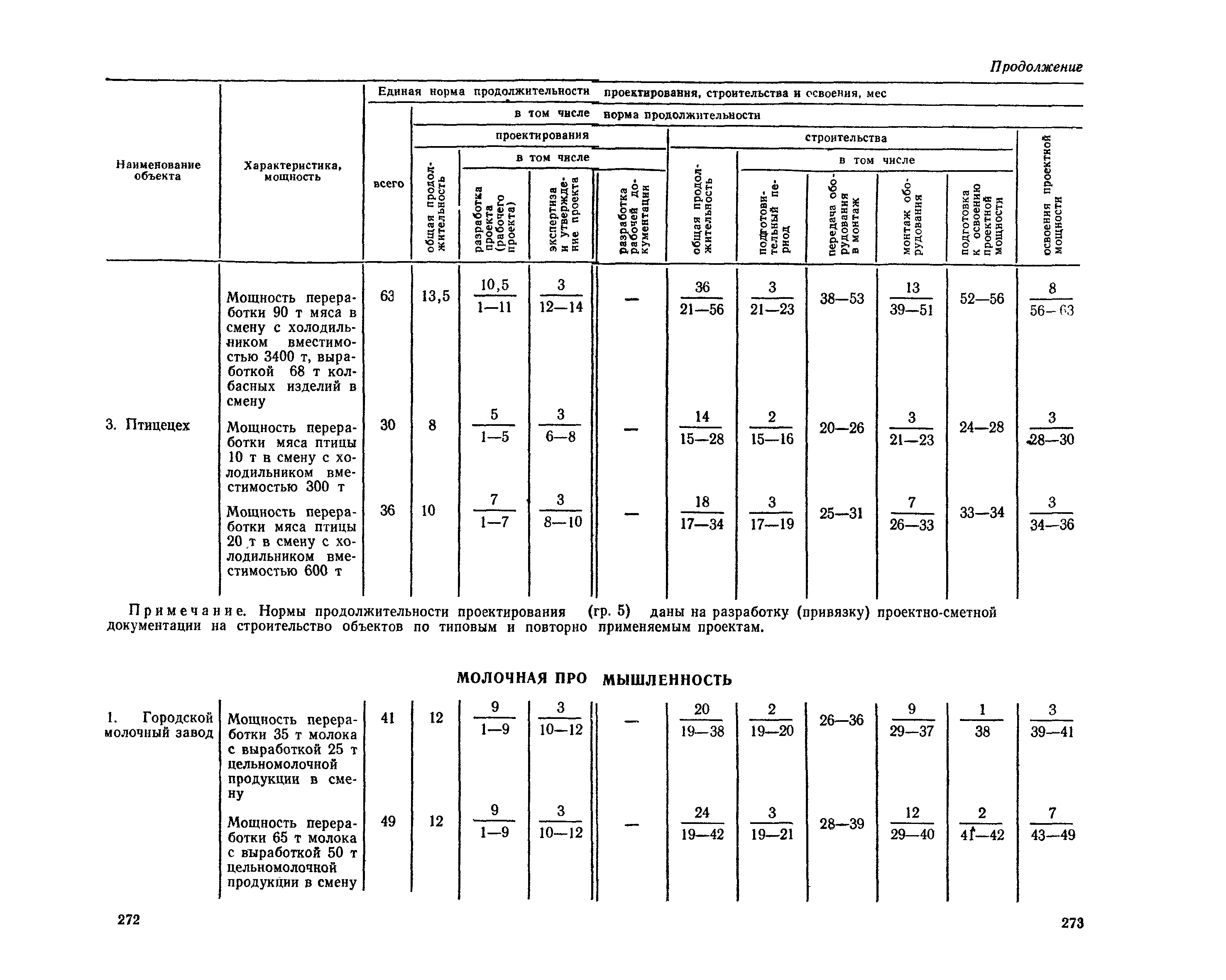 Единые нормы продолжительности проектирования и строительства предприятий, зданий и сооружений и освоения проектных мощностей| Статус: | действует | | Название рус.: | Единые нормы продолжительности проектирования и строительства предприятий, зданий и сооружений и освоения проектных мощностей | | Дата добавления в базу: | 01.09.2013 | | Дата актуализации: | 01.01.2021 | | Дата введения: | 01.07.1983 | | Область применения: | Единые нормы продолжительности проектирования и строительства предприятий, зданий н сооружений и освоения проектных мощностей устанавливают общую продолжительность создания производственных мощностей предприятий, зданий и сооружений. Единые нормы предназначены для составления перспективных планов капитальных вложений, а также схем развития и размещения отраслей народного хозяйства и отраслей промышленности в схем развития и размещения производительных сил по экономическим районам страны и союзным республикам. | | Оглавление: | Общие положения Электроэнергетика Нефтеперерабатывающая и нефтехимическая промышленность Газовая промышленность Угольная и сланцевая промышленность Черная металлургия Цветная металлургия Химическая промышленность Производство минеральных удобрений Машиностроение Тяжелое и транспортное машиностроение Электротехническая промышленность Химическое и нефтяное машиностроение Станкостроительная и инструментальная промышленность Производство продукции общемашиностроительного применения Приборостроение Автомобильная и подшипниковая промышленность Тракторное и сельскохозяйственное машиностроение Машиностроение для животноводства и кормопроизводства Строительное, дорожное и коммунальное машиностроение Машиностроение для легкой и пищевой промышленности и бытовых приборов Судостроительная промышленность и судоремонт Лесная, деревообрабатывающая и целлюлозно-бумажная промышленность Промышленность строительных материалов Промышленность строительных конструкций и деталей Легкая промышленность Пищевая промышленность Мясная промышленность Молочная промышленность Микробиологическая промышленность Мукомольно-крупяная, комбикормовая и элеваторная промышленность Медицинская промышленность Сельскохозяйственное строительство Предприятия сельхозтехники | | Разработан: | ЦНИИпроект Госстроя России ВНИПИнефть ЦНИИОМТП НИИПИН