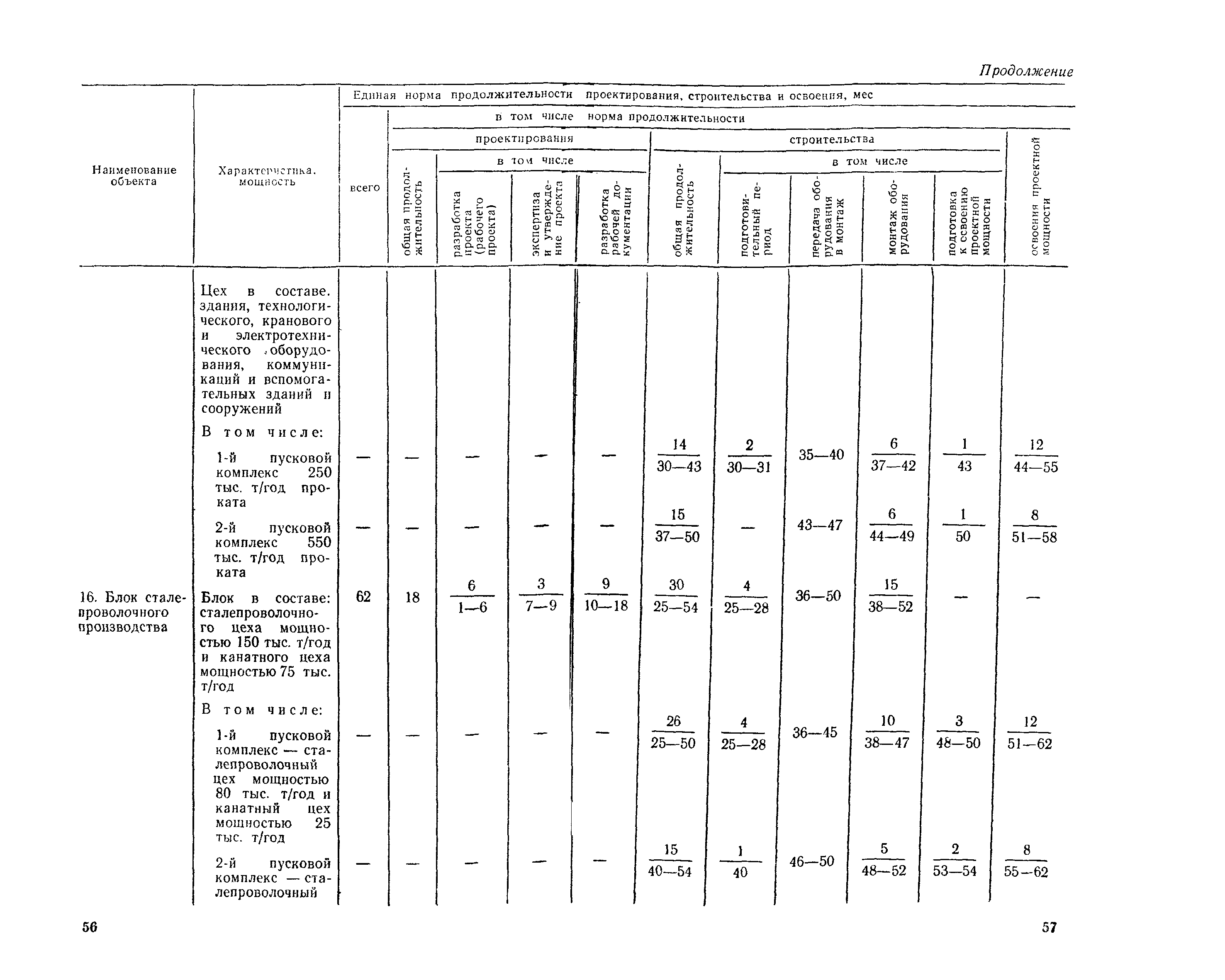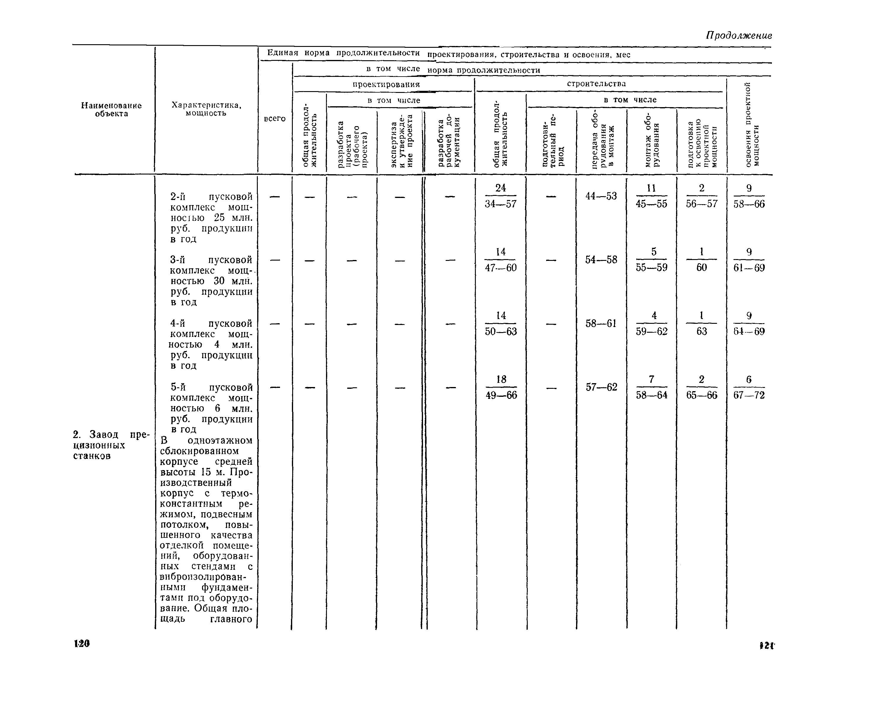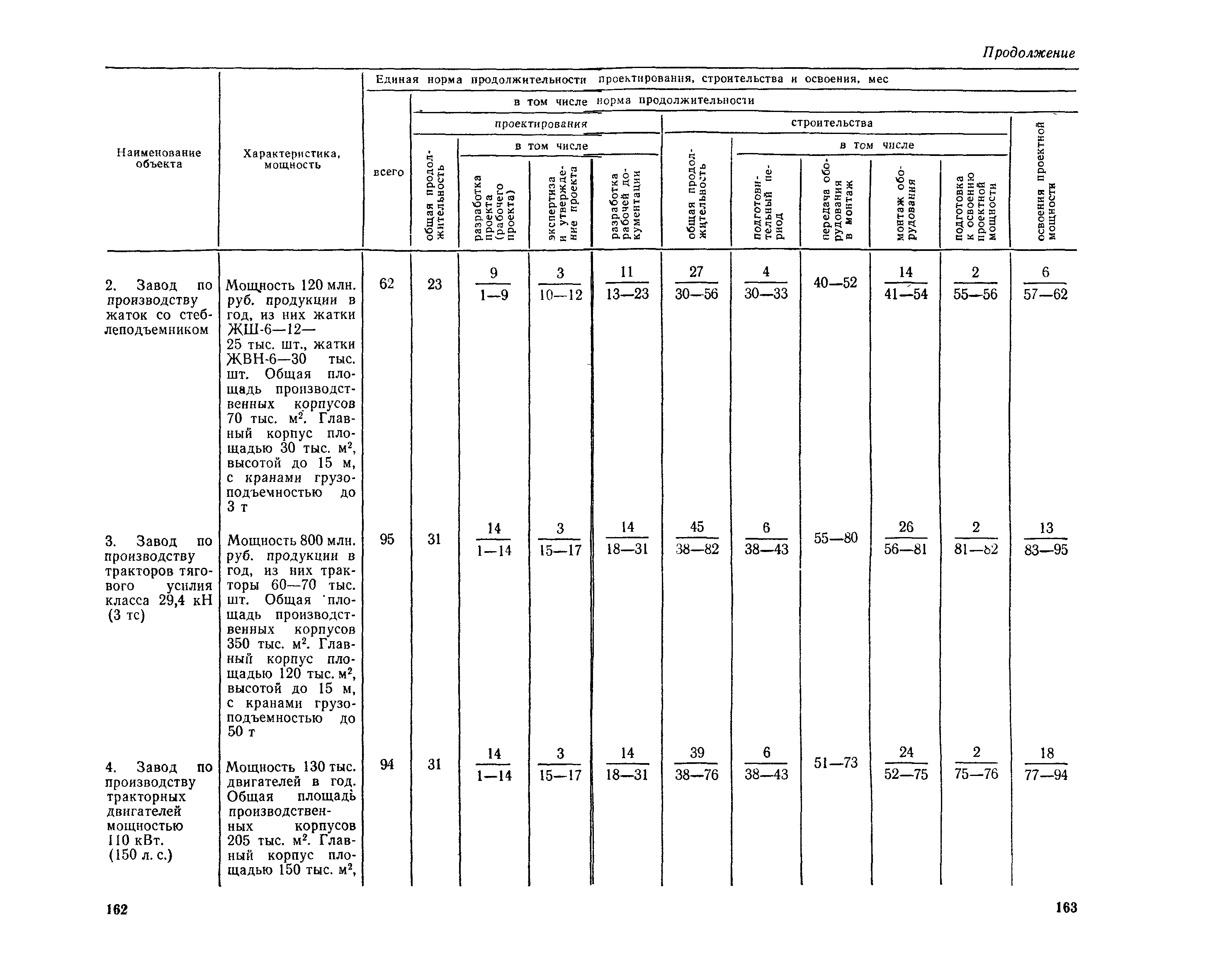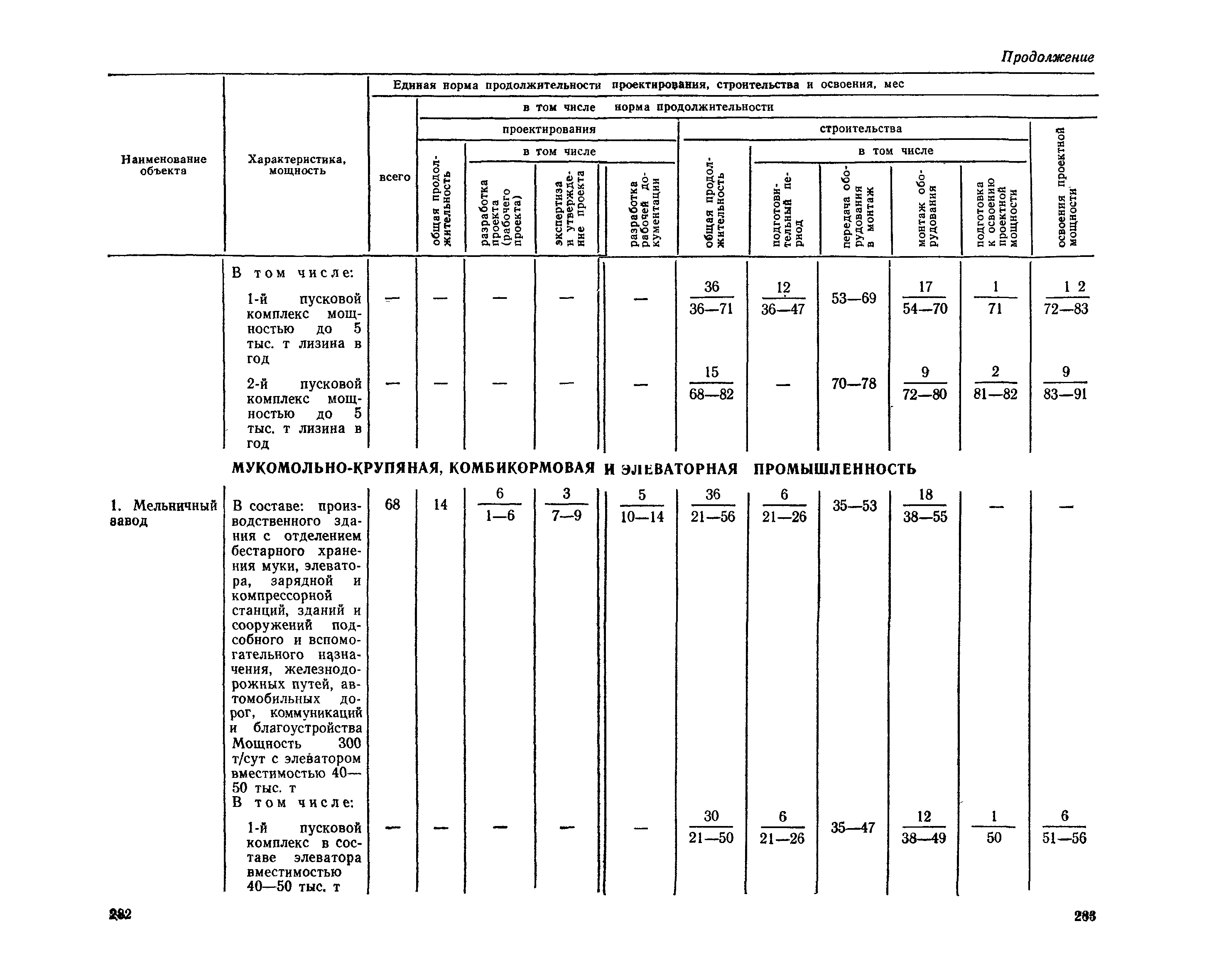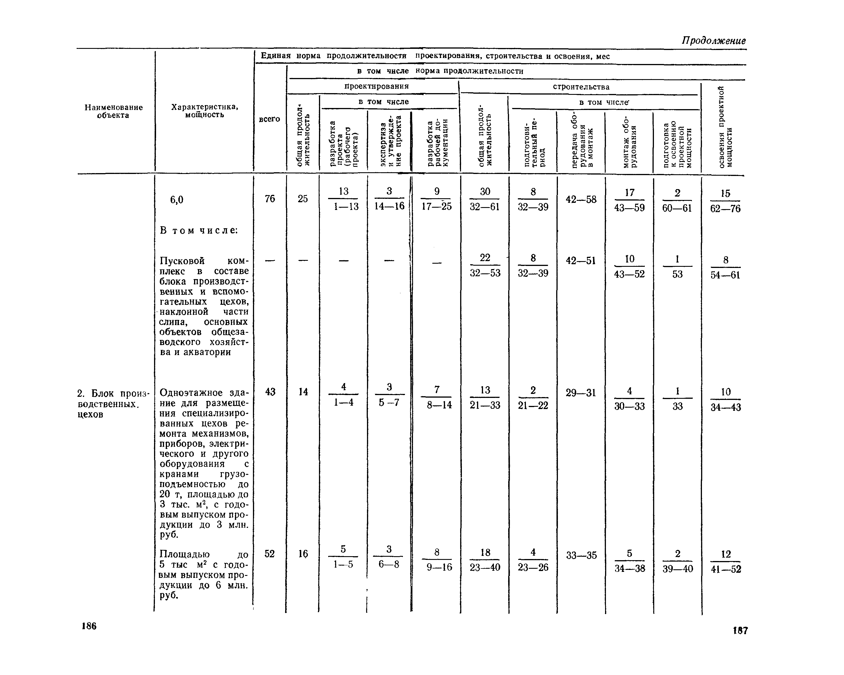 Единые нормы продолжительности проектирования и строительства предприятий, зданий и сооружений и освоения проектных мощностей| Статус: | действует | | Название рус.: | Единые нормы продолжительности проектирования и строительства предприятий, зданий и сооружений и освоения проектных мощностей | | Дата добавления в базу: | 01.09.2013 | | Дата актуализации: | 01.01.2021 | | Дата введения: | 01.07.1983 | | Область применения: | Единые нормы продолжительности проектирования и строительства предприятий, зданий н сооружений и освоения проектных мощностей устанавливают общую продолжительность создания производственных мощностей предприятий, зданий и сооружений. Единые нормы предназначены для составления перспективных планов капитальных вложений, а также схем развития и размещения отраслей народного хозяйства и отраслей промышленности в схем развития и размещения производительных сил по экономическим районам страны и союзным республикам. | | Оглавление: | Общие положения Электроэнергетика Нефтеперерабатывающая и нефтехимическая промышленность Газовая промышленность Угольная и сланцевая промышленность Черная металлургия Цветная металлургия Химическая промышленность Производство минеральных удобрений Машиностроение Тяжелое и транспортное машиностроение Электротехническая промышленность Химическое и нефтяное машиностроение Станкостроительная и инструментальная промышленность Производство продукции общемашиностроительного применения Приборостроение Автомобильная и подшипниковая промышленность Тракторное и сельскохозяйственное машиностроение Машиностроение для животноводства и кормопроизводства Строительное, дорожное и коммунальное машиностроение Машиностроение для легкой и пищевой промышленности и бытовых приборов Судостроительная промышленность и судоремонт Лесная, деревообрабатывающая и целлюлозно-бумажная промышленность Промышленность строительных материалов Промышленность строительных конструкций и деталей Легкая промышленность Пищевая промышленность Мясная промышленность Молочная промышленность Микробиологическая промышленность Мукомольно-крупяная, комбикормовая и элеваторная промышленность Медицинская промышленность Сельскохозяйственное строительство Предприятия сельхозтехники | | Разработан: | ЦНИИпроект Госстроя России ВНИПИнефть ЦНИИОМТП НИИПИН
