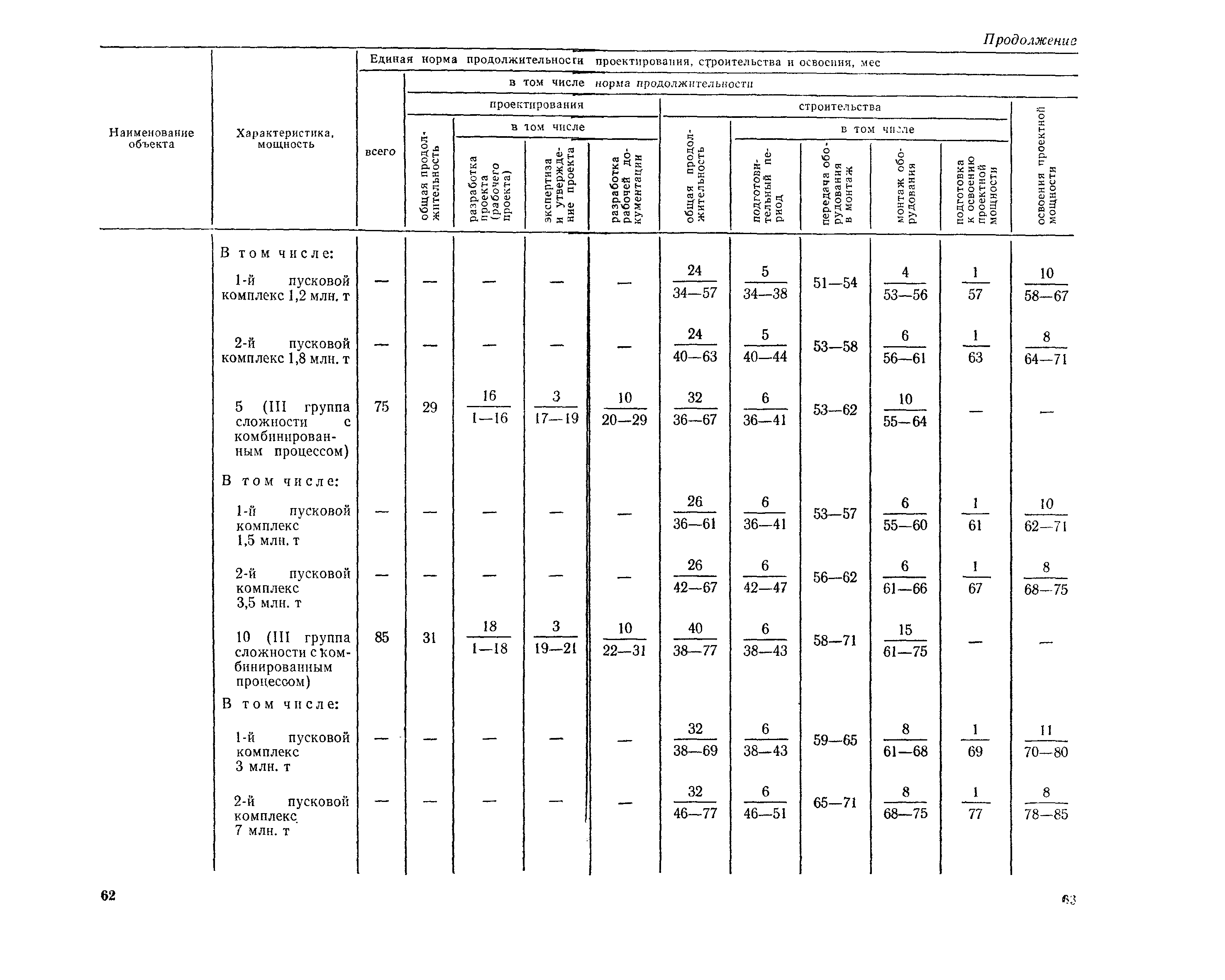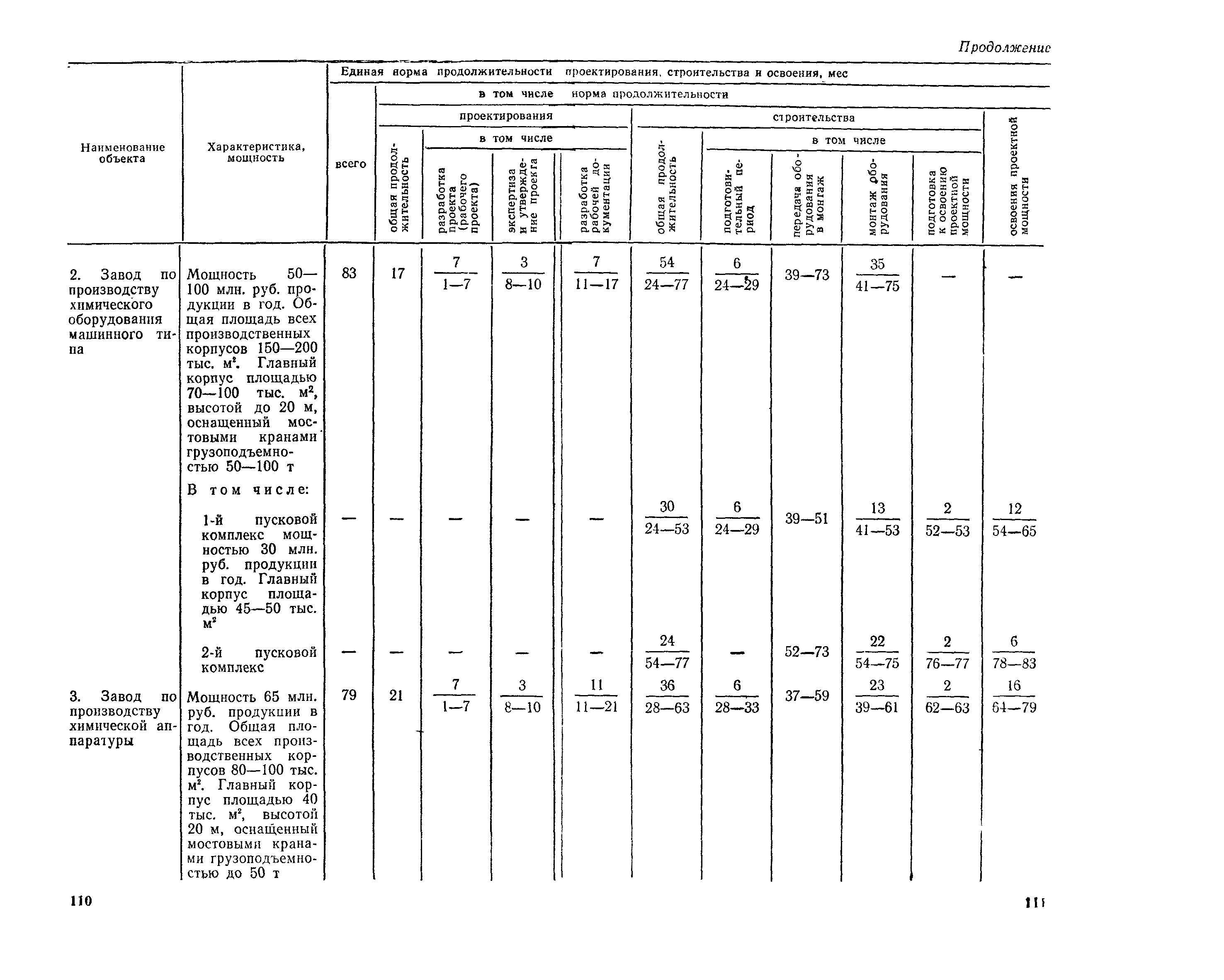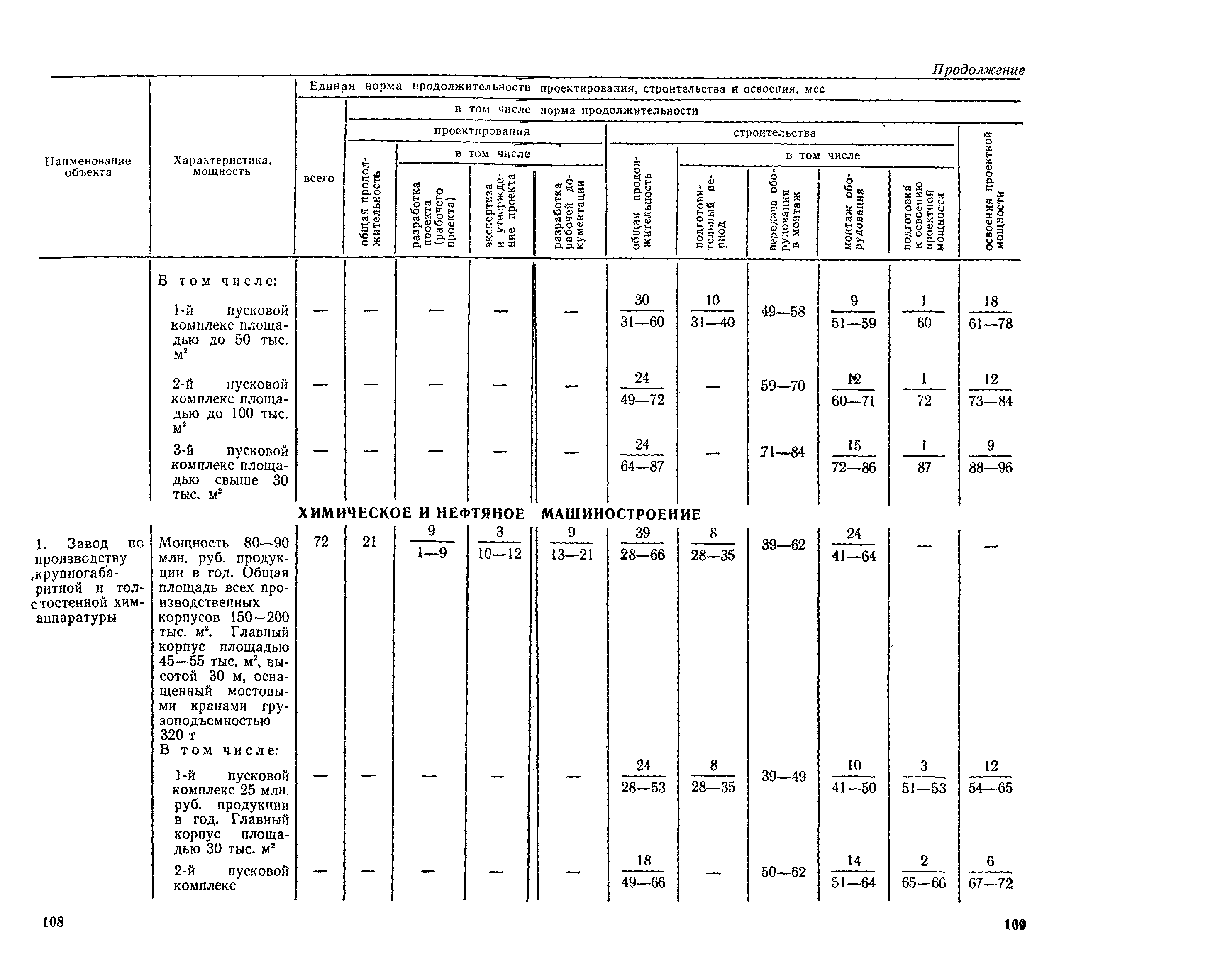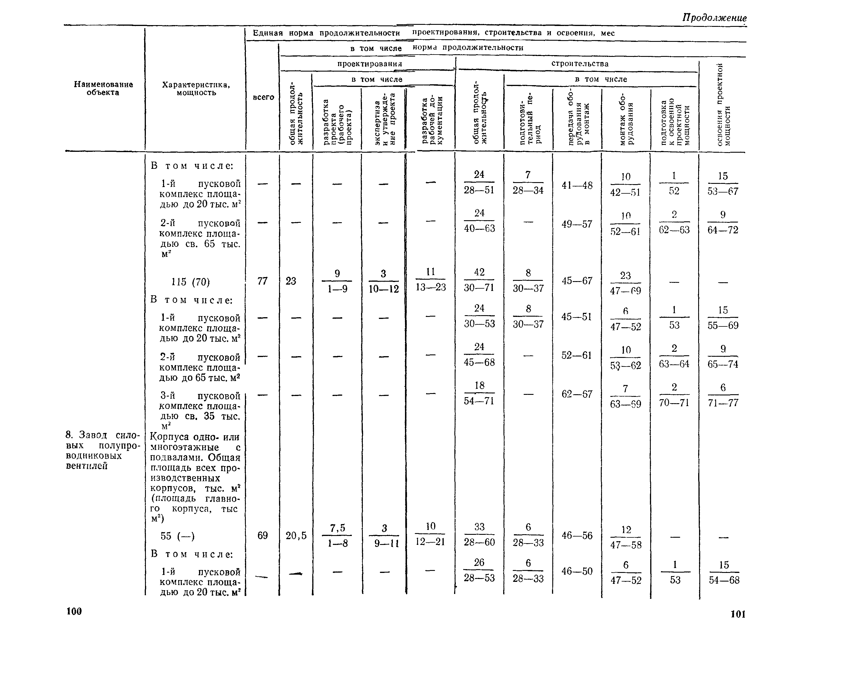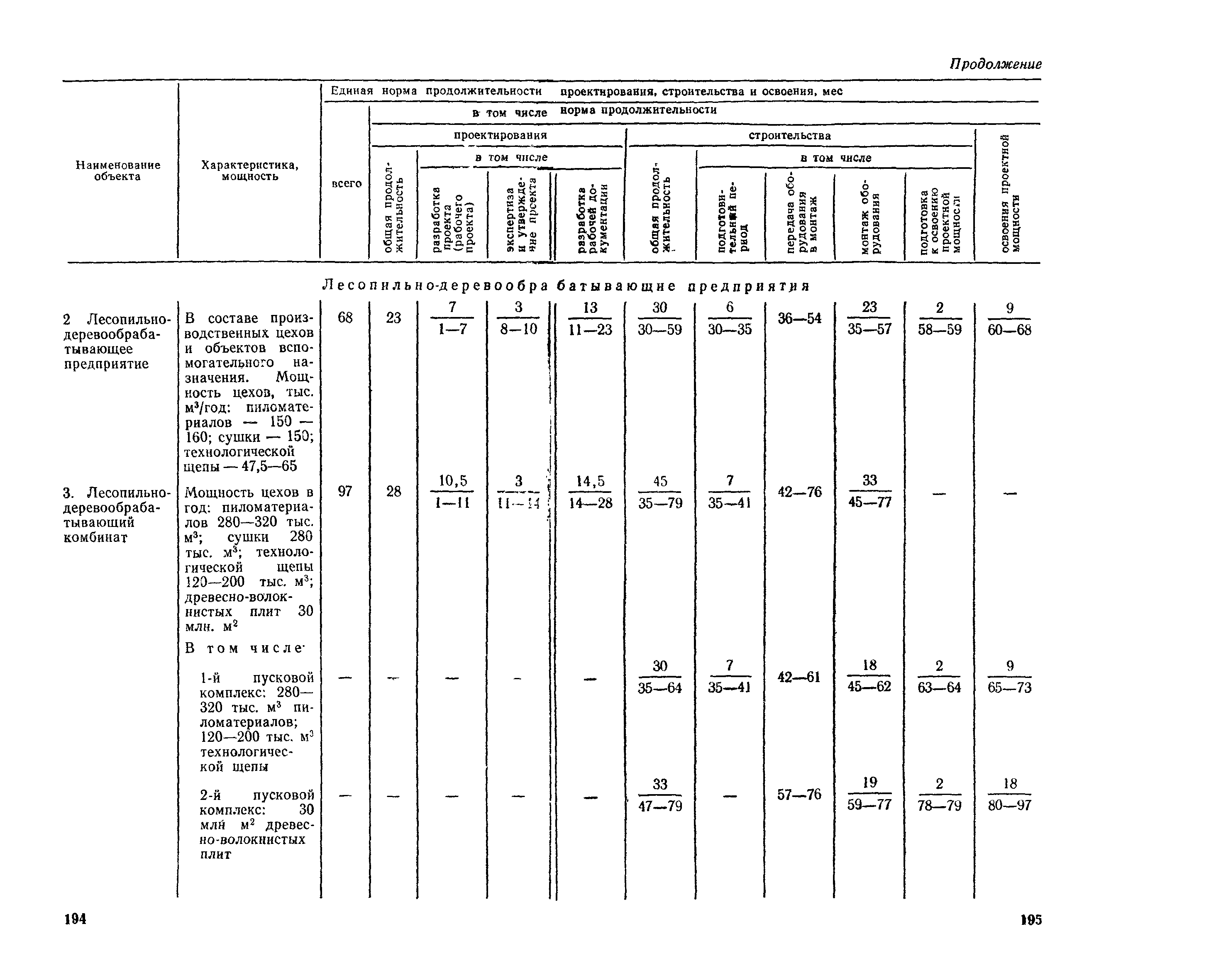Единые нормы продолжительности проектирования и строительства предприятий, зданий и сооружений и освоения проектных мощностей| Статус: | действует | | Название рус.: | Единые нормы продолжительности проектирования и строительства предприятий, зданий и сооружений и освоения проектных мощностей | | Дата добавления в базу: | 01.09.2013 | | Дата актуализации: | 01.01.2021 | | Дата введения: | 01.07.1983 | | Область применения: | Единые нормы продолжительности проектирования и строительства предприятий, зданий н сооружений и освоения проектных мощностей устанавливают общую продолжительность создания производственных мощностей предприятий, зданий и сооружений. Единые нормы предназначены для составления перспективных планов капитальных вложений, а также схем развития и размещения отраслей народного хозяйства и отраслей промышленности в схем развития и размещения производительных сил по экономическим районам страны и союзным республикам. | | Оглавление: | Общие положения Электроэнергетика Нефтеперерабатывающая и нефтехимическая промышленность Газовая промышленность Угольная и сланцевая промышленность Черная металлургия Цветная металлургия Химическая промышленность Производство минеральных удобрений Машиностроение Тяжелое и транспортное машиностроение Электротехническая промышленность Химическое и нефтяное машиностроение Станкостроительная и инструментальная промышленность Производство продукции общемашиностроительного применения Приборостроение Автомобильная и подшипниковая промышленность Тракторное и сельскохозяйственное машиностроение Машиностроение для животноводства и кормопроизводства Строительное, дорожное и коммунальное машиностроение Машиностроение для легкой и пищевой промышленности и бытовых приборов Судостроительная промышленность и судоремонт Лесная, деревообрабатывающая и целлюлозно-бумажная промышленность Промышленность строительных материалов Промышленность строительных конструкций и деталей Легкая промышленность Пищевая промышленность Мясная промышленность Молочная промышленность Микробиологическая промышленность Мукомольно-крупяная, комбикормовая и элеваторная промышленность Медицинская промышленность Сельскохозяйственное строительство Предприятия сельхозтехники | | Разработан: | ЦНИИпроект Госстроя России ВНИПИнефть ЦНИИОМТП НИИПИН