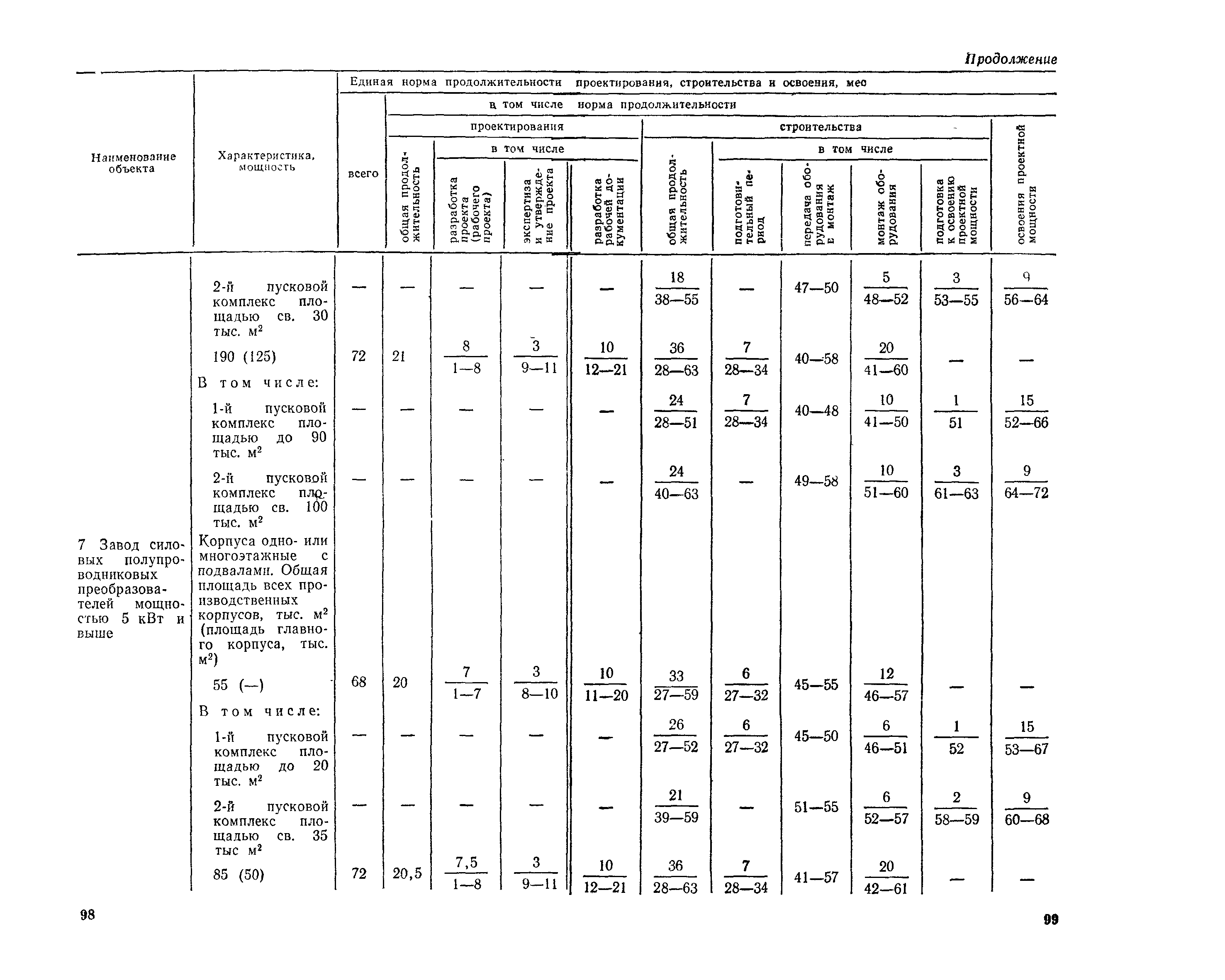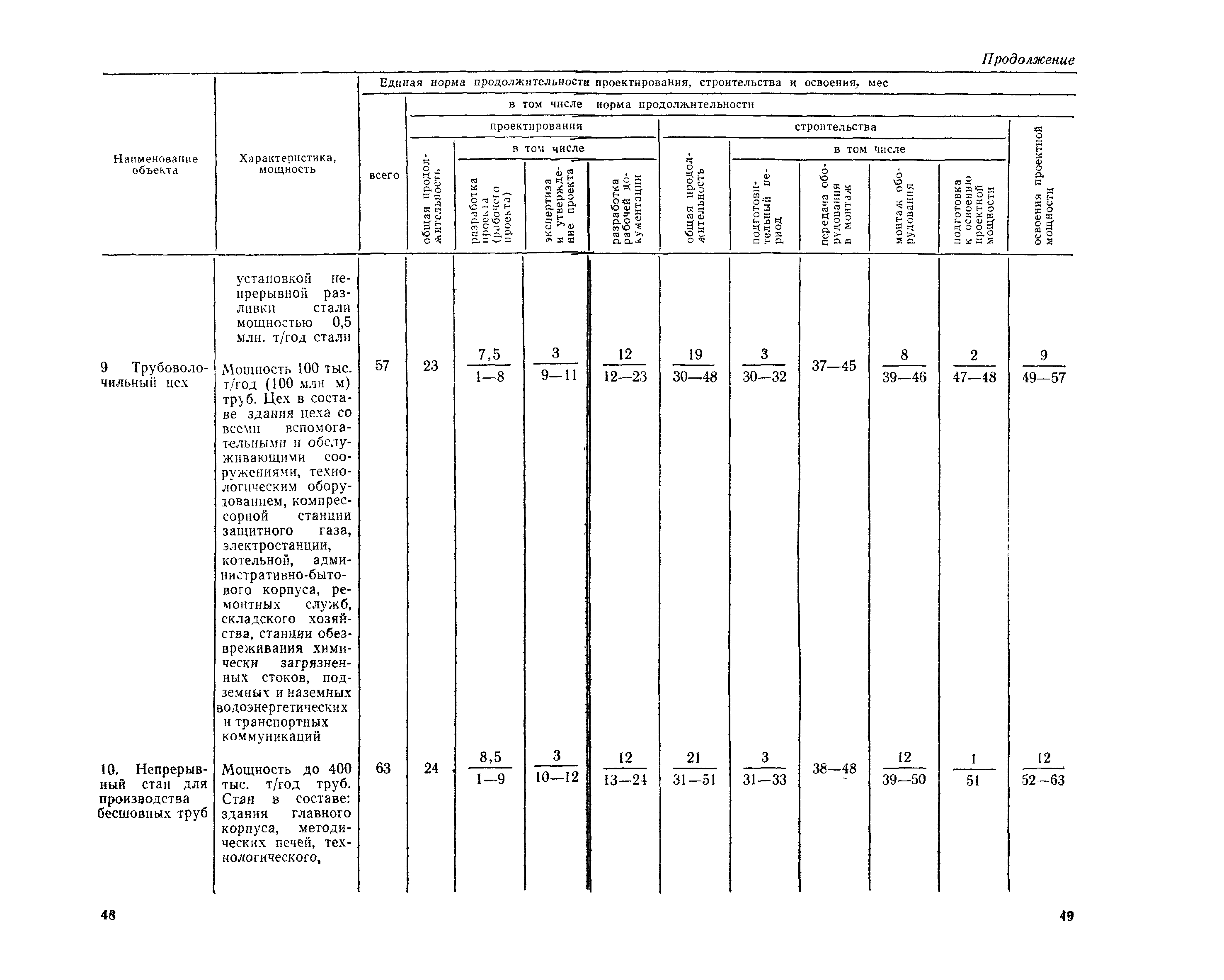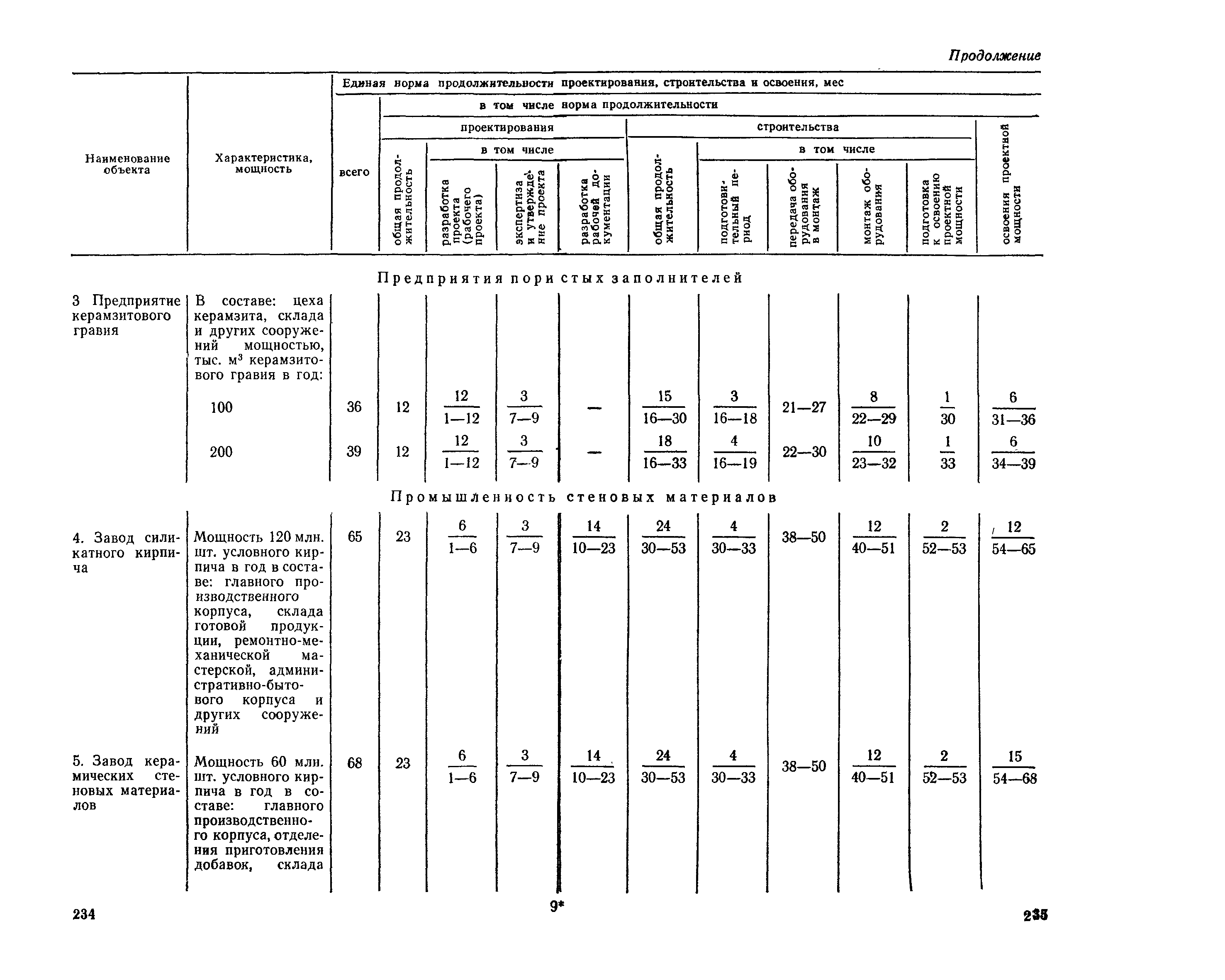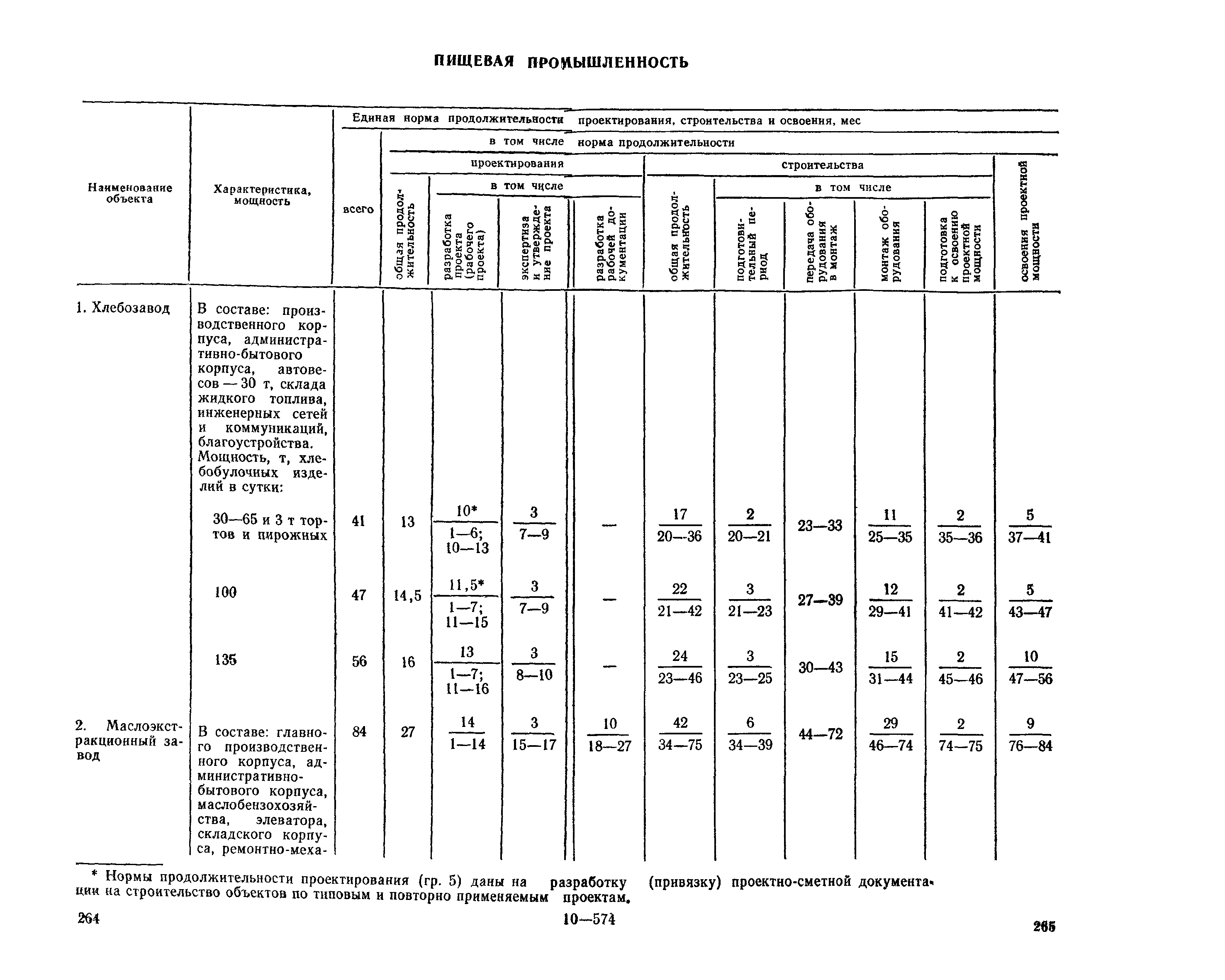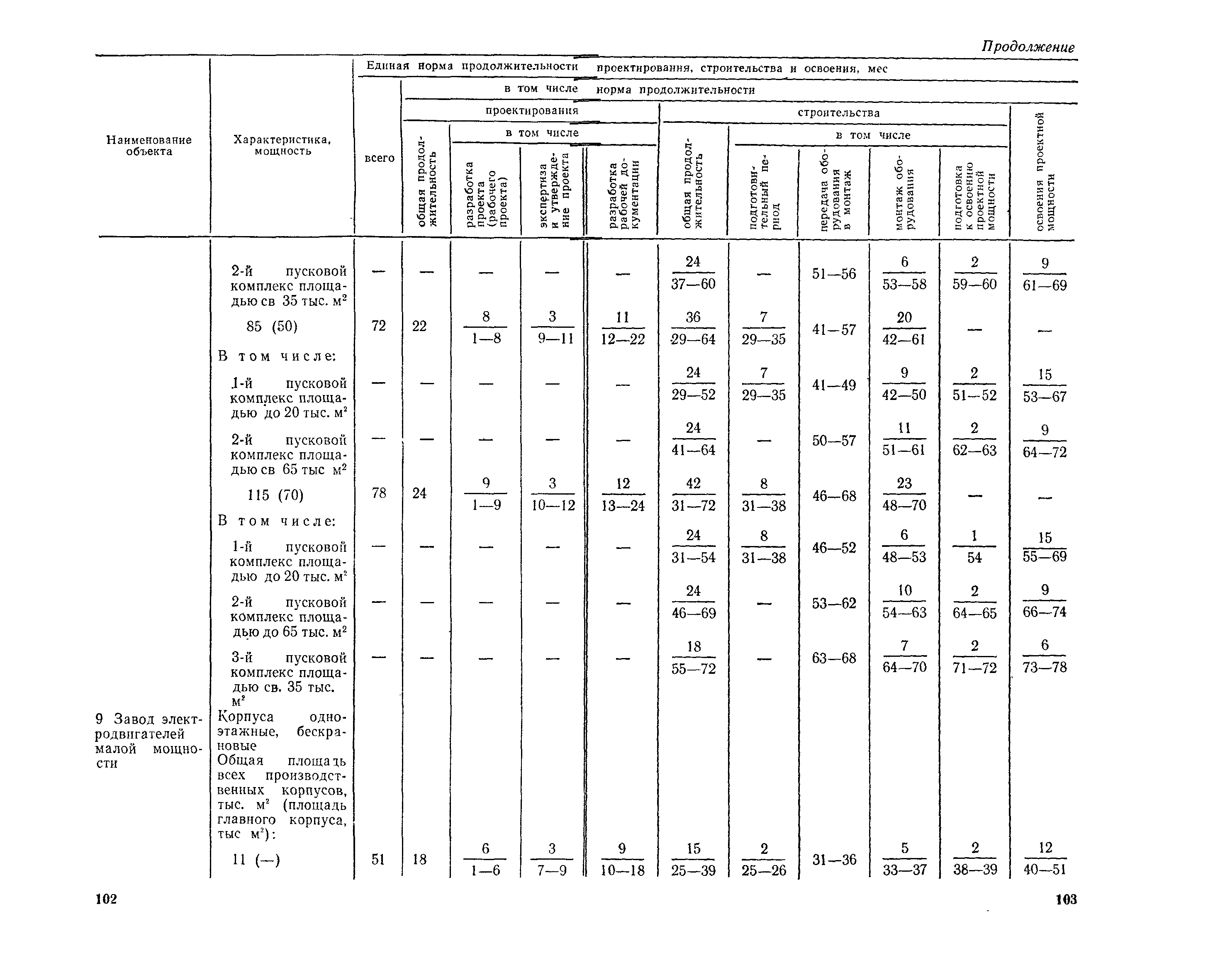 Единые нормы продолжительности проектирования и строительства предприятий, зданий и сооружений и освоения проектных мощностей| Статус: | действует | | Название рус.: | Единые нормы продолжительности проектирования и строительства предприятий, зданий и сооружений и освоения проектных мощностей | | Дата добавления в базу: | 01.09.2013 | | Дата актуализации: | 01.01.2021 | | Дата введения: | 01.07.1983 | | Область применения: | Единые нормы продолжительности проектирования и строительства предприятий, зданий н сооружений и освоения проектных мощностей устанавливают общую продолжительность создания производственных мощностей предприятий, зданий и сооружений. Единые нормы предназначены для составления перспективных планов капитальных вложений, а также схем развития и размещения отраслей народного хозяйства и отраслей промышленности в схем развития и размещения производительных сил по экономическим районам страны и союзным республикам. | | Оглавление: | Общие положения Электроэнергетика Нефтеперерабатывающая и нефтехимическая промышленность Газовая промышленность Угольная и сланцевая промышленность Черная металлургия Цветная металлургия Химическая промышленность Производство минеральных удобрений Машиностроение Тяжелое и транспортное машиностроение Электротехническая промышленность Химическое и нефтяное машиностроение Станкостроительная и инструментальная промышленность Производство продукции общемашиностроительного применения Приборостроение Автомобильная и подшипниковая промышленность Тракторное и сельскохозяйственное машиностроение Машиностроение для животноводства и кормопроизводства Строительное, дорожное и коммунальное машиностроение Машиностроение для легкой и пищевой промышленности и бытовых приборов Судостроительная промышленность и судоремонт Лесная, деревообрабатывающая и целлюлозно-бумажная промышленность Промышленность строительных материалов Промышленность строительных конструкций и деталей Легкая промышленность Пищевая промышленность Мясная промышленность Молочная промышленность Микробиологическая промышленность Мукомольно-крупяная, комбикормовая и элеваторная промышленность Медицинская промышленность Сельскохозяйственное строительство Предприятия сельхозтехники | | Разработан: | ЦНИИпроект Госстроя России ВНИПИнефть ЦНИИОМТП НИИПИН