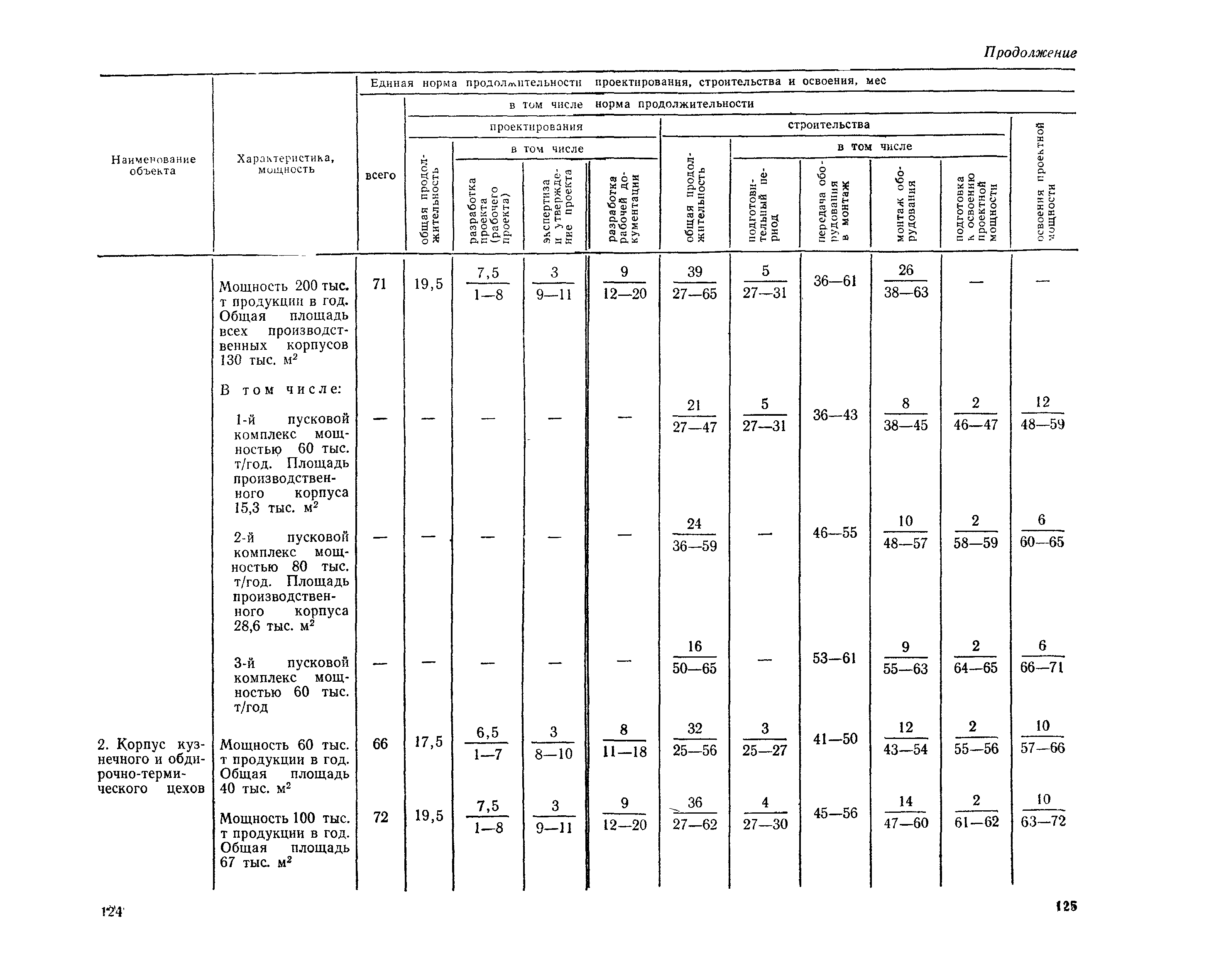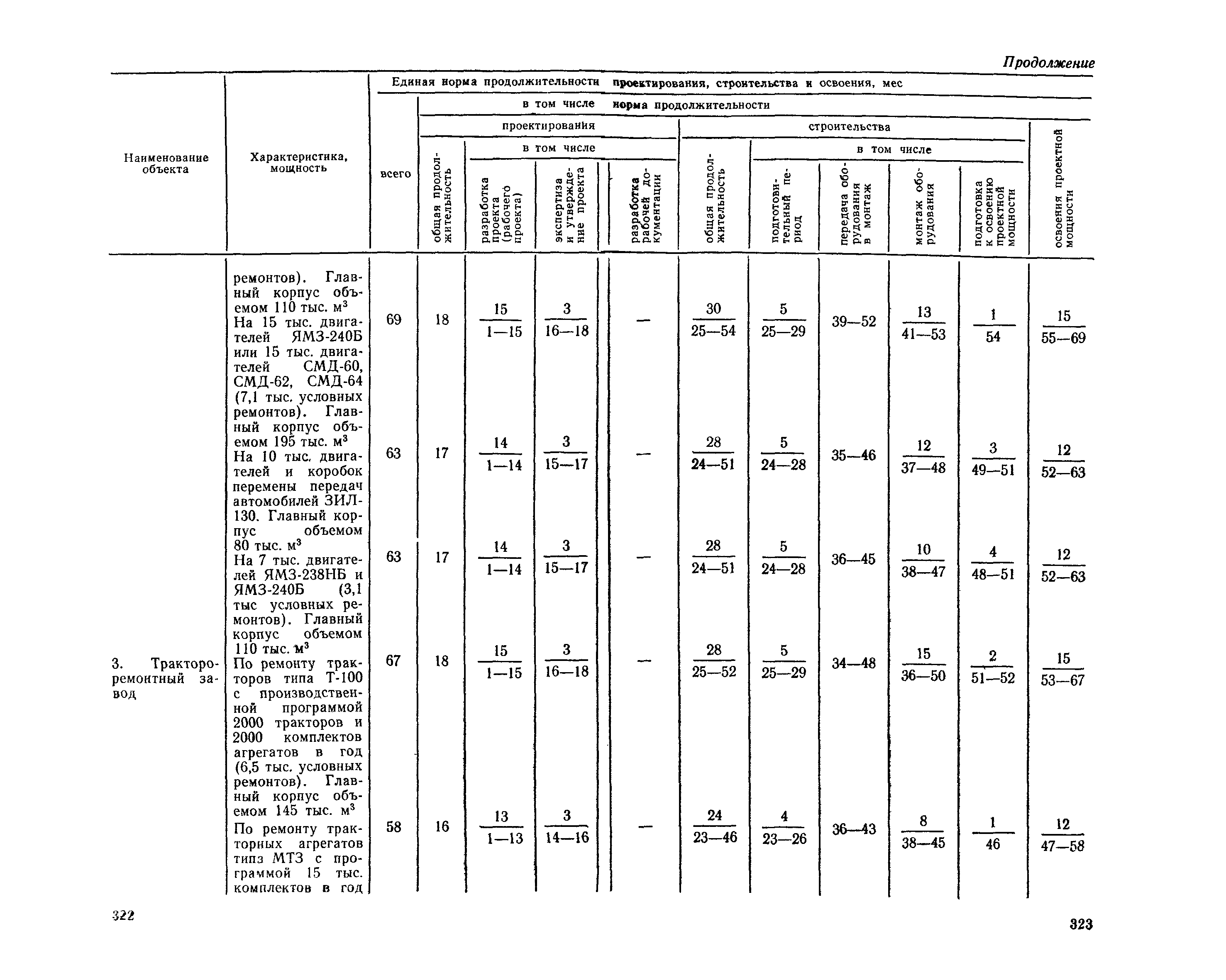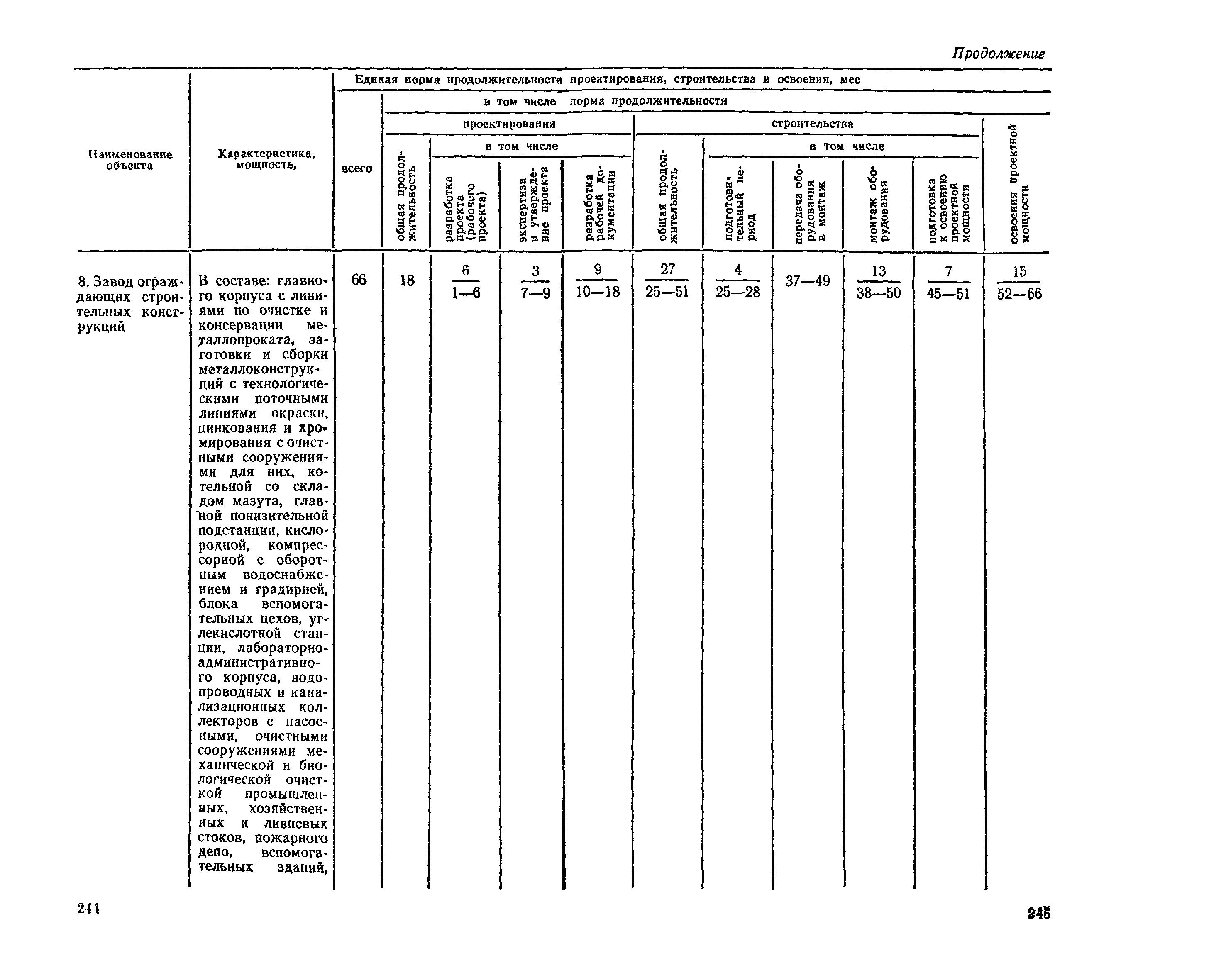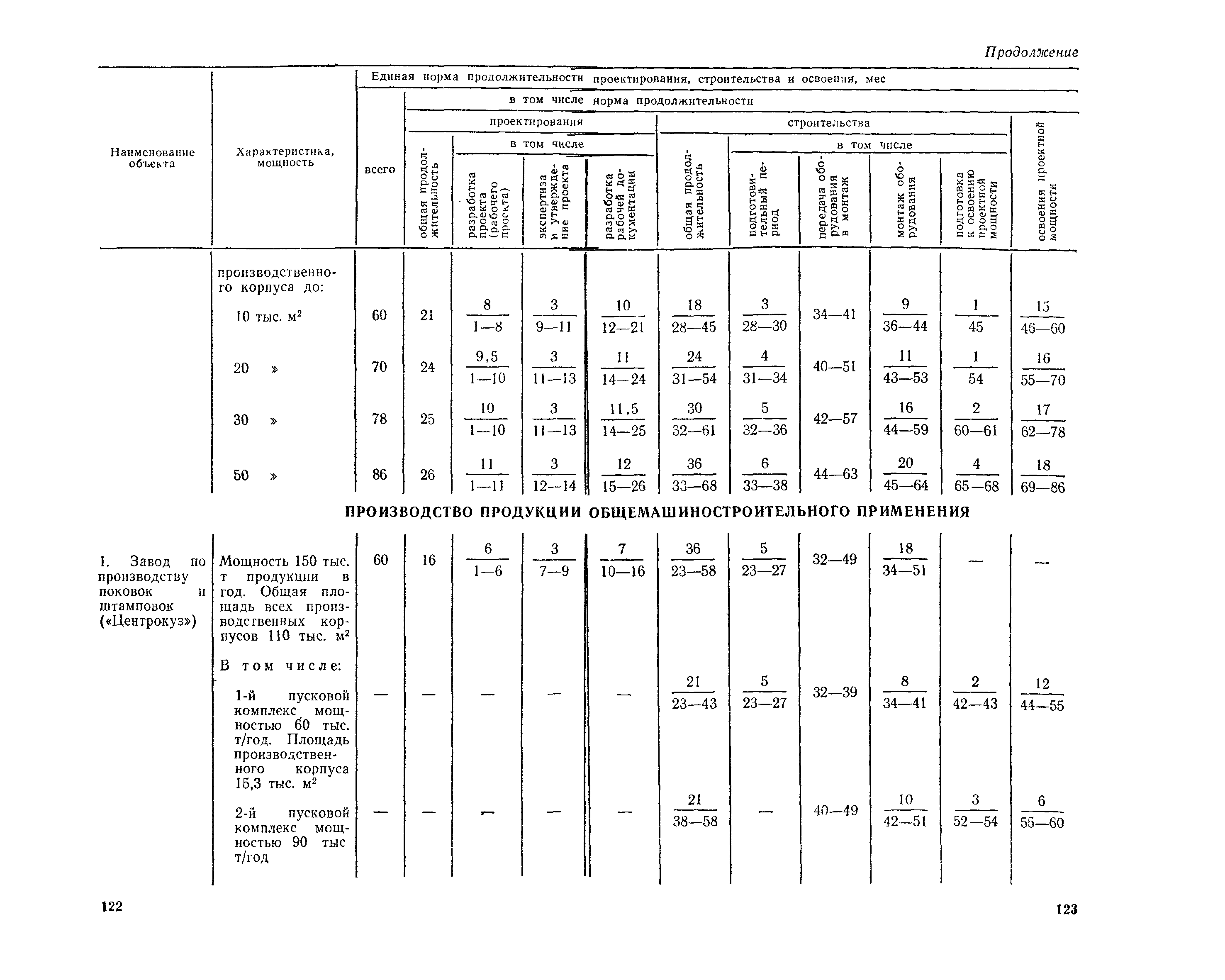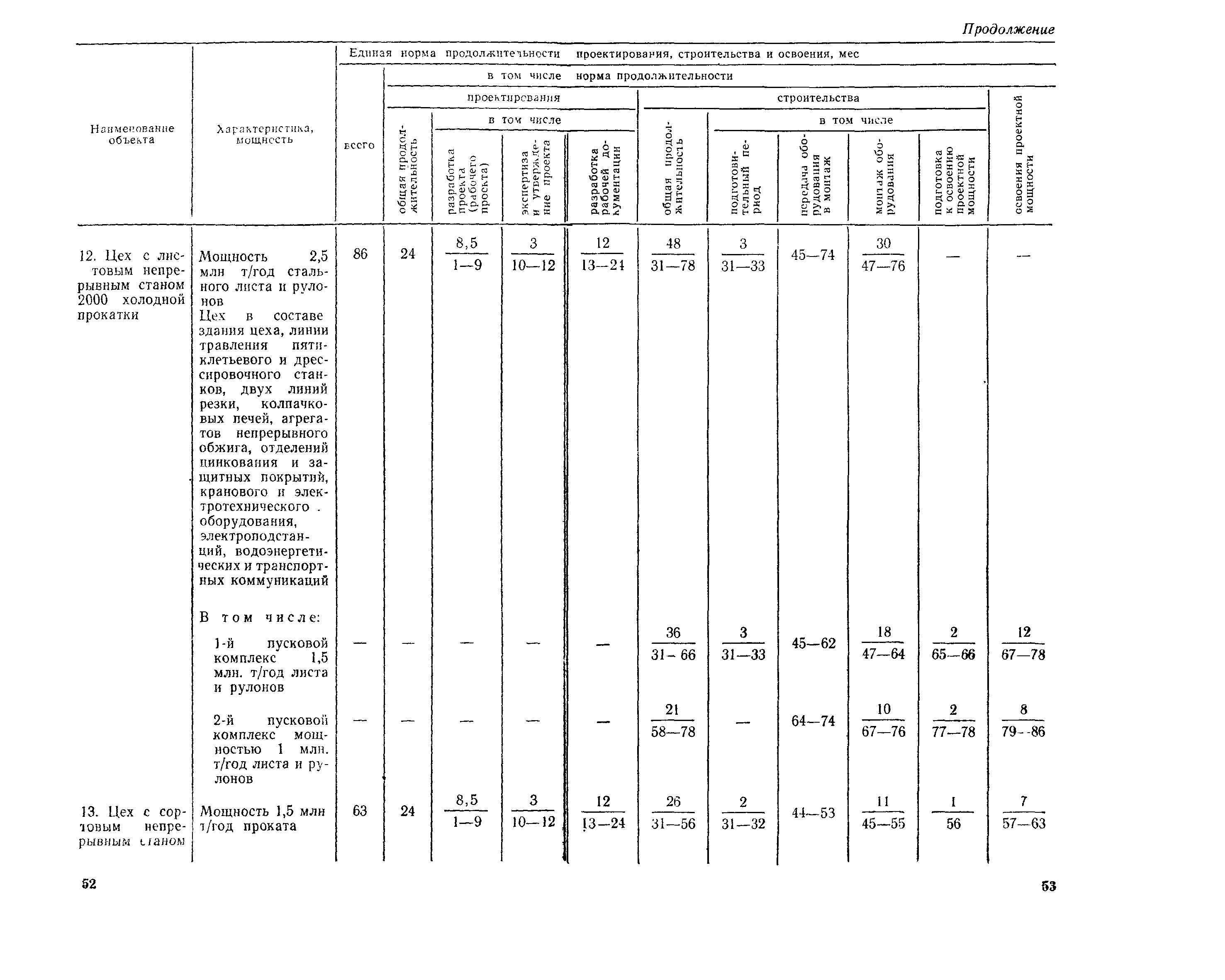 Единые нормы продолжительности проектирования и строительства предприятий, зданий и сооружений и освоения проектных мощностей| Статус: | действует | | Название рус.: | Единые нормы продолжительности проектирования и строительства предприятий, зданий и сооружений и освоения проектных мощностей | | Дата добавления в базу: | 01.09.2013 | | Дата актуализации: | 01.01.2021 | | Дата введения: | 01.07.1983 | | Область применения: | Единые нормы продолжительности проектирования и строительства предприятий, зданий н сооружений и освоения проектных мощностей устанавливают общую продолжительность создания производственных мощностей предприятий, зданий и сооружений. Единые нормы предназначены для составления перспективных планов капитальных вложений, а также схем развития и размещения отраслей народного хозяйства и отраслей промышленности в схем развития и размещения производительных сил по экономическим районам страны и союзным республикам. | | Оглавление: | Общие положения Электроэнергетика Нефтеперерабатывающая и нефтехимическая промышленность Газовая промышленность Угольная и сланцевая промышленность Черная металлургия Цветная металлургия Химическая промышленность Производство минеральных удобрений Машиностроение Тяжелое и транспортное машиностроение Электротехническая промышленность Химическое и нефтяное машиностроение Станкостроительная и инструментальная промышленность Производство продукции общемашиностроительного применения Приборостроение Автомобильная и подшипниковая промышленность Тракторное и сельскохозяйственное машиностроение Машиностроение для животноводства и кормопроизводства Строительное, дорожное и коммунальное машиностроение Машиностроение для легкой и пищевой промышленности и бытовых приборов Судостроительная промышленность и судоремонт Лесная, деревообрабатывающая и целлюлозно-бумажная промышленность Промышленность строительных материалов Промышленность строительных конструкций и деталей Легкая промышленность Пищевая промышленность Мясная промышленность Молочная промышленность Микробиологическая промышленность Мукомольно-крупяная, комбикормовая и элеваторная промышленность Медицинская промышленность Сельскохозяйственное строительство Предприятия сельхозтехники | | Разработан: | ЦНИИпроект Госстроя России ВНИПИнефть ЦНИИОМТП НИИПИН