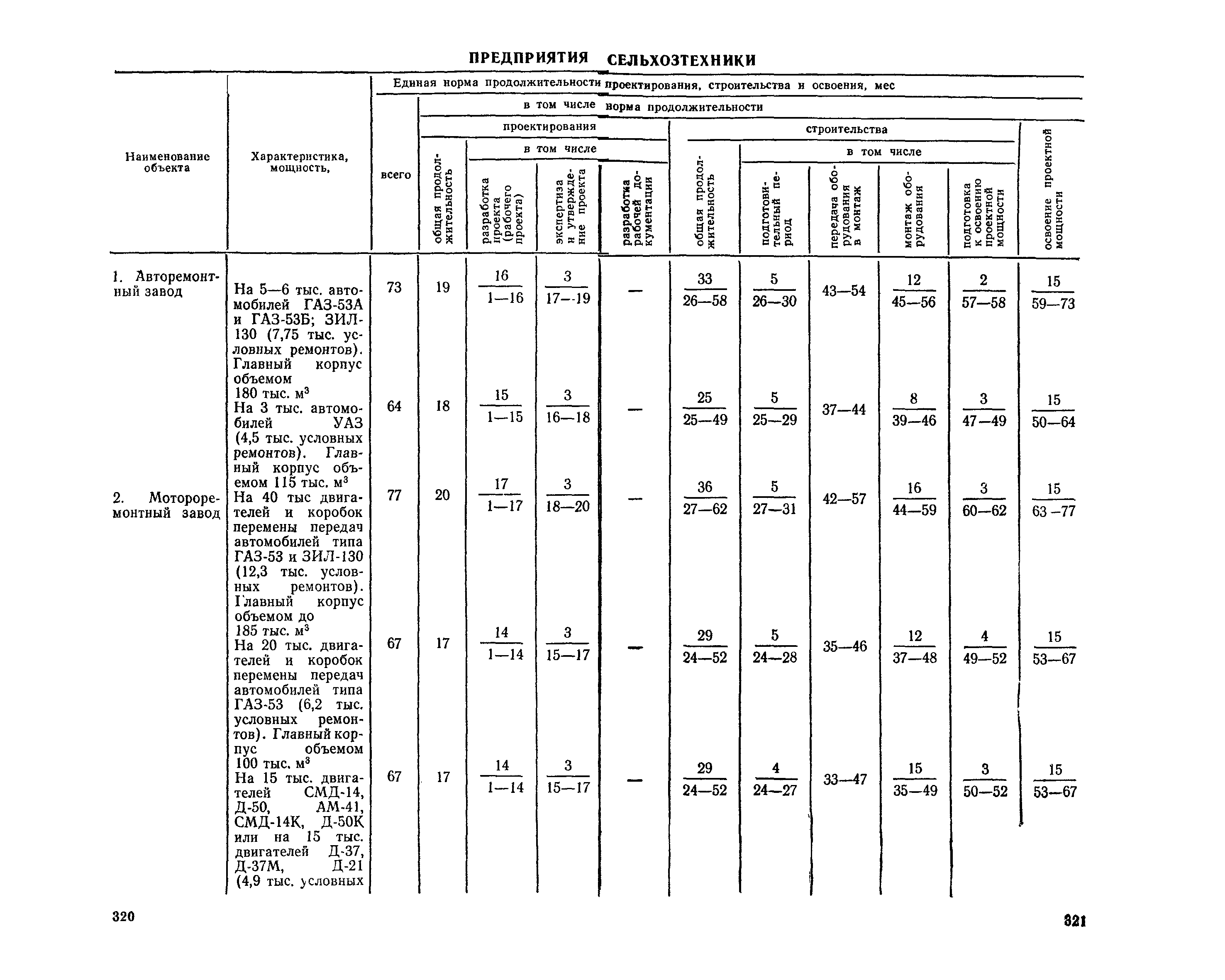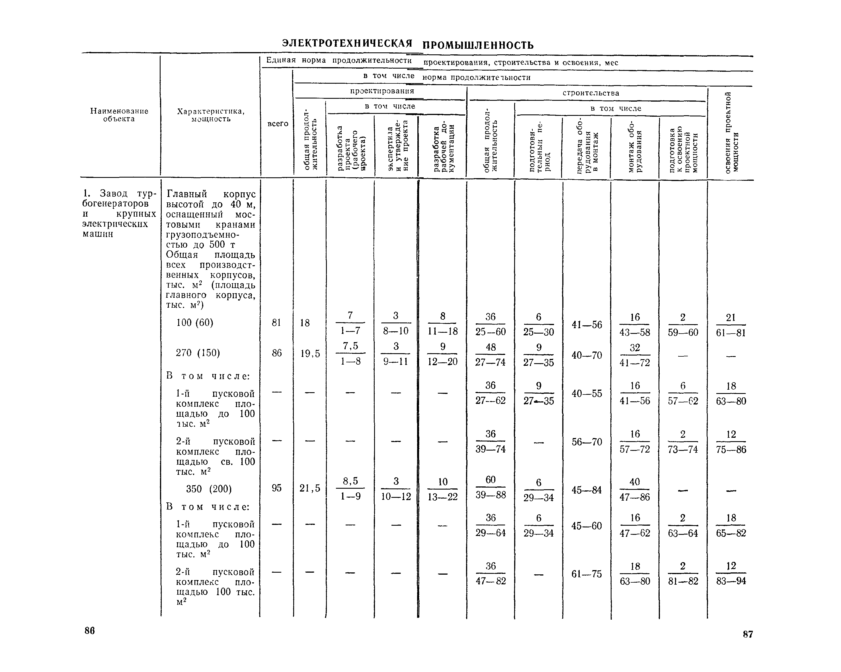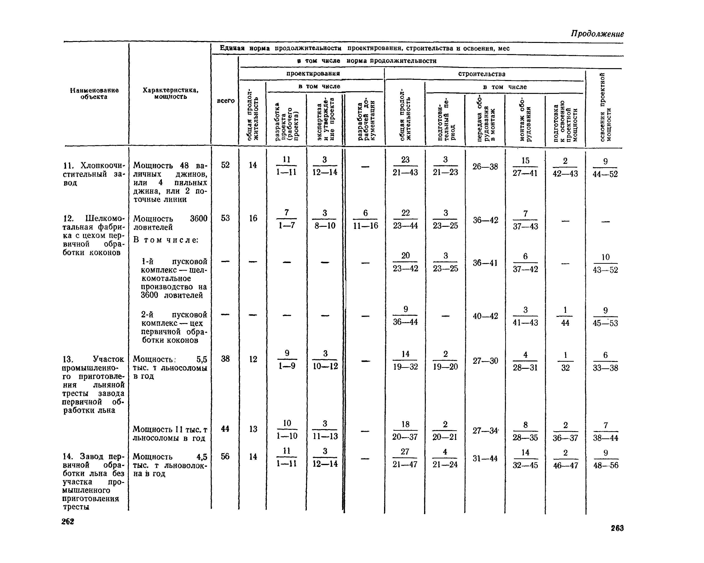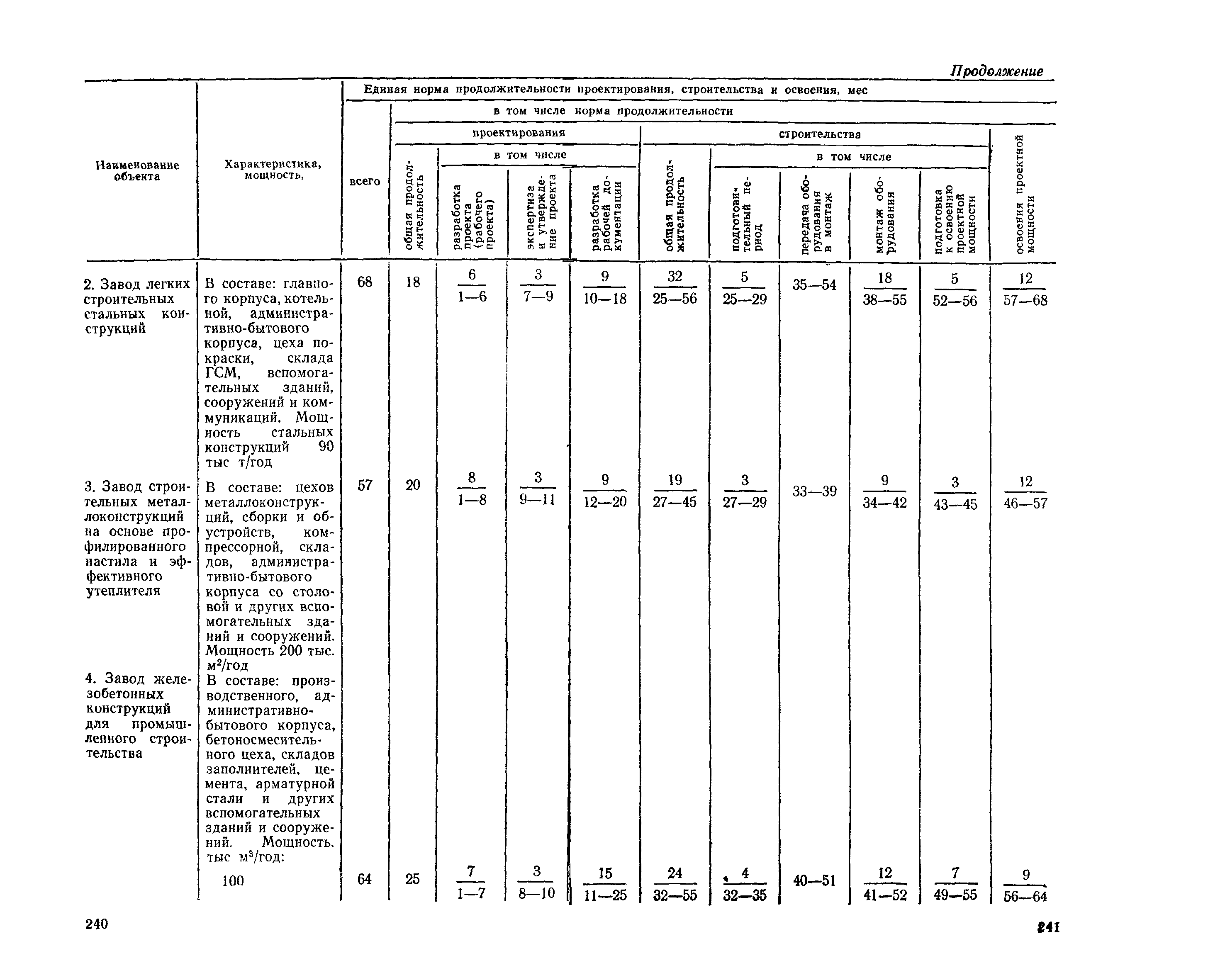 Единые нормы продолжительности проектирования и строительства предприятий, зданий и сооружений и освоения проектных мощностей| Статус: | действует | | Название рус.: | Единые нормы продолжительности проектирования и строительства предприятий, зданий и сооружений и освоения проектных мощностей | | Дата добавления в базу: | 01.09.2013 | | Дата актуализации: | 01.01.2021 | | Дата введения: | 01.07.1983 | | Область применения: | Единые нормы продолжительности проектирования и строительства предприятий, зданий н сооружений и освоения проектных мощностей устанавливают общую продолжительность создания производственных мощностей предприятий, зданий и сооружений. Единые нормы предназначены для составления перспективных планов капитальных вложений, а также схем развития и размещения отраслей народного хозяйства и отраслей промышленности в схем развития и размещения производительных сил по экономическим районам страны и союзным республикам. | | Оглавление: | Общие положения Электроэнергетика Нефтеперерабатывающая и нефтехимическая промышленность Газовая промышленность Угольная и сланцевая промышленность Черная металлургия Цветная металлургия Химическая промышленность Производство минеральных удобрений Машиностроение Тяжелое и транспортное машиностроение Электротехническая промышленность Химическое и нефтяное машиностроение Станкостроительная и инструментальная промышленность Производство продукции общемашиностроительного применения Приборостроение Автомобильная и подшипниковая промышленность Тракторное и сельскохозяйственное машиностроение Машиностроение для животноводства и кормопроизводства Строительное, дорожное и коммунальное машиностроение Машиностроение для легкой и пищевой промышленности и бытовых приборов Судостроительная промышленность и судоремонт Лесная, деревообрабатывающая и целлюлозно-бумажная промышленность Промышленность строительных материалов Промышленность строительных конструкций и деталей Легкая промышленность Пищевая промышленность Мясная промышленность Молочная промышленность Микробиологическая промышленность Мукомольно-крупяная, комбикормовая и элеваторная промышленность Медицинская промышленность Сельскохозяйственное строительство Предприятия сельхозтехники | | Разработан: | ЦНИИпроект Госстроя России ВНИПИнефть ЦНИИОМТП НИИПИН