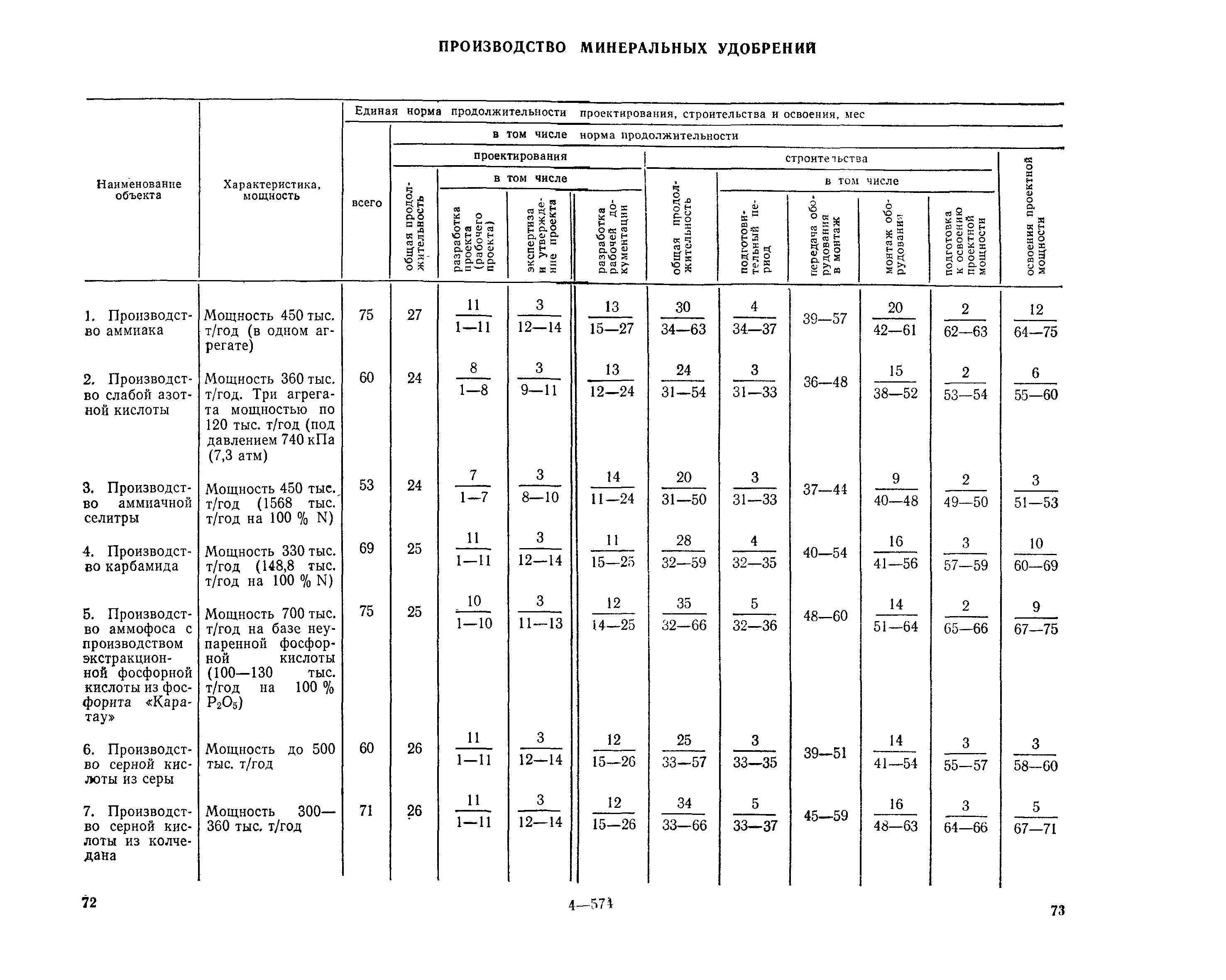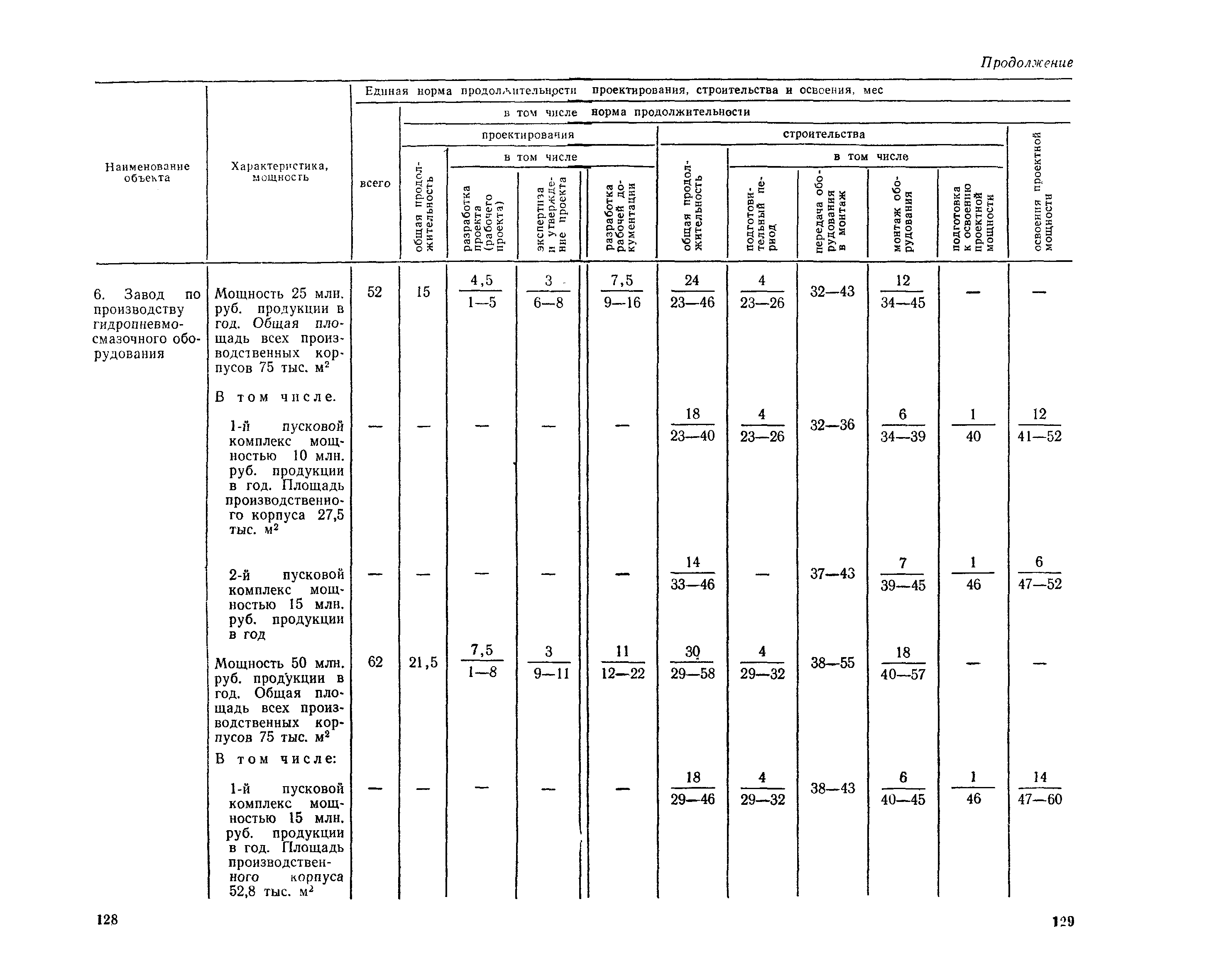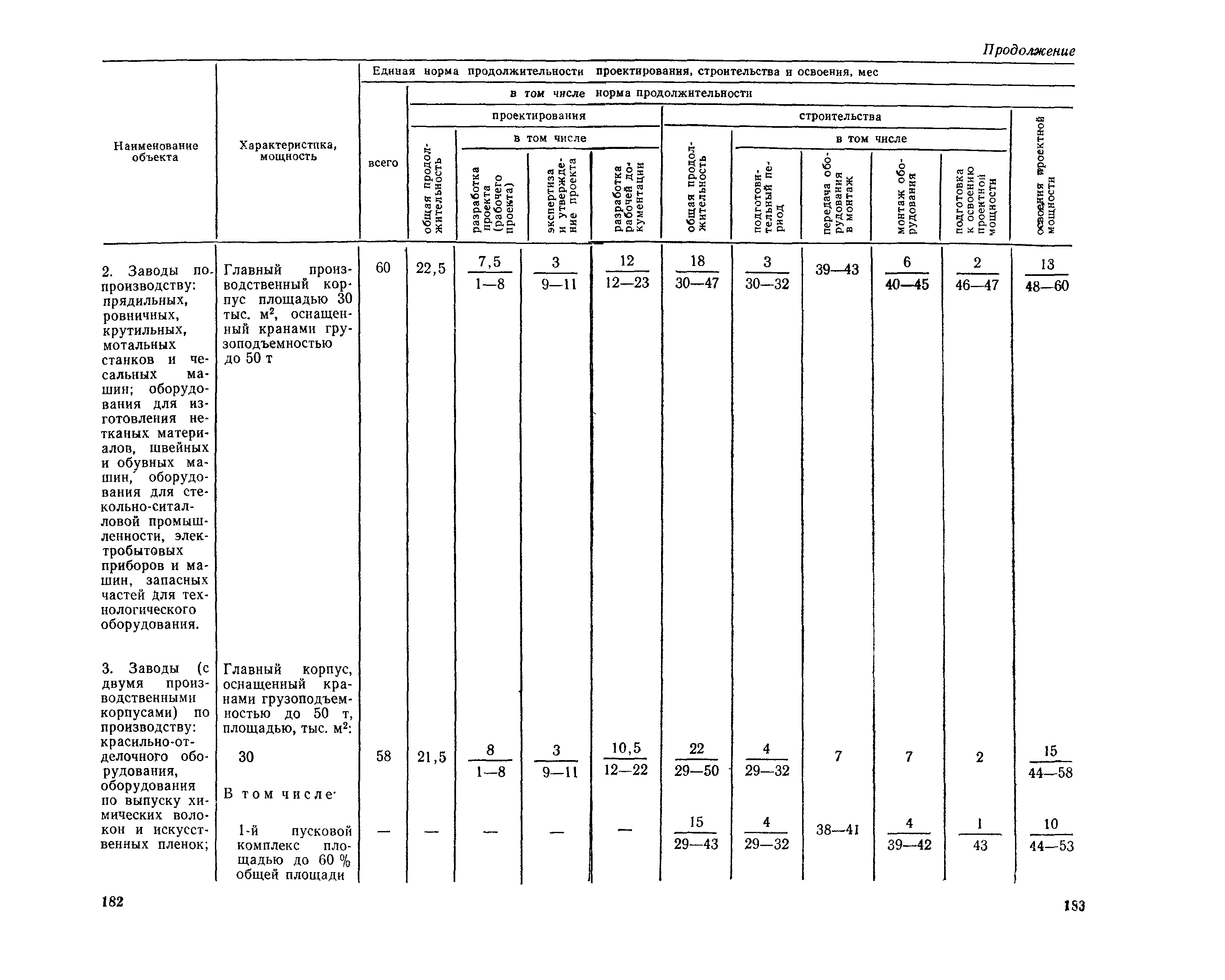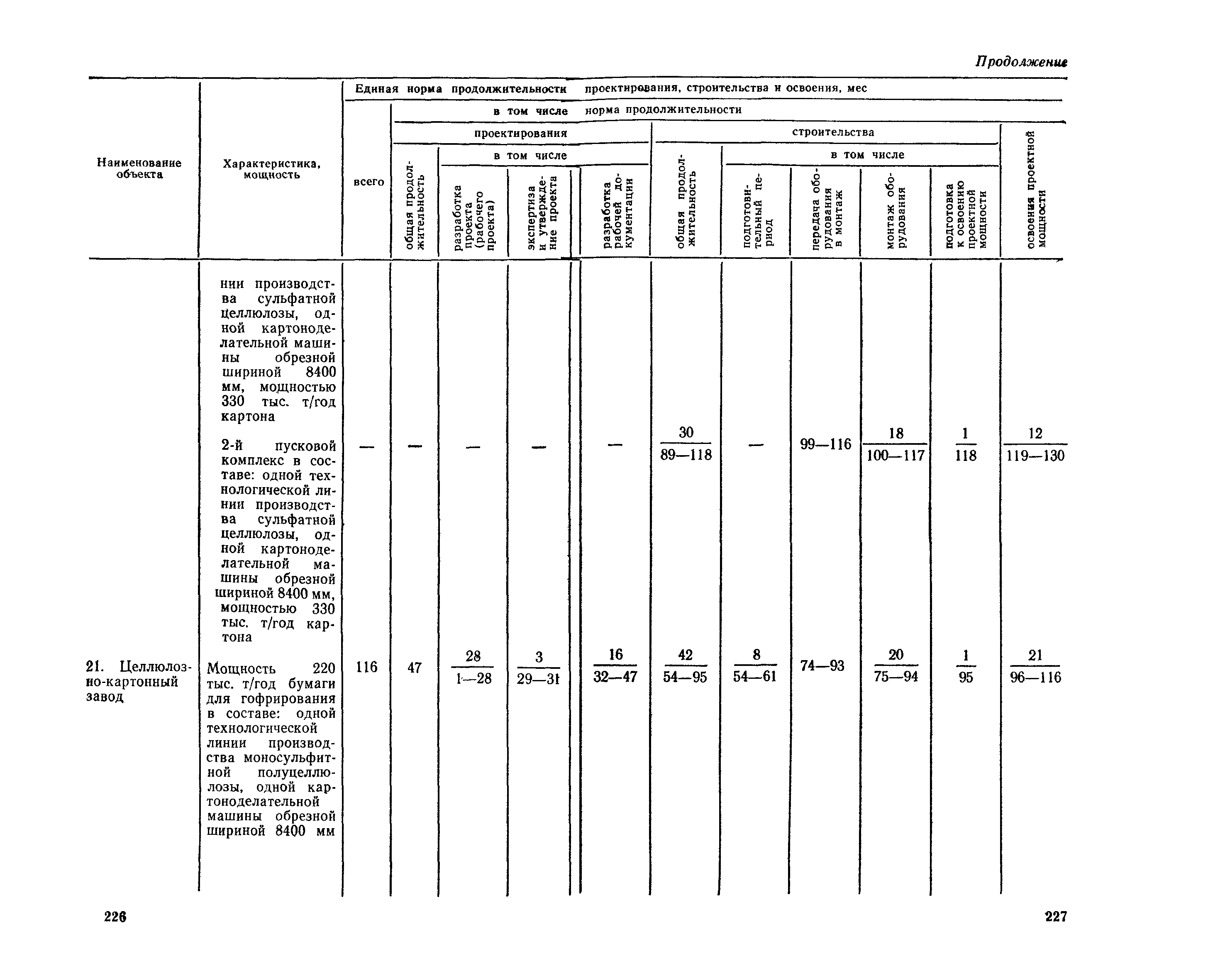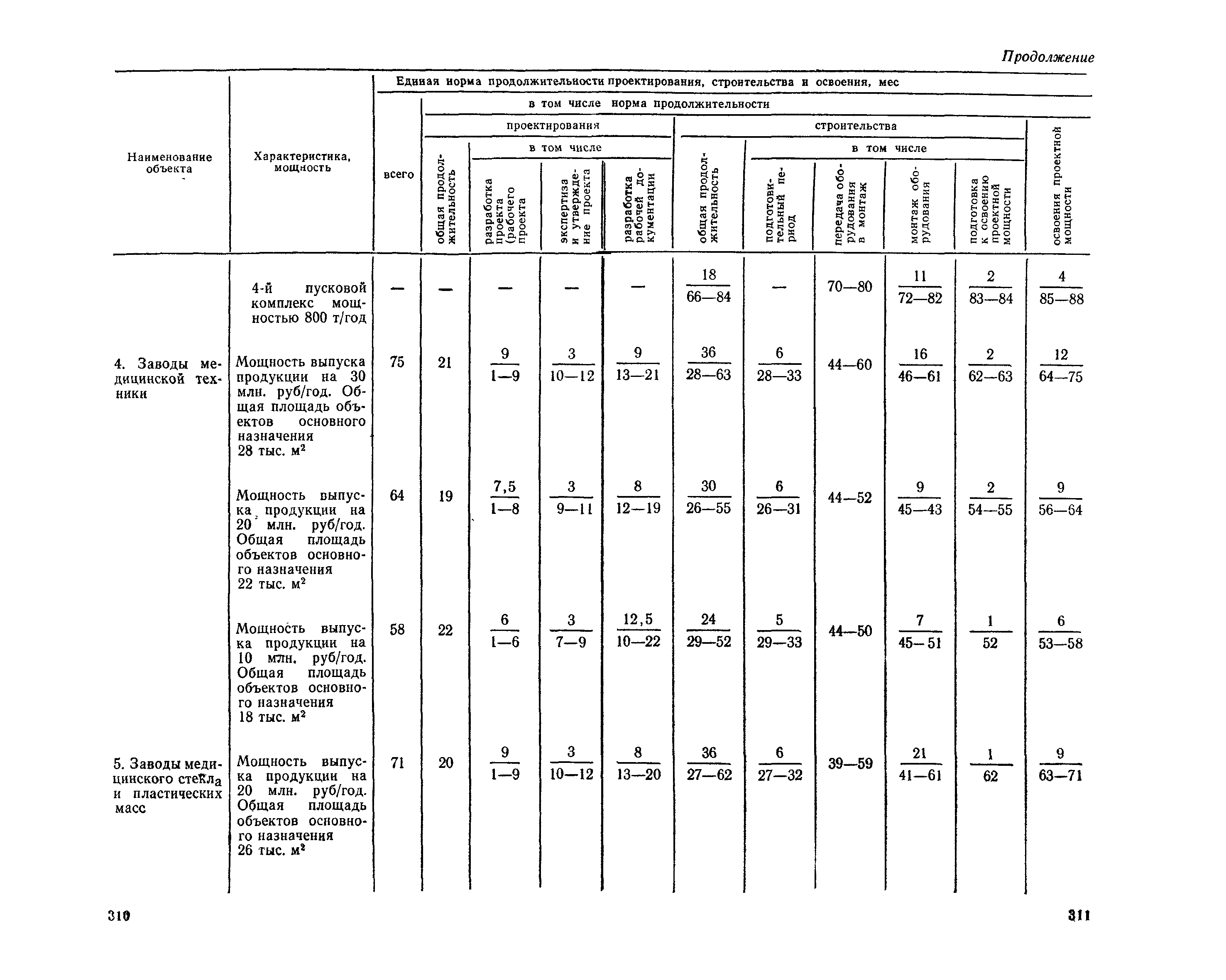 Единые нормы продолжительности проектирования и строительства предприятий, зданий и сооружений и освоения проектных мощностей| Статус: | действует | | Название рус.: | Единые нормы продолжительности проектирования и строительства предприятий, зданий и сооружений и освоения проектных мощностей | | Дата добавления в базу: | 01.09.2013 | | Дата актуализации: | 01.01.2021 | | Дата введения: | 01.07.1983 | | Область применения: | Единые нормы продолжительности проектирования и строительства предприятий, зданий н сооружений и освоения проектных мощностей устанавливают общую продолжительность создания производственных мощностей предприятий, зданий и сооружений. Единые нормы предназначены для составления перспективных планов капитальных вложений, а также схем развития и размещения отраслей народного хозяйства и отраслей промышленности в схем развития и размещения производительных сил по экономическим районам страны и союзным республикам. | | Оглавление: | Общие положения Электроэнергетика Нефтеперерабатывающая и нефтехимическая промышленность Газовая промышленность Угольная и сланцевая промышленность Черная металлургия Цветная металлургия Химическая промышленность Производство минеральных удобрений Машиностроение Тяжелое и транспортное машиностроение Электротехническая промышленность Химическое и нефтяное машиностроение Станкостроительная и инструментальная промышленность Производство продукции общемашиностроительного применения Приборостроение Автомобильная и подшипниковая промышленность Тракторное и сельскохозяйственное машиностроение Машиностроение для животноводства и кормопроизводства Строительное, дорожное и коммунальное машиностроение Машиностроение для легкой и пищевой промышленности и бытовых приборов Судостроительная промышленность и судоремонт Лесная, деревообрабатывающая и целлюлозно-бумажная промышленность Промышленность строительных материалов Промышленность строительных конструкций и деталей Легкая промышленность Пищевая промышленность Мясная промышленность Молочная промышленность Микробиологическая промышленность Мукомольно-крупяная, комбикормовая и элеваторная промышленность Медицинская промышленность Сельскохозяйственное строительство Предприятия сельхозтехники | | Разработан: | ЦНИИпроект Госстроя России ВНИПИнефть ЦНИИОМТП НИИПИН