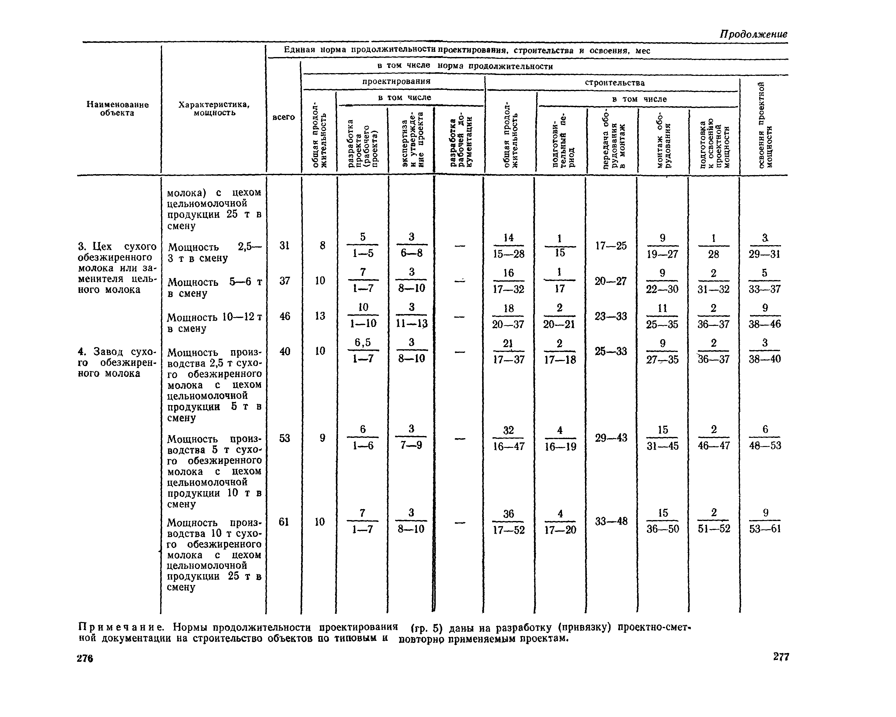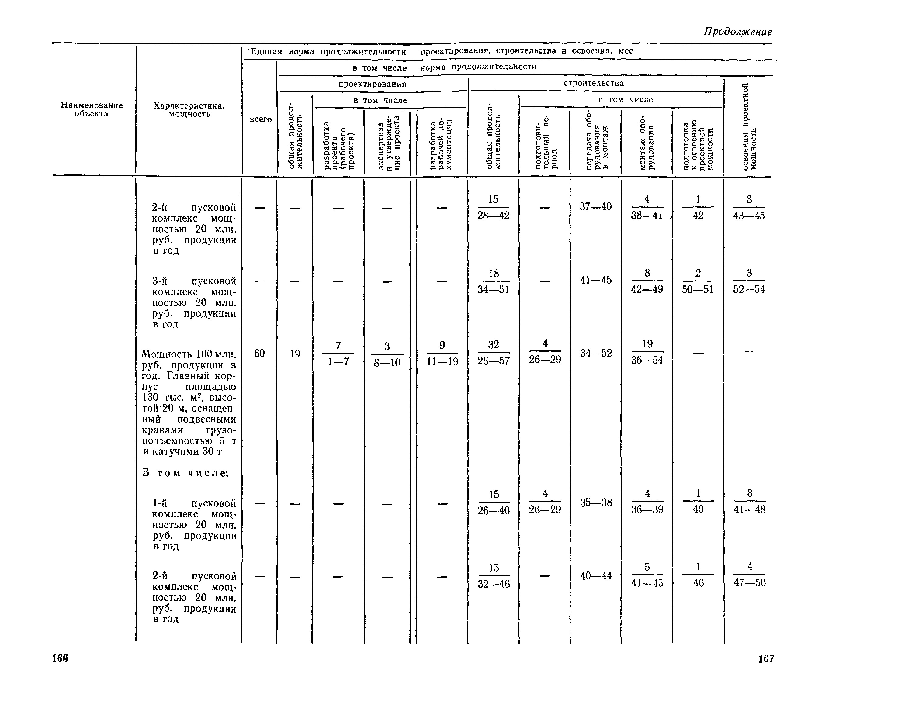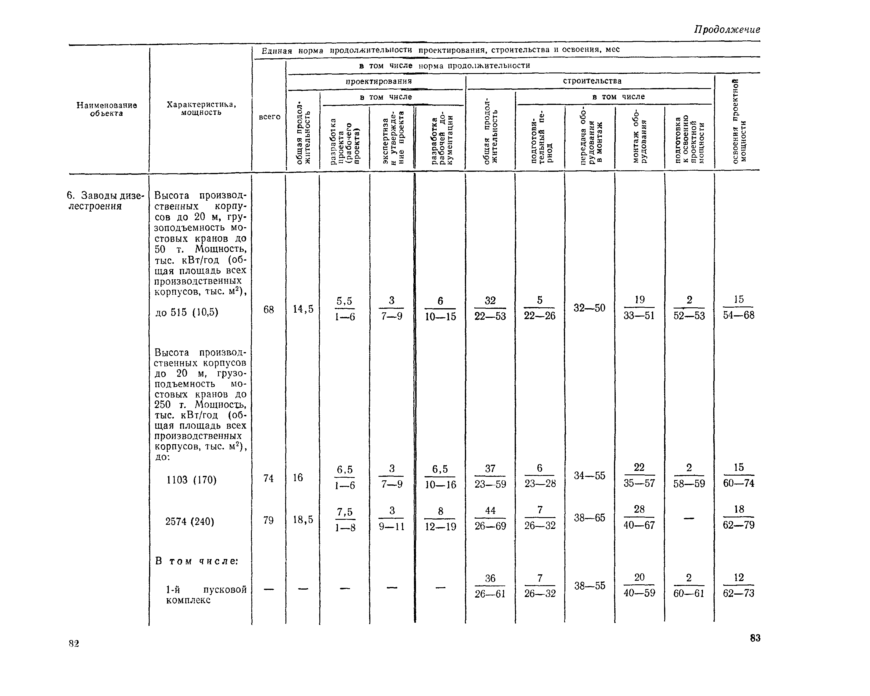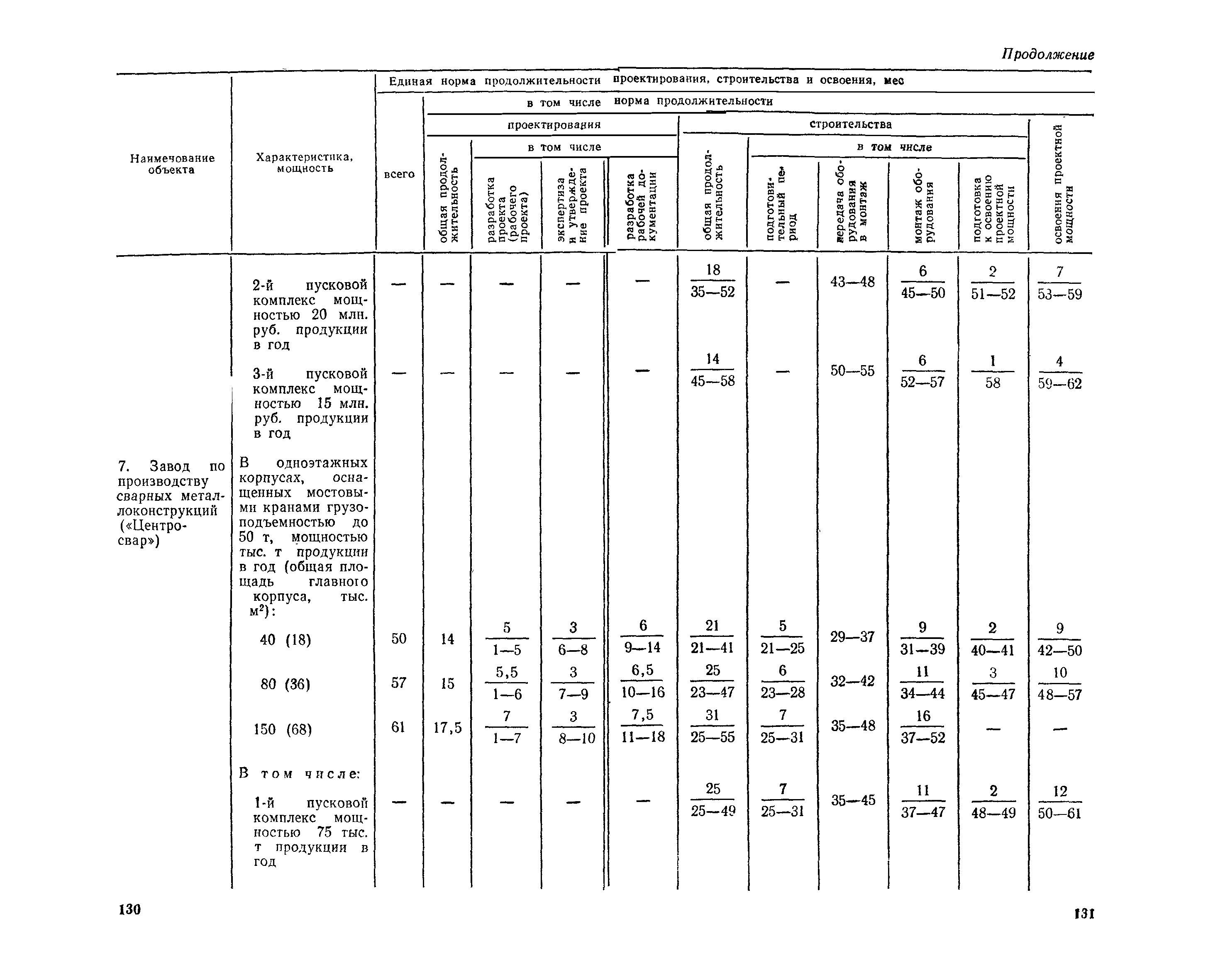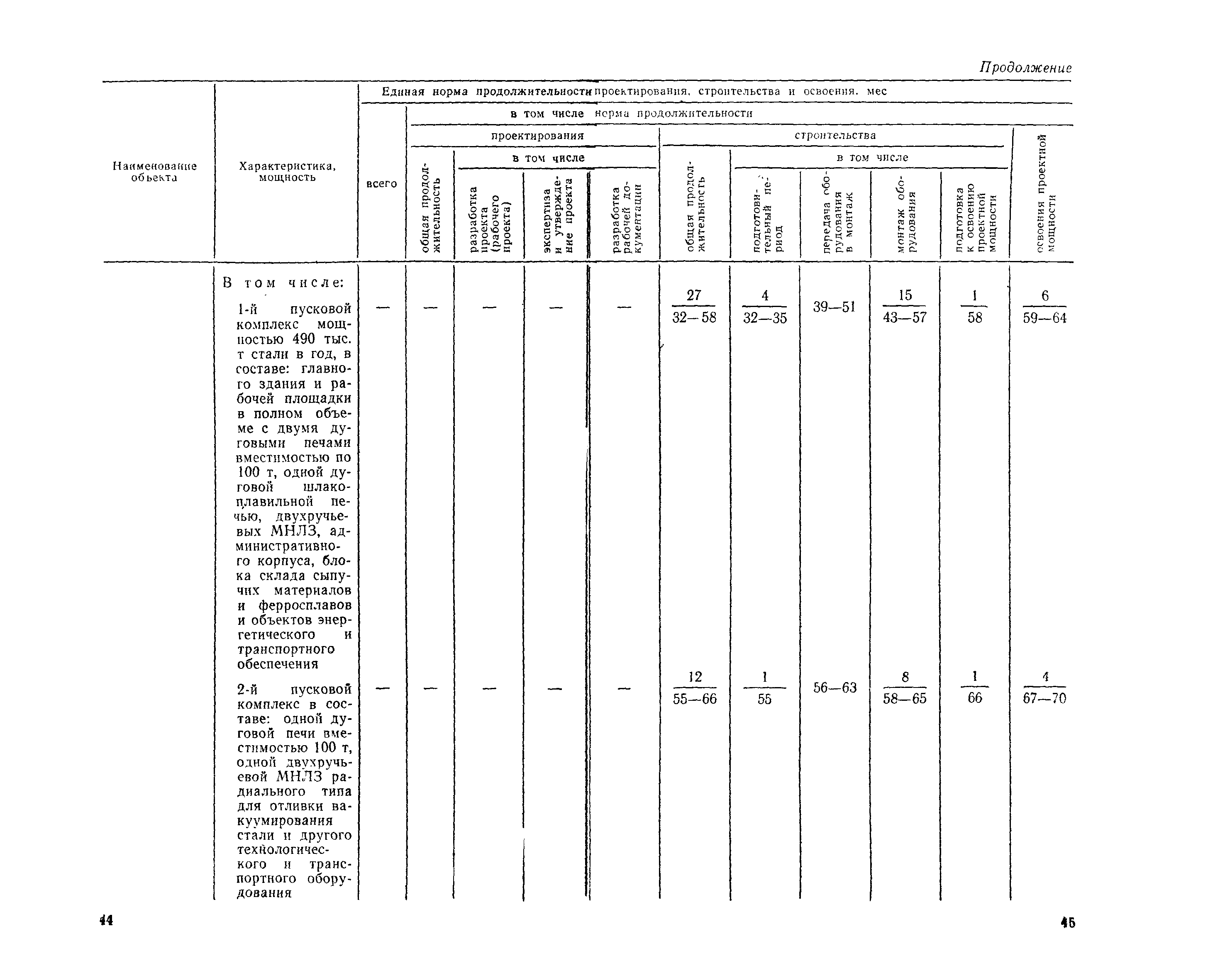 Единые нормы продолжительности проектирования и строительства предприятий, зданий и сооружений и освоения проектных мощностей| Статус: | действует | | Название рус.: | Единые нормы продолжительности проектирования и строительства предприятий, зданий и сооружений и освоения проектных мощностей | | Дата добавления в базу: | 01.09.2013 | | Дата актуализации: | 01.01.2021 | | Дата введения: | 01.07.1983 | | Область применения: | Единые нормы продолжительности проектирования и строительства предприятий, зданий н сооружений и освоения проектных мощностей устанавливают общую продолжительность создания производственных мощностей предприятий, зданий и сооружений. Единые нормы предназначены для составления перспективных планов капитальных вложений, а также схем развития и размещения отраслей народного хозяйства и отраслей промышленности в схем развития и размещения производительных сил по экономическим районам страны и союзным республикам. | | Оглавление: | Общие положения Электроэнергетика Нефтеперерабатывающая и нефтехимическая промышленность Газовая промышленность Угольная и сланцевая промышленность Черная металлургия Цветная металлургия Химическая промышленность Производство минеральных удобрений Машиностроение Тяжелое и транспортное машиностроение Электротехническая промышленность Химическое и нефтяное машиностроение Станкостроительная и инструментальная промышленность Производство продукции общемашиностроительного применения Приборостроение Автомобильная и подшипниковая промышленность Тракторное и сельскохозяйственное машиностроение Машиностроение для животноводства и кормопроизводства Строительное, дорожное и коммунальное машиностроение Машиностроение для легкой и пищевой промышленности и бытовых приборов Судостроительная промышленность и судоремонт Лесная, деревообрабатывающая и целлюлозно-бумажная промышленность Промышленность строительных материалов Промышленность строительных конструкций и деталей Легкая промышленность Пищевая промышленность Мясная промышленность Молочная промышленность Микробиологическая промышленность Мукомольно-крупяная, комбикормовая и элеваторная промышленность Медицинская промышленность Сельскохозяйственное строительство Предприятия сельхозтехники | | Разработан: | ЦНИИпроект Госстроя России ВНИПИнефть ЦНИИОМТП НИИПИН