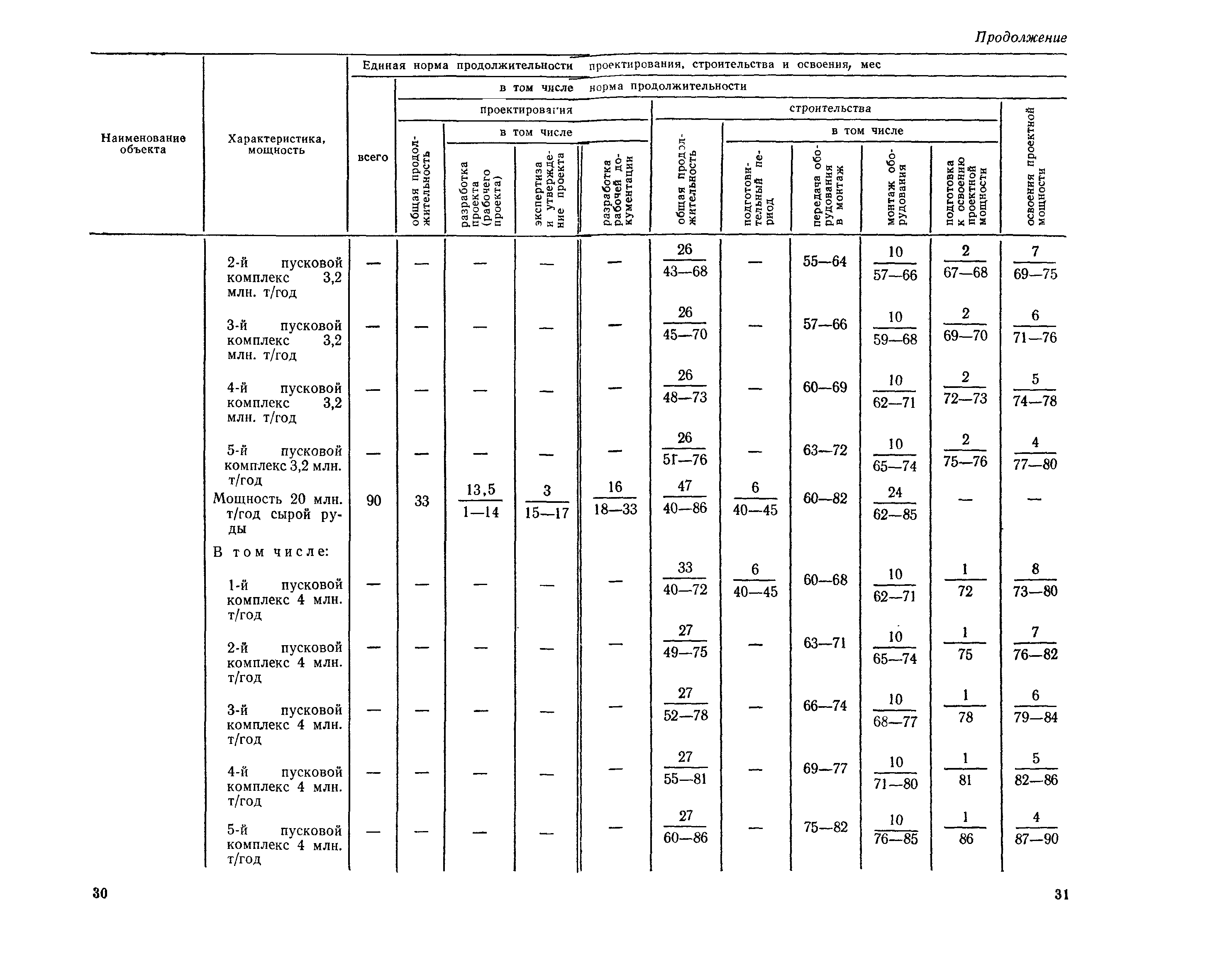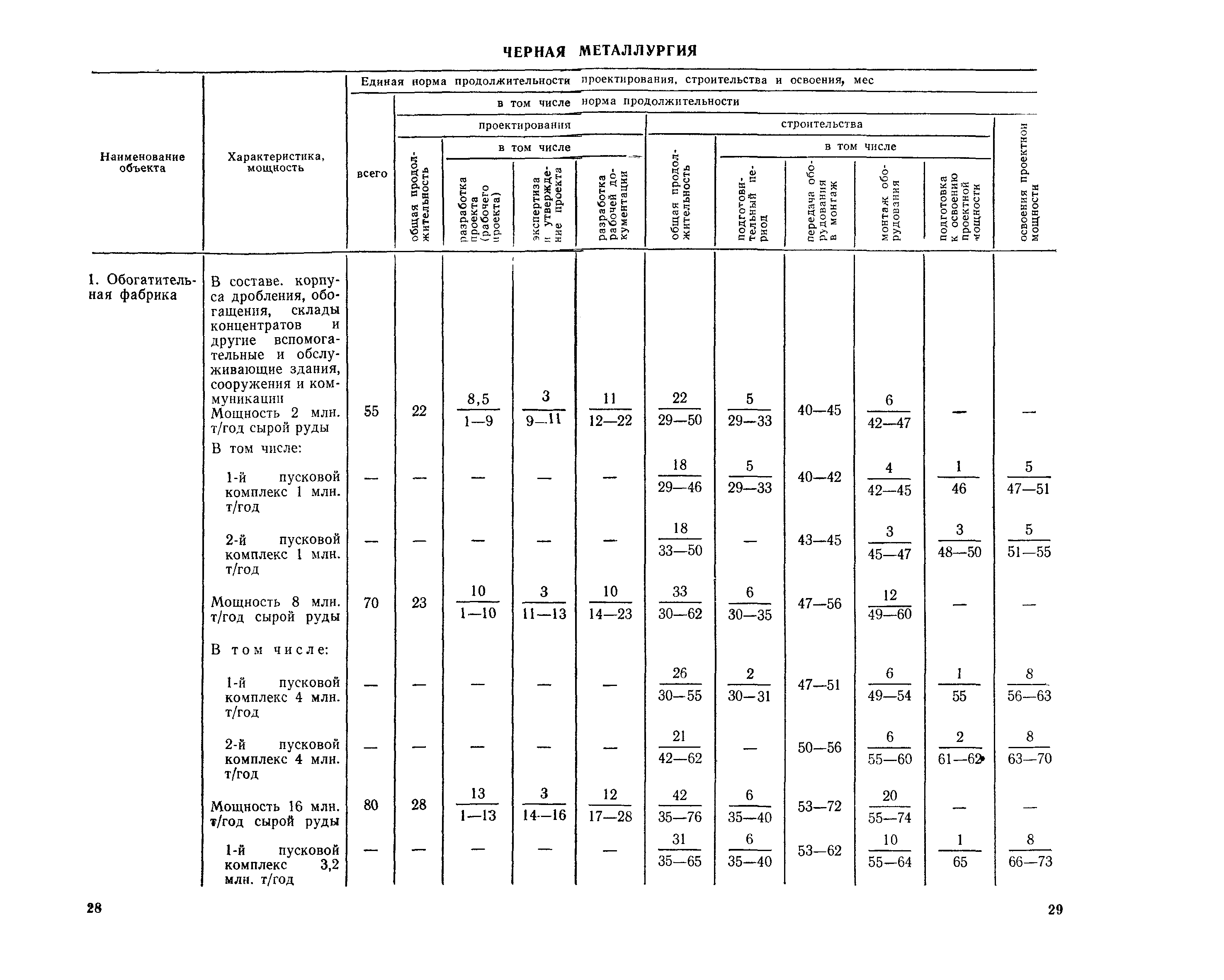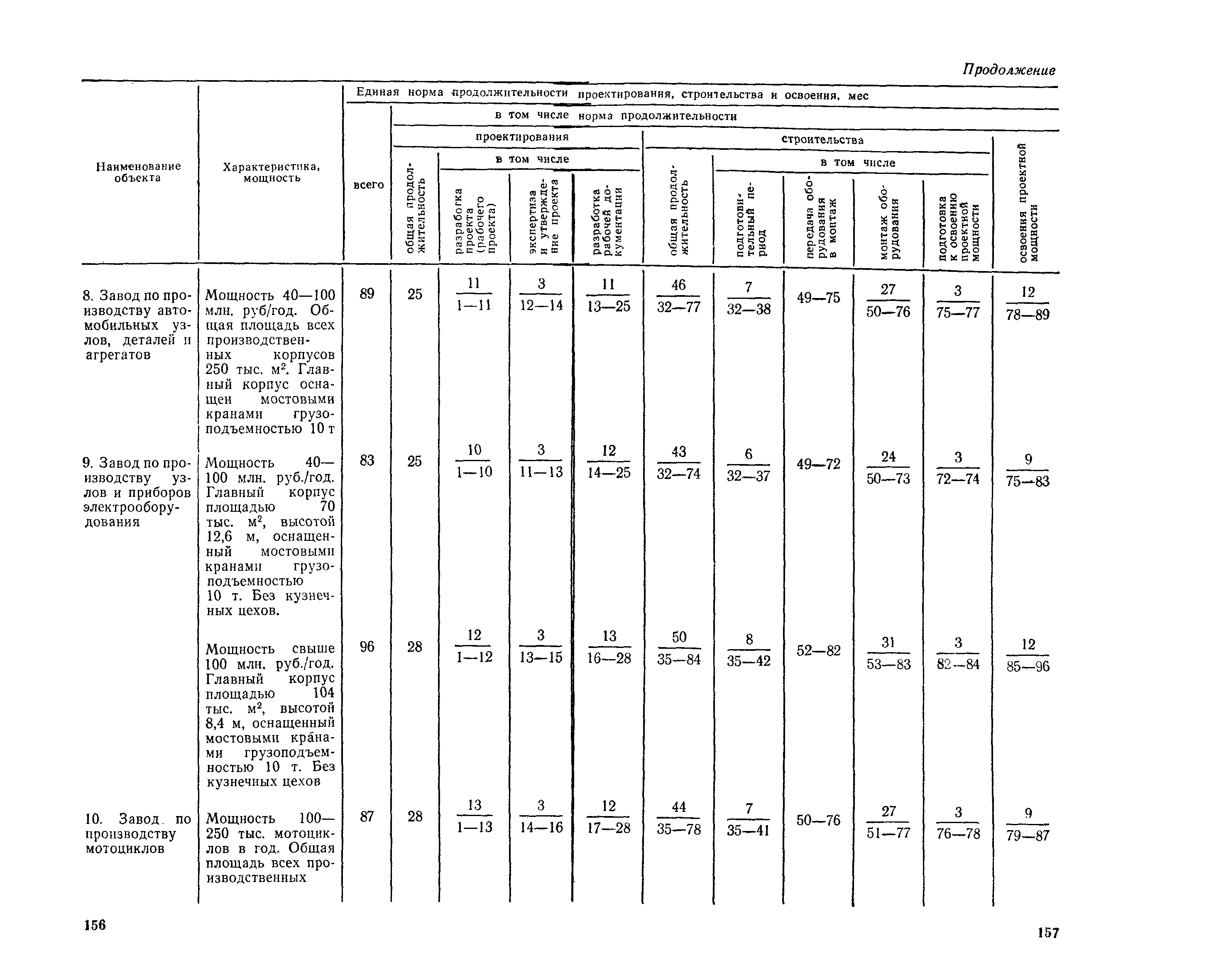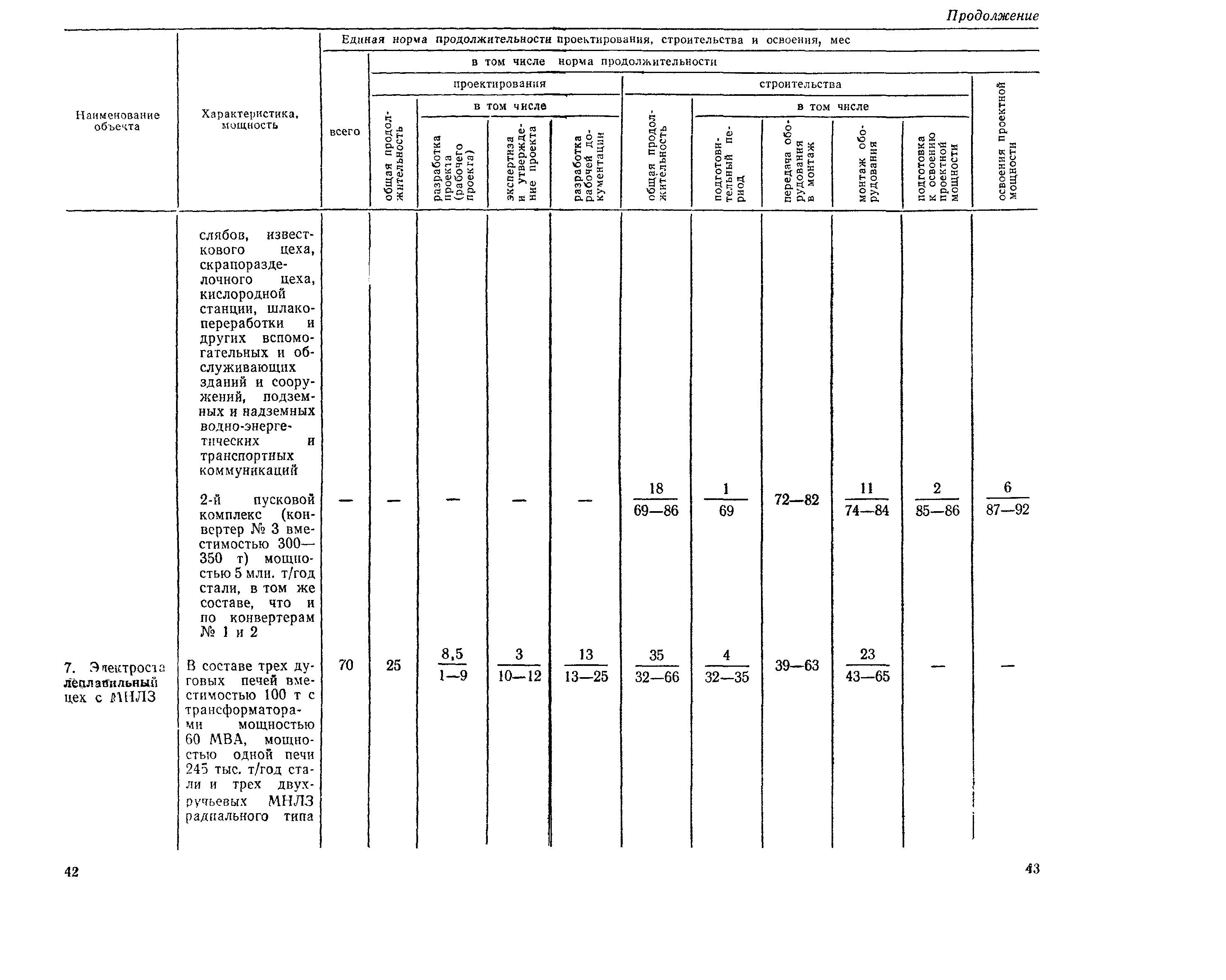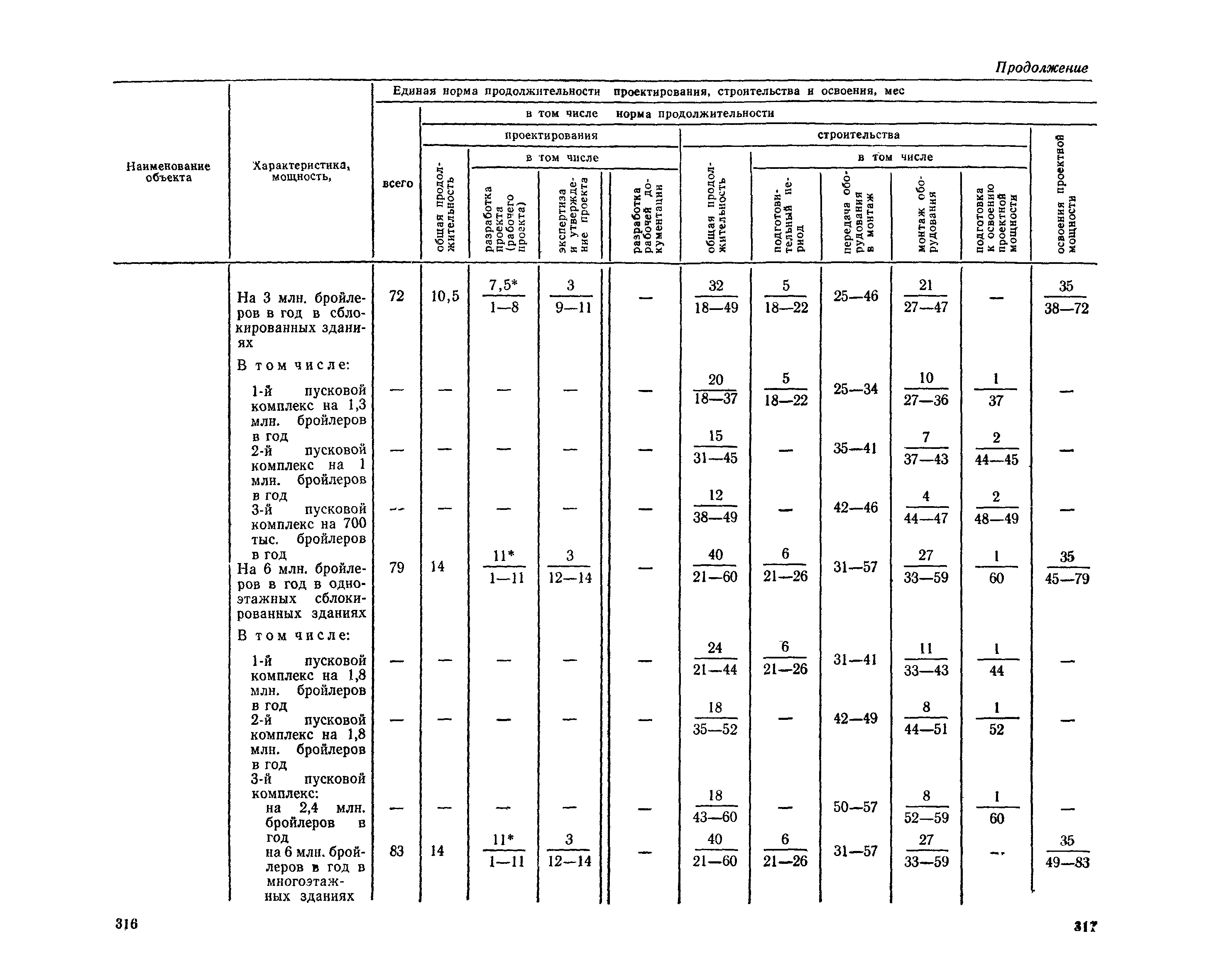 Единые нормы продолжительности проектирования и строительства предприятий, зданий и сооружений и освоения проектных мощностей| Статус: | действует | | Название рус.: | Единые нормы продолжительности проектирования и строительства предприятий, зданий и сооружений и освоения проектных мощностей | | Дата добавления в базу: | 01.09.2013 | | Дата актуализации: | 01.01.2021 | | Дата введения: | 01.07.1983 | | Область применения: | Единые нормы продолжительности проектирования и строительства предприятий, зданий н сооружений и освоения проектных мощностей устанавливают общую продолжительность создания производственных мощностей предприятий, зданий и сооружений. Единые нормы предназначены для составления перспективных планов капитальных вложений, а также схем развития и размещения отраслей народного хозяйства и отраслей промышленности в схем развития и размещения производительных сил по экономическим районам страны и союзным республикам. | | Оглавление: | Общие положения Электроэнергетика Нефтеперерабатывающая и нефтехимическая промышленность Газовая промышленность Угольная и сланцевая промышленность Черная металлургия Цветная металлургия Химическая промышленность Производство минеральных удобрений Машиностроение Тяжелое и транспортное машиностроение Электротехническая промышленность Химическое и нефтяное машиностроение Станкостроительная и инструментальная промышленность Производство продукции общемашиностроительного применения Приборостроение Автомобильная и подшипниковая промышленность Тракторное и сельскохозяйственное машиностроение Машиностроение для животноводства и кормопроизводства Строительное, дорожное и коммунальное машиностроение Машиностроение для легкой и пищевой промышленности и бытовых приборов Судостроительная промышленность и судоремонт Лесная, деревообрабатывающая и целлюлозно-бумажная промышленность Промышленность строительных материалов Промышленность строительных конструкций и деталей Легкая промышленность Пищевая промышленность Мясная промышленность Молочная промышленность Микробиологическая промышленность Мукомольно-крупяная, комбикормовая и элеваторная промышленность Медицинская промышленность Сельскохозяйственное строительство Предприятия сельхозтехники | | Разработан: | ЦНИИпроект Госстроя России ВНИПИнефть ЦНИИОМТП НИИПИН