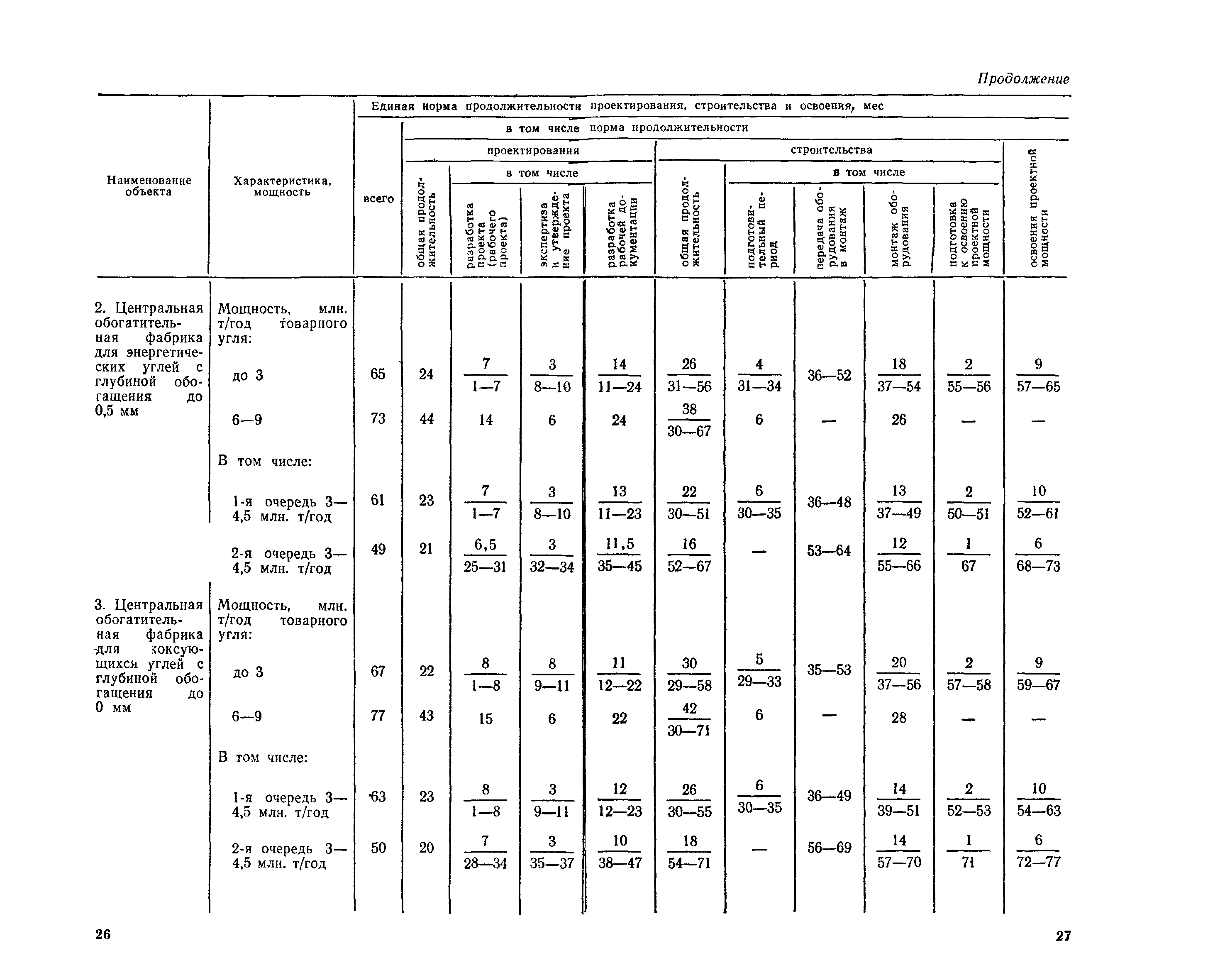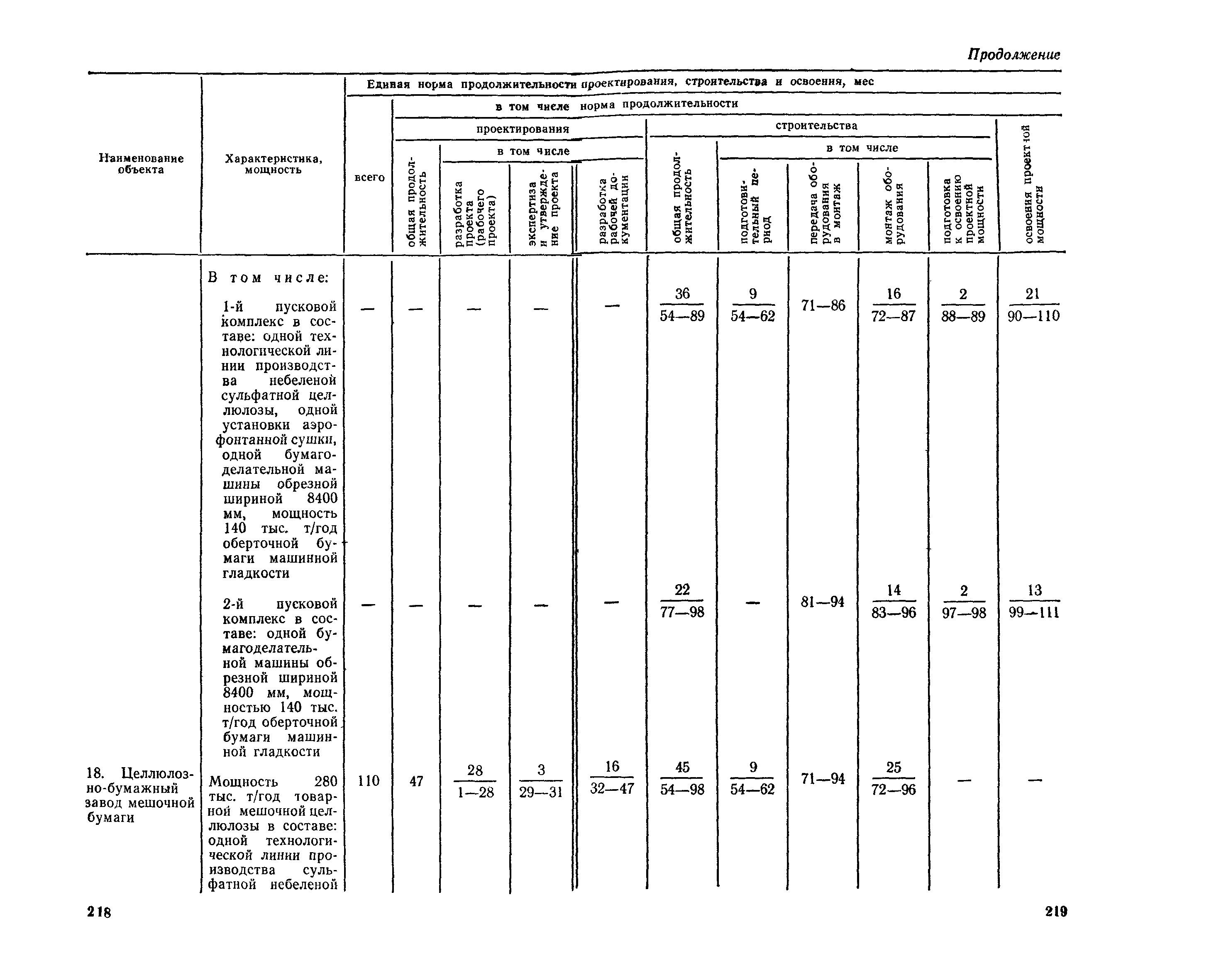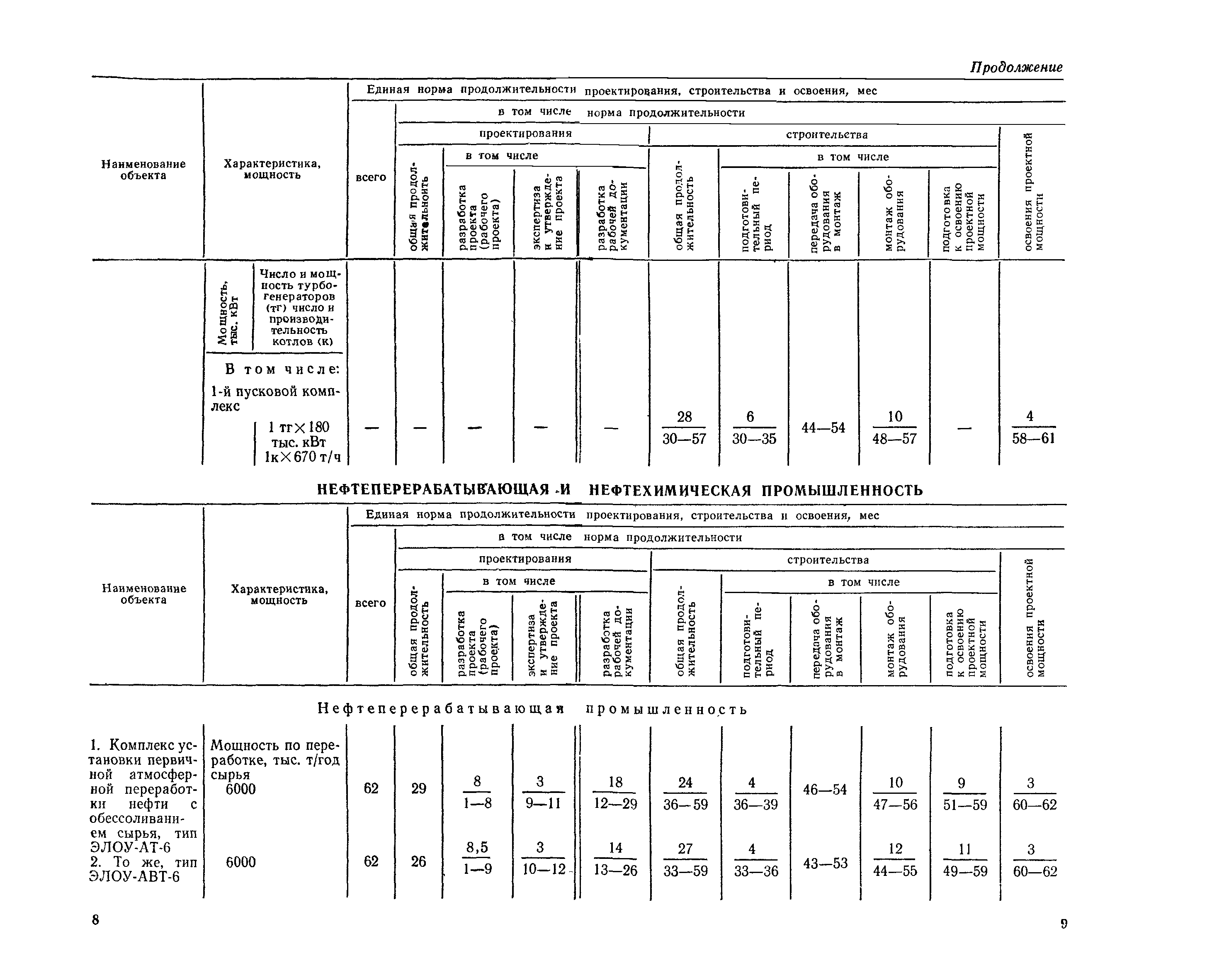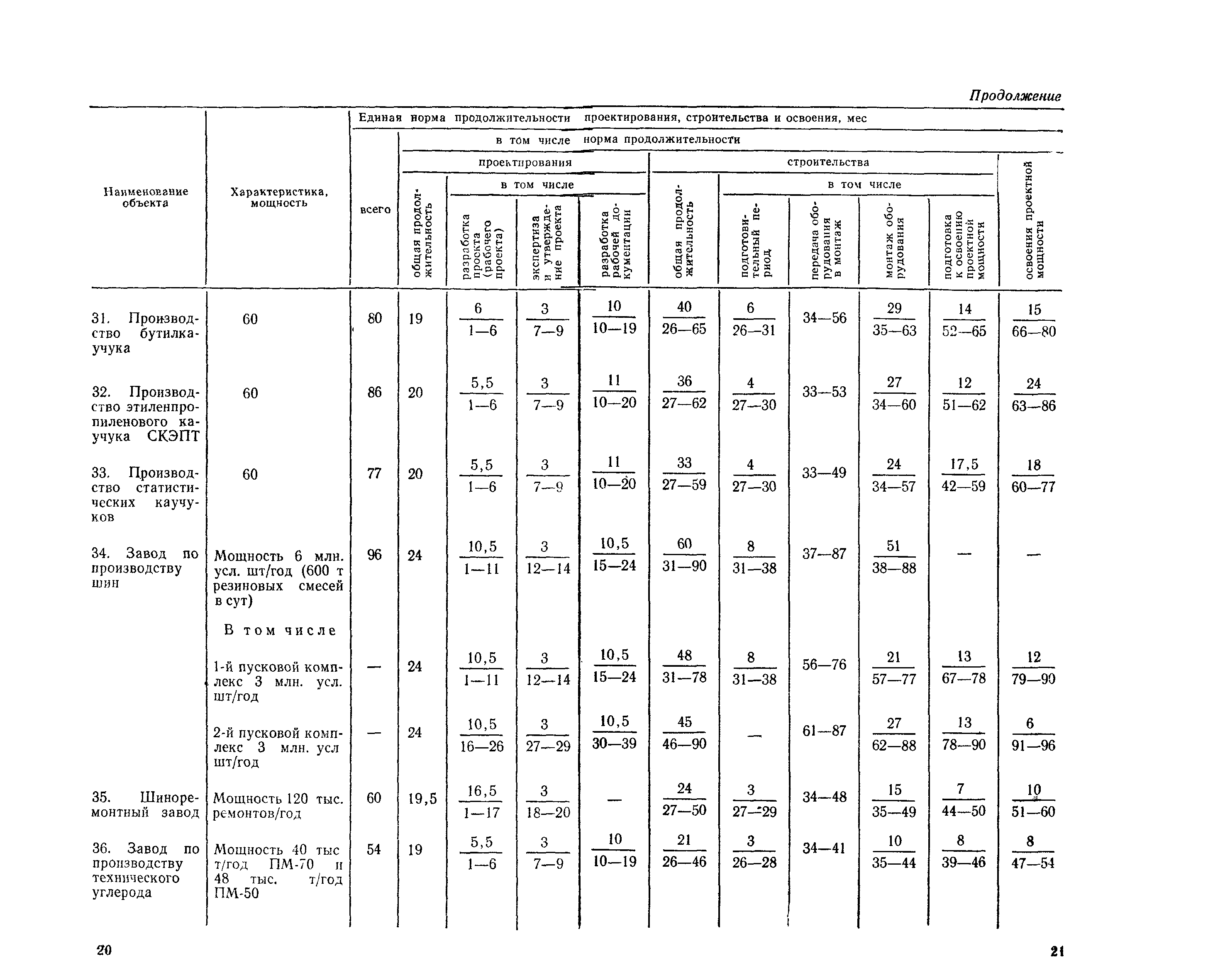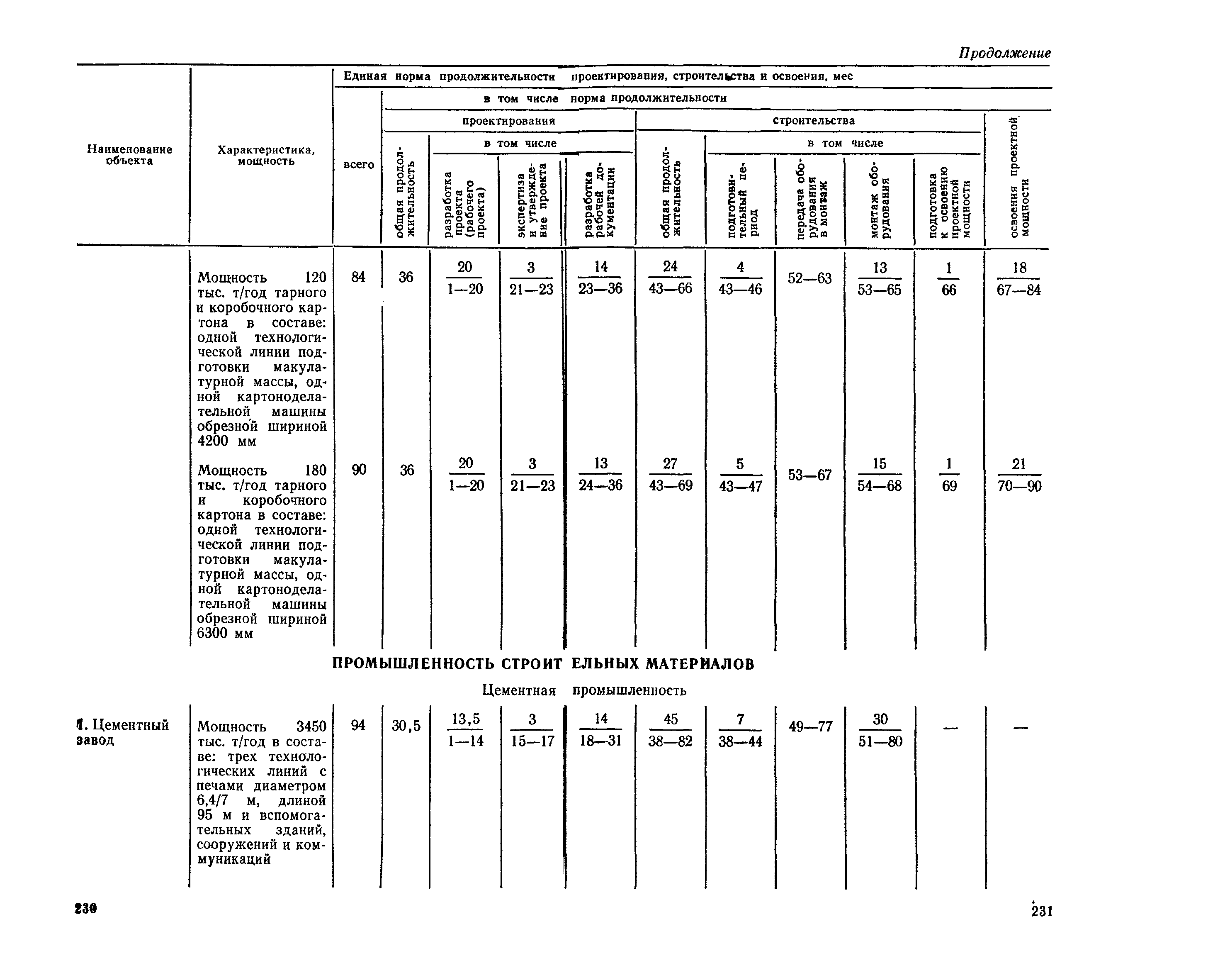 Единые нормы продолжительности проектирования и строительства предприятий, зданий и сооружений и освоения проектных мощностей| Статус: | действует | | Название рус.: | Единые нормы продолжительности проектирования и строительства предприятий, зданий и сооружений и освоения проектных мощностей | | Дата добавления в базу: | 01.09.2013 | | Дата актуализации: | 01.01.2021 | | Дата введения: | 01.07.1983 | | Область применения: | Единые нормы продолжительности проектирования и строительства предприятий, зданий н сооружений и освоения проектных мощностей устанавливают общую продолжительность создания производственных мощностей предприятий, зданий и сооружений. Единые нормы предназначены для составления перспективных планов капитальных вложений, а также схем развития и размещения отраслей народного хозяйства и отраслей промышленности в схем развития и размещения производительных сил по экономическим районам страны и союзным республикам. | | Оглавление: | Общие положения Электроэнергетика Нефтеперерабатывающая и нефтехимическая промышленность Газовая промышленность Угольная и сланцевая промышленность Черная металлургия Цветная металлургия Химическая промышленность Производство минеральных удобрений Машиностроение Тяжелое и транспортное машиностроение Электротехническая промышленность Химическое и нефтяное машиностроение Станкостроительная и инструментальная промышленность Производство продукции общемашиностроительного применения Приборостроение Автомобильная и подшипниковая промышленность Тракторное и сельскохозяйственное машиностроение Машиностроение для животноводства и кормопроизводства Строительное, дорожное и коммунальное машиностроение Машиностроение для легкой и пищевой промышленности и бытовых приборов Судостроительная промышленность и судоремонт Лесная, деревообрабатывающая и целлюлозно-бумажная промышленность Промышленность строительных материалов Промышленность строительных конструкций и деталей Легкая промышленность Пищевая промышленность Мясная промышленность Молочная промышленность Микробиологическая промышленность Мукомольно-крупяная, комбикормовая и элеваторная промышленность Медицинская промышленность Сельскохозяйственное строительство Предприятия сельхозтехники | | Разработан: | ЦНИИпроект Госстроя России ВНИПИнефть ЦНИИОМТП НИИПИН