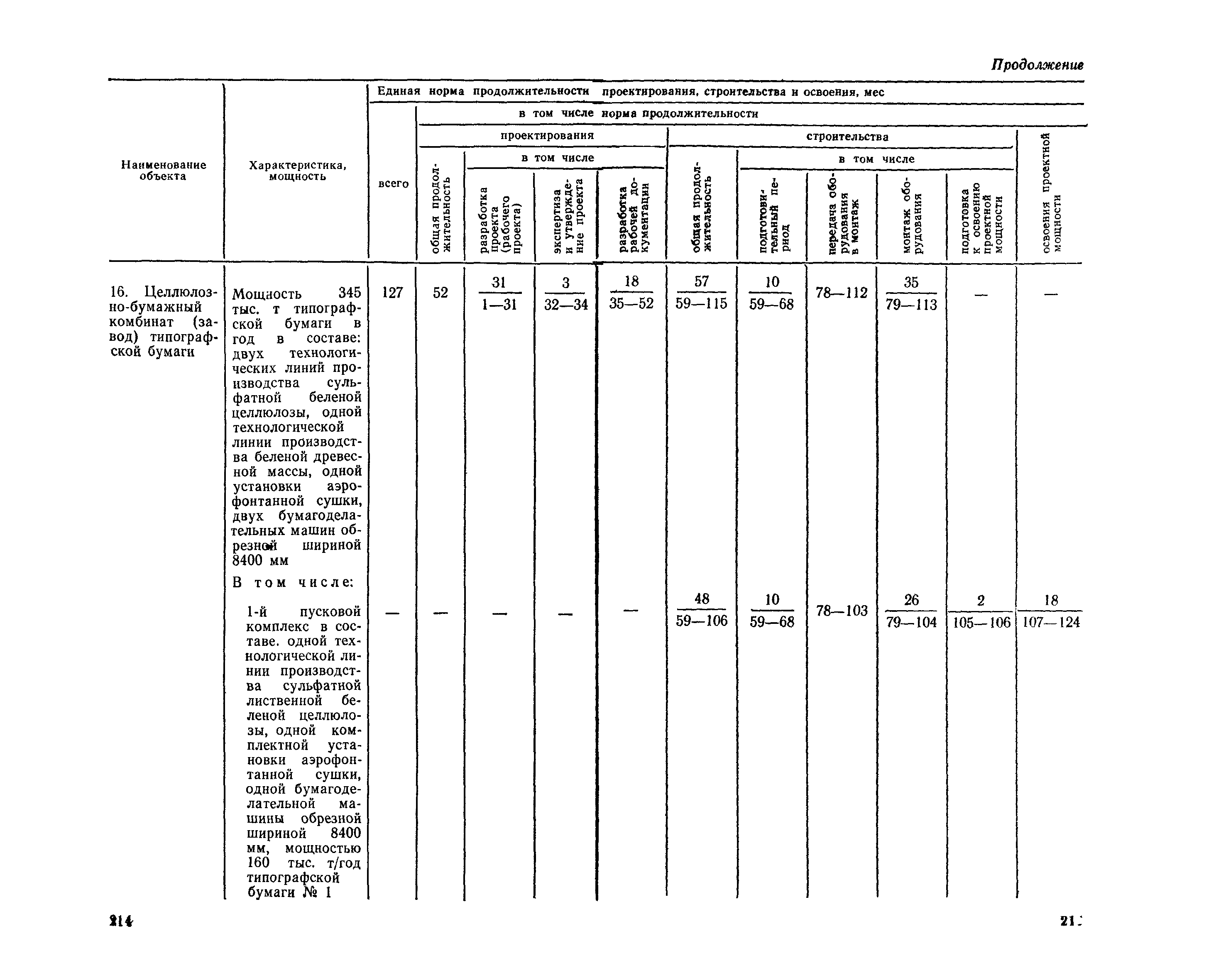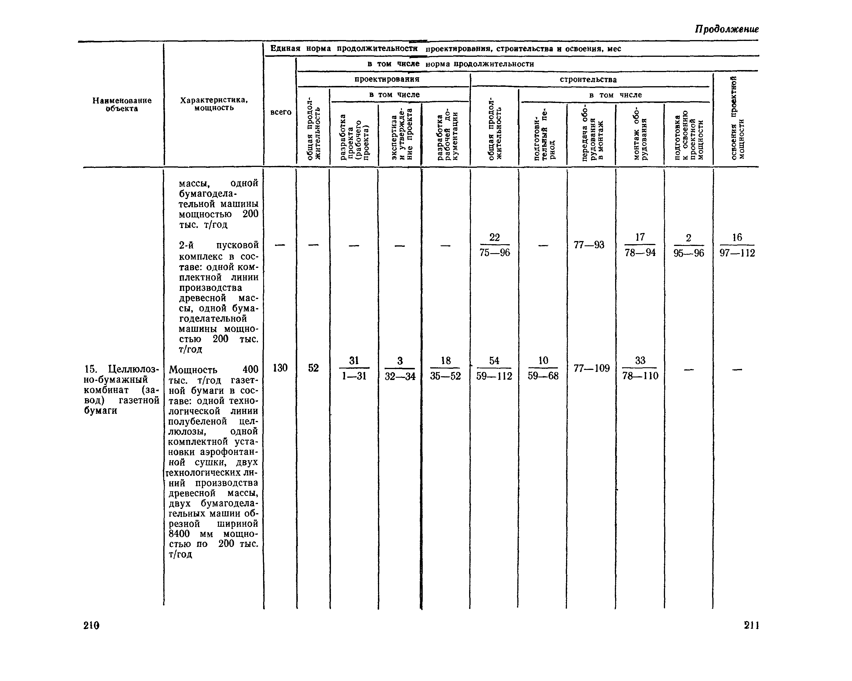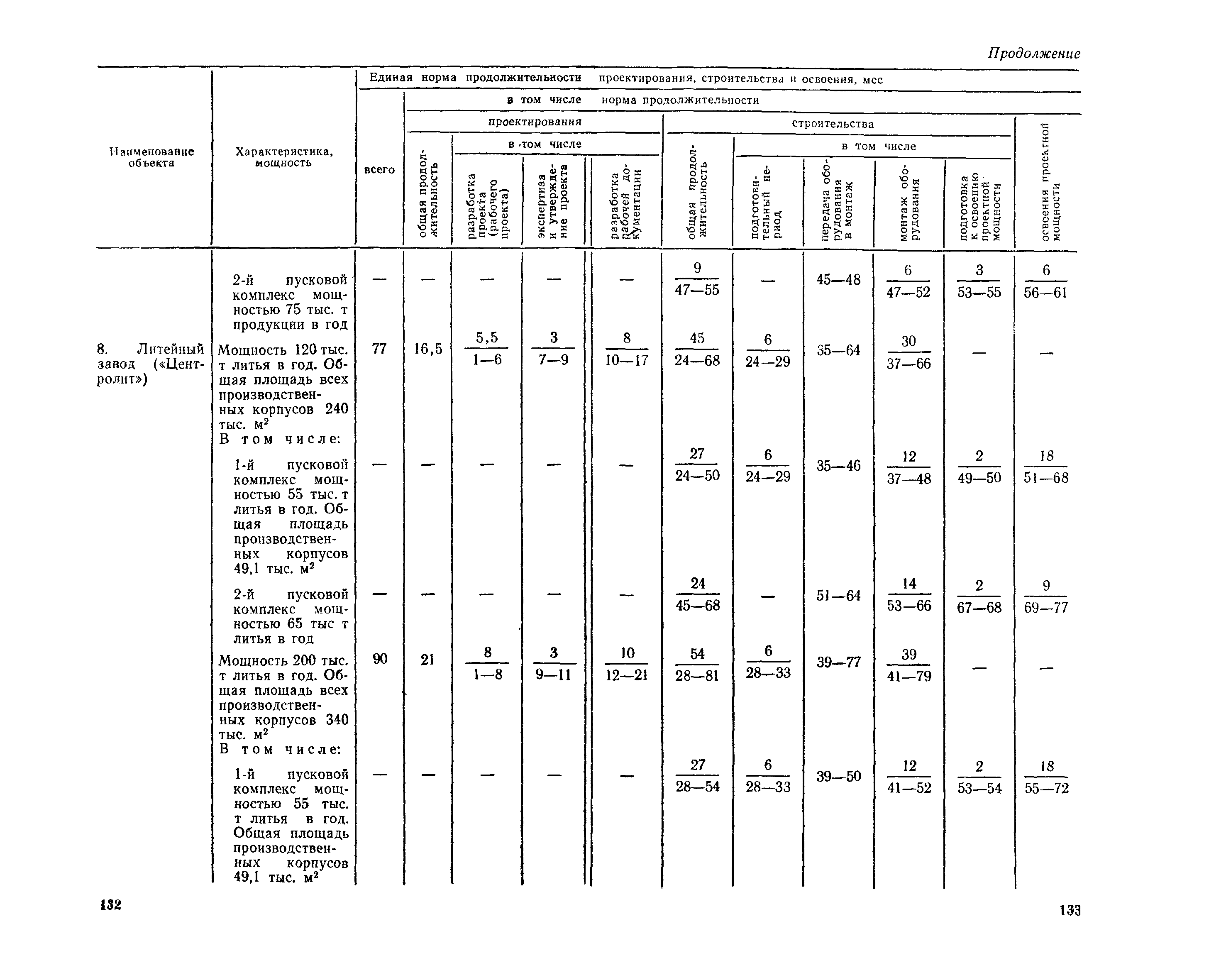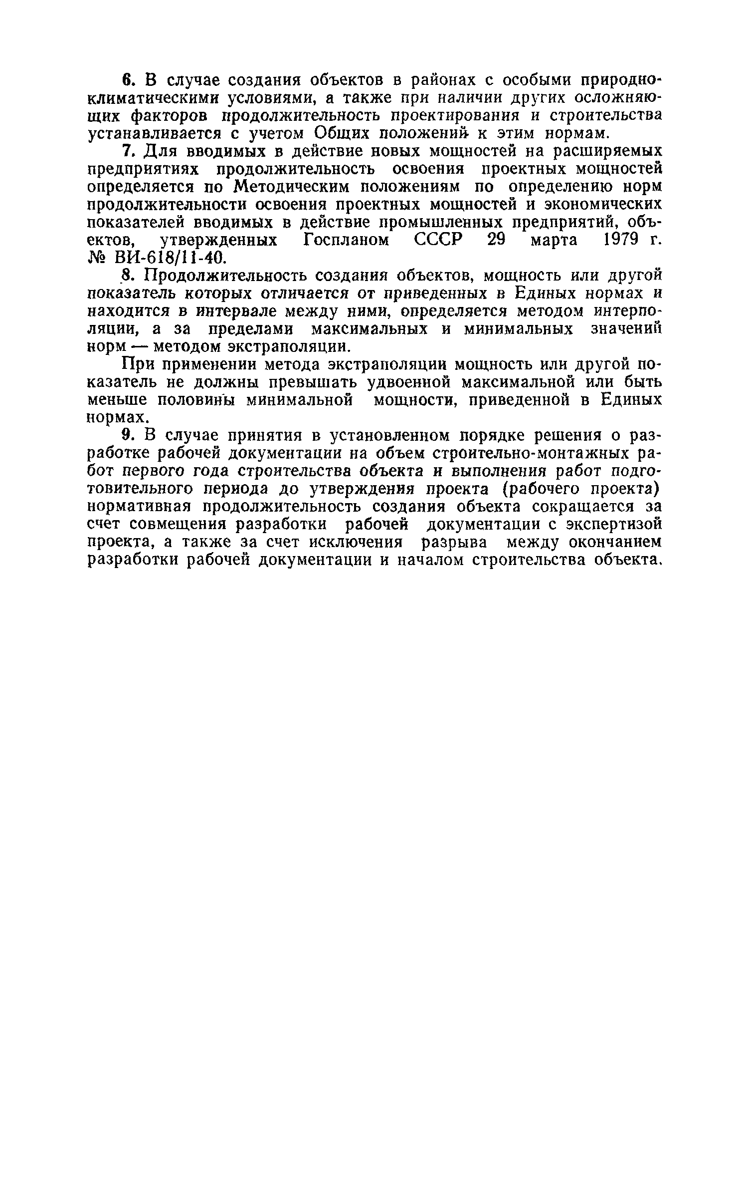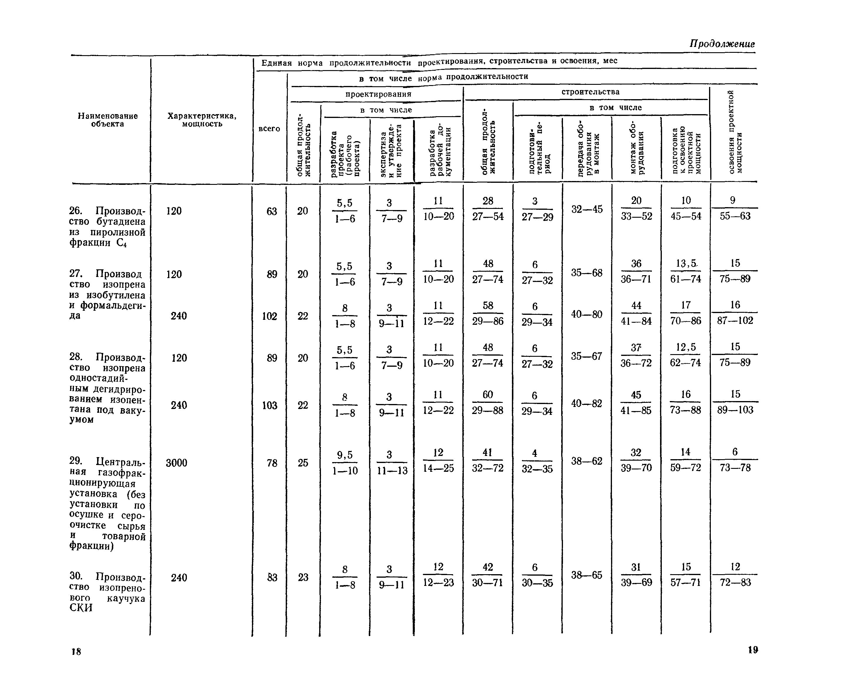 Единые нормы продолжительности проектирования и строительства предприятий, зданий и сооружений и освоения проектных мощностей| Статус: | действует | | Название рус.: | Единые нормы продолжительности проектирования и строительства предприятий, зданий и сооружений и освоения проектных мощностей | | Дата добавления в базу: | 01.09.2013 | | Дата актуализации: | 01.01.2021 | | Дата введения: | 01.07.1983 | | Область применения: | Единые нормы продолжительности проектирования и строительства предприятий, зданий н сооружений и освоения проектных мощностей устанавливают общую продолжительность создания производственных мощностей предприятий, зданий и сооружений. Единые нормы предназначены для составления перспективных планов капитальных вложений, а также схем развития и размещения отраслей народного хозяйства и отраслей промышленности в схем развития и размещения производительных сил по экономическим районам страны и союзным республикам. | | Оглавление: | Общие положения Электроэнергетика Нефтеперерабатывающая и нефтехимическая промышленность Газовая промышленность Угольная и сланцевая промышленность Черная металлургия Цветная металлургия Химическая промышленность Производство минеральных удобрений Машиностроение Тяжелое и транспортное машиностроение Электротехническая промышленность Химическое и нефтяное машиностроение Станкостроительная и инструментальная промышленность Производство продукции общемашиностроительного применения Приборостроение Автомобильная и подшипниковая промышленность Тракторное и сельскохозяйственное машиностроение Машиностроение для животноводства и кормопроизводства Строительное, дорожное и коммунальное машиностроение Машиностроение для легкой и пищевой промышленности и бытовых приборов Судостроительная промышленность и судоремонт Лесная, деревообрабатывающая и целлюлозно-бумажная промышленность Промышленность строительных материалов Промышленность строительных конструкций и деталей Легкая промышленность Пищевая промышленность Мясная промышленность Молочная промышленность Микробиологическая промышленность Мукомольно-крупяная, комбикормовая и элеваторная промышленность Медицинская промышленность Сельскохозяйственное строительство Предприятия сельхозтехники | | Разработан: | ЦНИИпроект Госстроя России ВНИПИнефть ЦНИИОМТП НИИПИН