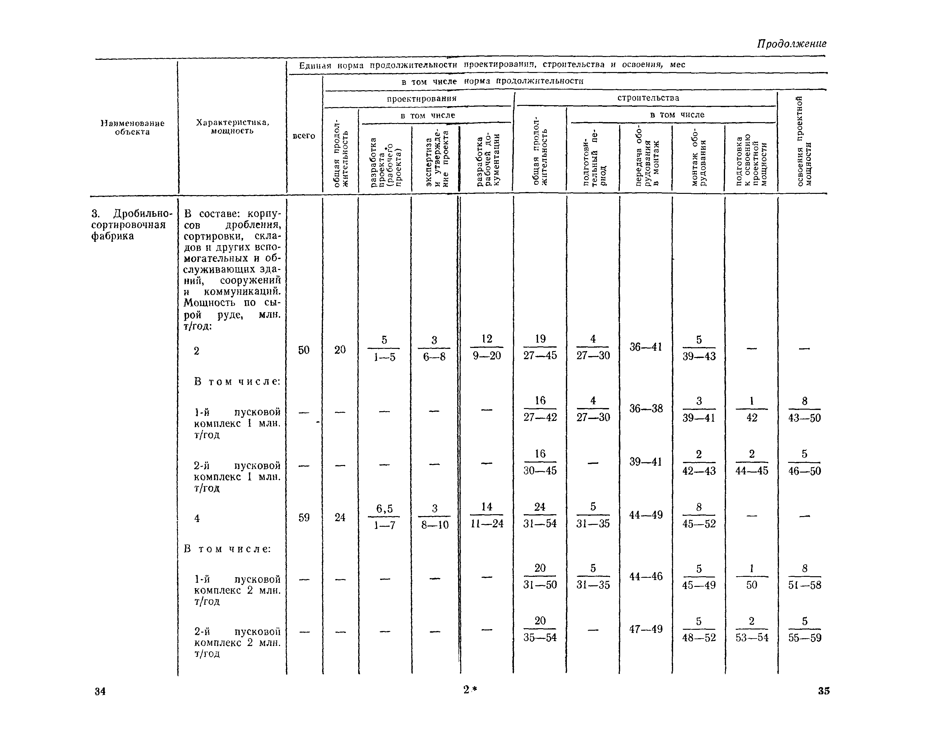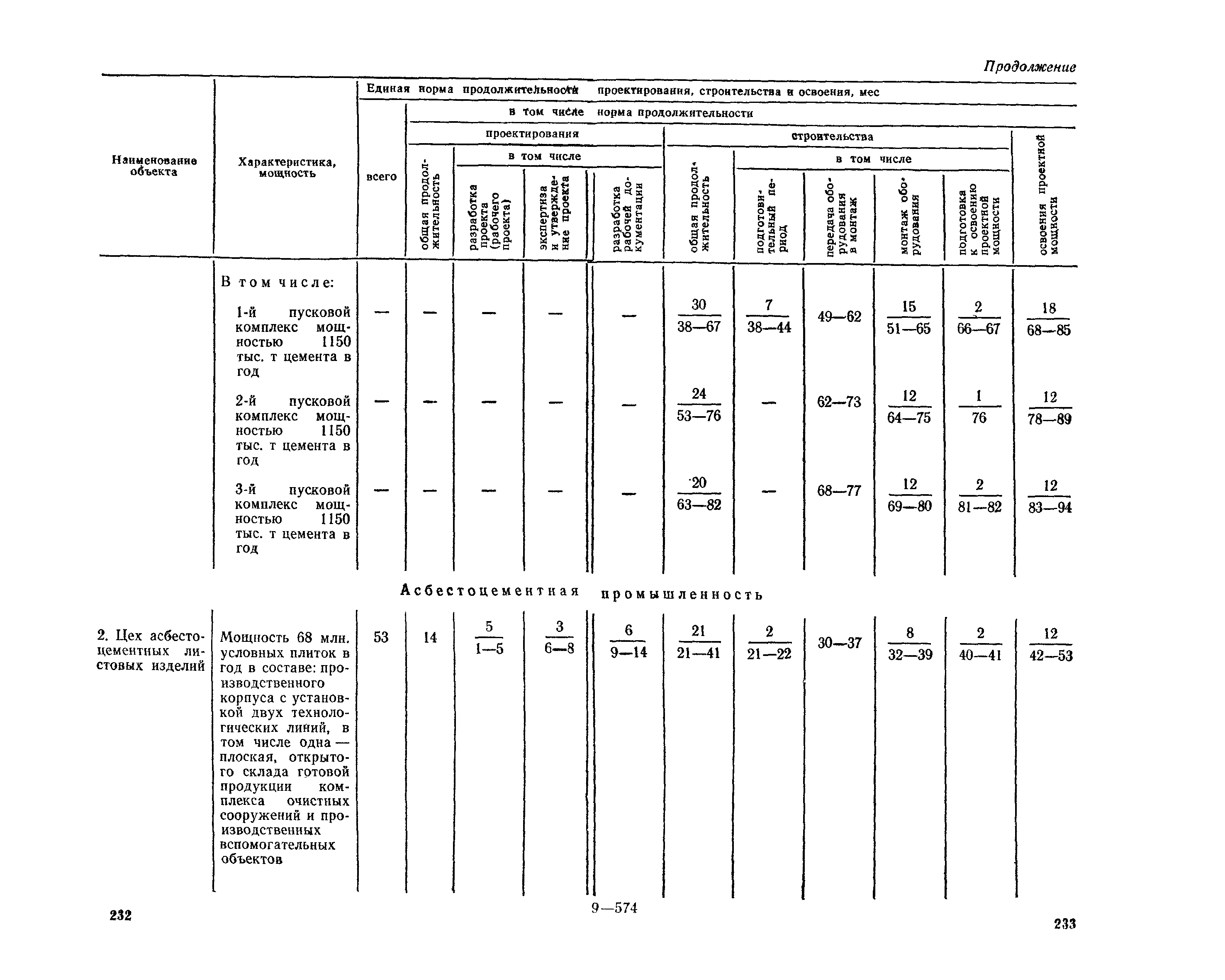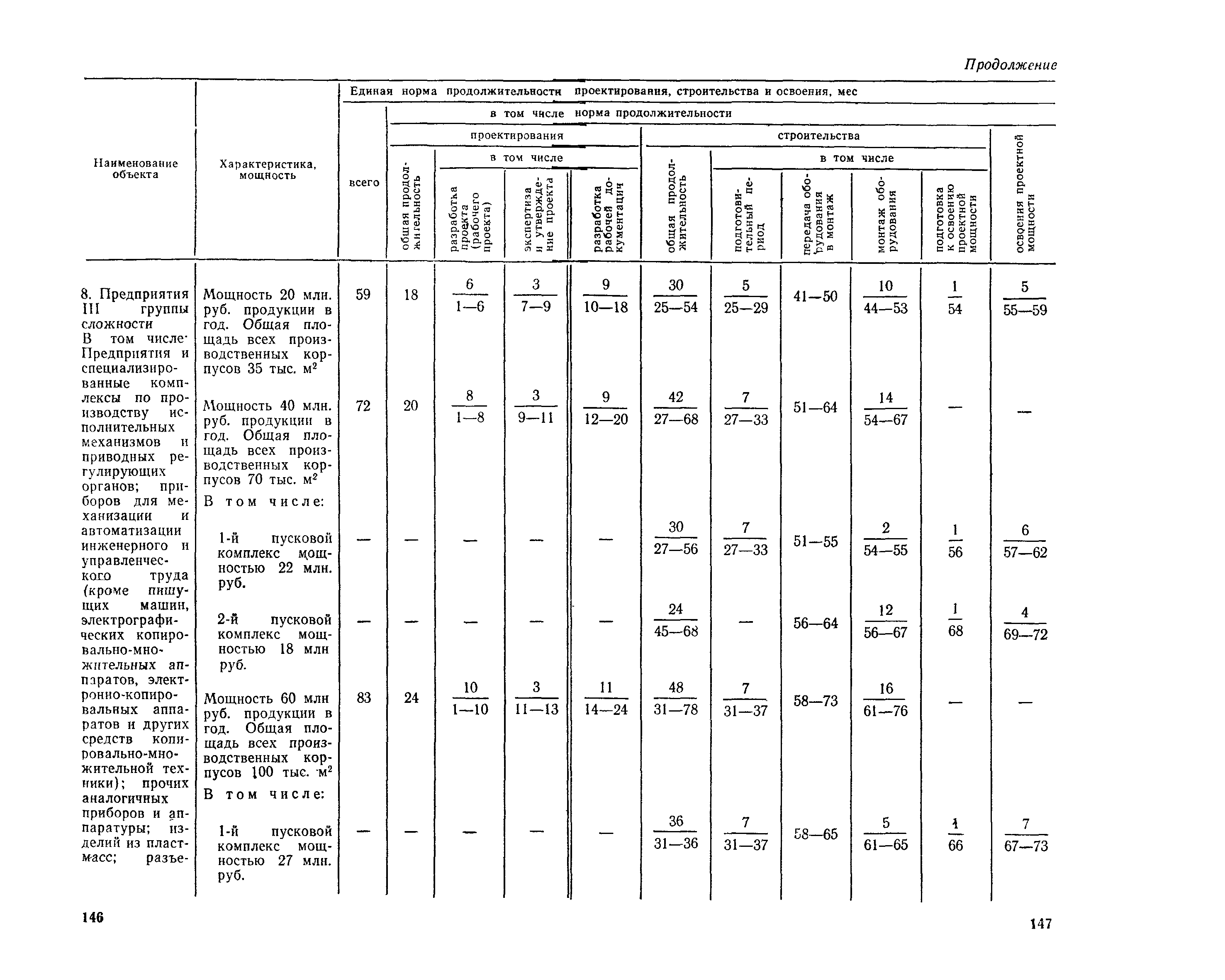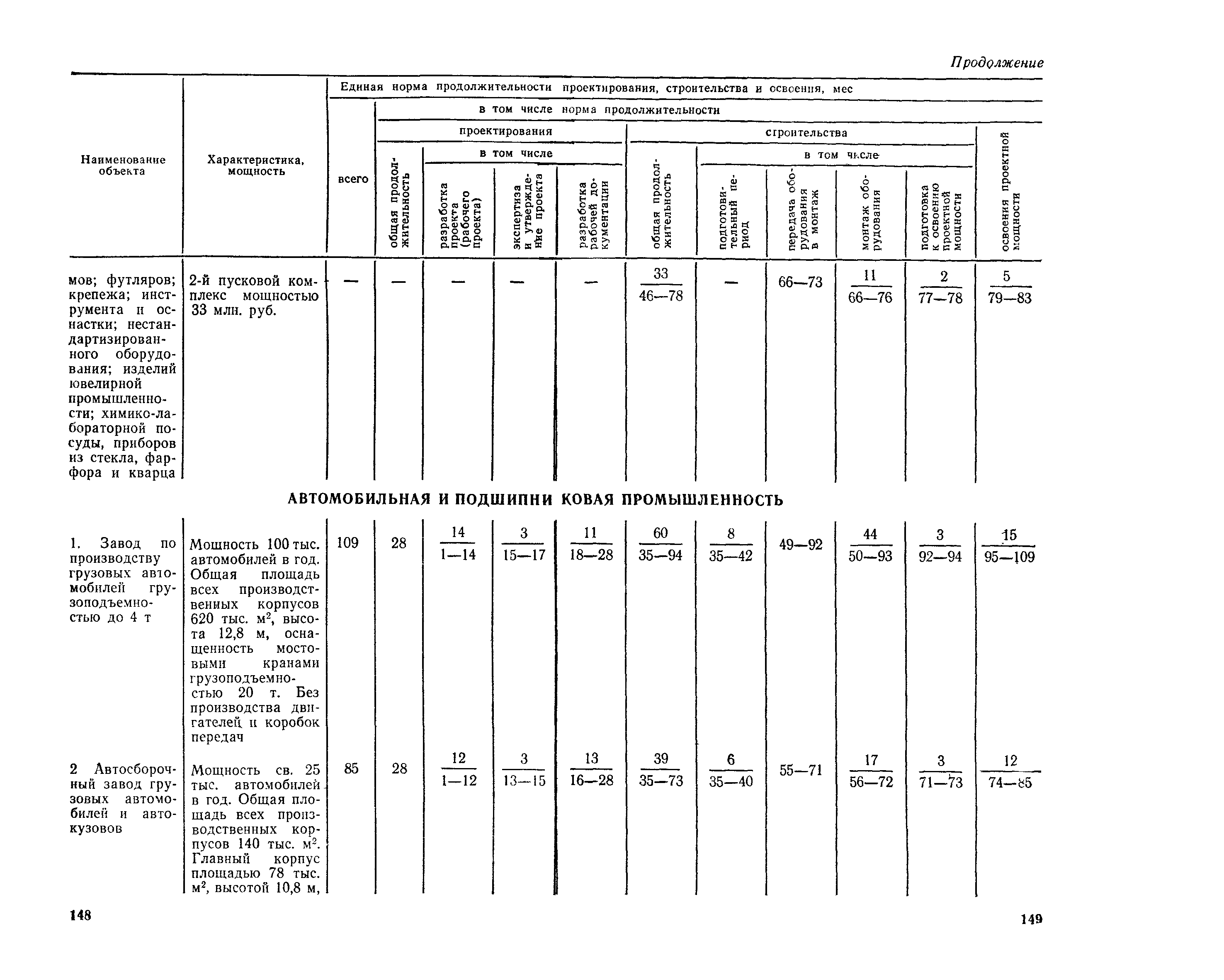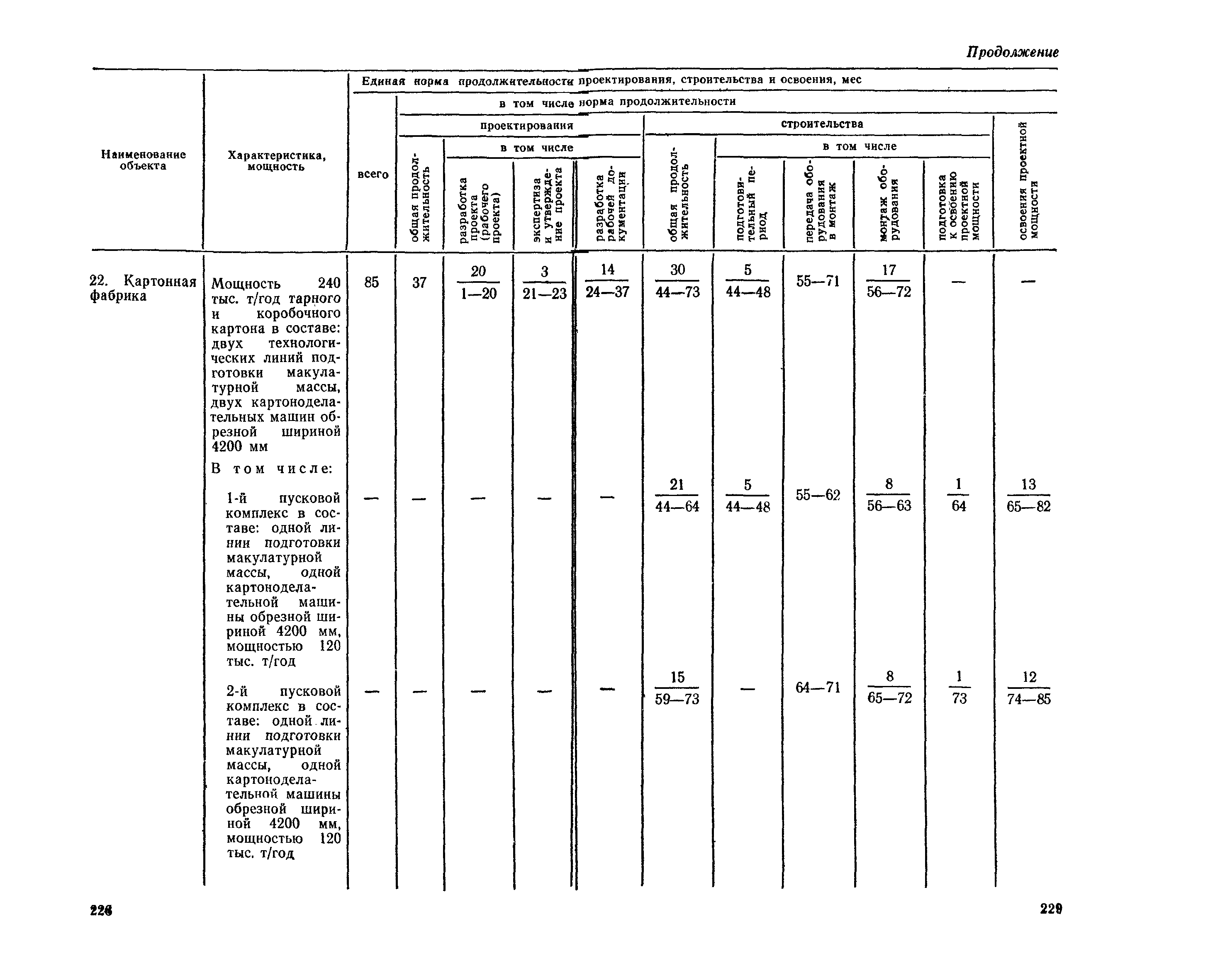 Единые нормы продолжительности проектирования и строительства предприятий, зданий и сооружений и освоения проектных мощностей| Статус: | действует | | Название рус.: | Единые нормы продолжительности проектирования и строительства предприятий, зданий и сооружений и освоения проектных мощностей | | Дата добавления в базу: | 01.09.2013 | | Дата актуализации: | 01.01.2021 | | Дата введения: | 01.07.1983 | | Область применения: | Единые нормы продолжительности проектирования и строительства предприятий, зданий н сооружений и освоения проектных мощностей устанавливают общую продолжительность создания производственных мощностей предприятий, зданий и сооружений. Единые нормы предназначены для составления перспективных планов капитальных вложений, а также схем развития и размещения отраслей народного хозяйства и отраслей промышленности в схем развития и размещения производительных сил по экономическим районам страны и союзным республикам. | | Оглавление: | Общие положения Электроэнергетика Нефтеперерабатывающая и нефтехимическая промышленность Газовая промышленность Угольная и сланцевая промышленность Черная металлургия Цветная металлургия Химическая промышленность Производство минеральных удобрений Машиностроение Тяжелое и транспортное машиностроение Электротехническая промышленность Химическое и нефтяное машиностроение Станкостроительная и инструментальная промышленность Производство продукции общемашиностроительного применения Приборостроение Автомобильная и подшипниковая промышленность Тракторное и сельскохозяйственное машиностроение Машиностроение для животноводства и кормопроизводства Строительное, дорожное и коммунальное машиностроение Машиностроение для легкой и пищевой промышленности и бытовых приборов Судостроительная промышленность и судоремонт Лесная, деревообрабатывающая и целлюлозно-бумажная промышленность Промышленность строительных материалов Промышленность строительных конструкций и деталей Легкая промышленность Пищевая промышленность Мясная промышленность Молочная промышленность Микробиологическая промышленность Мукомольно-крупяная, комбикормовая и элеваторная промышленность Медицинская промышленность Сельскохозяйственное строительство Предприятия сельхозтехники | | Разработан: | ЦНИИпроект Госстроя России ВНИПИнефть ЦНИИОМТП НИИПИН