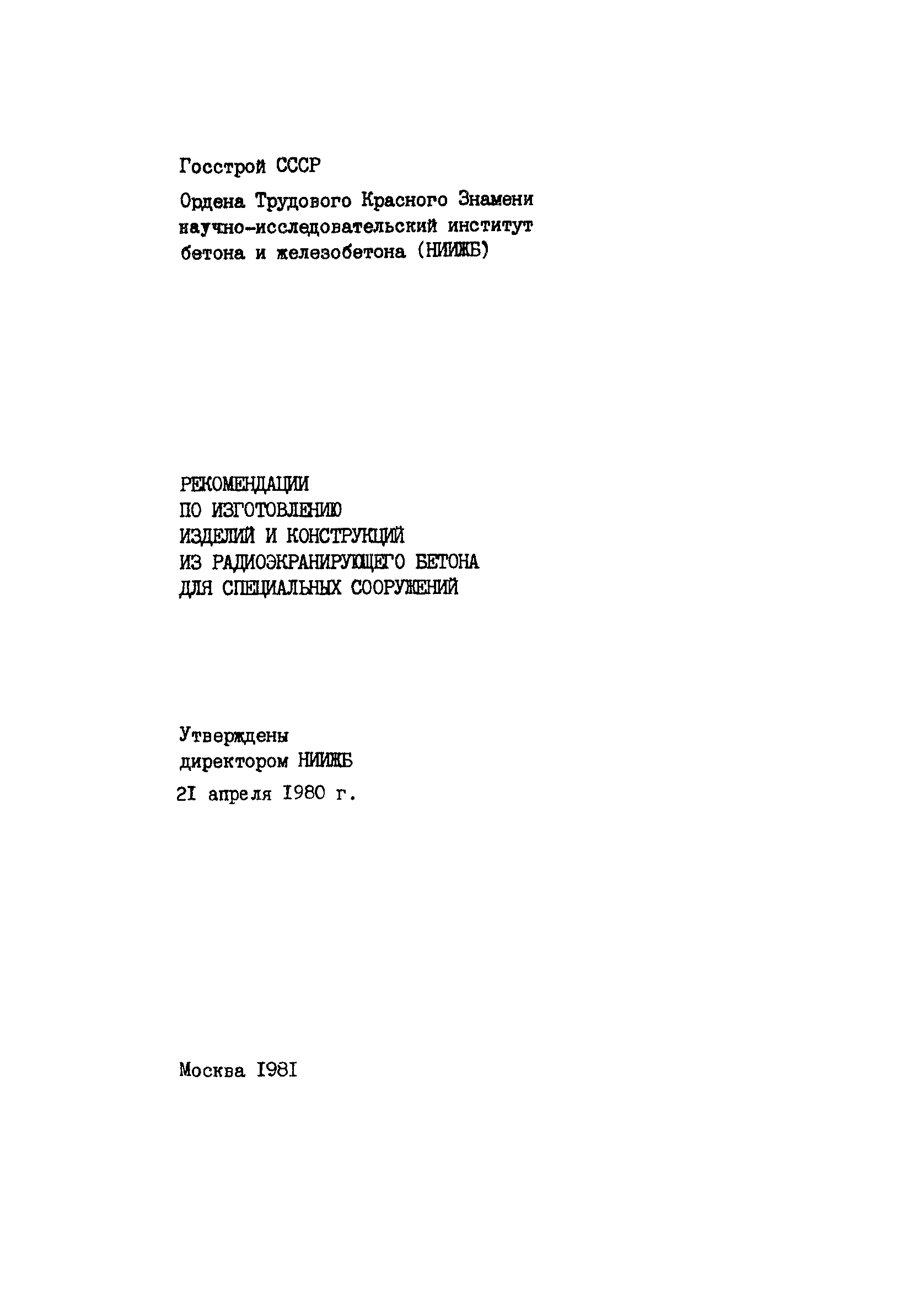 | Утверждён: | 21.04.1980 НИИЖБ Госстроя СССР (NIIZhB, USSR Gosstroy )