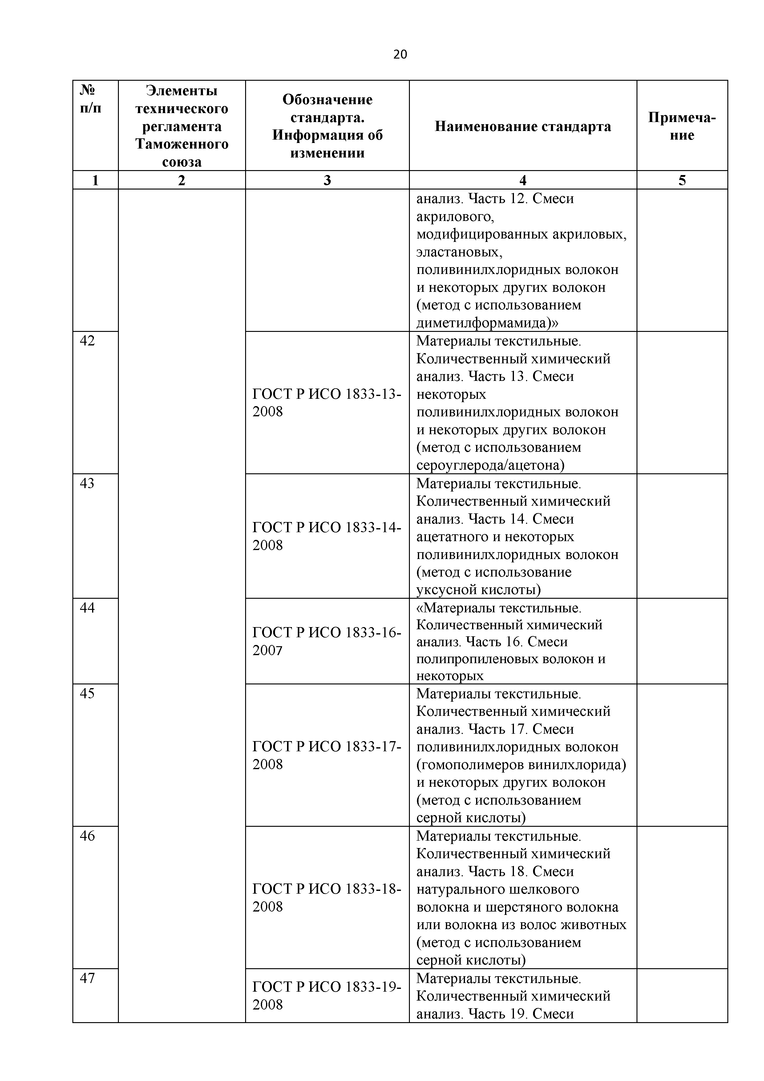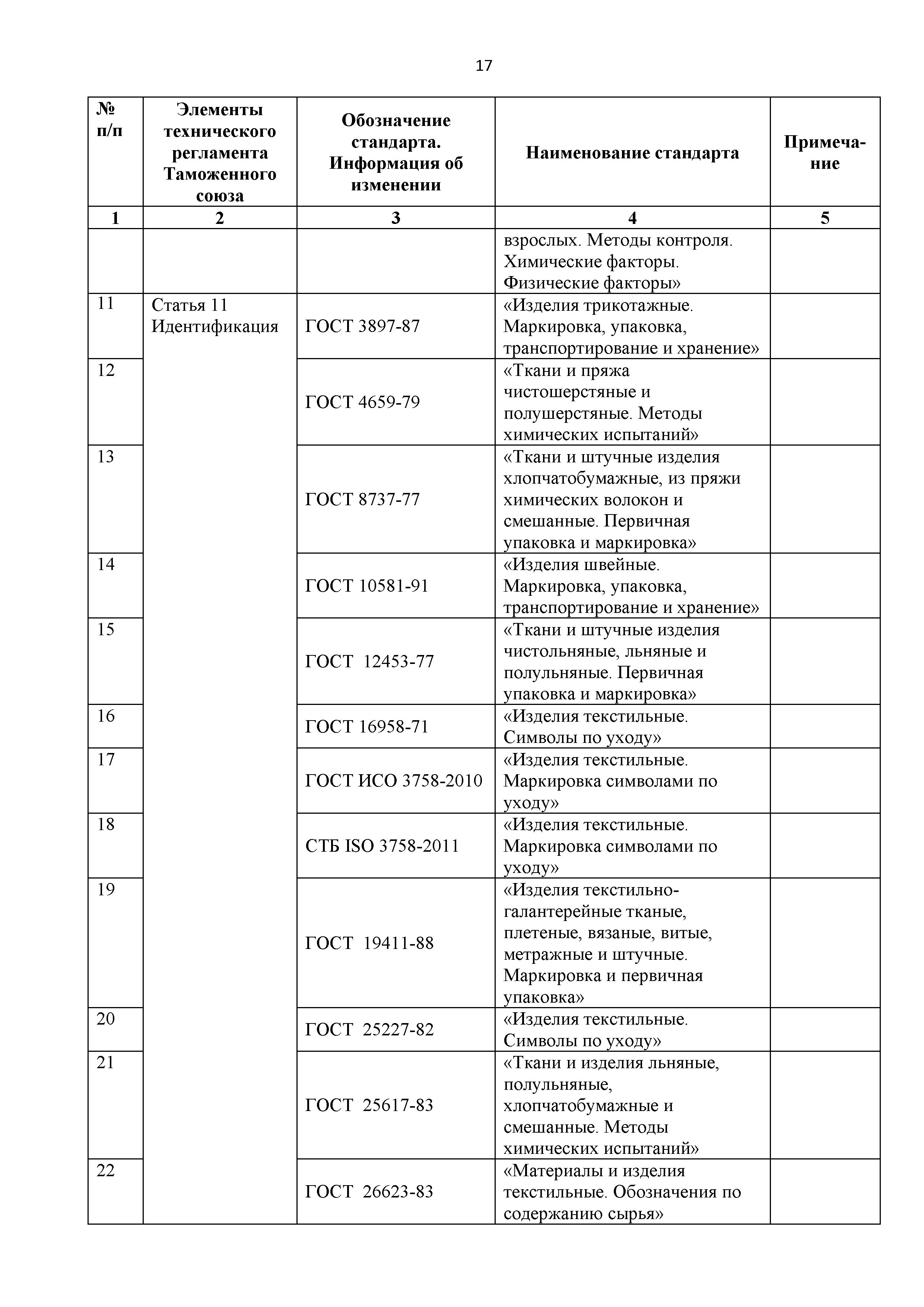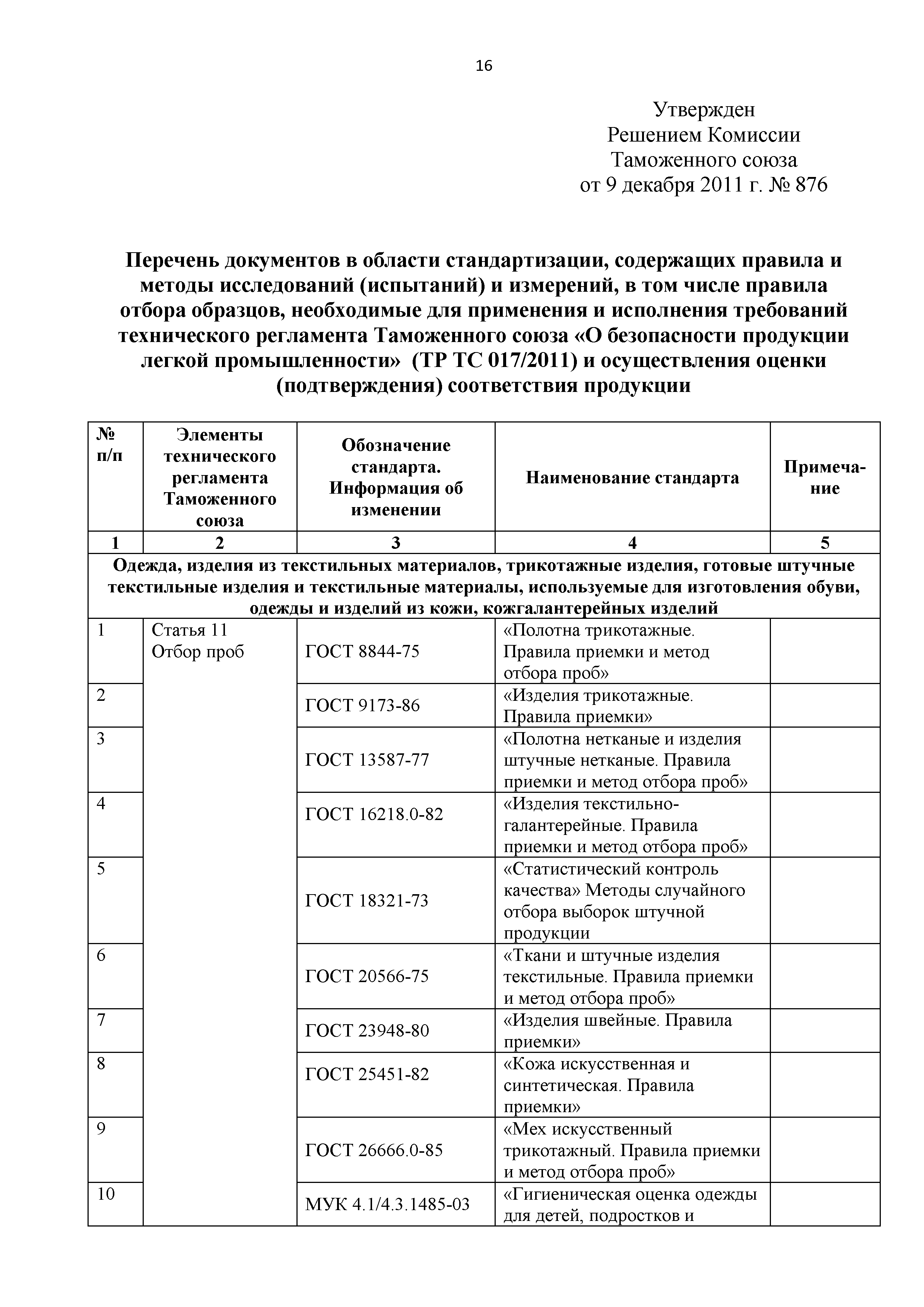 | Название рус.: | Перечень документов в области стандартизации, содержащих правила и методы исследований (испытаний) и измерений, в том числе правила отбора образцов, необходимые для применения и исполнения требований технического регламента Таможенного союза "О безопасности продукции легкой промышленности" (ТР ТС 017/2011) и осуществления оценки (подтверждения) соответствия продукции |
