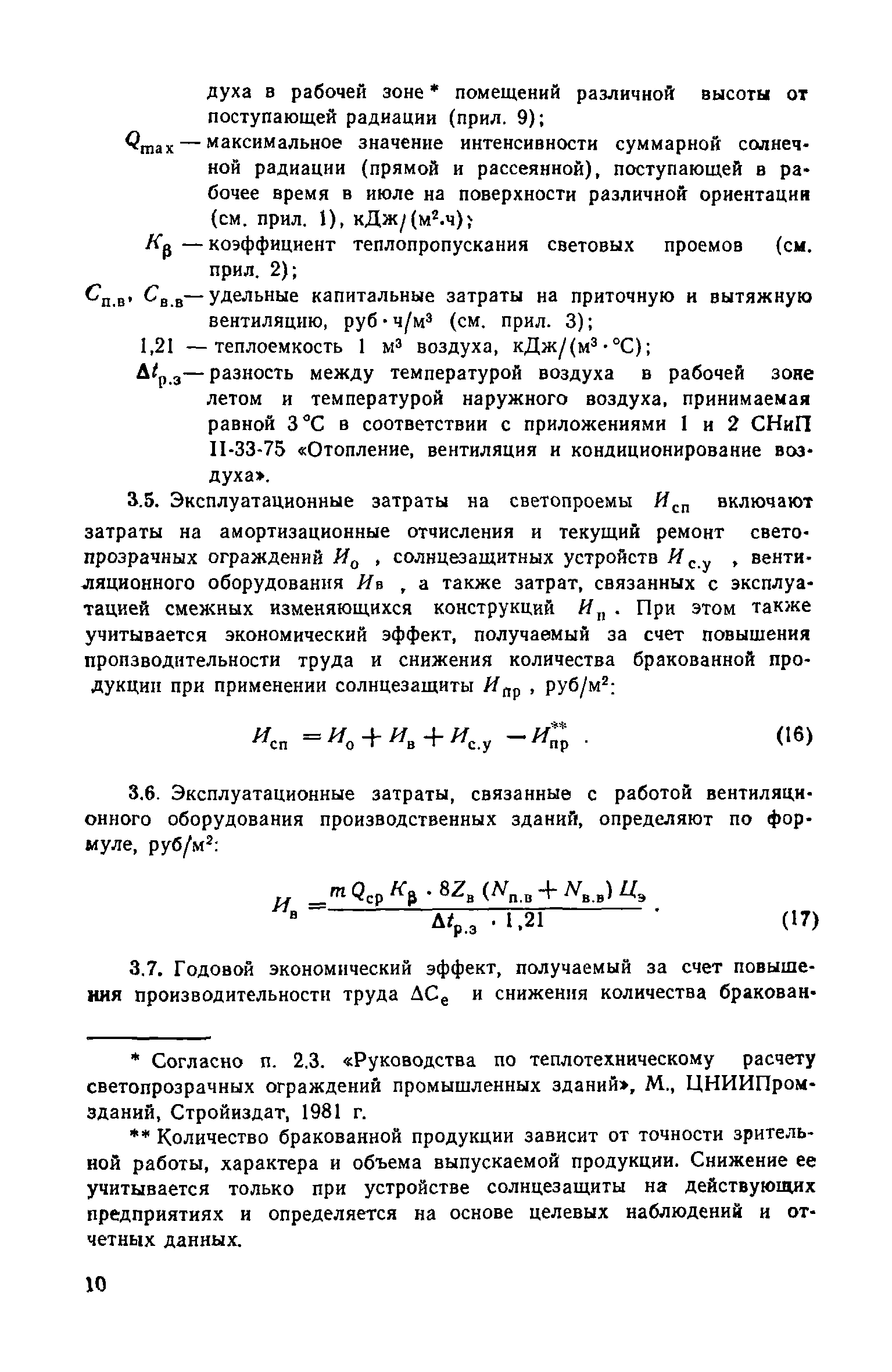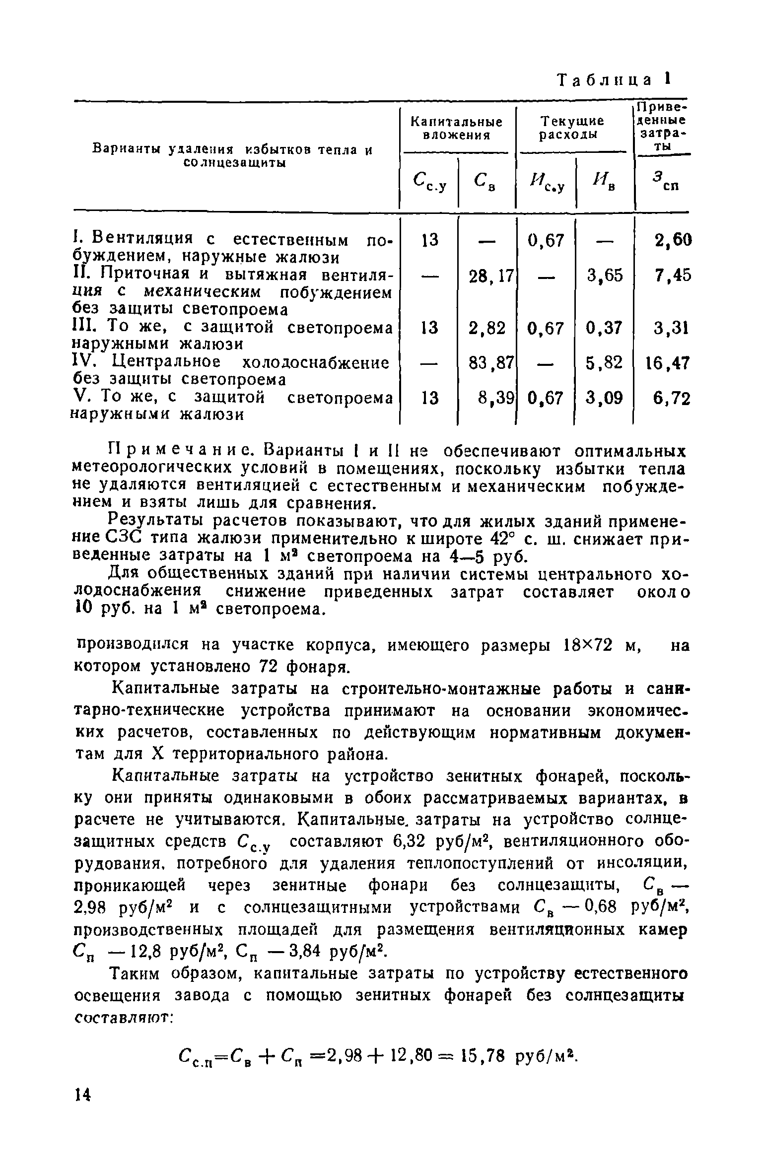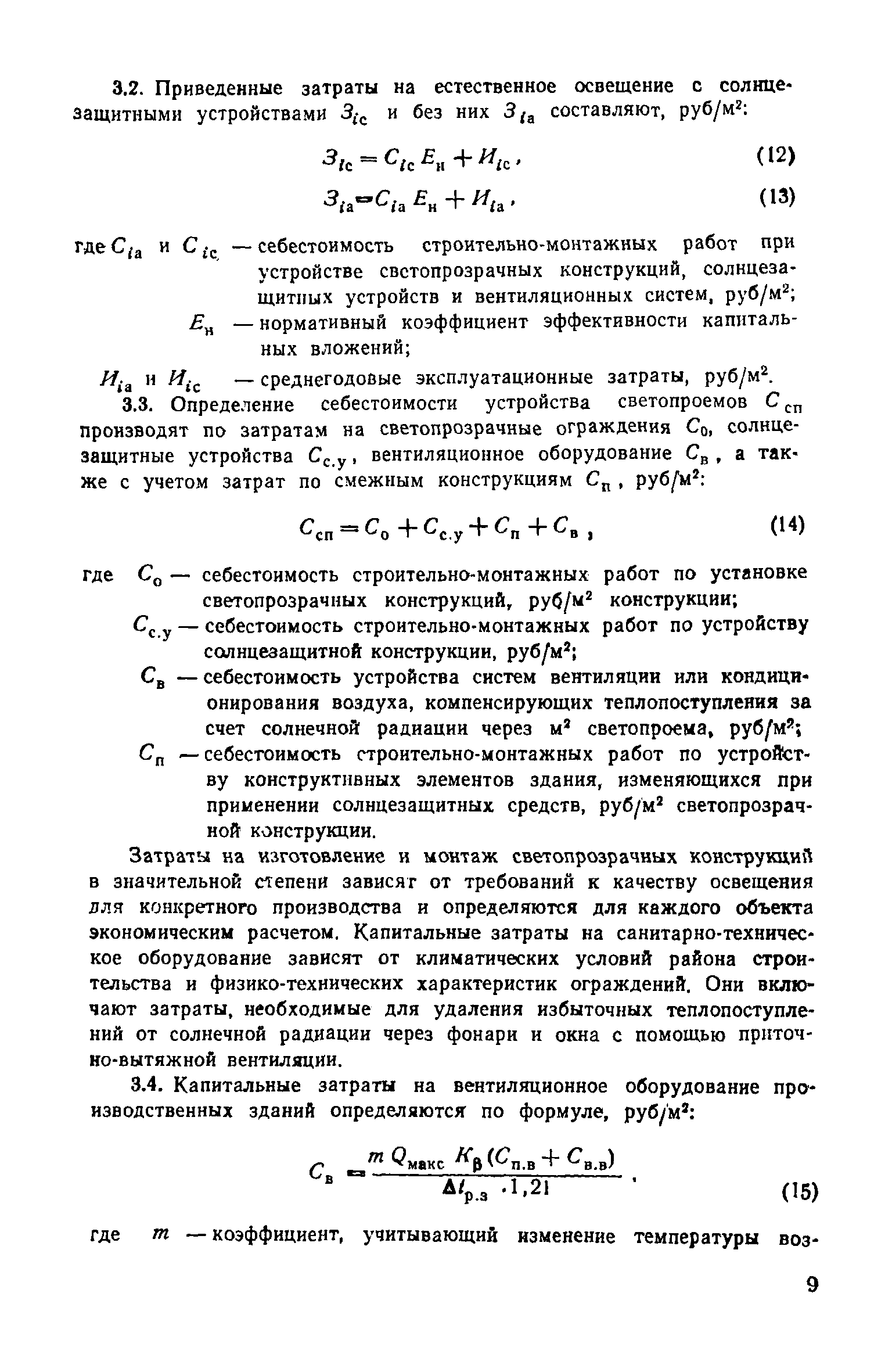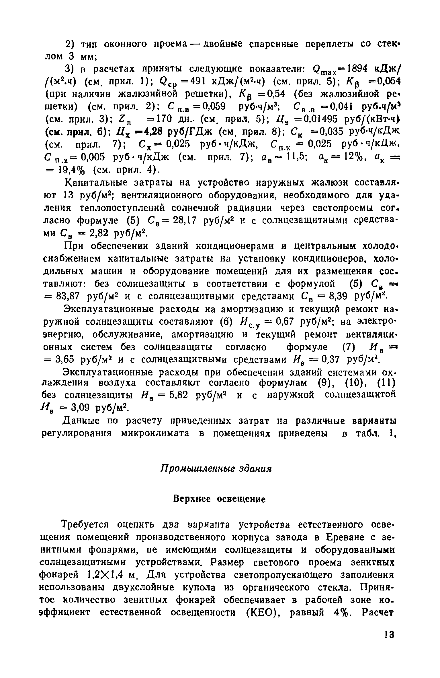 Рекомендации по технико-экономической оценке солнцезащитных средств в зданиях различного назначения| Статус: | действует | | Название рус.: | Рекомендации по технико-экономической оценке солнцезащитных средств в зданиях различного назначения | | Дата добавления в базу: | 01.09.2013 | | Дата актуализации: | 01.01.2021 | | Область применения: | В документе изложены методические рекомендации по технико-экономическому обоснованию применения солнцезащитных средств в жилых, общественных и промышленных зданиях. | | Оглавление: | Введение 1. Общие положения 2. Жилые и общественные здания 3. Промышленные здания 4. Примеры определения эффективности применения солнцезащитных средств в зданиях различного назначения Жилые и общественные здания Промышленные здания Приложение 1. Максимальные значения суммарной солнечной радиации Qмакс в июле, поступающей при действительных условиях облачности на различно ориентированные поверхности, кДж (м2.ч) Приложение 2. Коэффициенты теплопропускания заполнения светопроемов и солнцезащитных средств Положение 3. Удельная стоимость устройства приточной и вытяжной вентиляции Приложение 4. Годовые нормы отчислений на амортизацию, обслуживание и текущий ремонт светопрозрачных конструкций и санитарно-технических систем, % от их стоимости Приложение 5. Средние суточные значения суммарной солнечной радиации Qср в вентиляционном периоде, поступающей при действительных условиях облачности на различно ориентированные поверхностях кДж (м2.ч) Приложение 6. Тарифы на тепловую и электрическую энергию, отпускаемую потребителям (выписка из Прейскуранта № 09-01) Приложение 7. Удельная стоимость устройства систем кондиционирования Ск, холодоснабжения Сх, помещений для кондиционеров Спк и оборудования систем холодоснабжения Спх руб.ч/кДж Приложение 8. Стоимость холода Цх, получаемого на различных установках, руб/ГДж Приложение 9. Коэффициент m. Учитывающий изменение температуры воздуха в рабочей зоне- помещений различной высотs от поступающей радиации | | Разработан: | НИИСФ Госстроя СССР