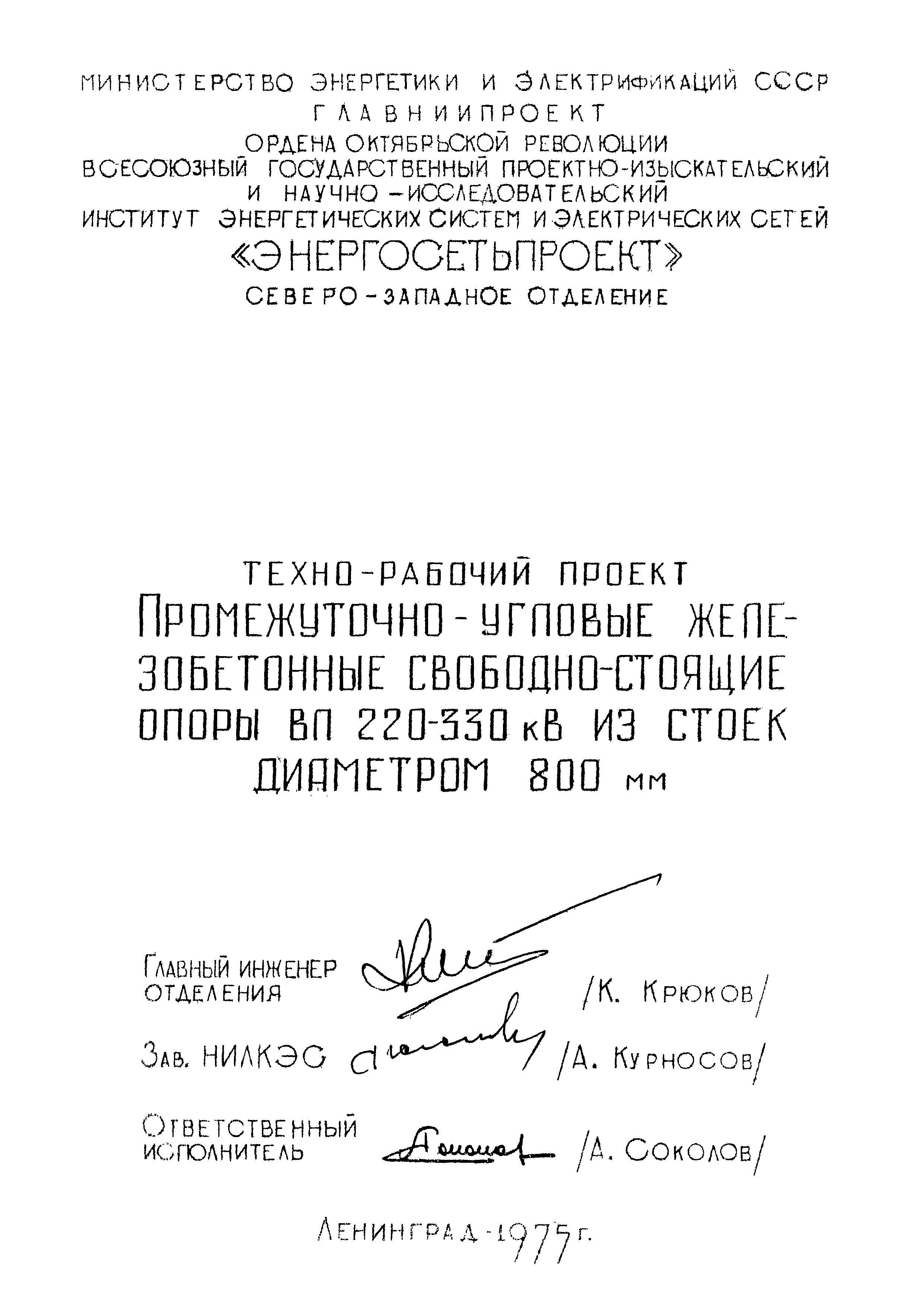 | Разработан: | Северо-западное отделение института Энергосетьпроект