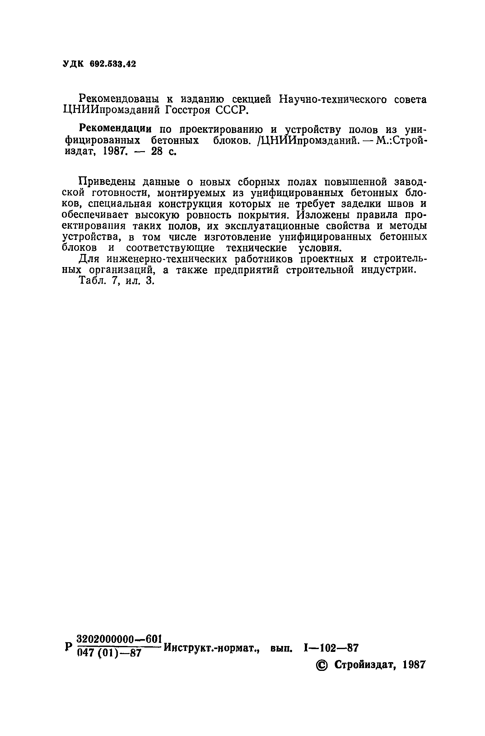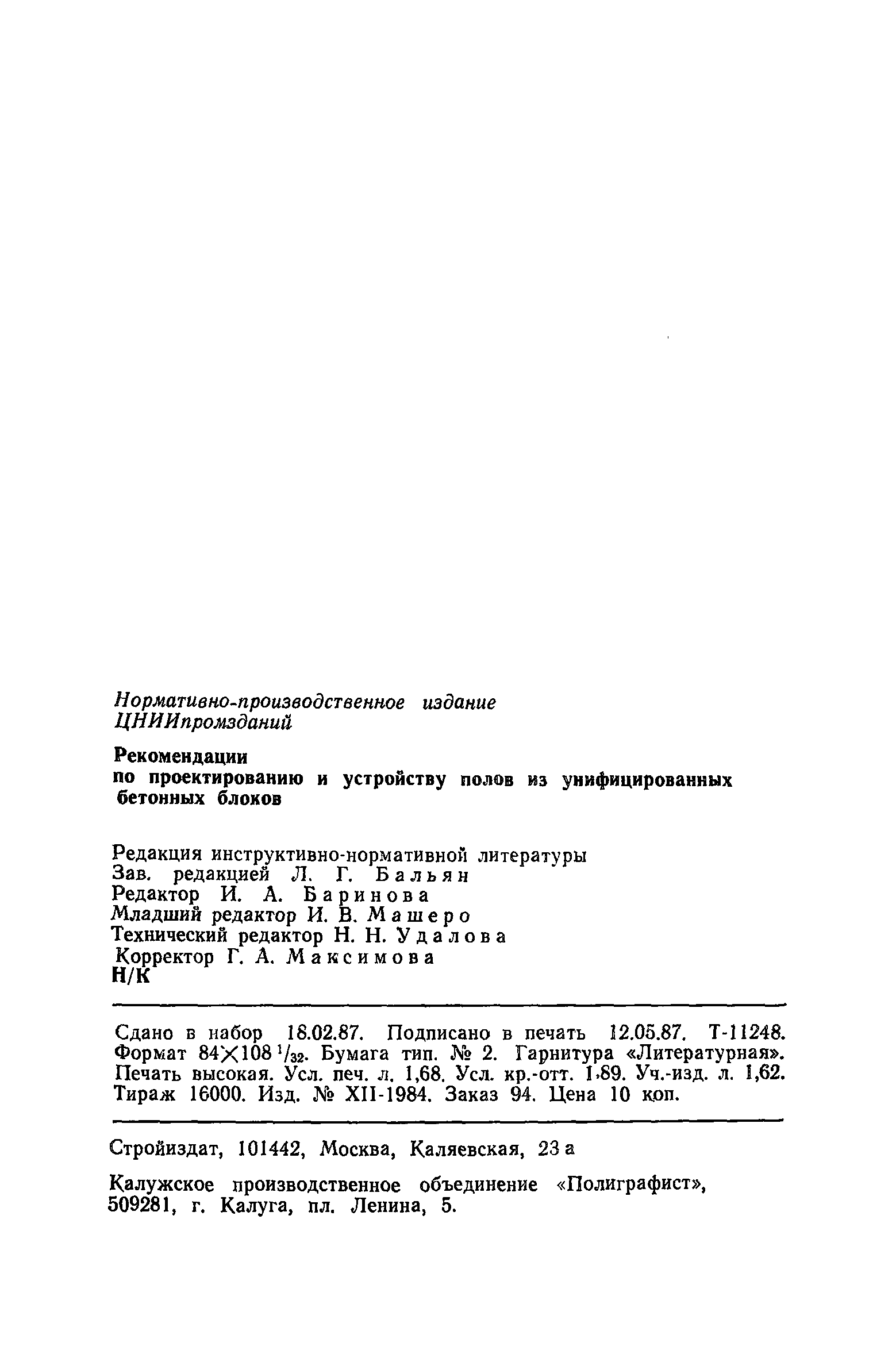 | Область применения: | В документе приведены данные о новых сборных полах повышенной заводской готовности, монтируемых из унифицированных бетонных блоков, специальная конструкция которых не требует заделки швов и обеспечивает высокую ровность покрытия. Изложены правила проектирования таких полов, их эксплуатационные свойства и методы устройства, в том числе изготовление унифицированных бетонных блоков и соответствующие технические условия. |
