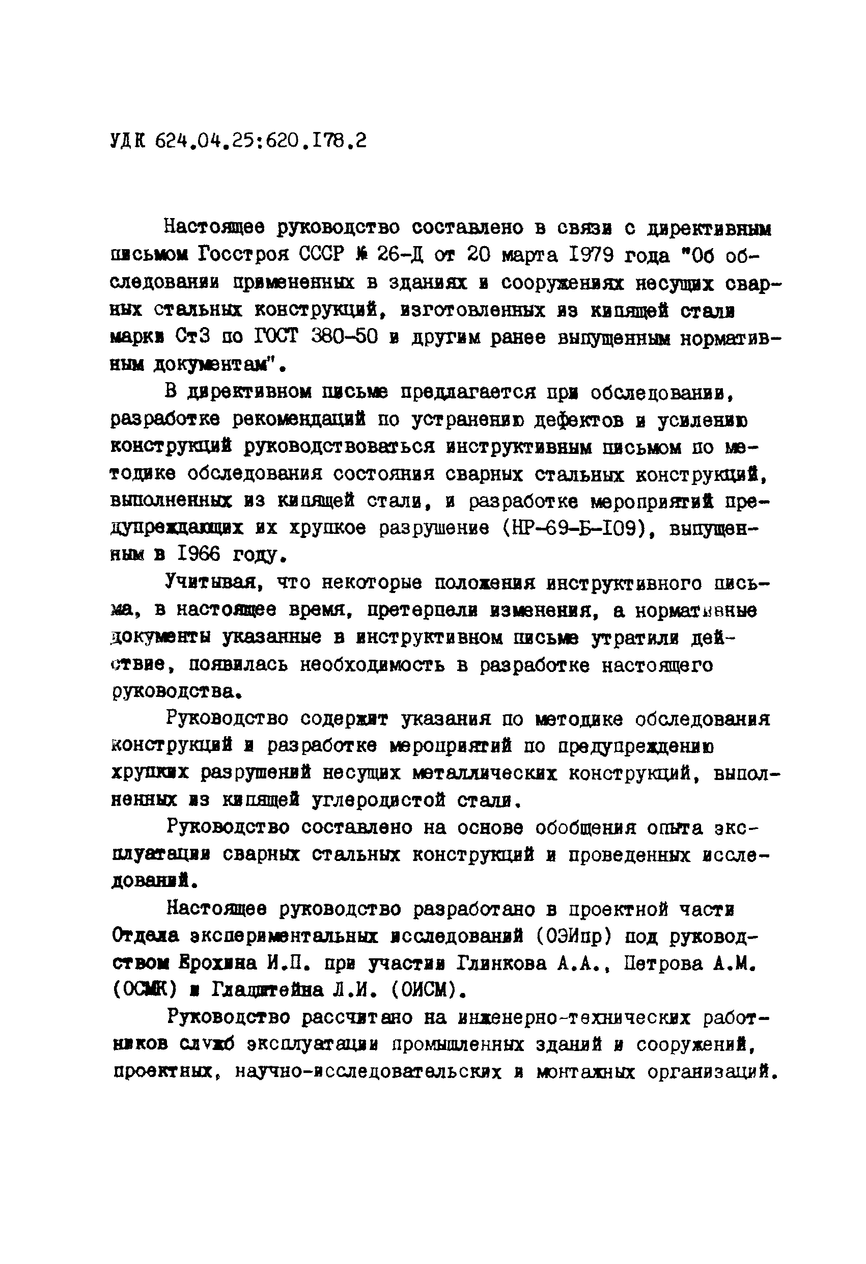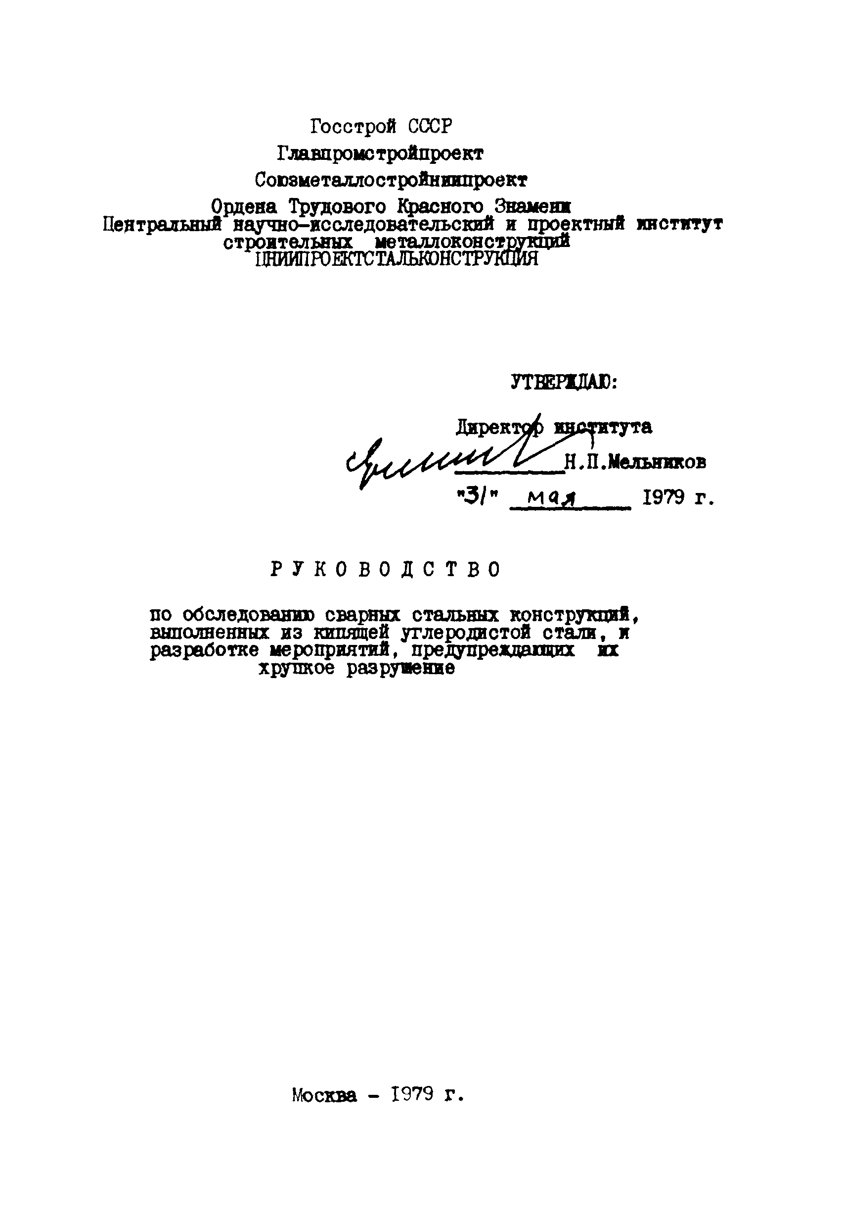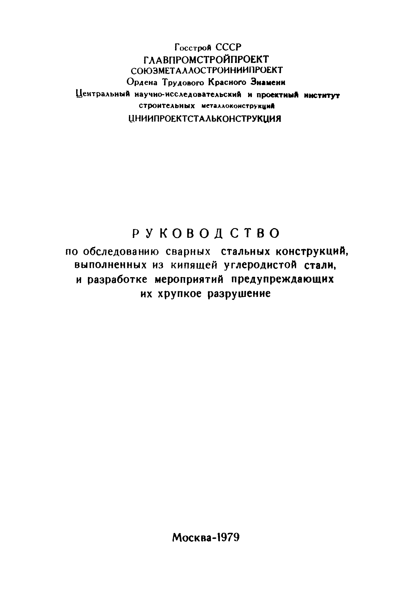 | Название рус.: | Руководство по обследованию сварных стальных конструкций, выполненных из кипящей углеродистой стали, и разработке мероприятий, предупреждающих их хрупкое разрушение |