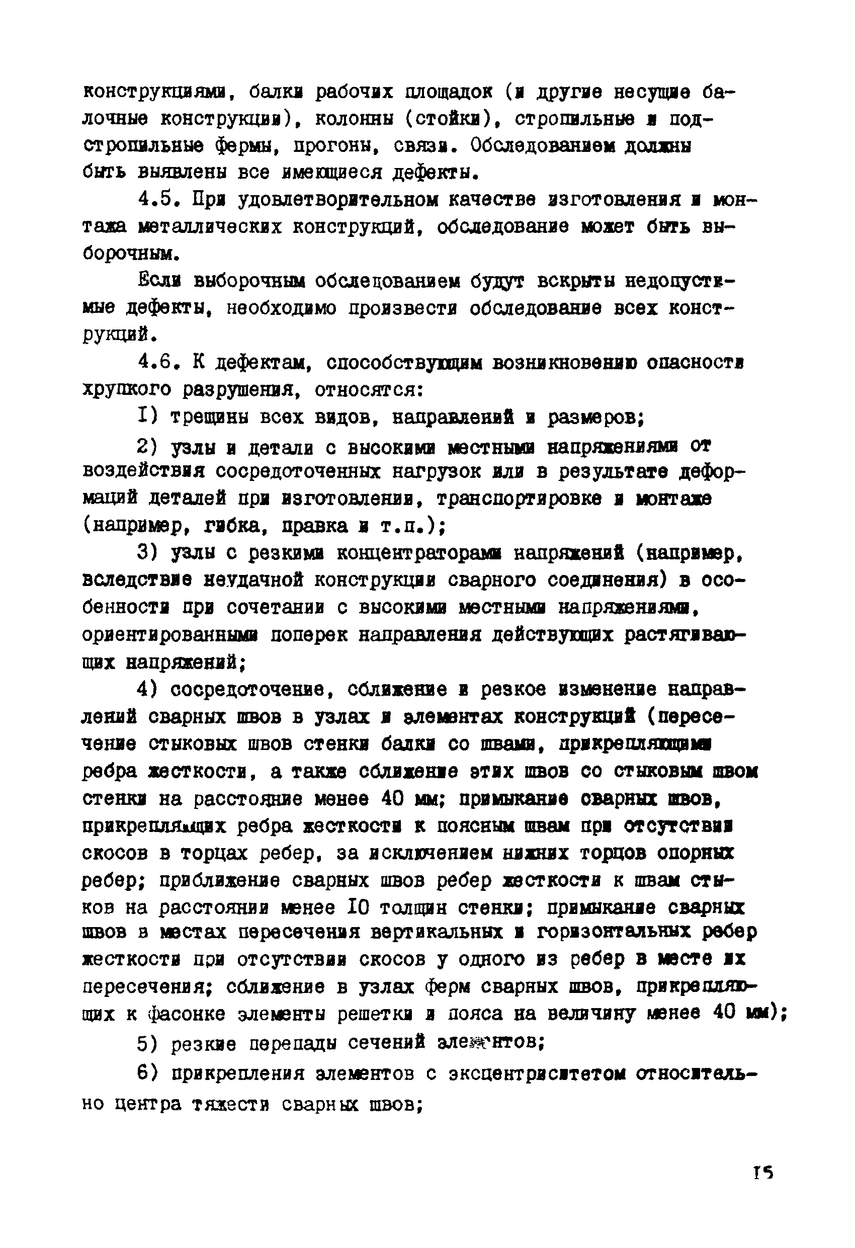 | Оглавление: | 1. Общие положения 2. Подбор и изучение технической документации 3. Дополнительные анализы металла и оценка его качества 4. Обследование состояния сварных стальных конструкций 5. Заключение о состоянии сварных стальных конструкций и возможности их дальнейшей эксплуатации 6. Мероприятия по предупреждению хрупкого разрушения сварных стальных конструкций |