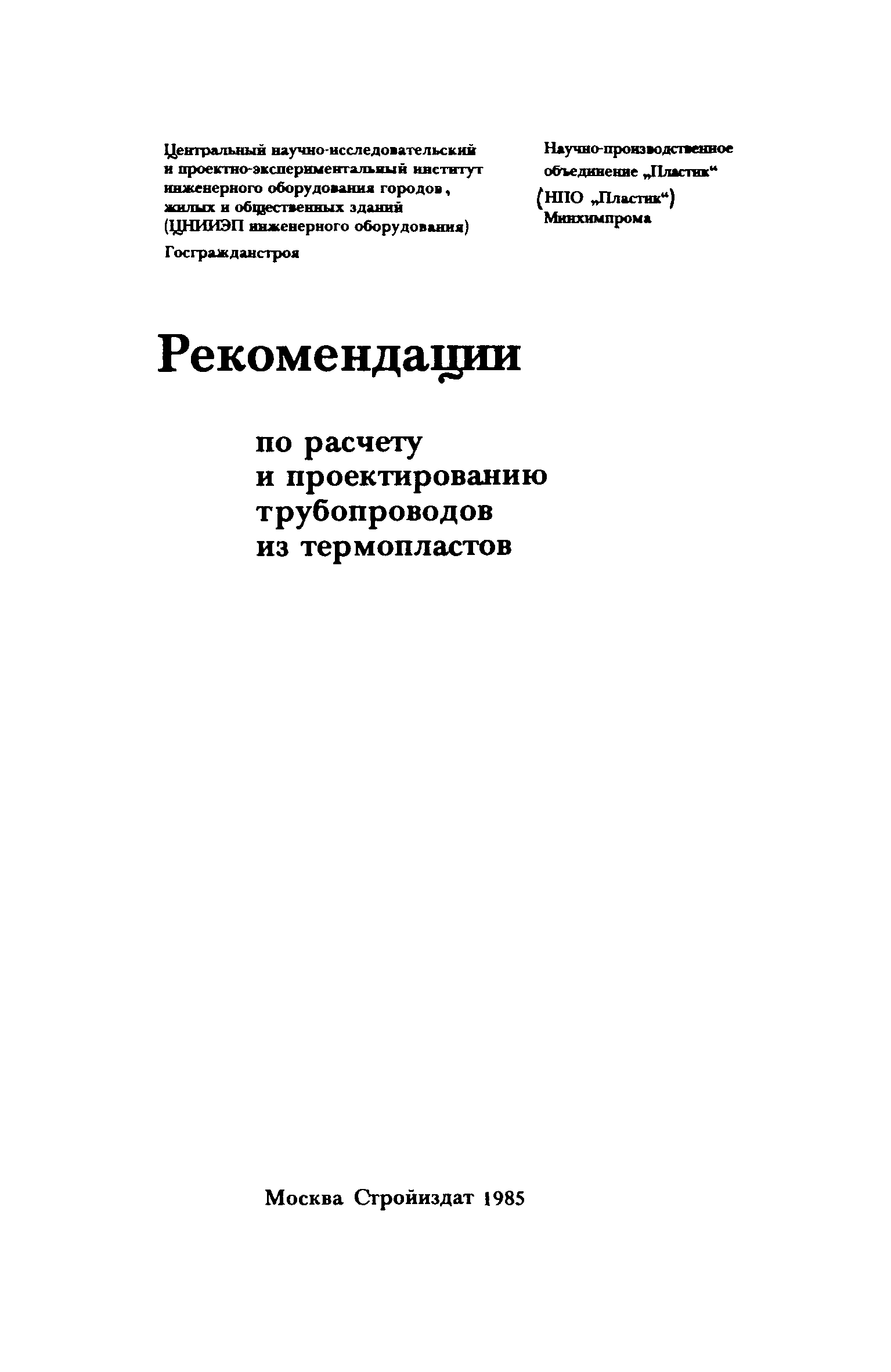 | Название рус.: | Рекомендации по расчету и проектированию трубопроводов из термопластов |