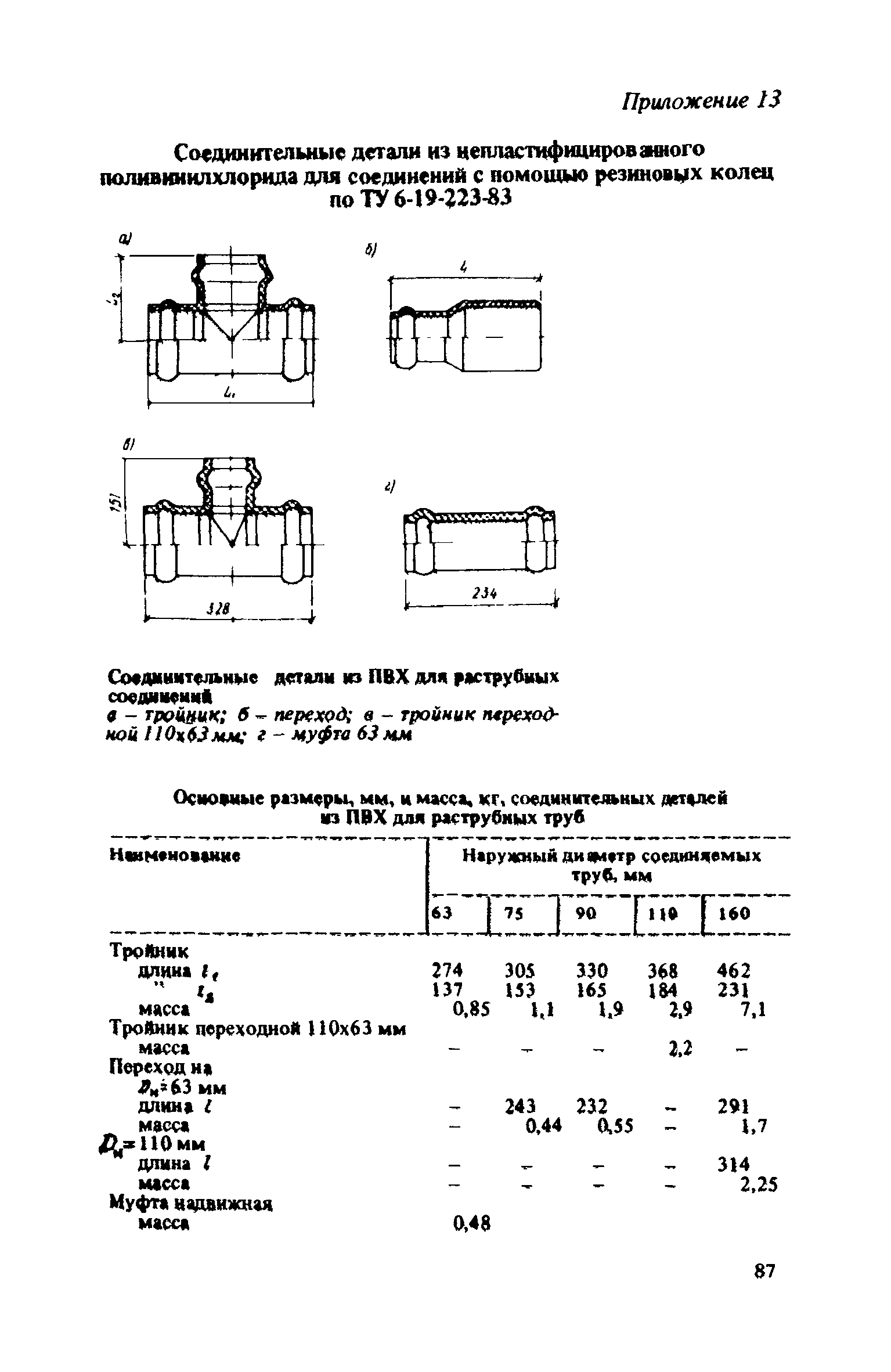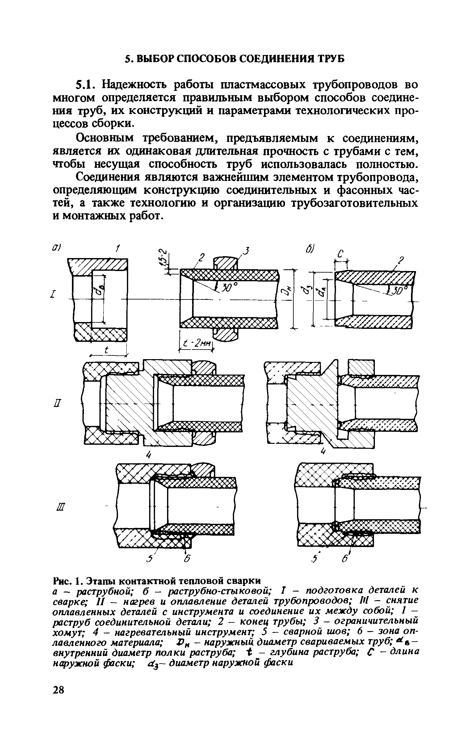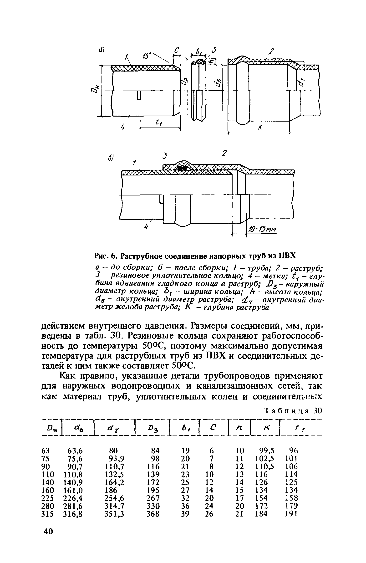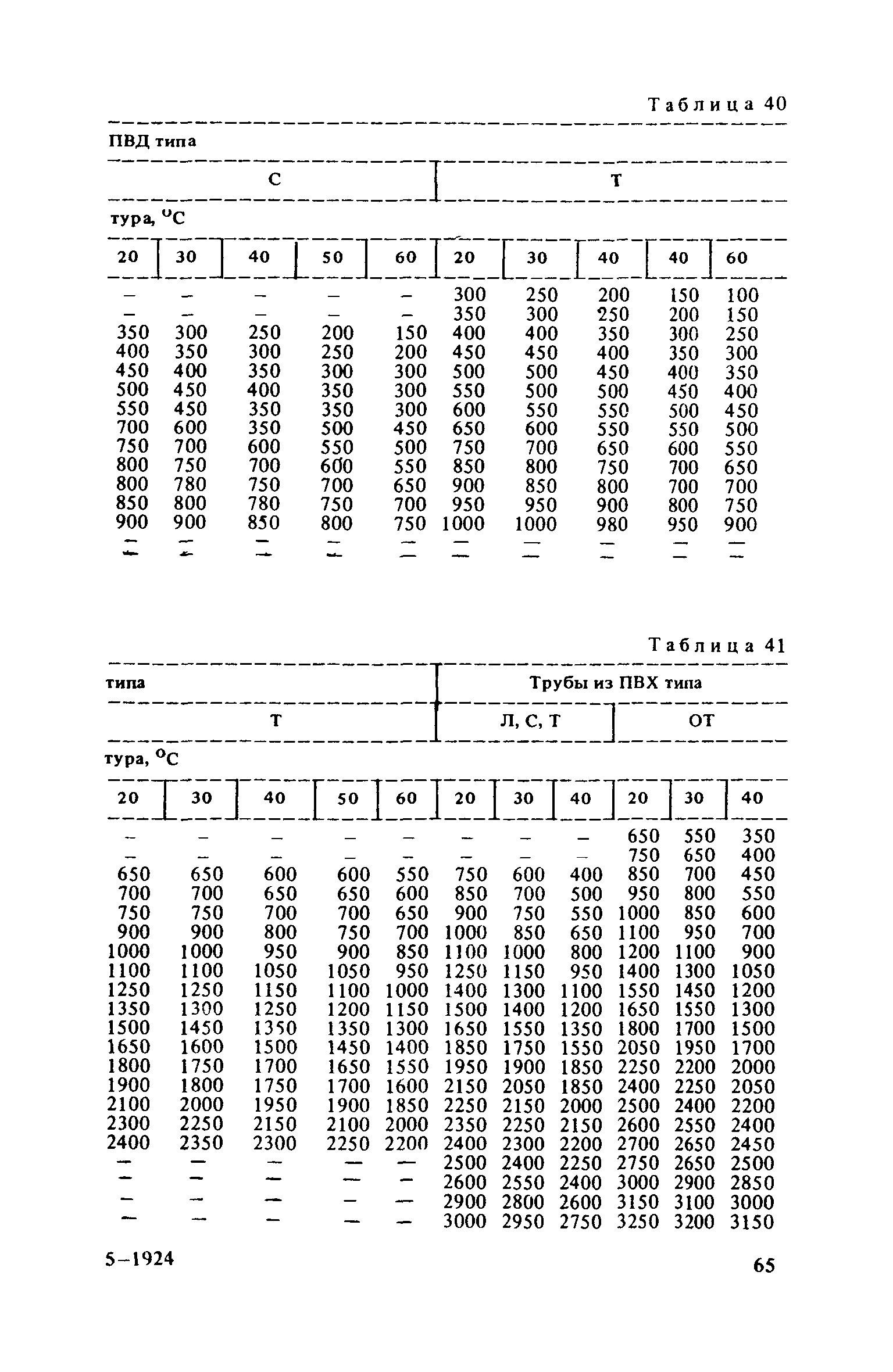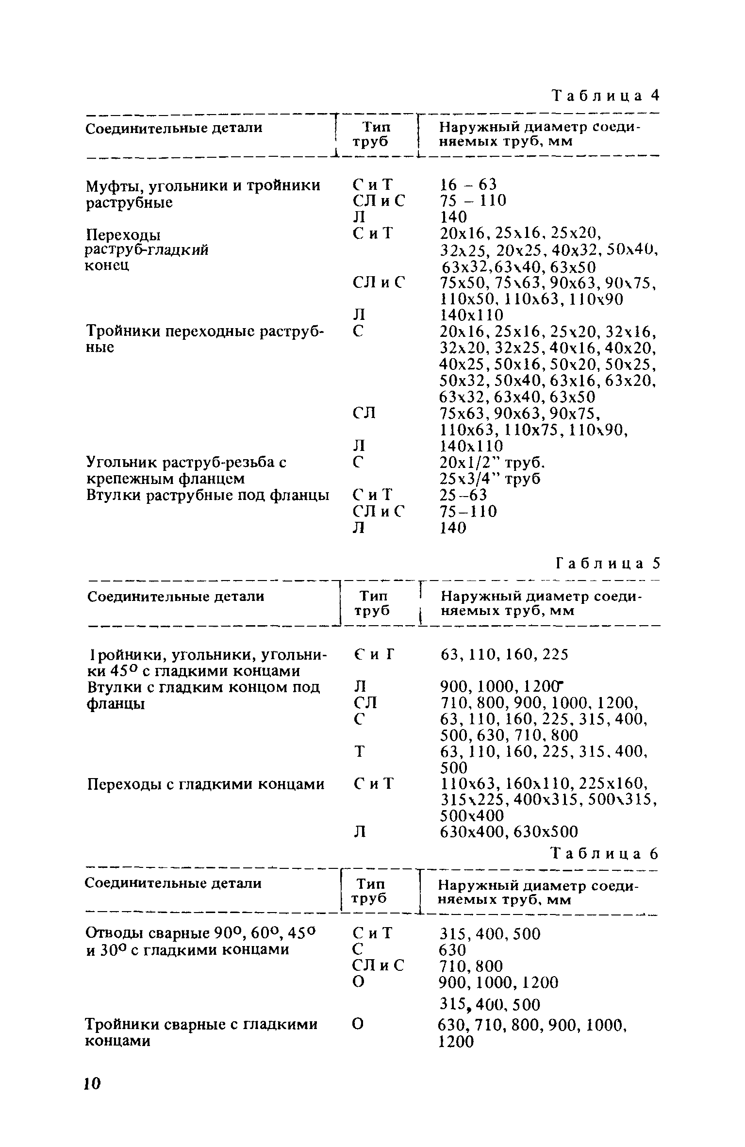 | Оглавление: | 1. Общие положения 2. Применение труб из термопластов для систем инженерного оборудования 3. Сортаменты на трубы из термопластов, соединительные детали, канализационные фасонные части и арматуру 4. Выбор материала и типа труб из термопластов 5. Выбор способов соединения труб 6. Гидравлический расчет труб из термопластов 7. Конструирование трубопроводов из термопластов Приложение 1. Сортамент напорных труб из полиэтилена высокого давления по ГОСТ 18599-73 с изменениями Приложение 2. Сортамент напорных труб из полиэтилена низкого давления по ГОСТ 18599-73 с изменениями Приложение 3. Сортамент напорных труб из полиэтилена низкого давления по ТУ 6-19-214-83 Приложение 4. Сортамент напорных труб из полипропилена по ТУ 38-102-100-76 Приложение 5. Сортамент напорных труб из непластифицированного поливинилхлорида (ПВХ-100) по ТУ 6-19-231-83 Приложение 6. Сортамент напорных труб из непластифицированного поливинилхлорида с раструбами по ТУ 6-19-231-83 Приложение 7. Соединительные детали из полиэтилена низкой плотности (ПВД) для напорных труб по ОСТ 6-05-367-74 Приложение 8. Соединительные детали из полиэтилена низкого давления для напорных труб по ТУ 6-19-213-83 Приложение 9. Соединительные сварные и гнутые детали из полиэтилена низкого давления для напорных труб по ТУ 6-19-218-83 Приложение 10. Сборные детали седелок из полиэтилена низкого давления для напорных труб по ТУ 6-19-051-262-80 Приложение 11. Соединительные детали из непластифицированного поливинилхлорида для клеевых соединений по ТУ 6-19-222-83 Приложение 12. Соединительные детали из чугуна для поливинилхлоридных раструбных труб Приложение 13. Соединительные детали из непластифицированного поливинилхлорида для соединений с помощью резиновых колец по ТУ 6-19-223-83 Приложение 14. Отводы из непластифицированного поливинилхлорида по ТУ 6-19-221-83 Приложение 15. Фасонные части к пластмассовым канализационным трубам по ГОСТ 22689.4-77-22689 20-77 Приложение 16. Запорная арматура для коррозионных и агрессивных сред Приложение 17. Физико-механические свойства термопластов трубных марок при кратковременных испытаниях Приложение 18. Химическая стойкость деталей трубопроводов из термопластов и уплотнительных элементов из резины |
