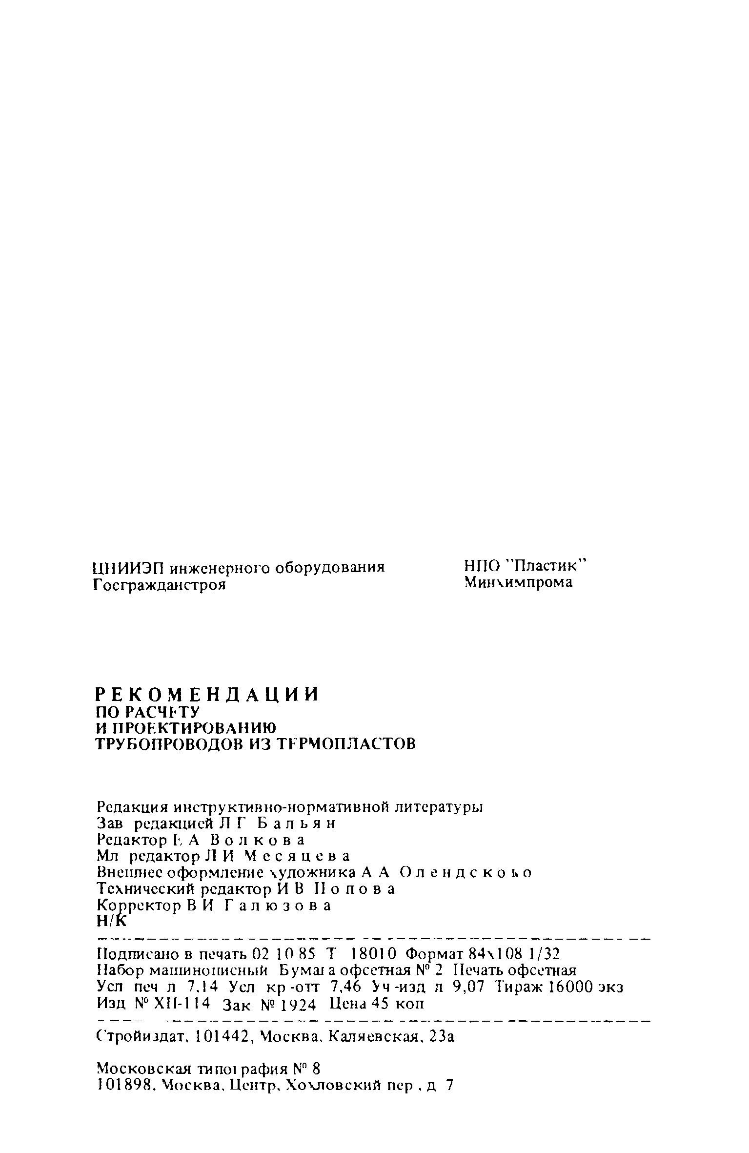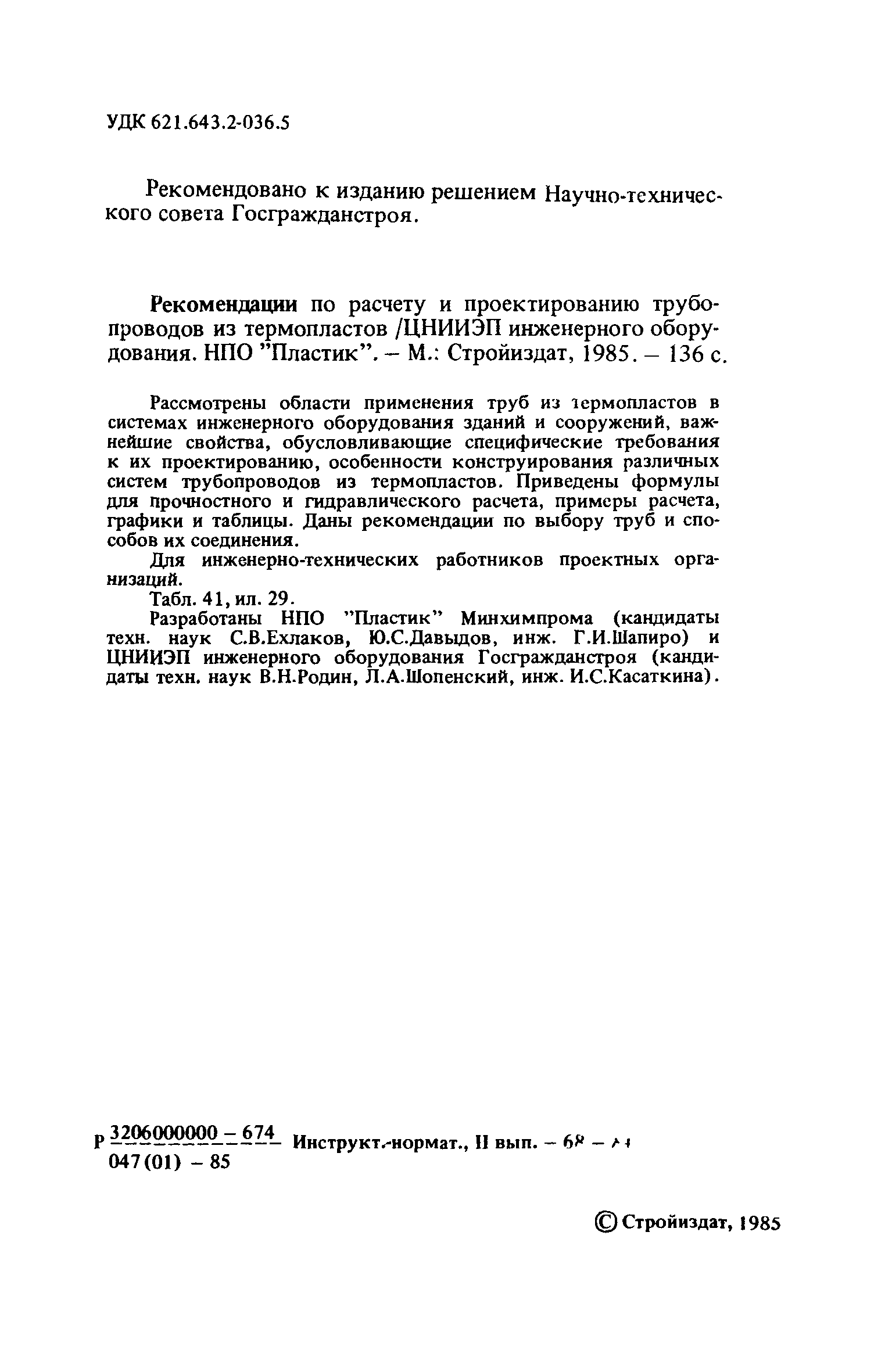 | Разработан: | НПО Пластик Минхимпрома СССР ЦНИИЭП им. Б.С. Мезенцева Госгражданстроя