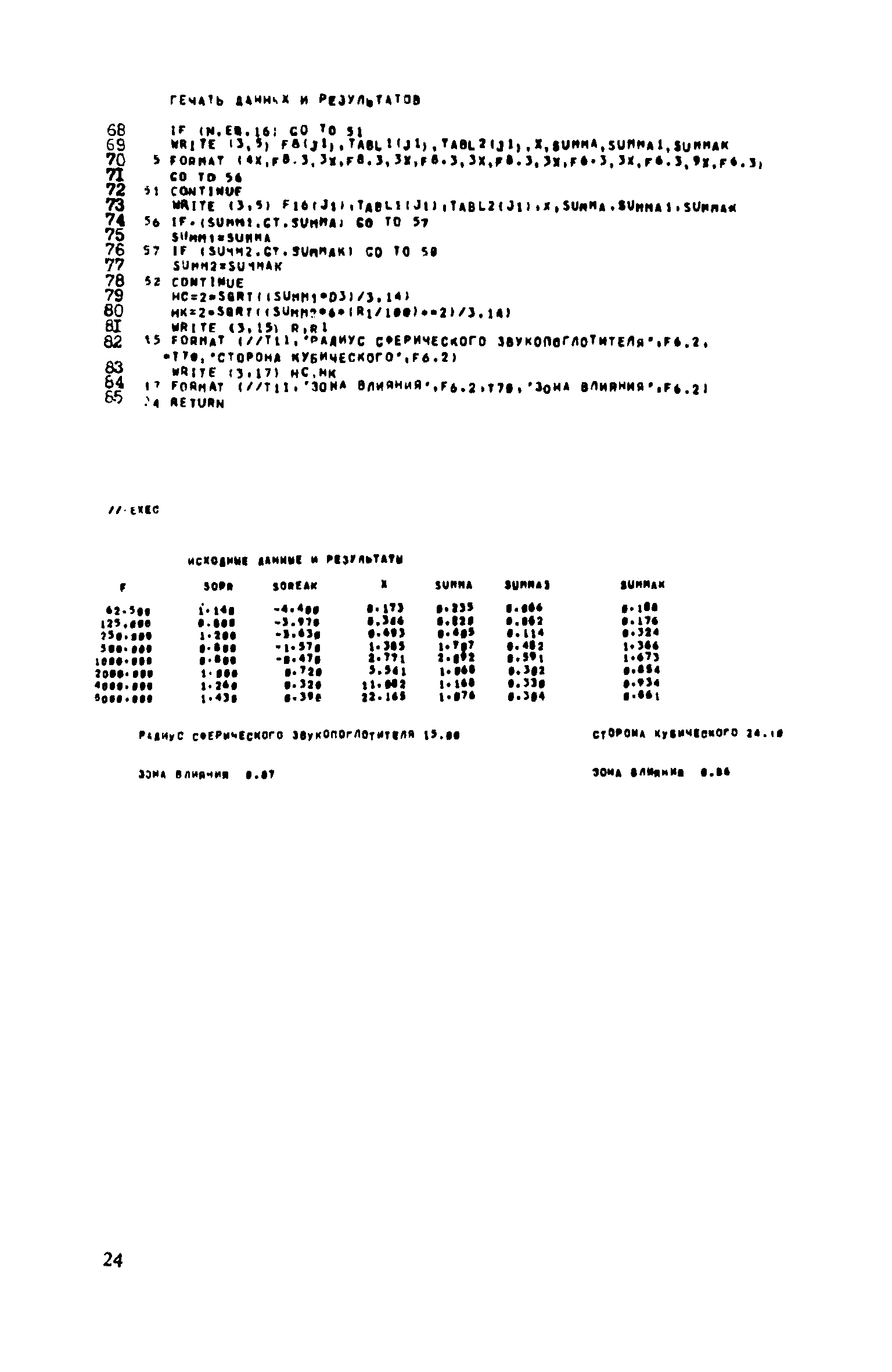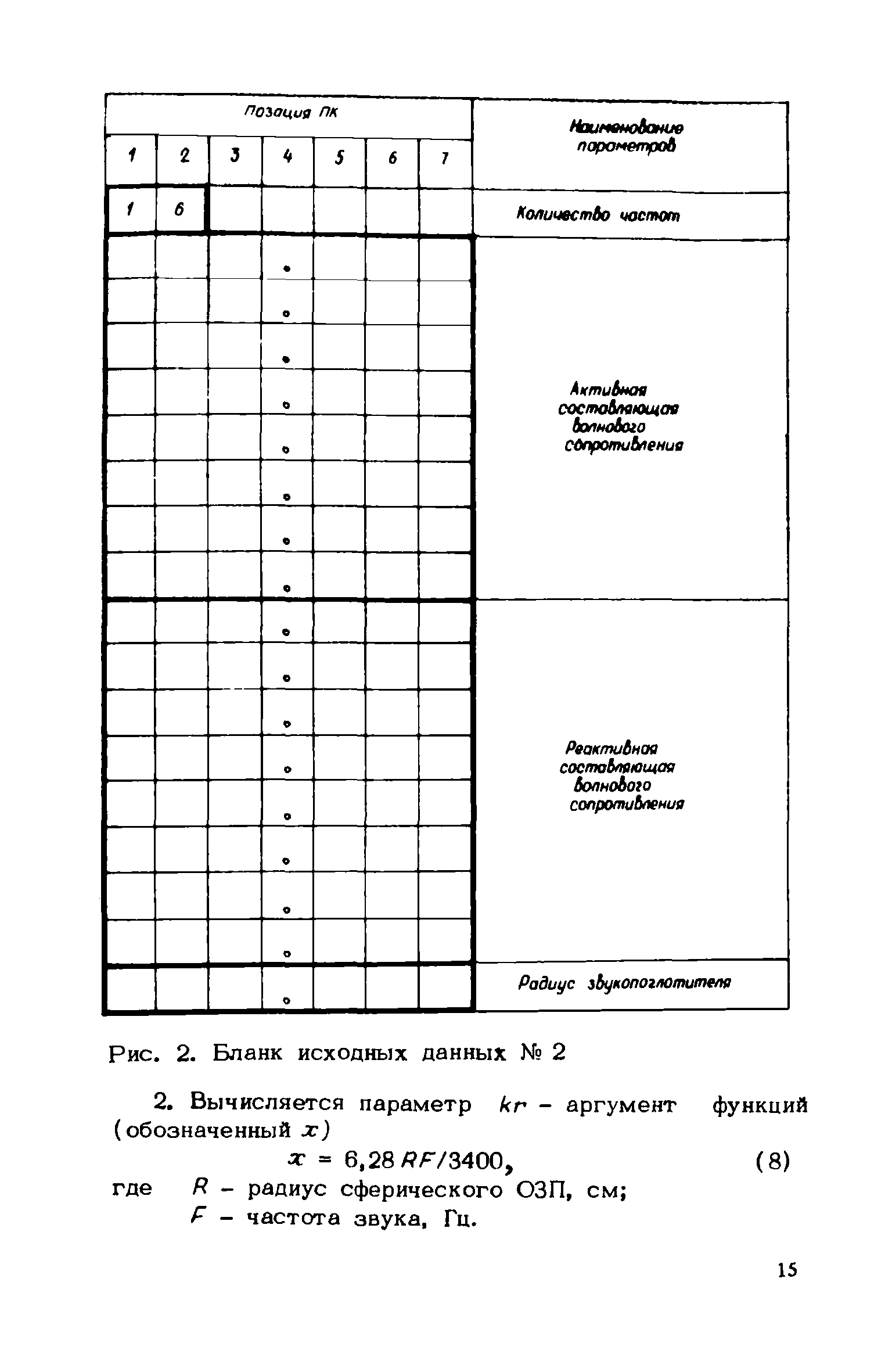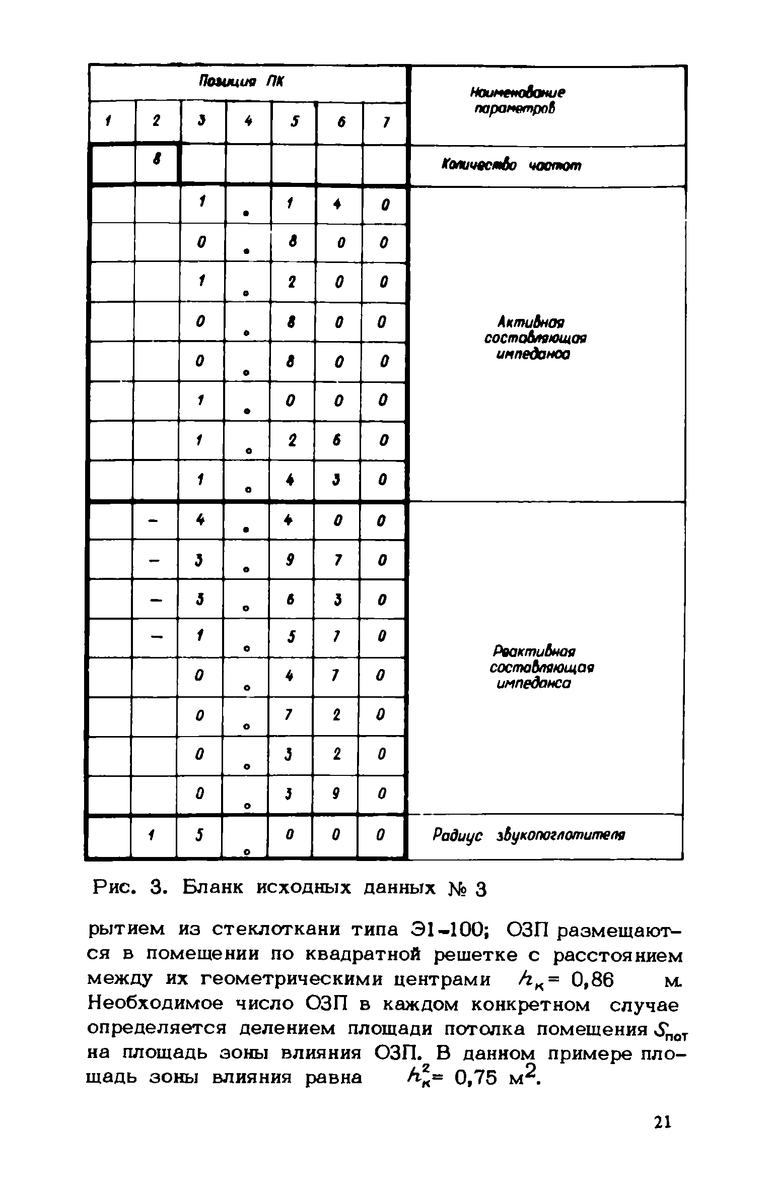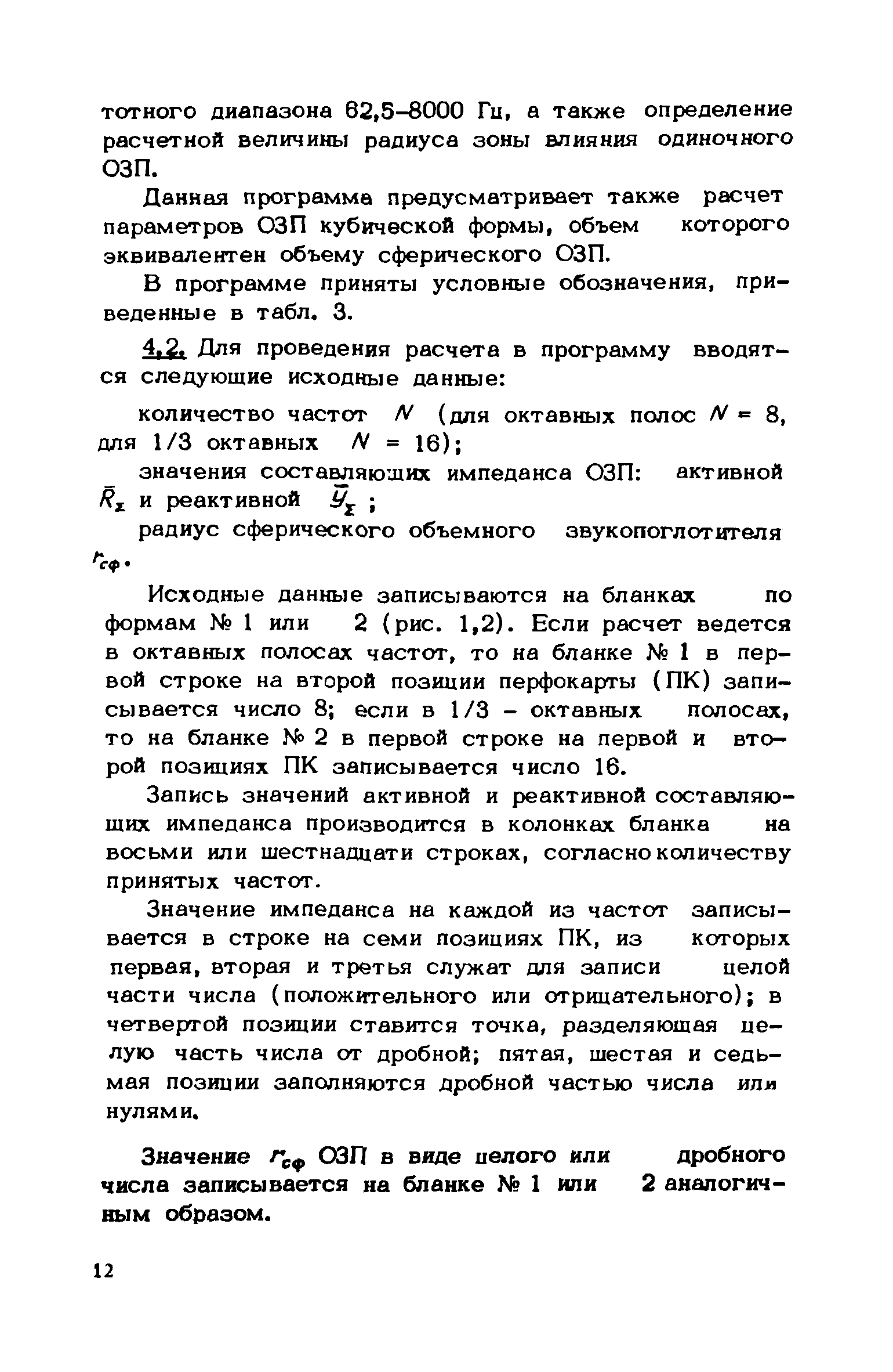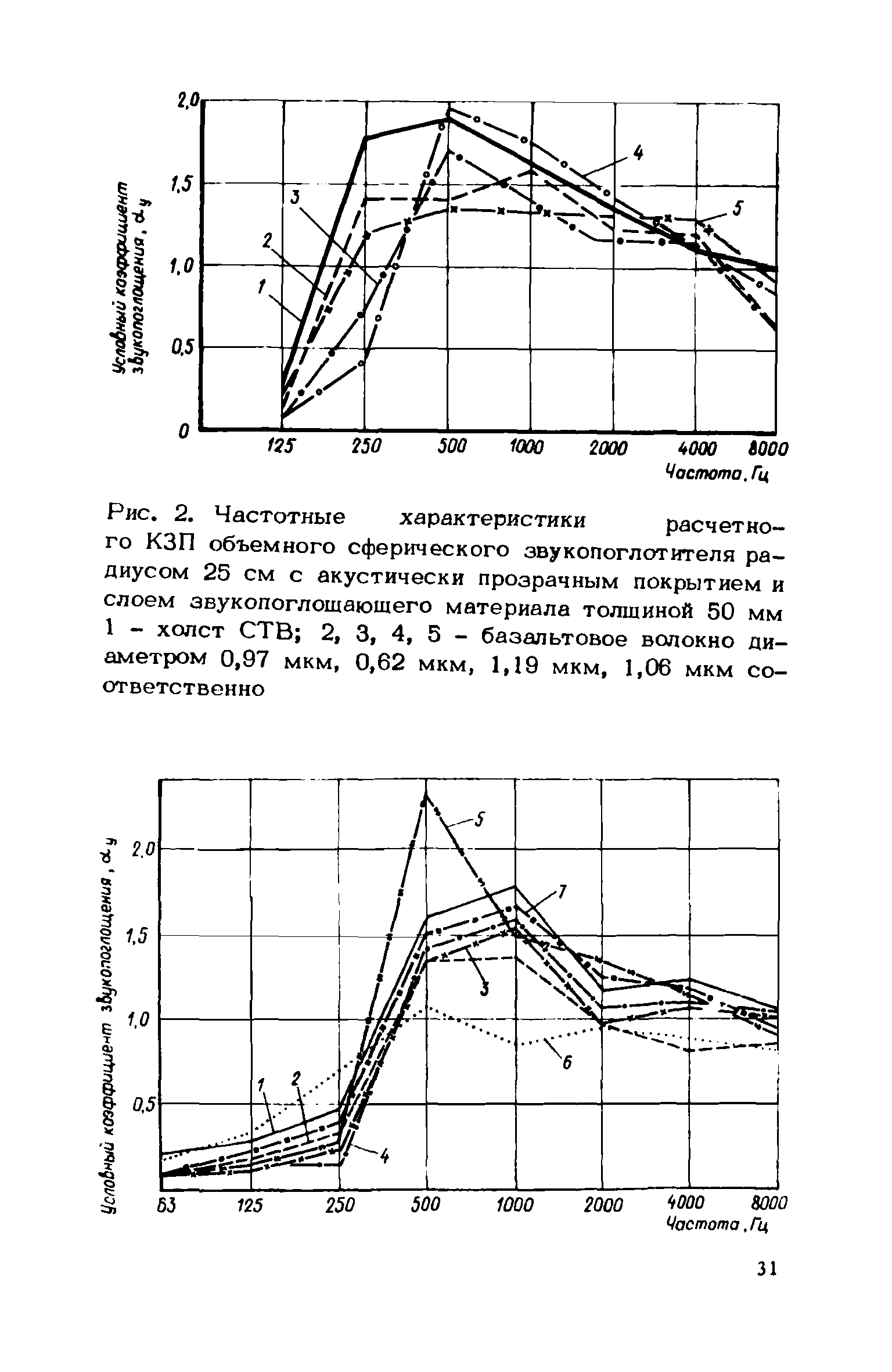 | Оглавление: | Предисловие 1. Акустические параметры объемных звукопоглотителей 2. Метод расчета коэффициента звукопоглощения объемного звукопоглотителя 3. Рекомендации по определению оптимальных параметров ОЗП 4. Описание алгоритмов расчета акустических характеристик ОЗП 5. Пример расчета Приложение 1. Программа расчета на ЭВМ частотной характеристики коэффициента звукопоглощения, эквивалентной площади звукопоглощения и радиуса зоны влияния Приложение 2. Значения волнового сопротивления и импеданса звукопоглощающих материалов Приложение 3. Расчетные частотные характеристики коэффициента звукопоглощения объемных звукопоглотителей из различных материалов |