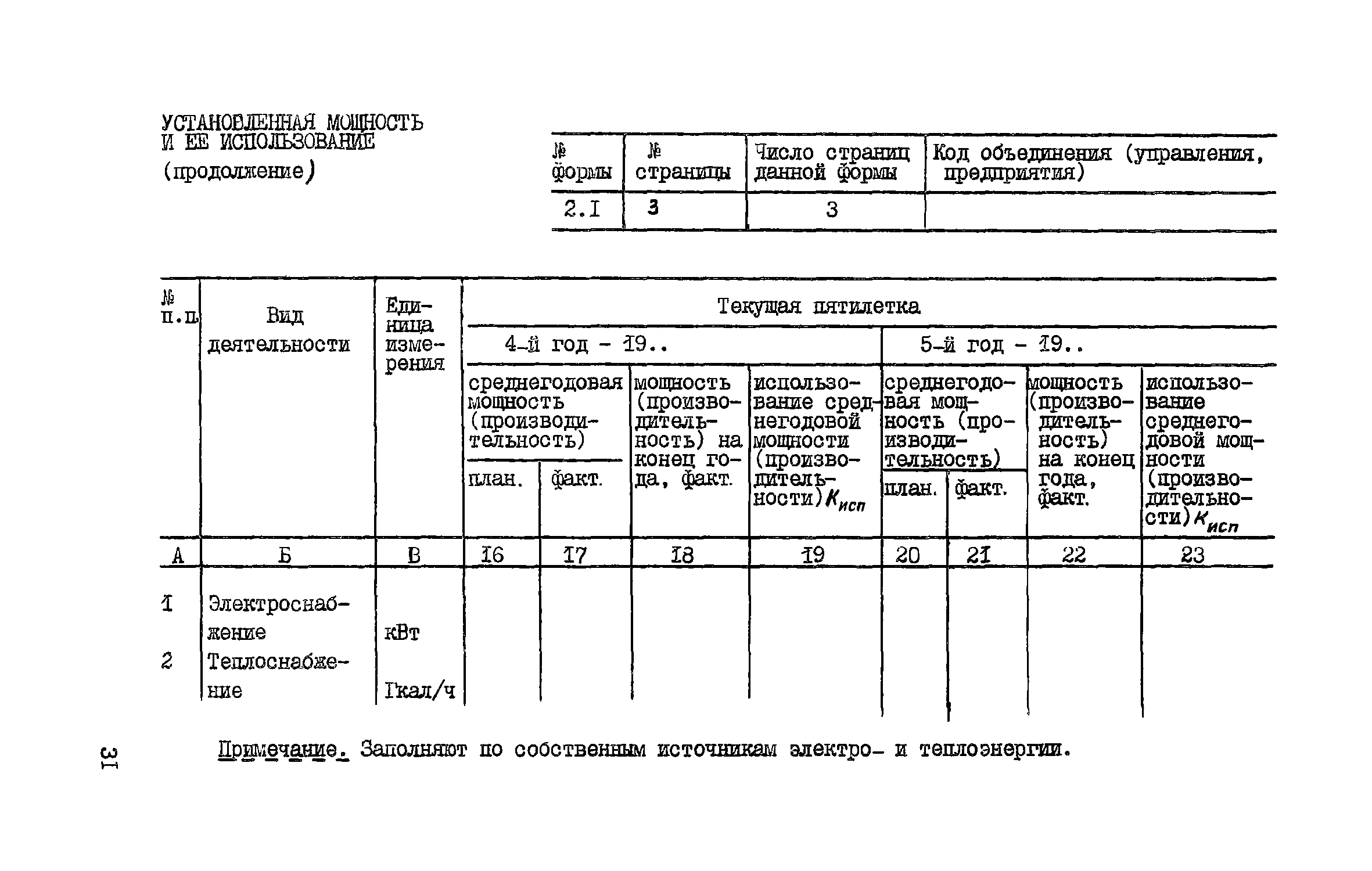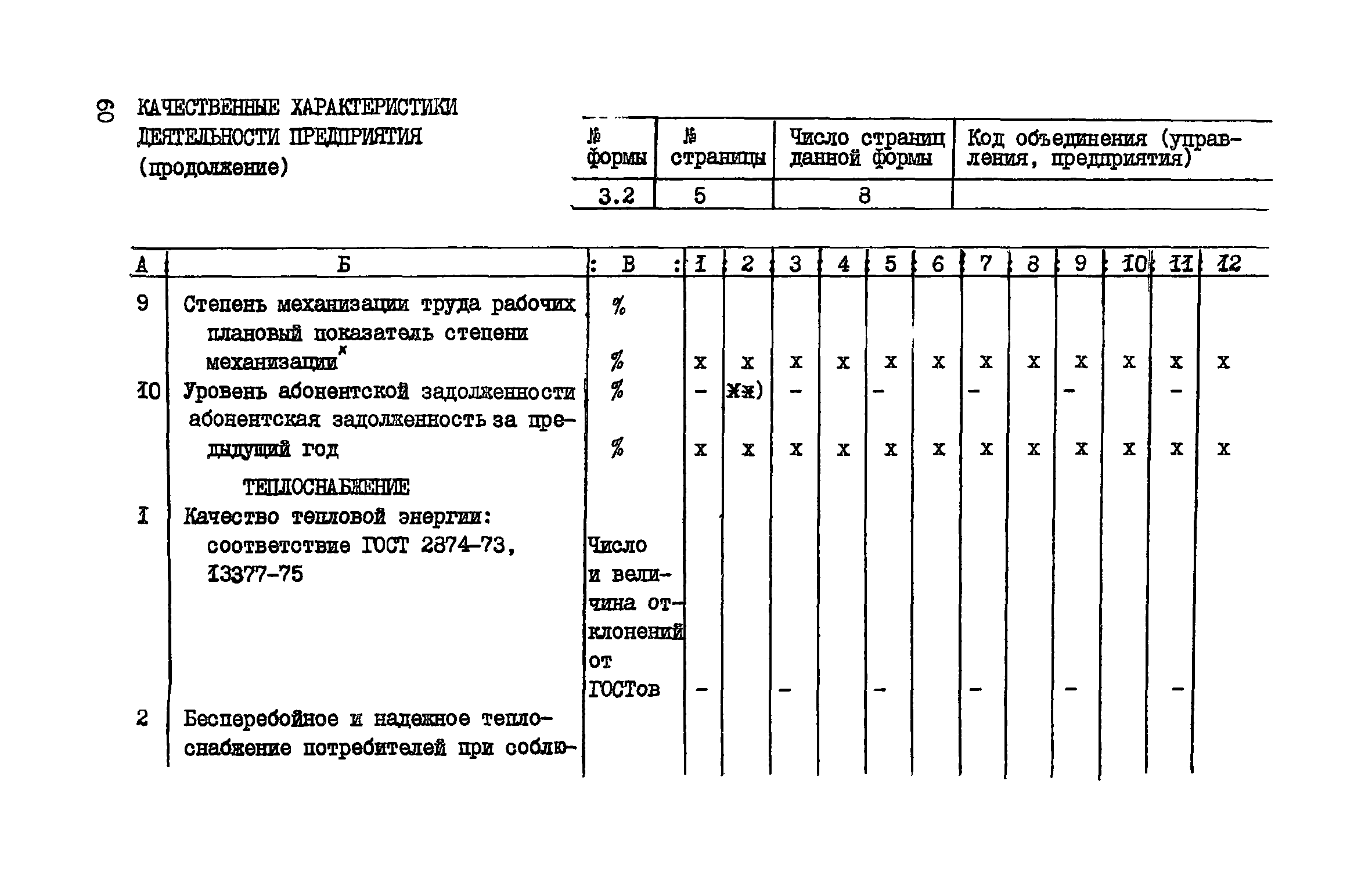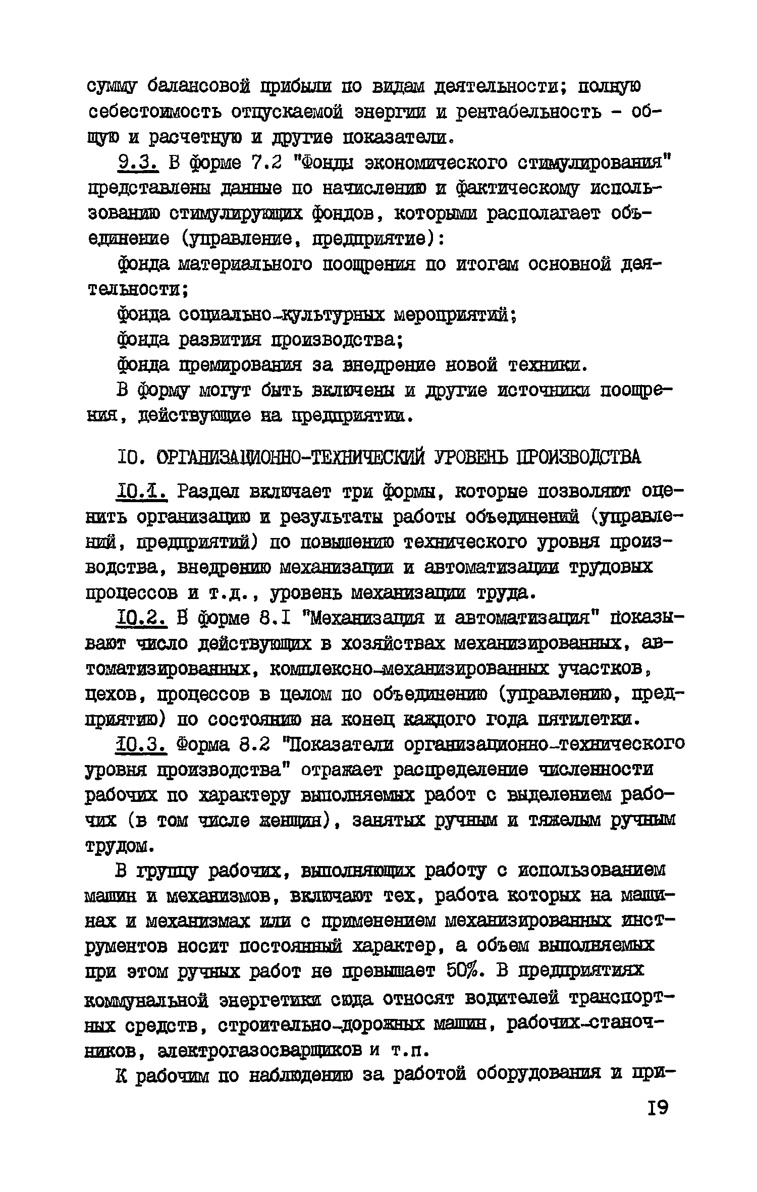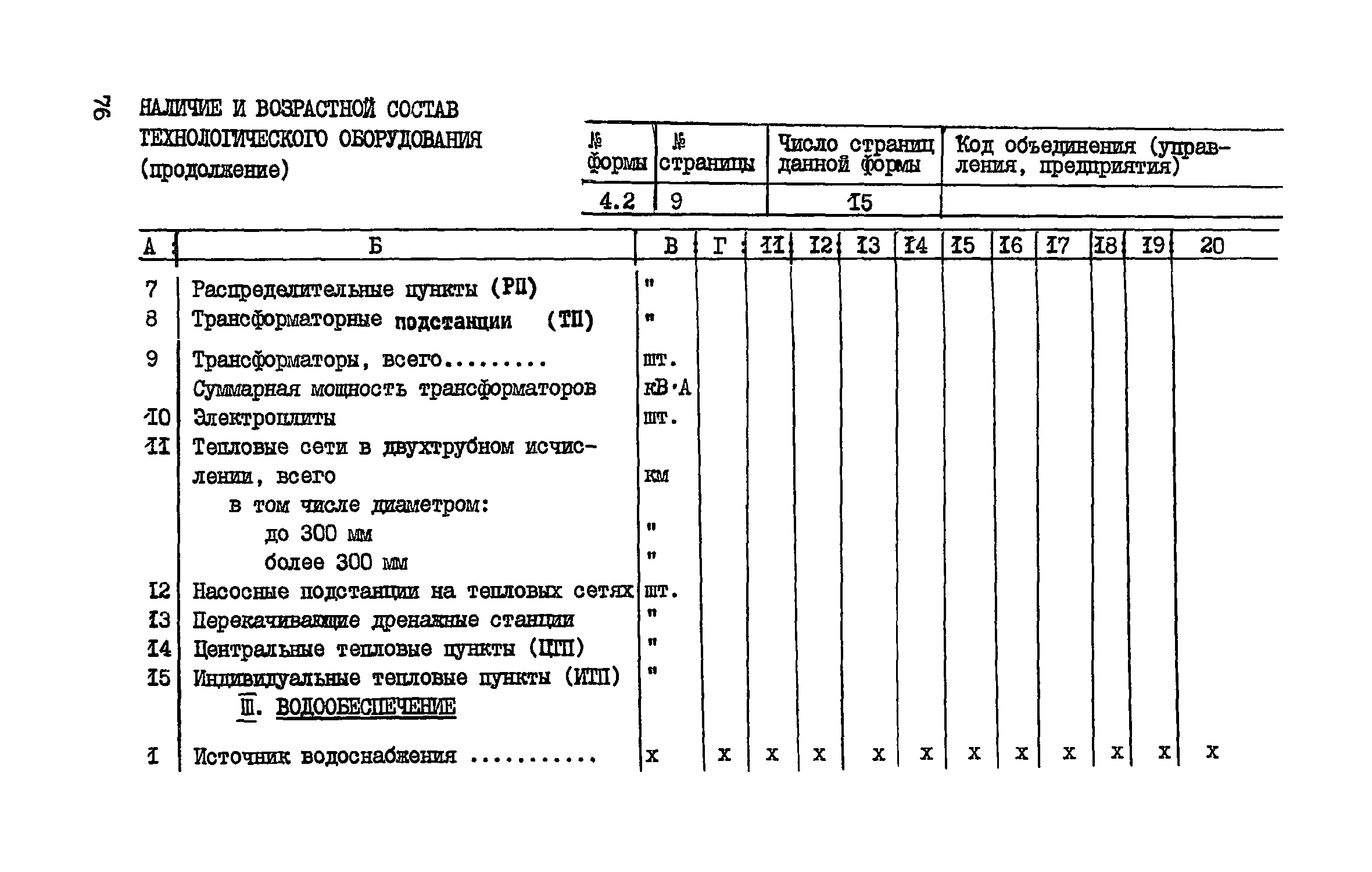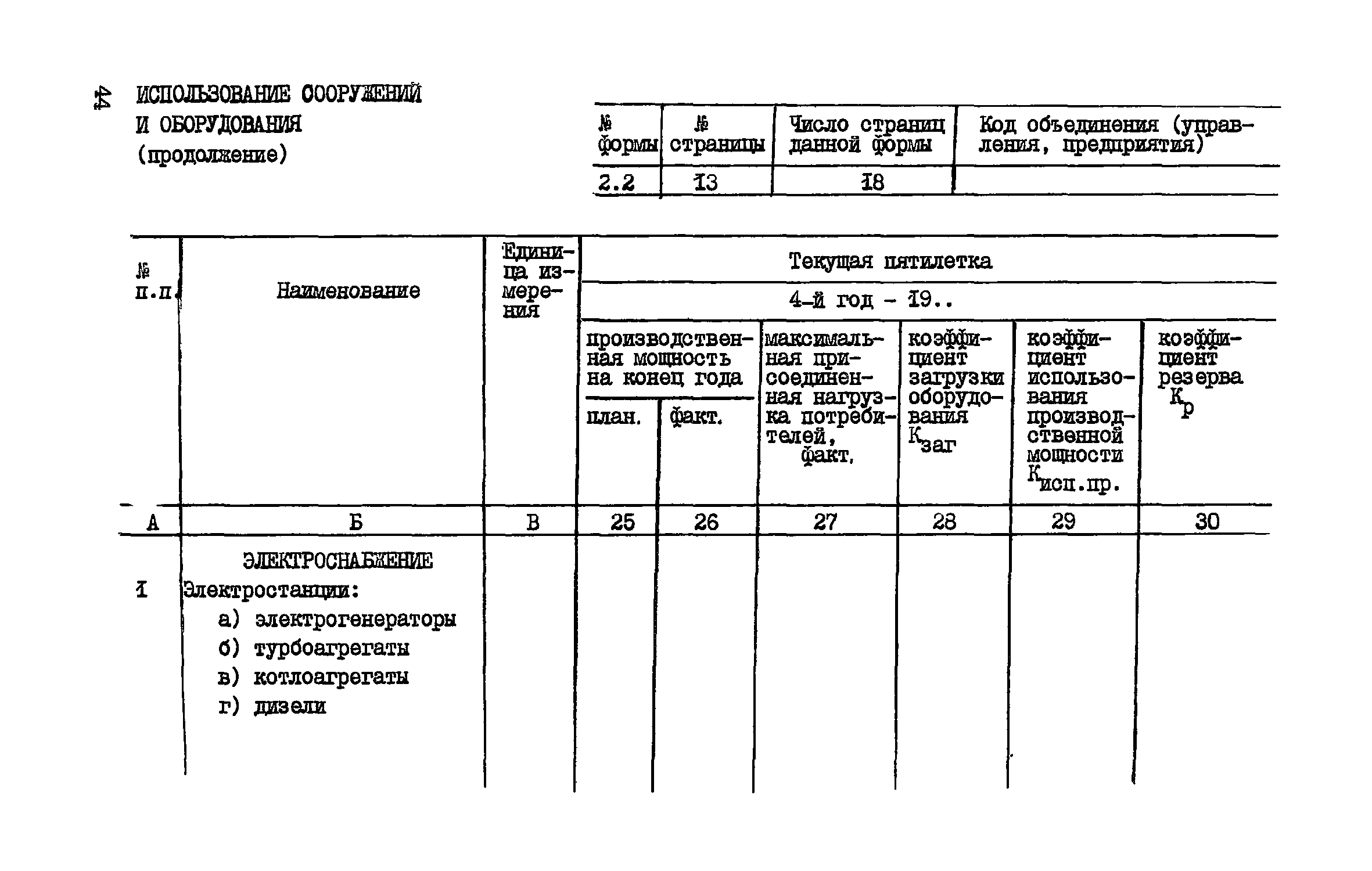 | Оглавление: | 1. Введение 2. Порядок составления паспорта 3. Общие данные по объединению (управлению, предприятию) 4. Мощность и ее использование 5. Производство и реализация энергии 6. Основные фонды и капитальное строительство 7. Материальные ресурсы 8. Трудовые ресурсы и социальное развитие 9. Финансовые показатели 10. Организационно-технический уровень производства 11. Охрана природы и рациональное использование природных ресурсов 12. Обслуживающее хозяйство 13. Приложение. Паспорт предприятия коммунальной энергетики (типовые формы) |